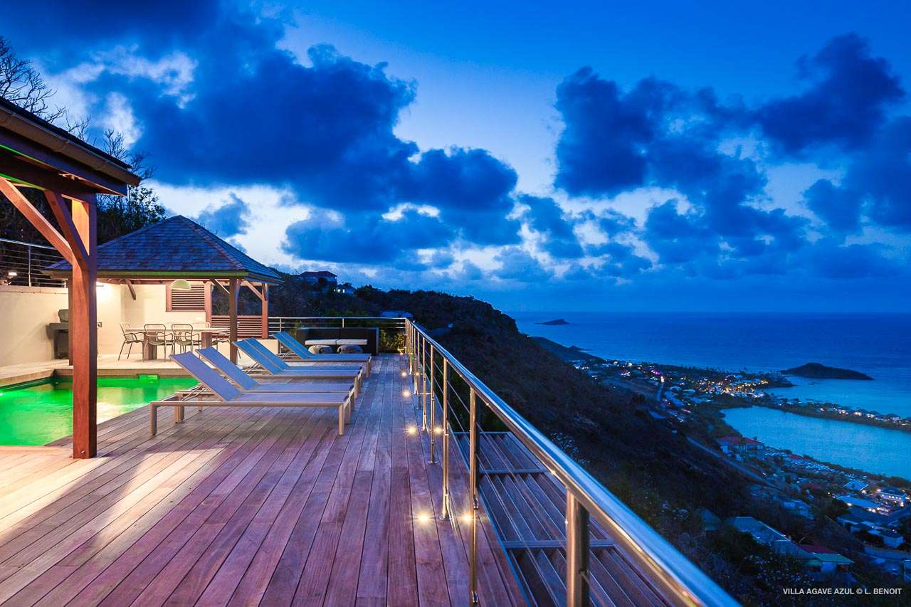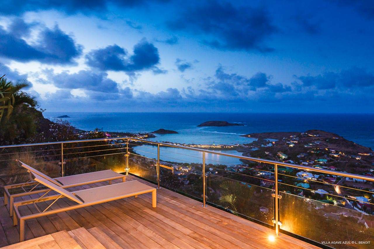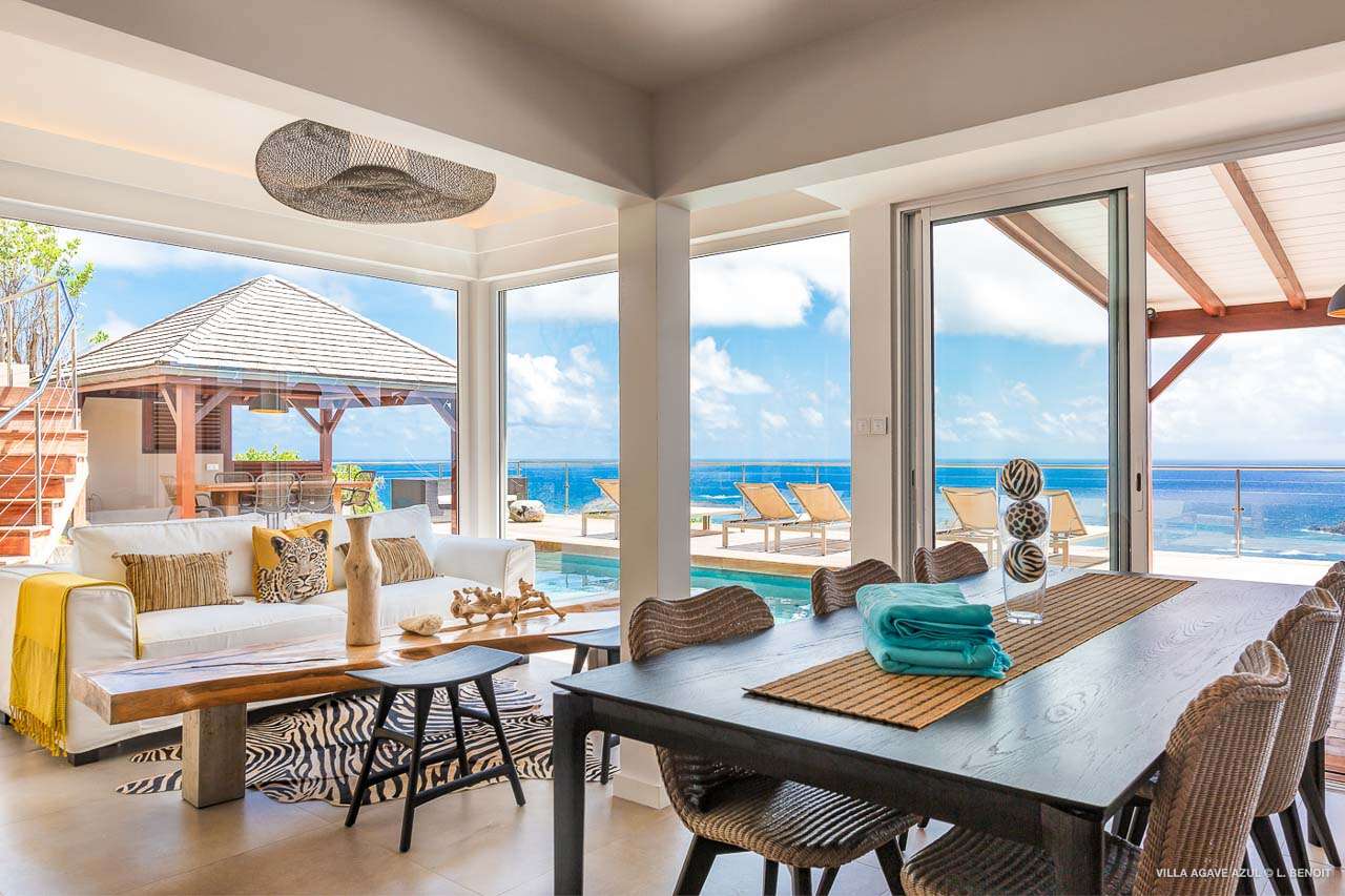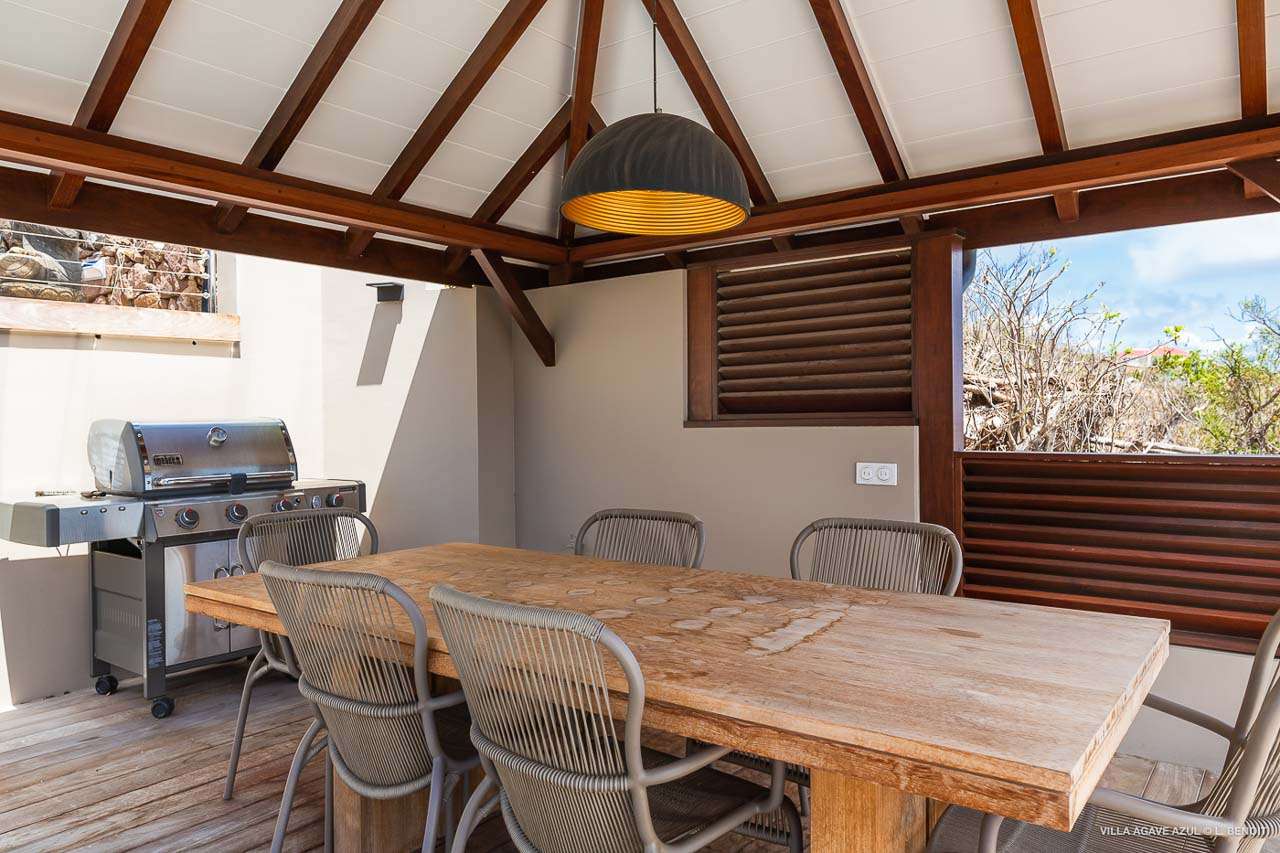 Welcome to Villa Agave Azul (villa code: WV ZUL), a contemporary 4-bedroom villa located in Vitet, St. Barts. This private villa offers breathtaking views of the ocean and the Grand Cul de Sac lagoon, all within minutes of several beaches, shops, and restaurants. Villa Agave Azul is a beautiful example of modern island living. A soothing palette of creams, whites, and rustic woods combine in the interior, with splashes of color and creativity in the tasteful décor. But the real highlight is the incredible island views, with panoramas of the Caribbean and gorgeous Grand Cul de Sac at every turn. Located high in the hills of Vitet, Villa Agave Azul is an idyllic island home that celebrates the best of the St. Barts lifestyle. Within minutes, you could be wading into the sparkling Caribbean, or enjoying a gourmet meal on the waterfront. Private, elegant, and with a fabulous location, this is a great choice for a Caribbean getaway. The bright living spaces inside Villa Agave Azul feature an alluring open-plan design, creating the sense of being outside while lounging around in comfortable interior spaces. A stylish great room is the center of the home, with a combined living room, dining area, and kitchen. The living room sits right next to the sliding glass doors, opening to the outdoor terrace and inviting in the cool breezes. The sofa makes for a great spot to sink in and unwind after a long day exploring St. Barts. To the back of the great room is Villa Agave Azul’s kitchen. Fully equipped, this space has all the appliances you’ll need to prepare meals during your stay. Our concierge also has a few tricks up their sleeves if you wish, from grocery deliveries to arranging a private chef for an evening. There’s a charming indoor dining table, sitting next to sliding doors that open to a tranquil inner courtyard. An alfresco table sits outside on the covered terrace, an idyllic spot to take in the incredible views while you enjoy a gourmet meal. There are 4 bedrooms inside Villa Agave Azul, calm and soothing spaces for some downtime during your stay. The master suite is next to the great room, with contemporary décor and a plush king-sized bed. Ascending upstairs brings you to two more bedrooms, one with a king and the other with a pair of twins. The fourth bedroom is below the main house, with a private terrace enjoying breathtaking 180-degree ocean views. The room also has a small kitchenette. All four bedrooms enjoy spacious ensuite bathrooms and air-conditioning. Stepping outside brings you to Villa Agave Azul’s oversized deck, enjoying some of the best views of the island. From here, the shimmering turquoise bay will coax you out to explore, with plenty of comfortable seating to kick back and take it all in. There’s an outdoor seating area for cocktail hours and sunset views, while plush loungers provide comfortable spots for sunbathing between dips in the villa’s pool. There are stairs that lead down to a lower deck, offering a relaxing retreat with more loungers overlooking the ocean. More stairs ascend to the top of the villa, where there’s a small fitness room. Please note: The stairs to access the house may not be suitable for people with reduced mobility. During the December holidays, the villa rents at full occupancy rates regardless of how many bedrooms are used.Please fill out the form to begin your inquiry and we will connect you with a seasoned villa rental specialist.
