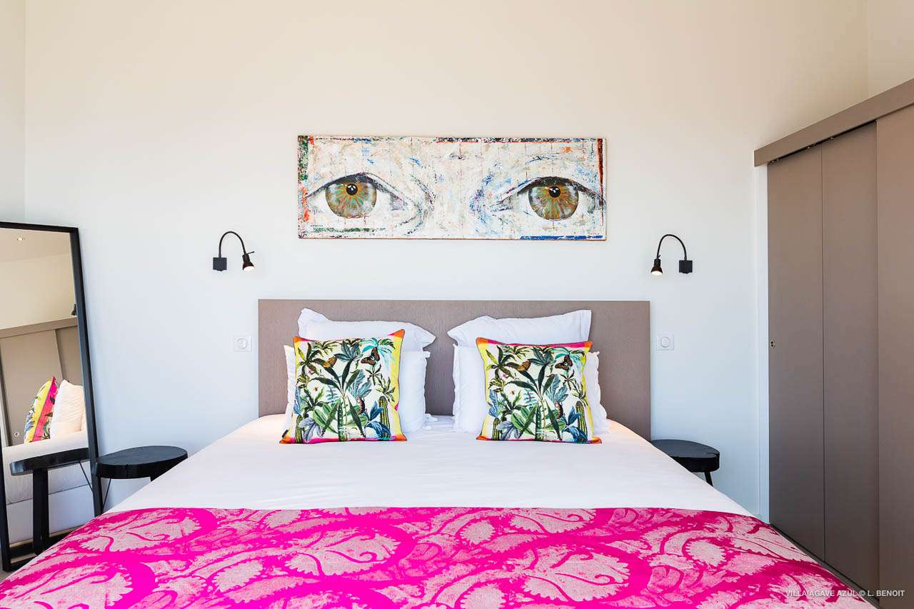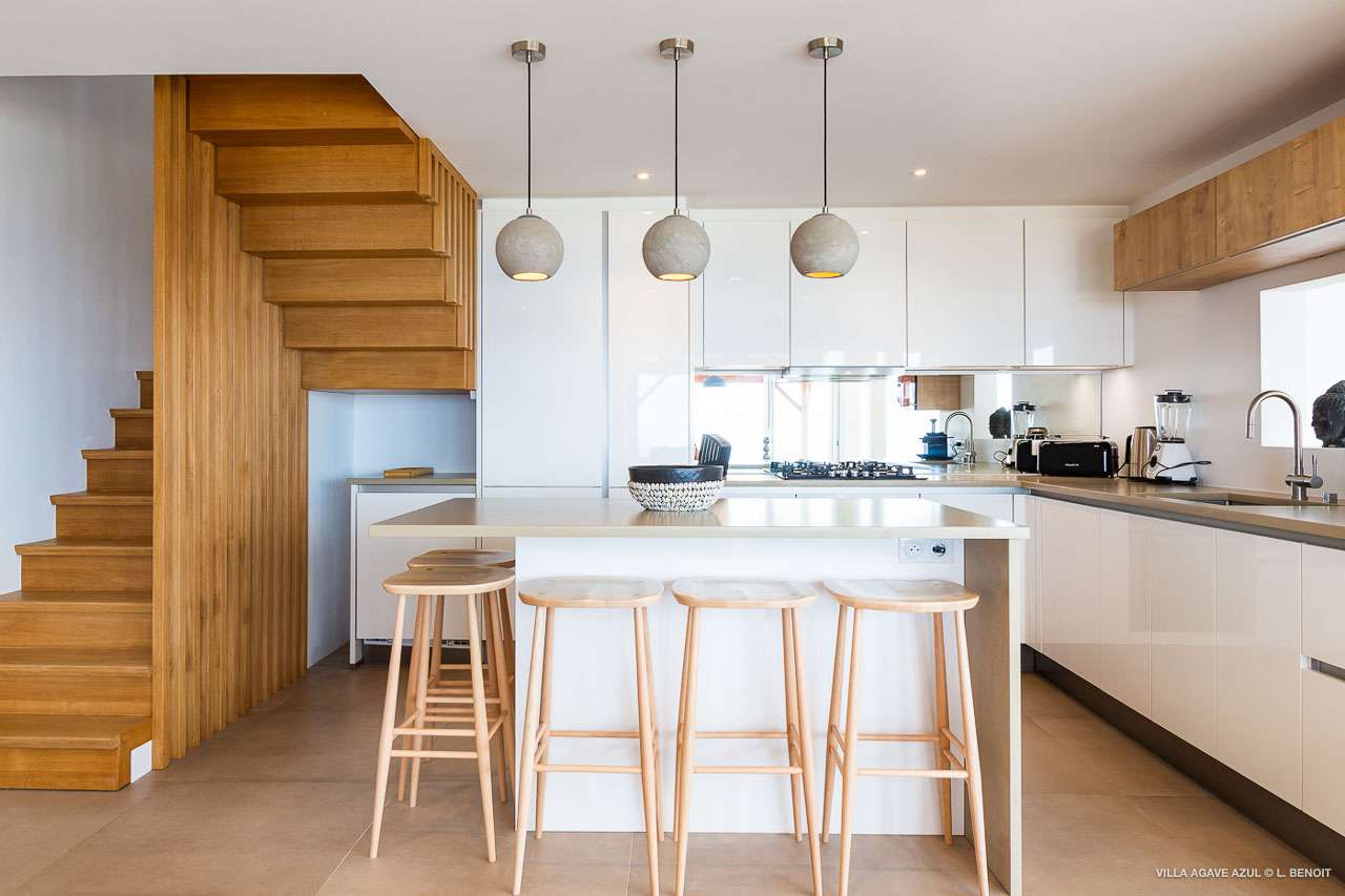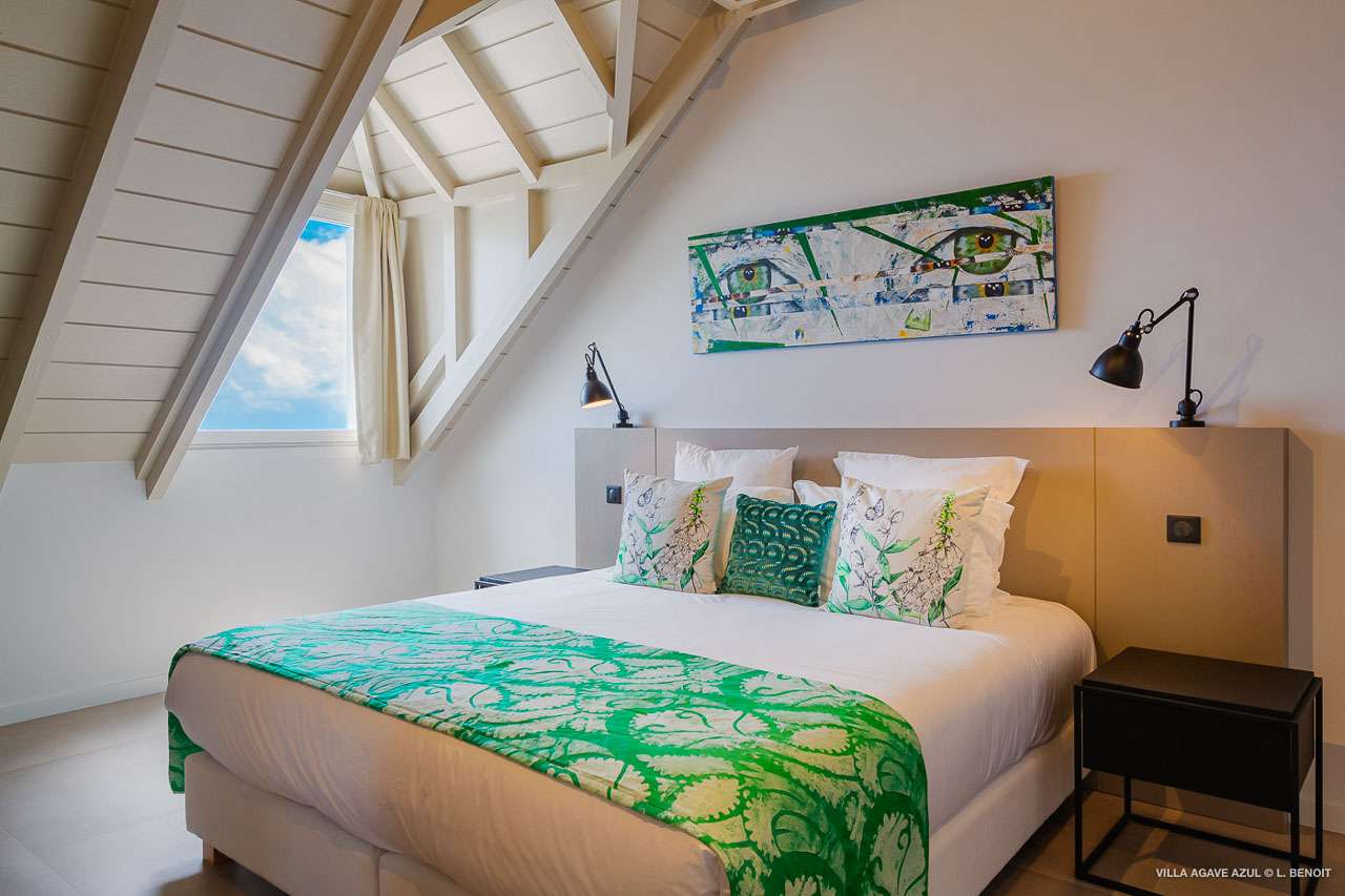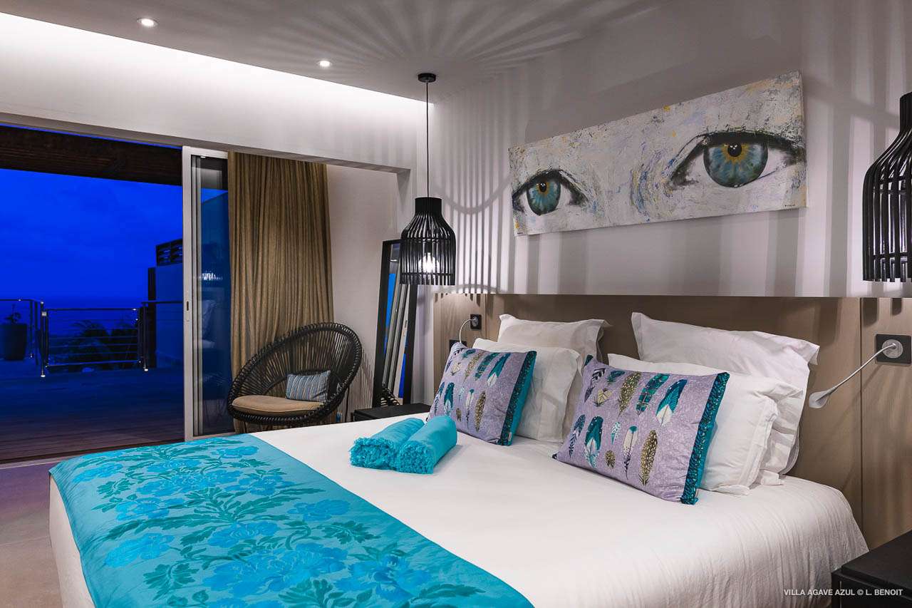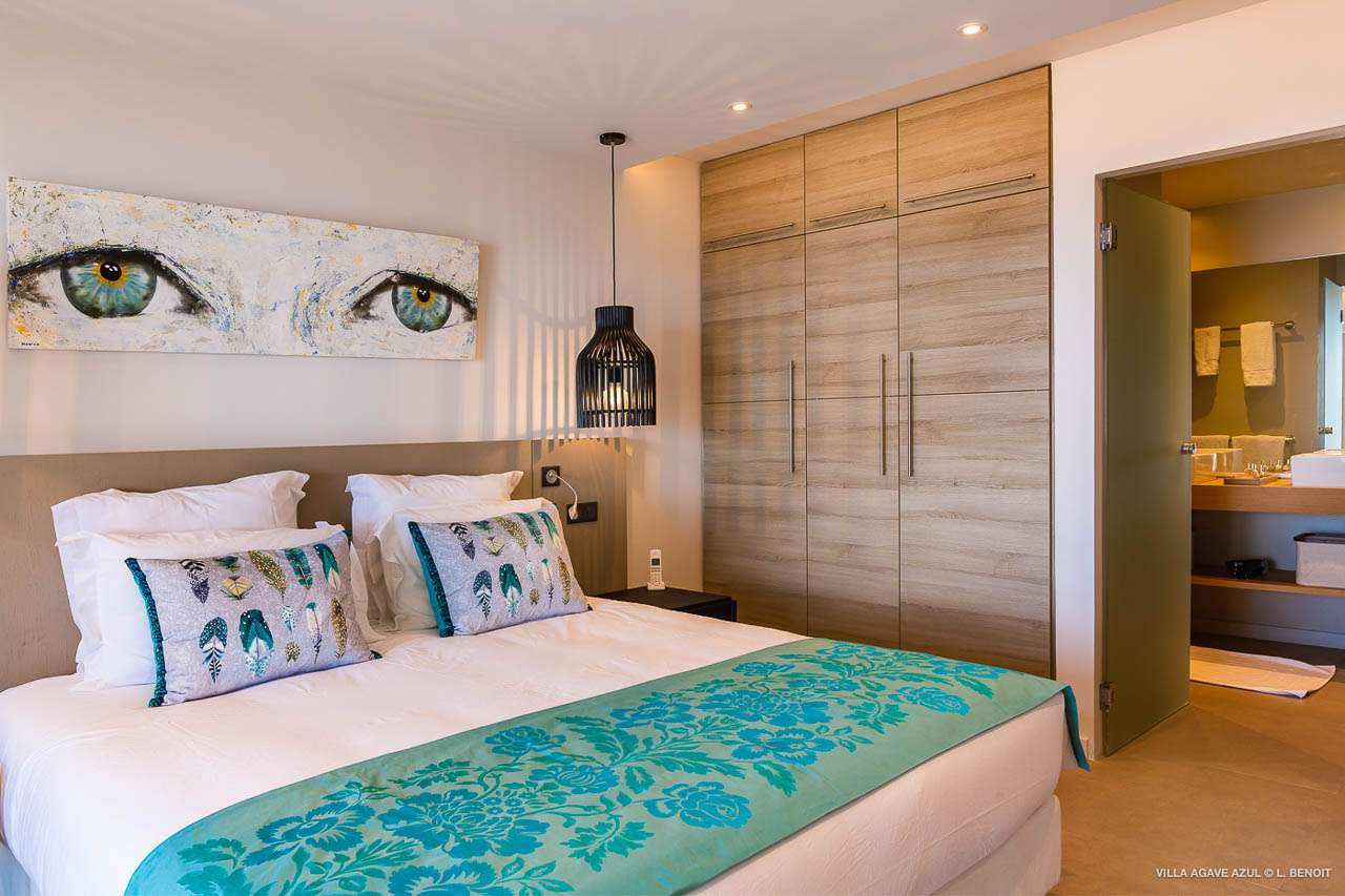 Welcome to Villa Agave Azul (villa code: WV ZUL), a contemporary 4-bedroom villa located in Vitet, St. Barts. This private villa offers breathtaking views of the ocean and the Grand Cul de Sac lagoon, all within minutes of several beaches, shops, and restaurants. Villa Agave Azul is a beautiful example of modern island living. A soothing palette of creams, whites, and rustic woods combine in the interior, with splashes of color and creativity in the tasteful décor. But the real highlight is the incredible island views, with panoramas of the Caribbean and gorgeous Grand Cul de Sac at every turn. Located high in the hills of Vitet, Villa Agave Azul is an idyllic island home that celebrates the best of the St. Barts lifestyle. Within minutes, you could be wading into the sparkling Caribbean, or enjoying a gourmet meal on the waterfront. Private, elegant, and with a fabulous location, this is a great choice for a Caribbean getaway. The bright living spaces inside Villa Agave Azul feature an alluring open-plan design, creating the sense of being outside while lounging around in comfortable interior spaces. A stylish great room is the center of the home, with a combined living room, dining area, and kitchen. The living room sits right next to the sliding glass doors, opening to the outdoor terrace and inviting in the cool breezes. The sofa makes for a great spot to sink in and unwind after a long day exploring St. Barts. To the back of the great room is Villa Agave Azul’s kitchen. Fully equipped, this space has all the appliances you’ll need to prepare meals during your stay. Our concierge also has a few tricks up their sleeves if you wish, from grocery deliveries to arranging a private chef for an evening. There’s a charming indoor dining table, sitting next to sliding doors that open to a tranquil inner courtyard. An alfresco table sits outside on the covered terrace, an idyllic spot to take in the incredible views while you enjoy a gourmet meal. There are 4 bedrooms inside Villa Agave Azul, calm and soothing spaces for some downtime during your stay. The master suite is next to the great room, with contemporary décor and a plush king-sized bed. Ascending upstairs brings you to two more bedrooms, one with a king and the other with a pair of twins. The fourth bedroom is below the main house, with a private terrace enjoying breathtaking 180-degree ocean views. The room also has a small kitchenette. All four bedrooms enjoy spacious ensuite bathrooms and air-conditioning. Stepping outside brings you to Villa Agave Azul’s oversized deck, enjoying some of the best views of the island. From here, the shimmering turquoise bay will coax you out to explore, with plenty of comfortable seating to kick back and take it all in. There’s an outdoor seating area for cocktail hours and sunset views, while plush loungers provide comfortable spots for sunbathing between dips in the villa’s pool. There are stairs that lead down to a lower deck, offering a relaxing retreat with more loungers overlooking the ocean. More stairs ascend to the top of the villa, where there’s a small fitness room. Please note: The stairs to access the house may not be suitable for people with reduced mobility. During the December holidays, the villa rents at full occupancy rates regardless of how many bedrooms are used.Please fill out the form to begin your inquiry and we will connect you with a seasoned villa rental specialist.