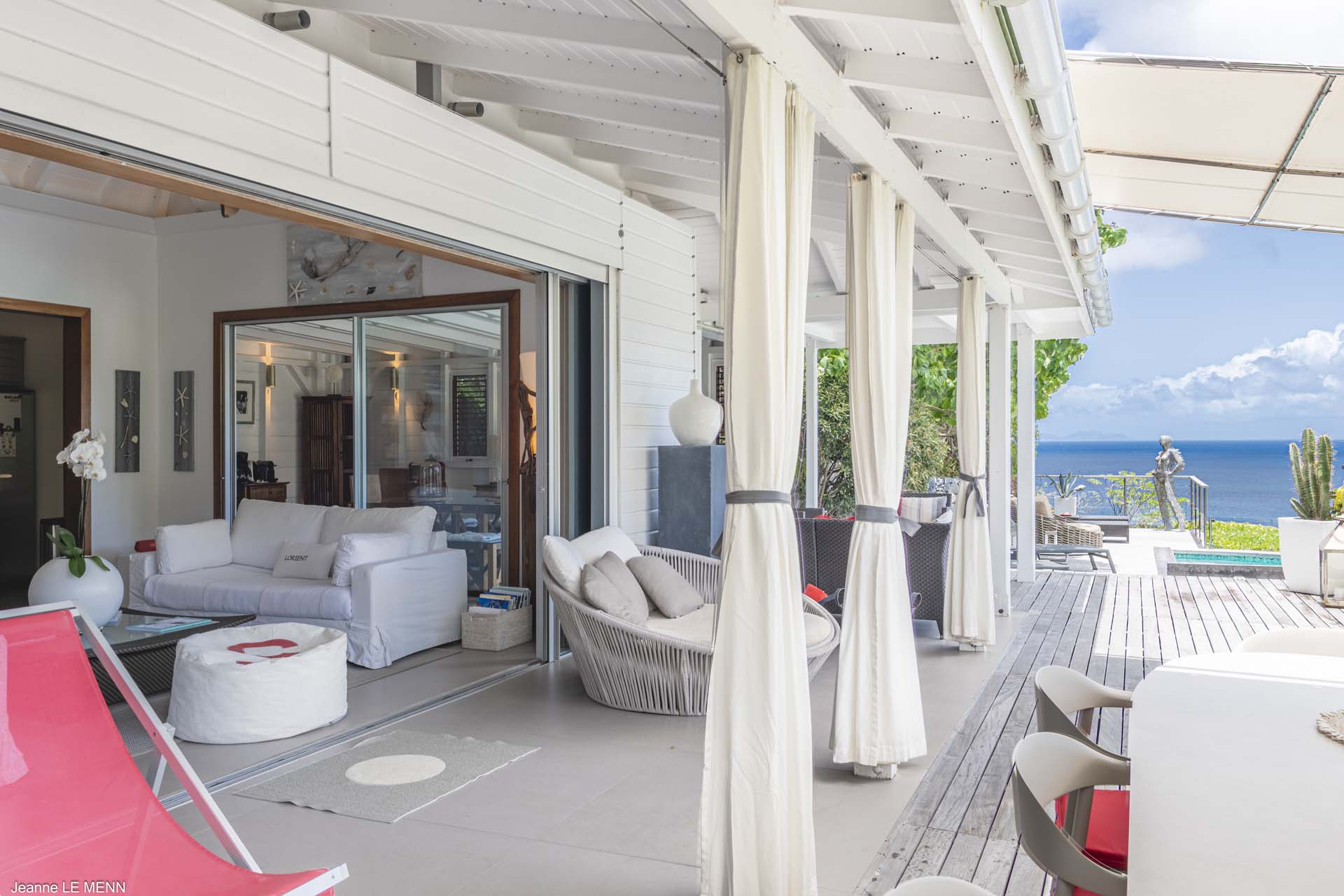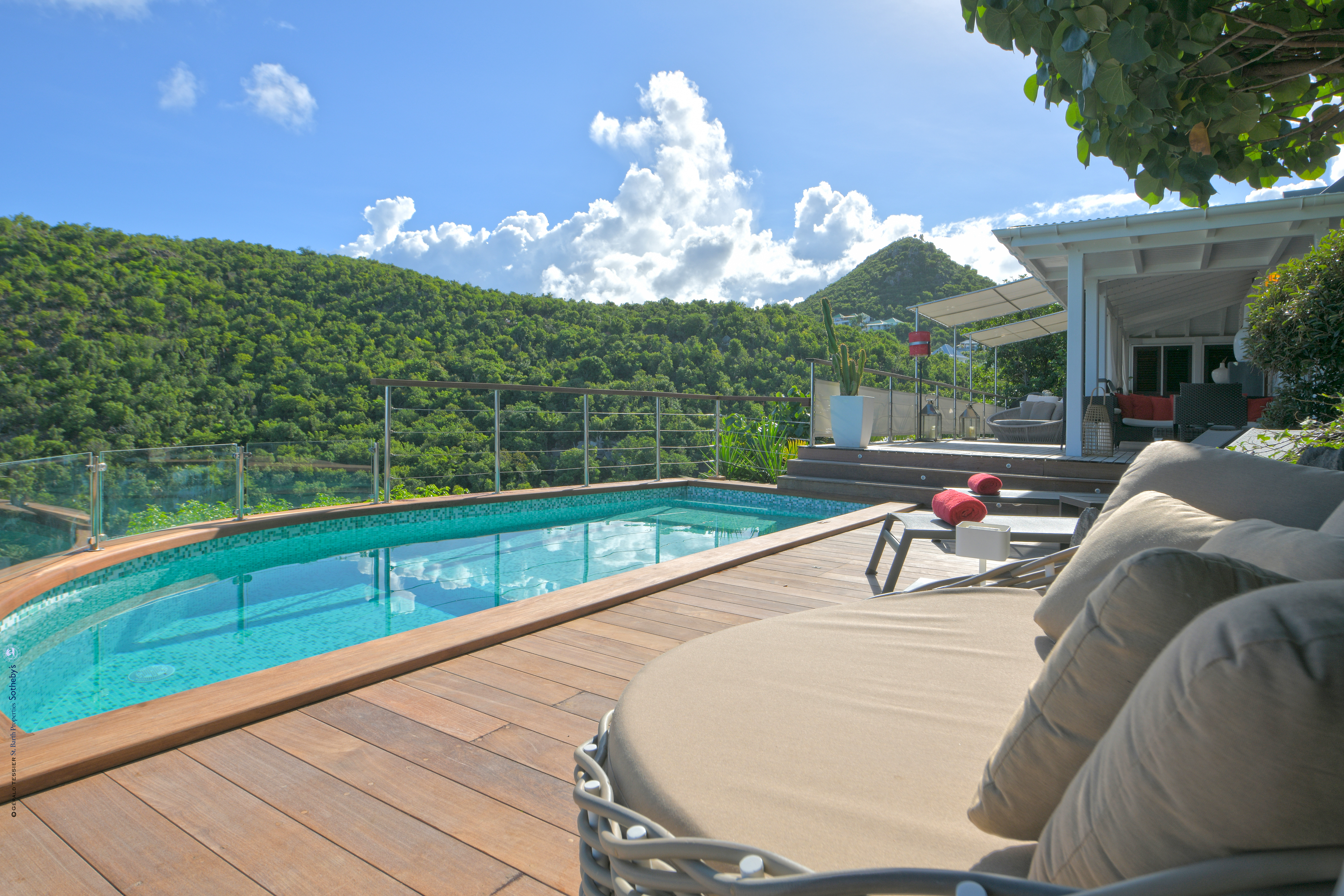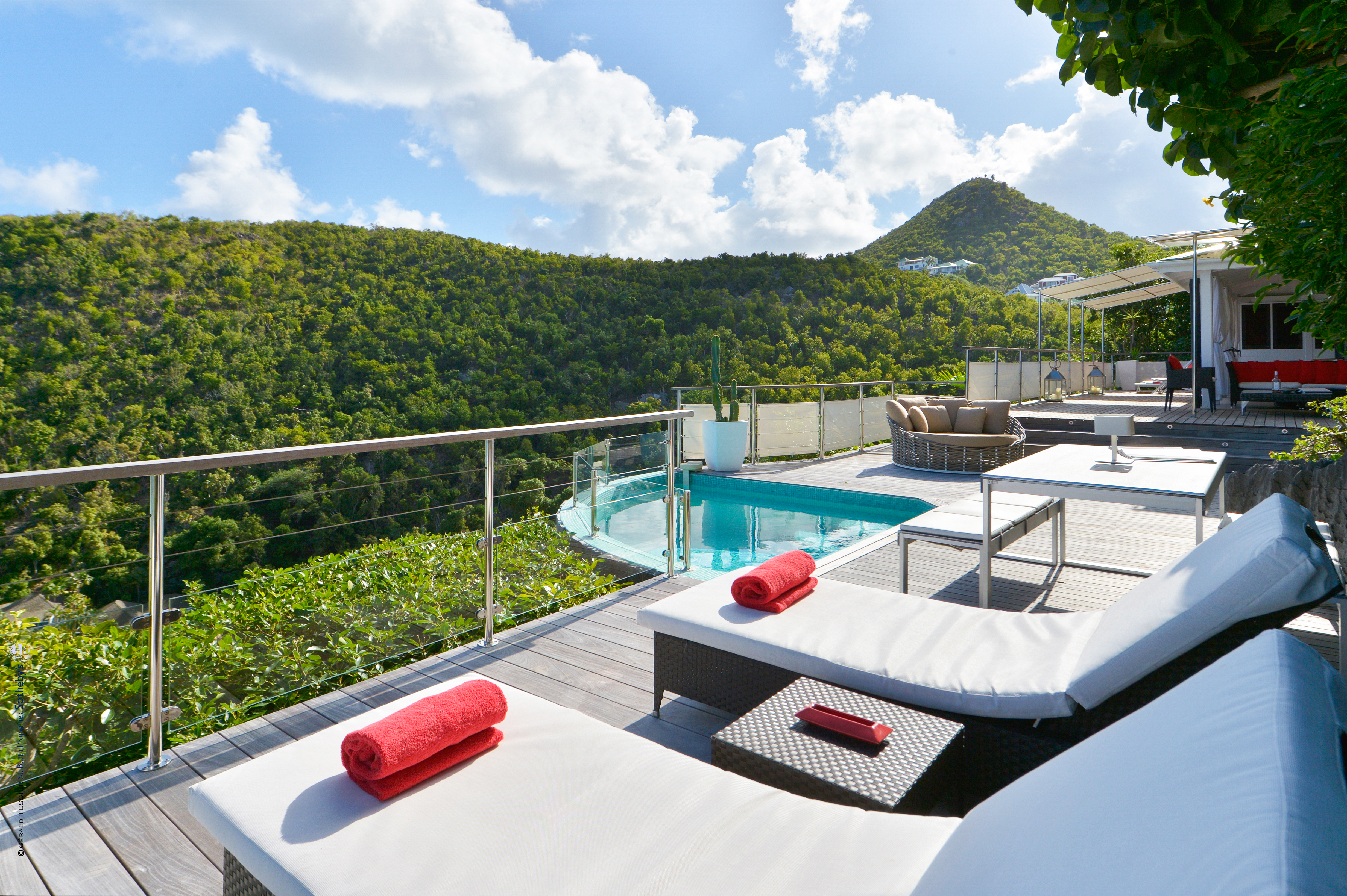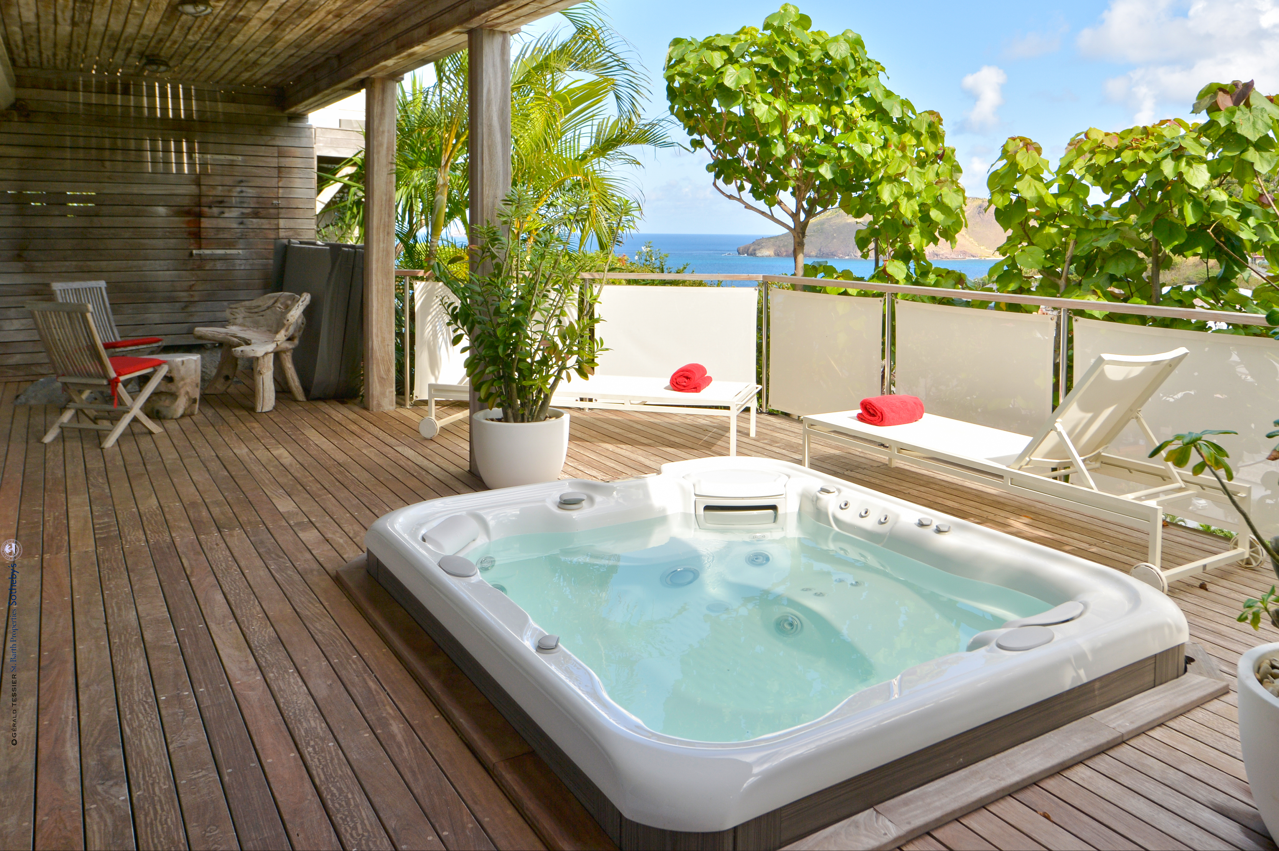 Villa Aloa, (villa code: WV AOA) is a 3-bedroom located in the popular Roc Flamands complex. Villa Aloa has an abundance of features, the outdoor spaces include a multi-level deck with a kitty-cornered plunge pool that overlooks a lovely view of the sea. Guests love the adjacent alfresco dining area. Steps lead down from the parking area to the main level which encompasses the living room, dining area, and a well-equipped compact kitchen. The three bedrooms, 2 with king beds and one with a king or 2 twins are on a lower level and each has direct access to the hot tub which is also on this level. The master bedroom has an ensuite bathroom and the guest rooms share a bathroom across the hallway. A powder room is located on the main level. During the Thanksgiving and December holidays, the villa rents at the full occupancy rate regardless of how many bedrooms are used. * Note - There are a lot of stairs to get down to the villa.Please fill out the form to begin your inquiry and we will connect you with a seasoned villa rental specialist.