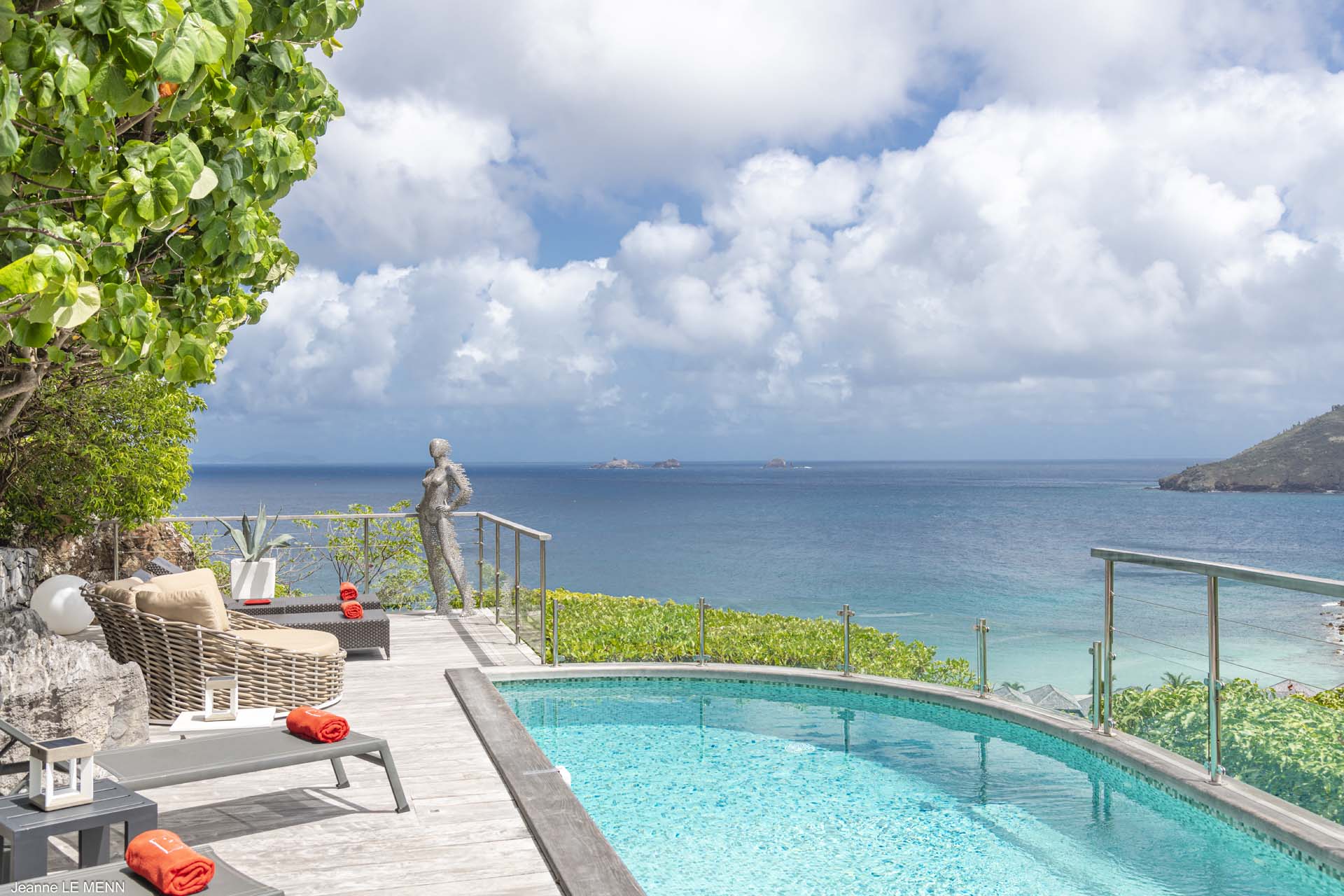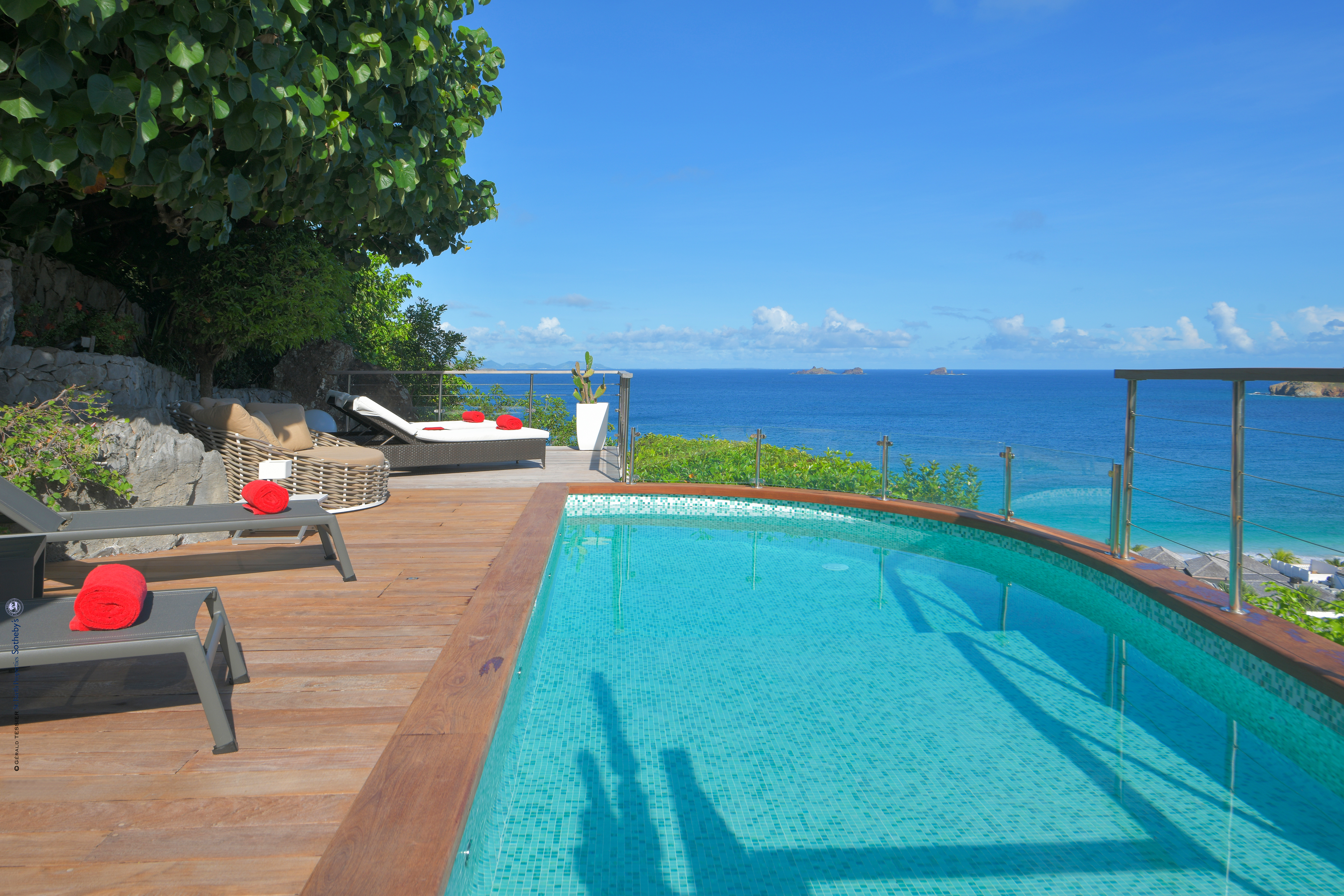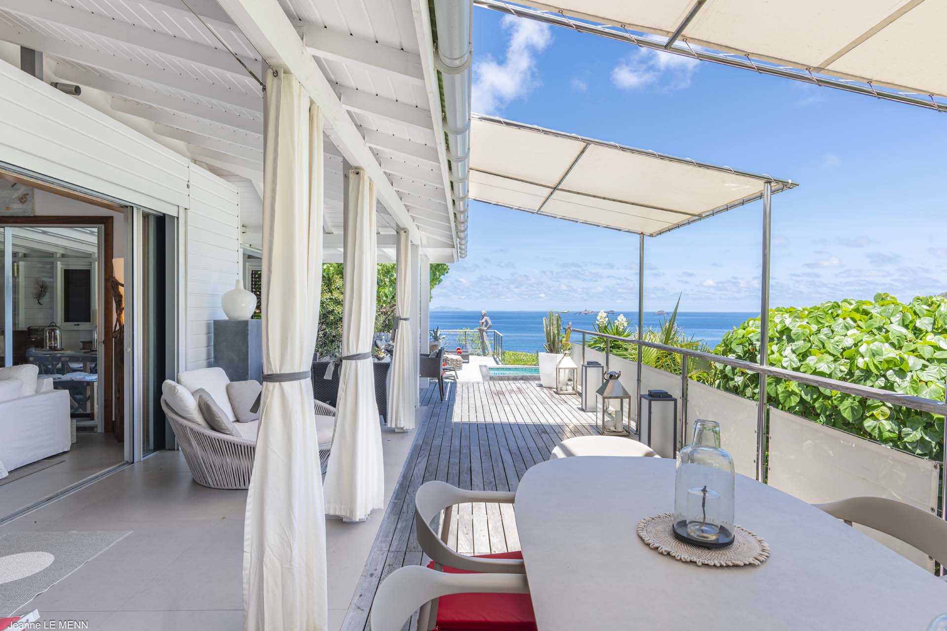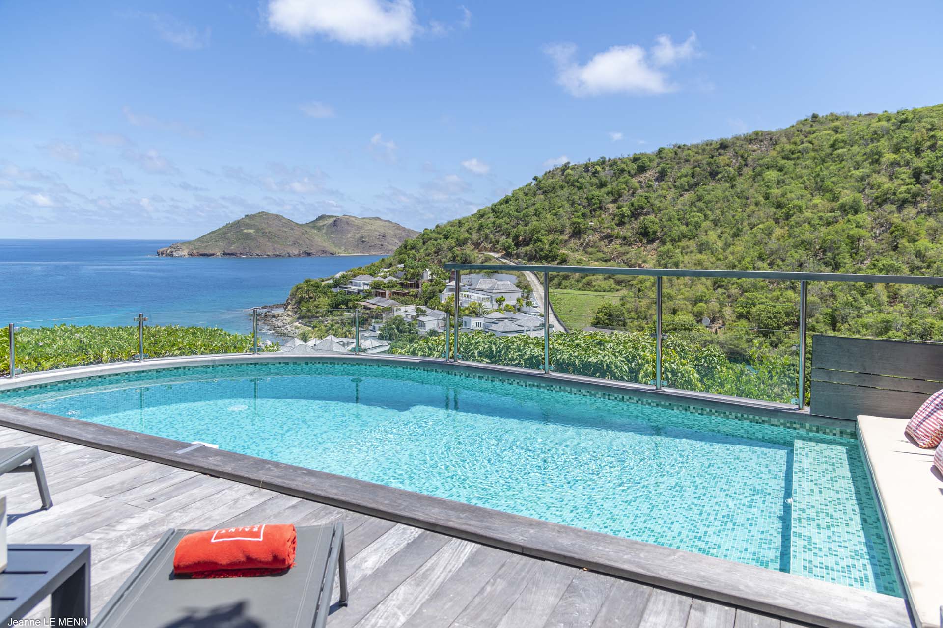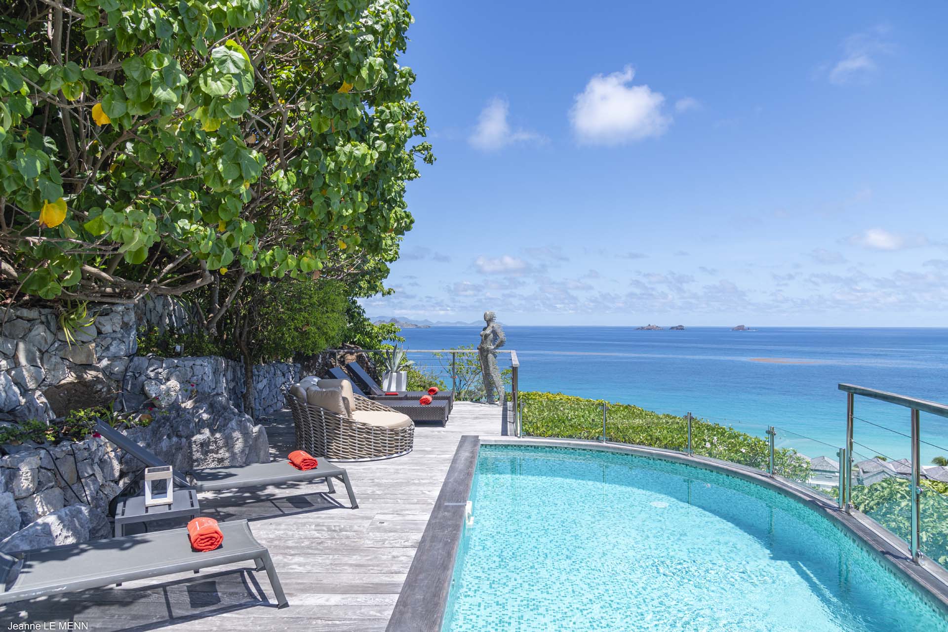 Villa Aloa, (villa code: WV AOA) is a 3-bedroom located in the popular Roc Flamands complex. Villa Aloa has an abundance of features, the outdoor spaces include a multi-level deck with a kitty-cornered plunge pool that overlooks a lovely view of the sea. Guests love the adjacent alfresco dining area. Steps lead down from the parking area to the main level which encompasses the living room, dining area, and a well-equipped compact kitchen. The three bedrooms, 2 with king beds and one with a king or 2 twins are on a lower level and each has direct access to the hot tub which is also on this level. The master bedroom has an ensuite bathroom and the guest rooms share a bathroom across the hallway. A powder room is located on the main level. During the Thanksgiving and December holidays, the villa rents at the full occupancy rate regardless of how many bedrooms are used. * Note - There are a lot of stairs to get down to the villa.Please fill out the form to begin your inquiry and we will connect you with a seasoned villa rental specialist.