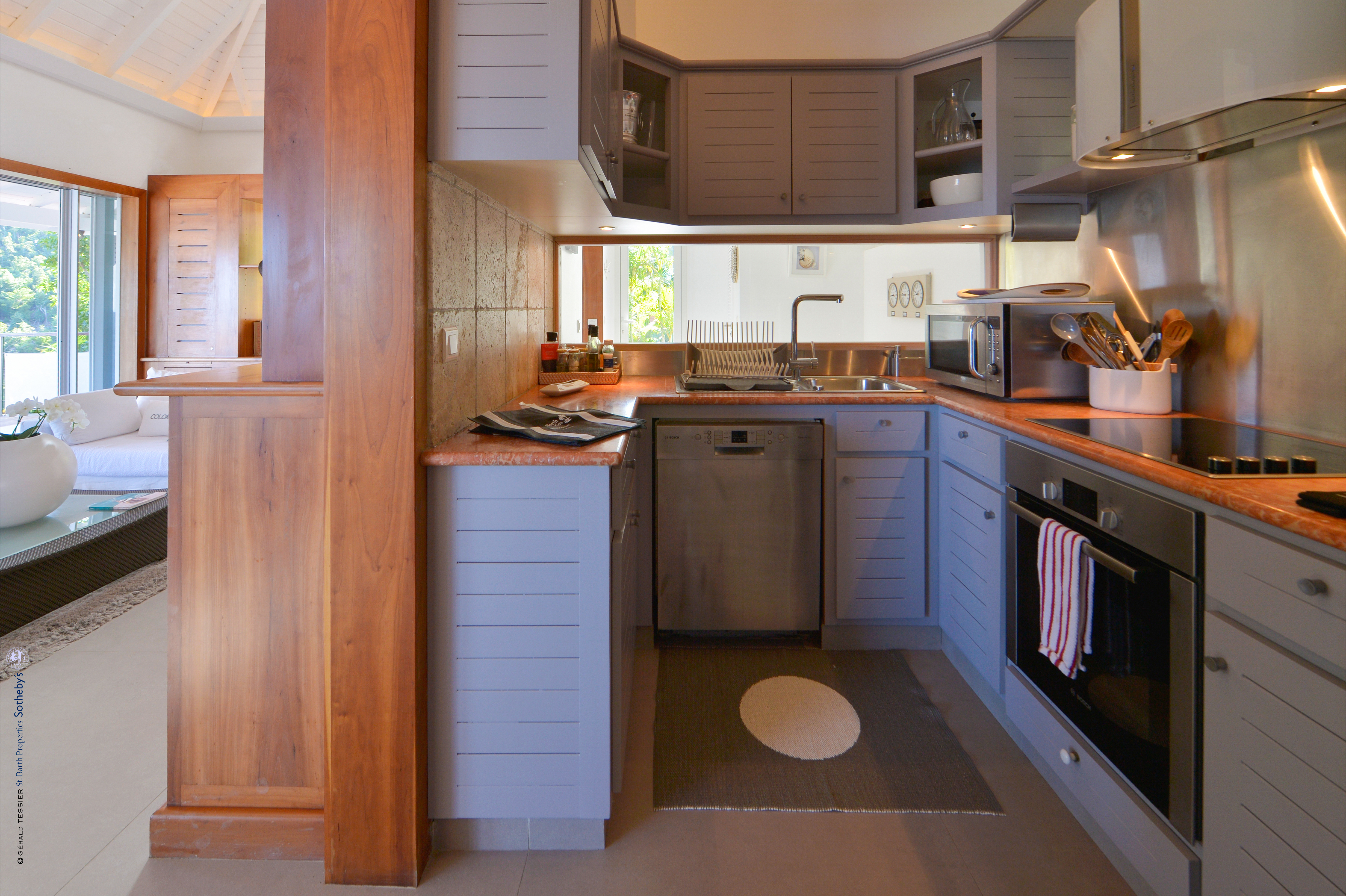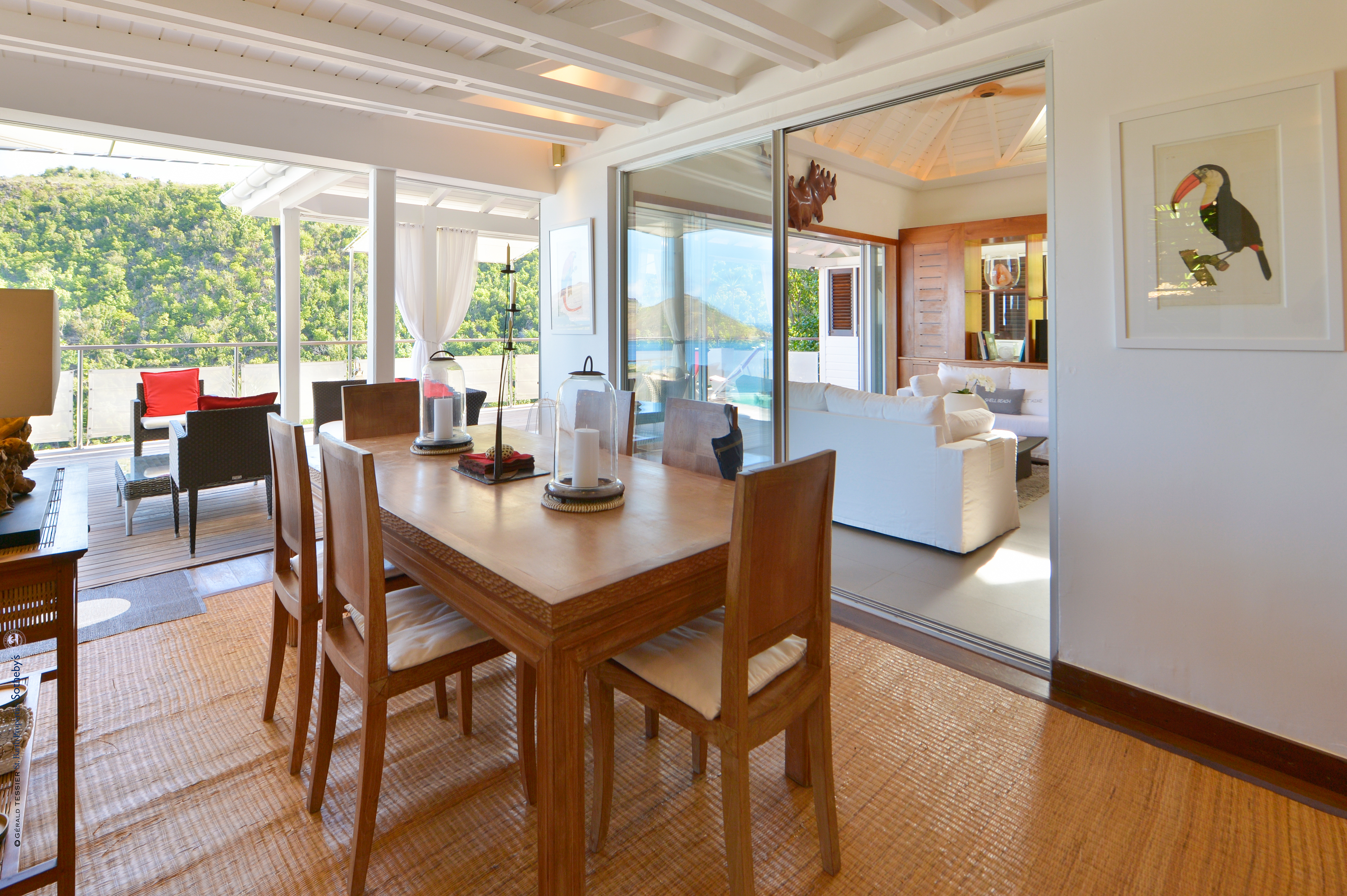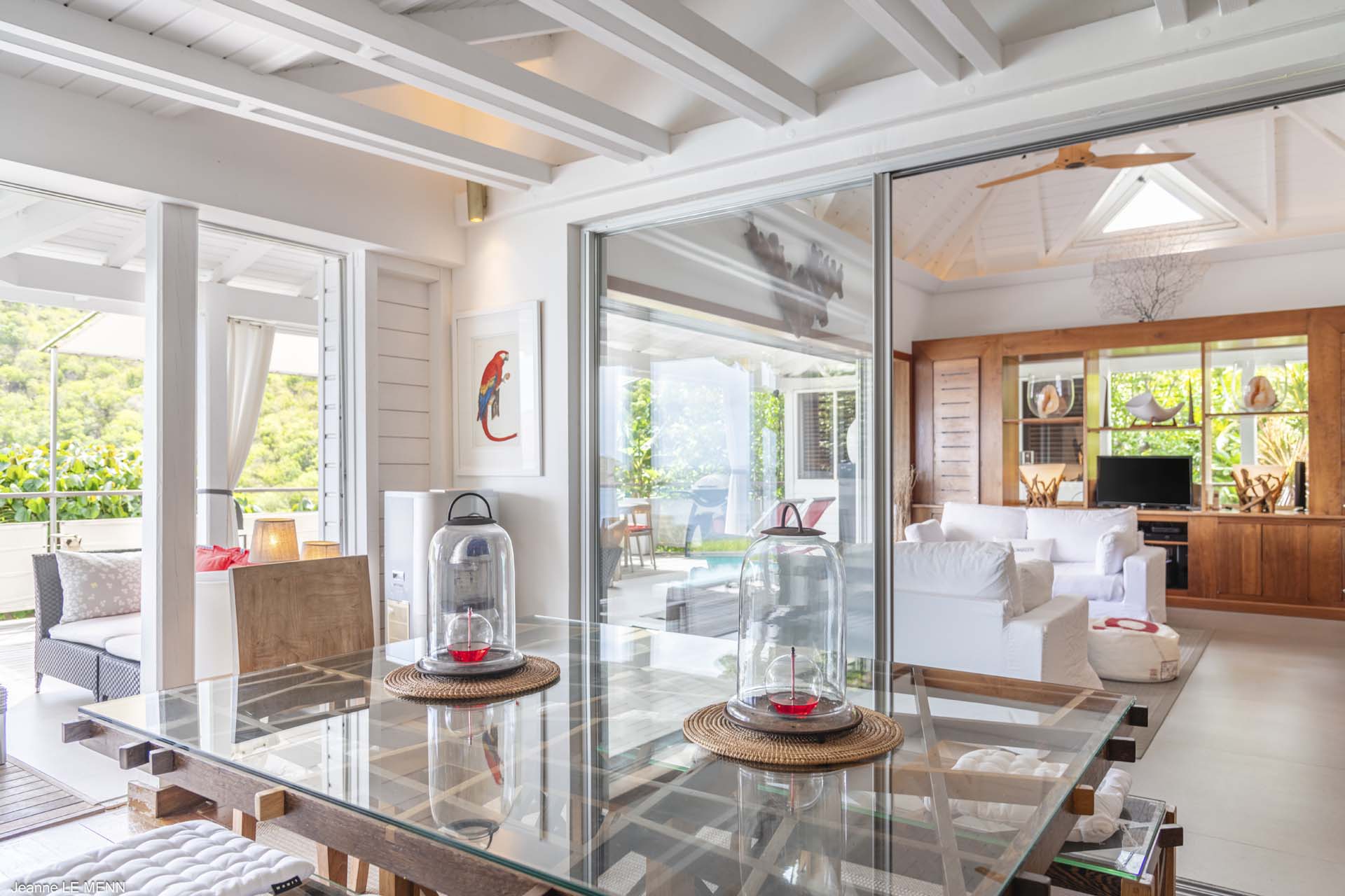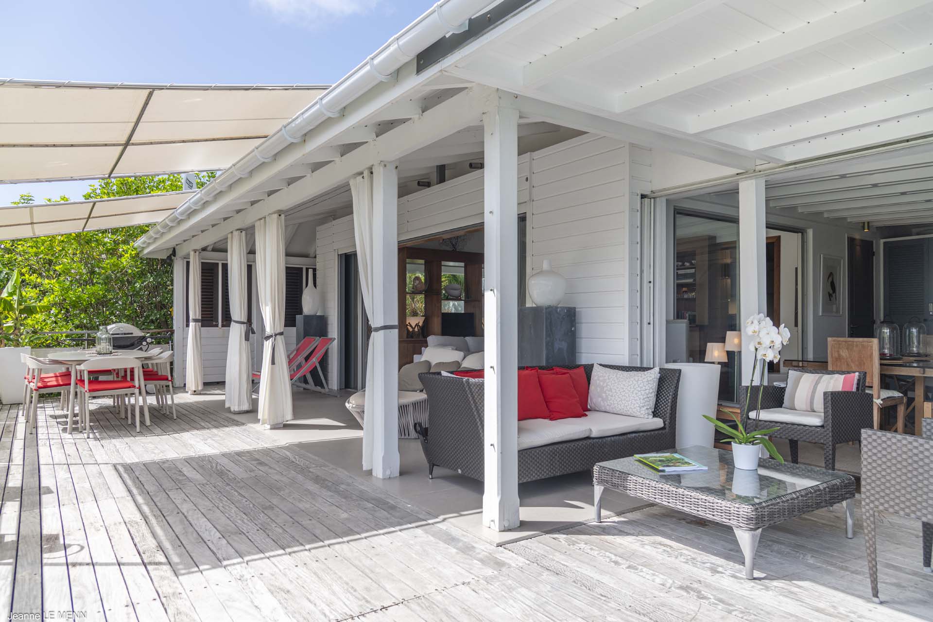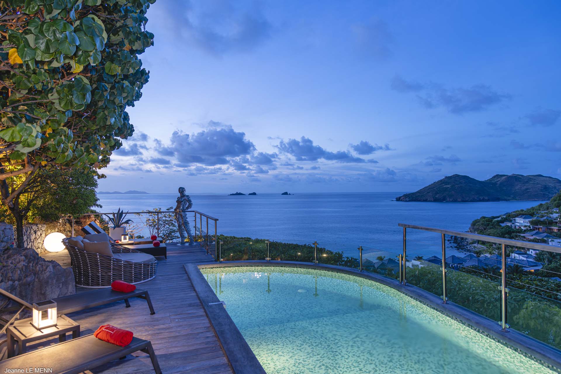 Villa Aloa, (villa code: WV AOA) is a 3-bedroom located in the popular Roc Flamands complex. Villa Aloa has an abundance of features, the outdoor spaces include a multi-level deck with a kitty-cornered plunge pool that overlooks a lovely view of the sea. Guests love the adjacent alfresco dining area. Steps lead down from the parking area to the main level which encompasses the living room, dining area, and a well-equipped compact kitchen. The three bedrooms, 2 with king beds and one with a king or 2 twins are on a lower level and each has direct access to the hot tub which is also on this level. The master bedroom has an ensuite bathroom and the guest rooms share a bathroom across the hallway. A powder room is located on the main level. During the Thanksgiving and December holidays, the villa rents at the full occupancy rate regardless of how many bedrooms are used. * Note - There are a lot of stairs to get down to the villa.Please fill out the form to begin your inquiry and we will connect you with a seasoned villa rental specialist.