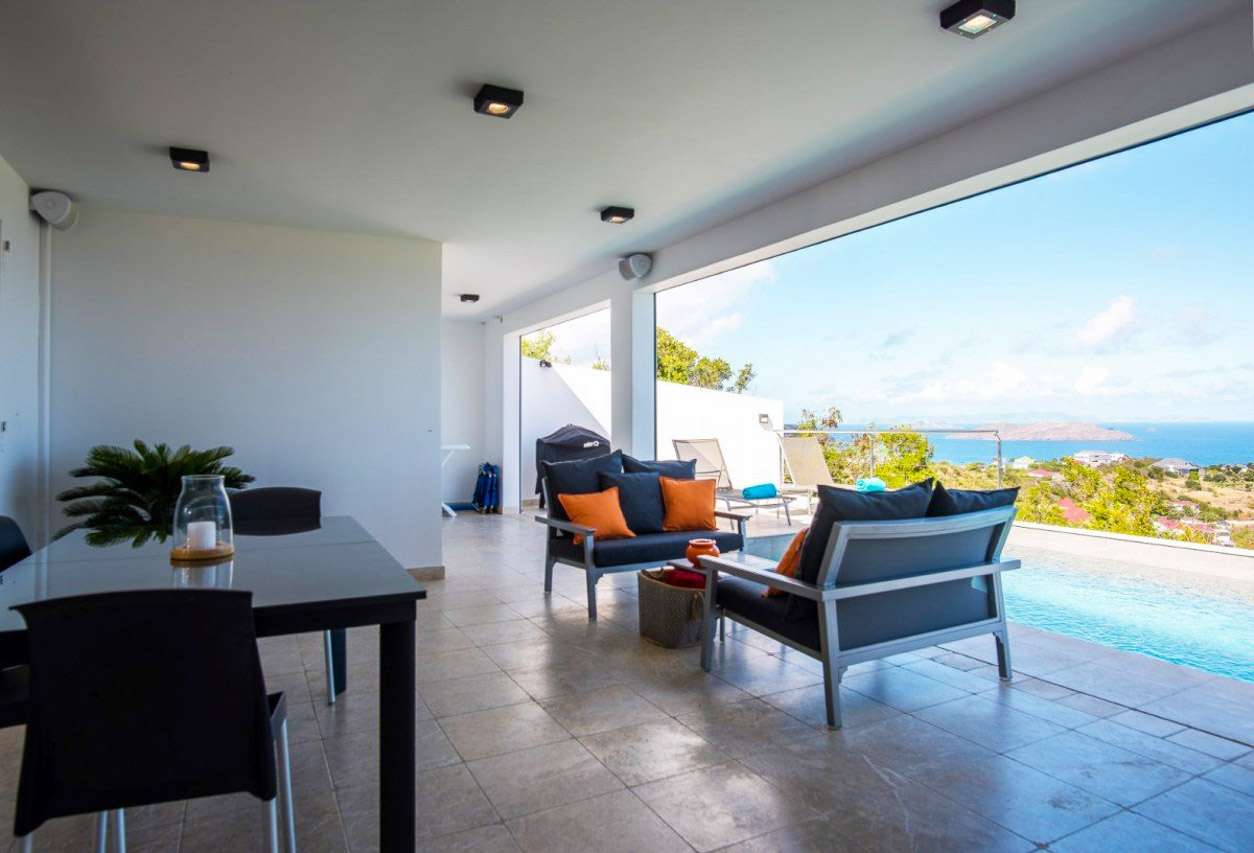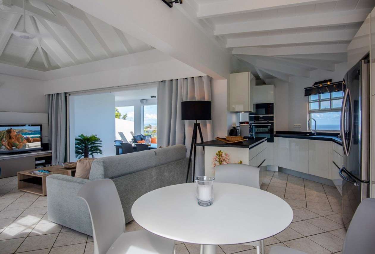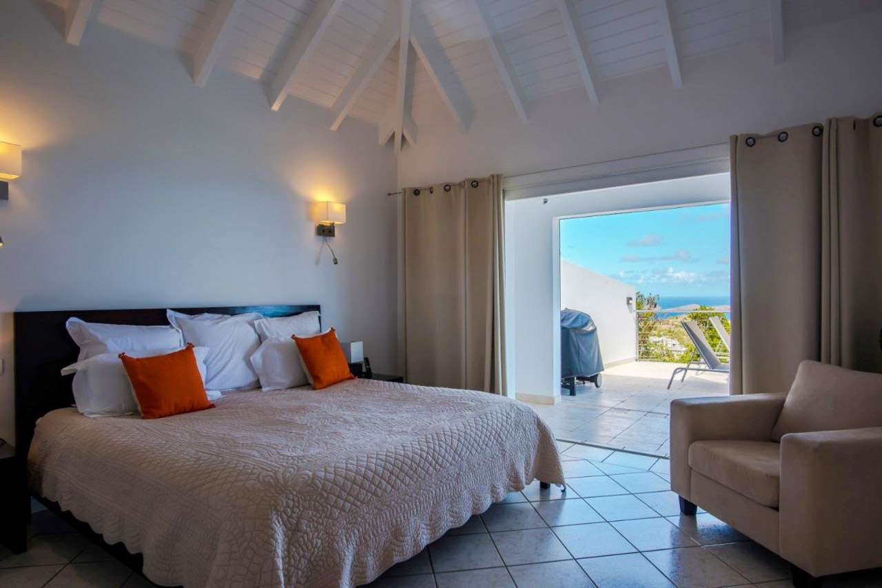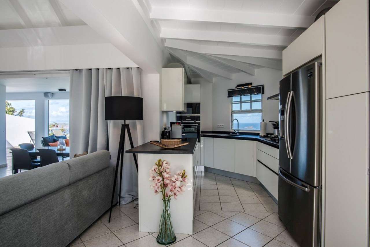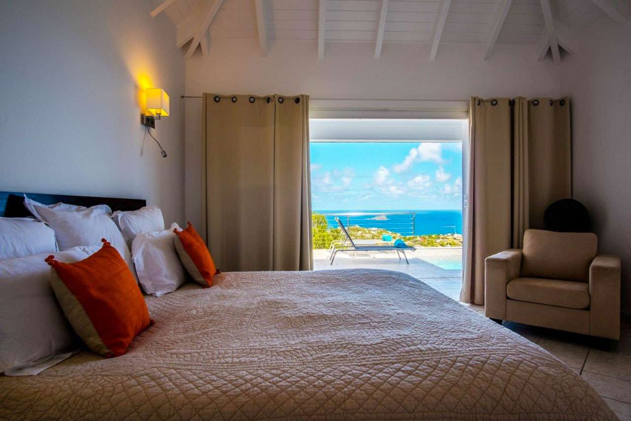 For a romantic getaway on the island of St. Barts, look no further than Villa Alouette (villa code: WV ALO). This is an intimate 1-bedroom property with stunning ocean views, nestled high in the hills of Vitet. Stylish design and exquisite attention to detail make this home a tempting choice for either a honeymoon or a quiet getaway for couples. Modern and updated furnishings provide all the comforts you could want, with décor that embraces the laid-back and elegant character of St. Barts. Tucked away on the hillside of Vitet near Camaruche, Villa Alouette offers dramatic views of the rolling hills below and the shimmering Caribbean Sea. There are several beaches within a 10-minute drive, as are shops and restaurants. The capital Gustavia is 15 minutes by car. The layout of Villa Alouette couldn’t be simpler: there’s a spacious main room with a living area, dining room, and kitchen, with a connected bedroom to one side. Both spaces open wide to the wonderful views, letting the island breezes wash through the home and keep things nice and cool. The living room is ideal for putting your feet up and relaxing, whether you’re reading a book or enjoying a cool drink and toasting on your island vacation. A soft sofa and armchair sit in front of the entertainment unit, complete with a flat-screen TV for movies. Behind the living room is the sleek kitchen at Villa Alouette. High-end appliances make cooking here a breeze for those who want to. However, our concierge is also on hand to arrange dinner reservations, in-villa wine tastings, and even a private chef if you wish. The dining table feels like it’s a part of the main room, when in fact it’s underneath the covered terrace outside. Enjoying the view of the rugged headland below diving into the sparkling Caribbean Sea, it’s an atmospheric spot for a meal together. Villa Alouette’s spacious bedroom is peaceful and quiet, offering a luxurious space to relax, unwind, and recharge at the end of each day. There’s a plush king-sized bed promising a wonderful night’s sleep and a spacious ensuite bathroom with a walk-in shower. With such stunning views, it’s very tempting to spend a day lounging around outside at Villa Alouette. And this luxurious St. Barts villa makes it easy. For starters, why not pop a bottle of champagne as you kick back on the outdoor lounge, watching as the fading afternoon burns orange and gold across the rugged coast? Then the pool can be heated for night swims, splashing about as the stars above reveal themselves in the night sky. There are loungers for sunbathing, while outdoor speakers on the covered terrace let you soundtrack a day by the pool. And when does the open ocean call? It’s a 10-minute drive to the popular and pristine Lorient Beach.Please fill out the form to begin your inquiry and we will connect you with a seasoned villa rental specialist.