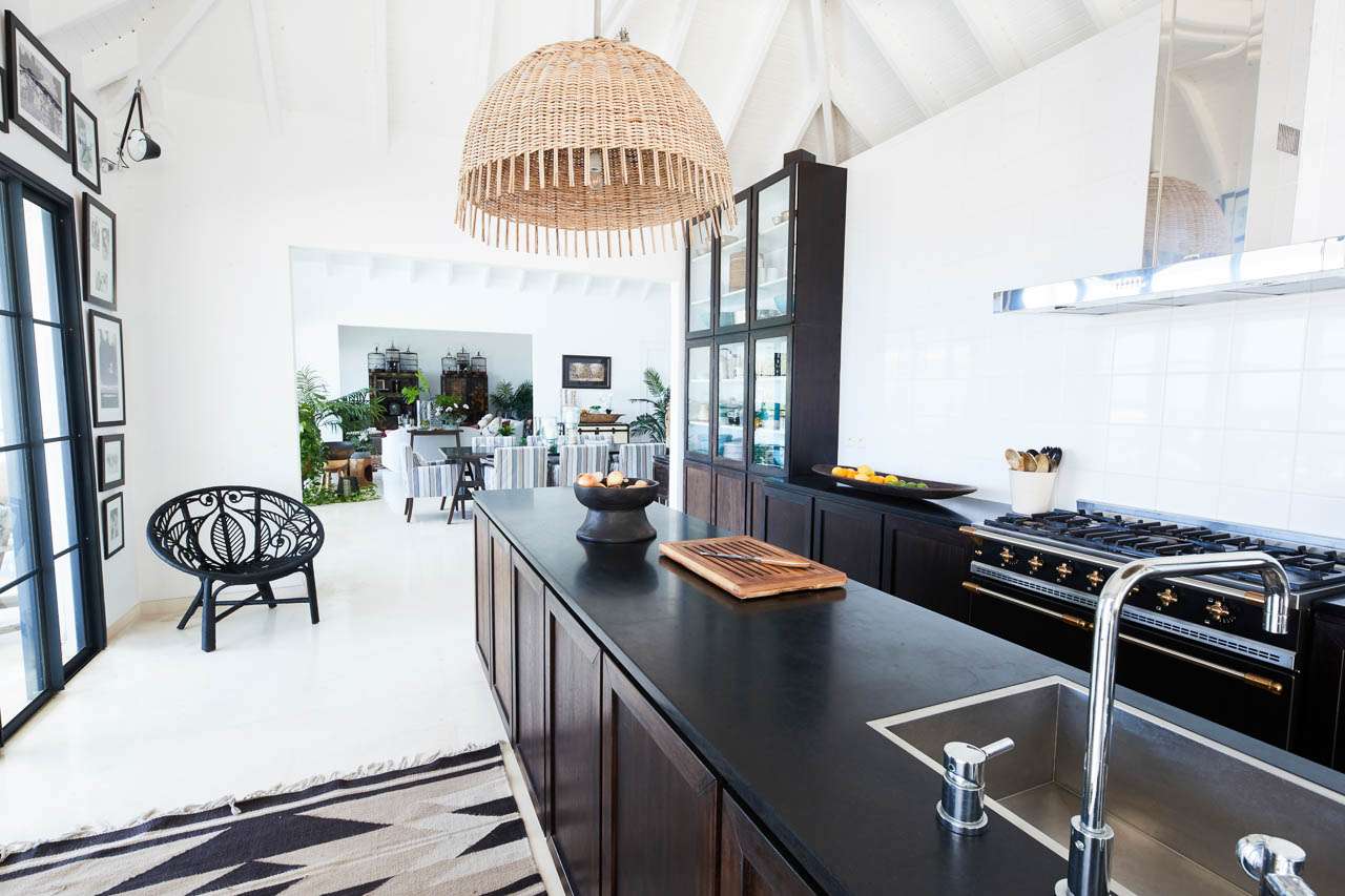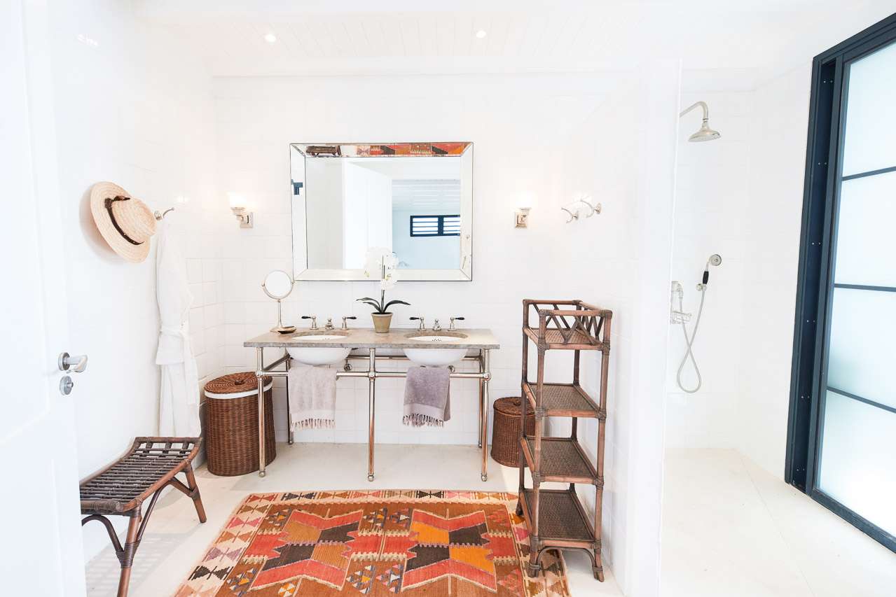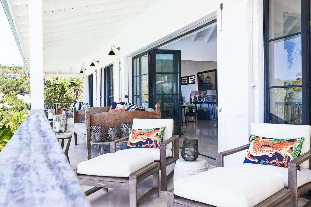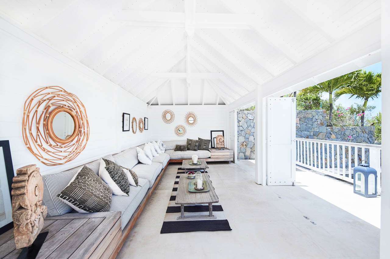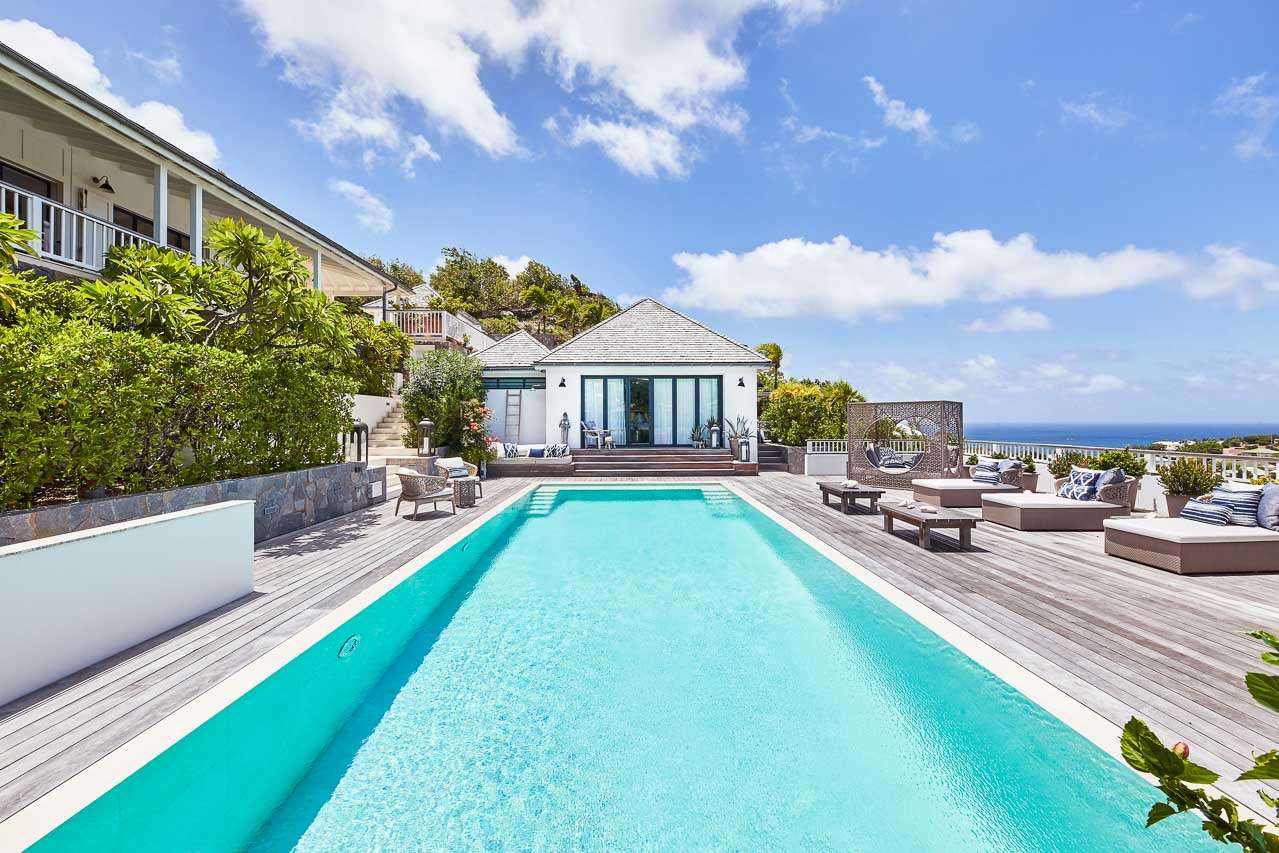 Welcome to Villa Amalie (villa code: WV KAM), a stunning 2-bedroom villa located in Marigot, St. Barts. Featuring stunning views over the bay, this design-led property is within minutes of several beaches and shopping. As soon as you step inside Villa Amalie, it’s love at first sight. This stylish villa blends a striking Scandinavian design aesthetic with rustic island elegance. Black and white hues contrast with rattan textures, weathered wood, and plenty of house plants, with artwork on the walls, weathered antique cabinets and tables, and unique décor. You’ll never tire of admiring the chic style of Villa Amalie, but just as alluring are the wonderful views over Marigot Bay. The verdant green hills roll down to meet the sparkling sea, with Turtle Island offshore glowing in the Caribbean sun. Both Marigot and Lorient beaches are a 5-minute drive, while Gustavia is 10 minutes by car. Spread over three levels, Villa Amalie enjoys a splendid blend of indoor and outdoor spaces. Stairs lead between all the levels, with the upper-level home to the main great room, combining the living area, dining room, and kitchen. All rooms on this level open to a covered balcony overlooking the pool area and views. The living room is bright and airy, with an eclectic décor adorning the antique furnishings. Soft sofas with patterned throws provide comfortable spots to kick back, with a flat-screen TV for movies. It’s also a great room for morning coffees and conversation, enjoying some quality time with family and friends. At the other end of the interconnected great room is the kitchen. One wall is covered with framed pictures, a striking design touch that makes this place feel like home. Preparing meals here is easy, with those inspiring views over Marigot Bay encouraging you to experiment with the local island recipes. Between the living room and kitchen is Villa Amalie’s dining room table, a beautiful setting to gather for a meal. There are plants on both sides, with a feature wall of woven hats adding a rustic, down-to-earth touch. There are two bedrooms in this expansive villa, both with plenty of graceful style and decor. Quiet, relaxed, and gorgeous, you’ll wake up each day refreshed and ready to explore the best of St. Barts. On the middle level of Villa Amalie is the master bedroom, tastefully decorated in black and white tones. The bedroom offers a king-sized bed and an ensuite bathroom. A private terrace surrounded by lush island ferns conceals a hot tub, a luxurious spot to toast to your island vacation. Descending one more level brings you to the second bedroom. Also decorated in striking black and white, this room has a king-sized bed, ensuite bathroom, and a private terrace with ocean views. With outdoor living spaces on the two upper levels, there’s plenty of space at Villa Amalie to entertain guests. Stretching the width of the upper-level great room, a covered balcony enjoys plenty of seating for kicking back with a cool drink and gazing out at the Caribbean. Also on the upper level is a separate gazebo, with another indoor lounge area open to the ocean views. The middle level is home to the inviting pool, surrounded by loungers for sunbathing, and a daybed underneath another gazebo, an ideal spot to read a good book or nap in the shade. During the December holidays, the villa rents at the full occupancy rate regardless of how many bedrooms are used.Please fill out the form to begin your inquiry and we will connect you with a seasoned villa rental specialist.