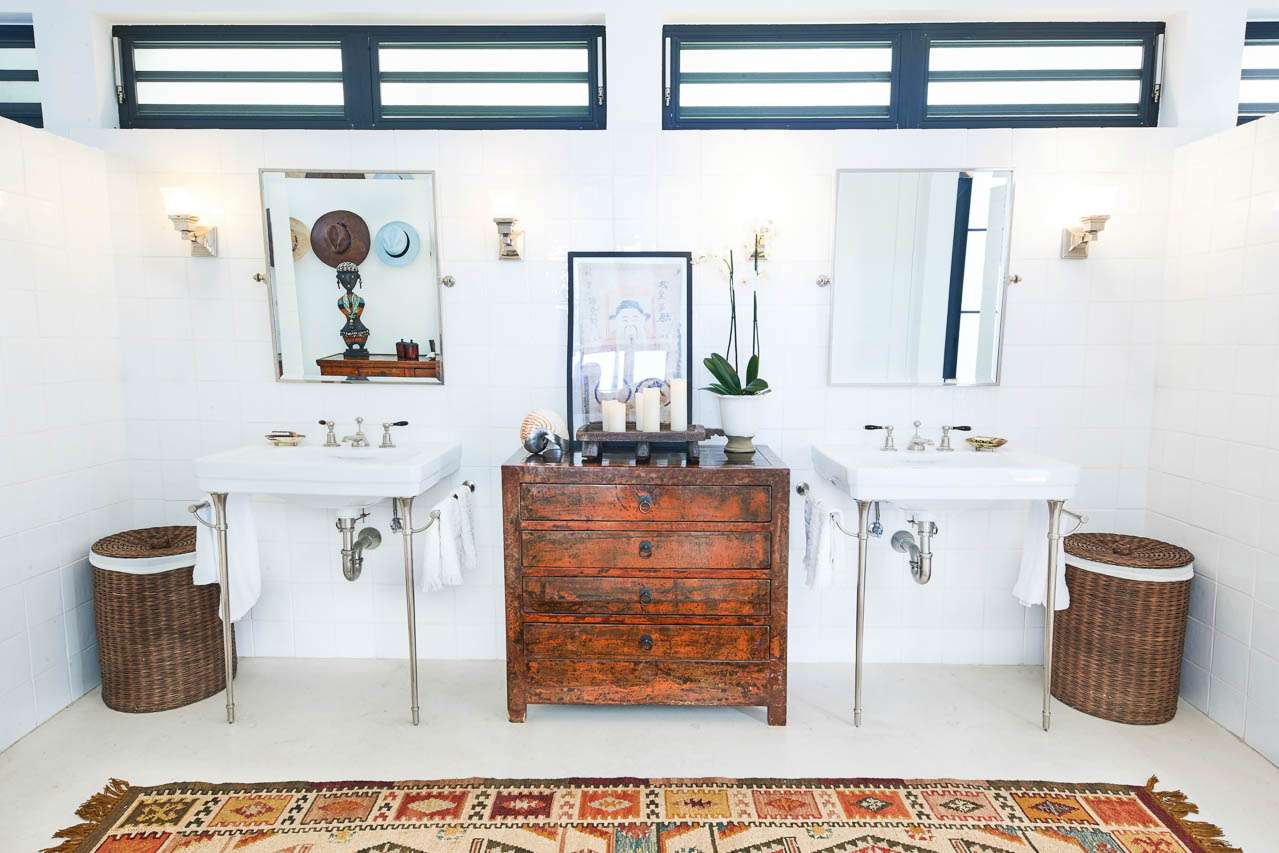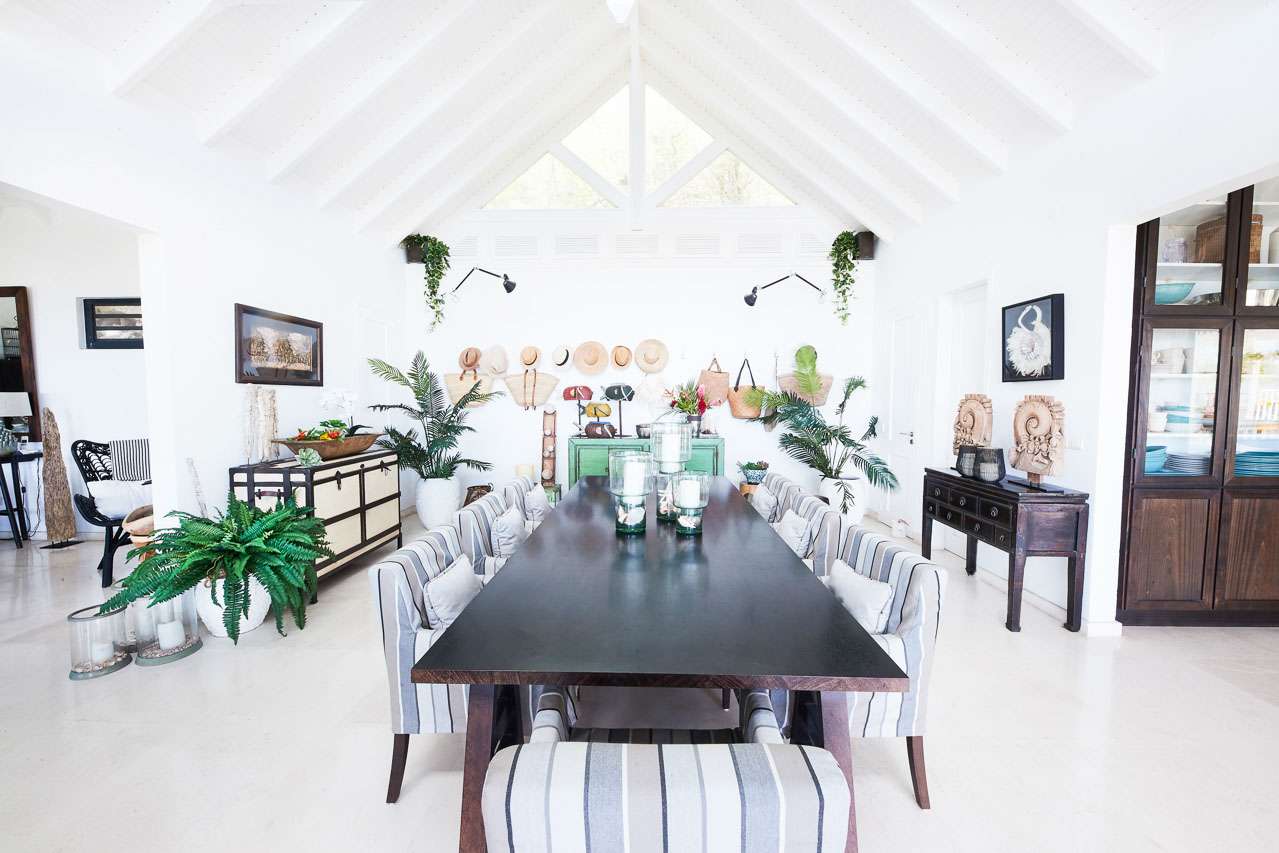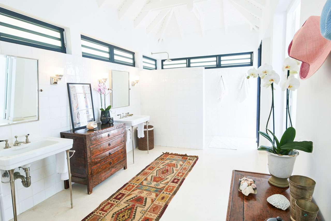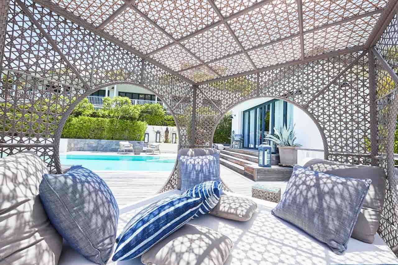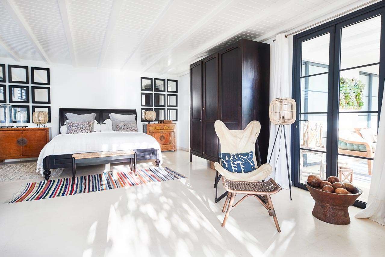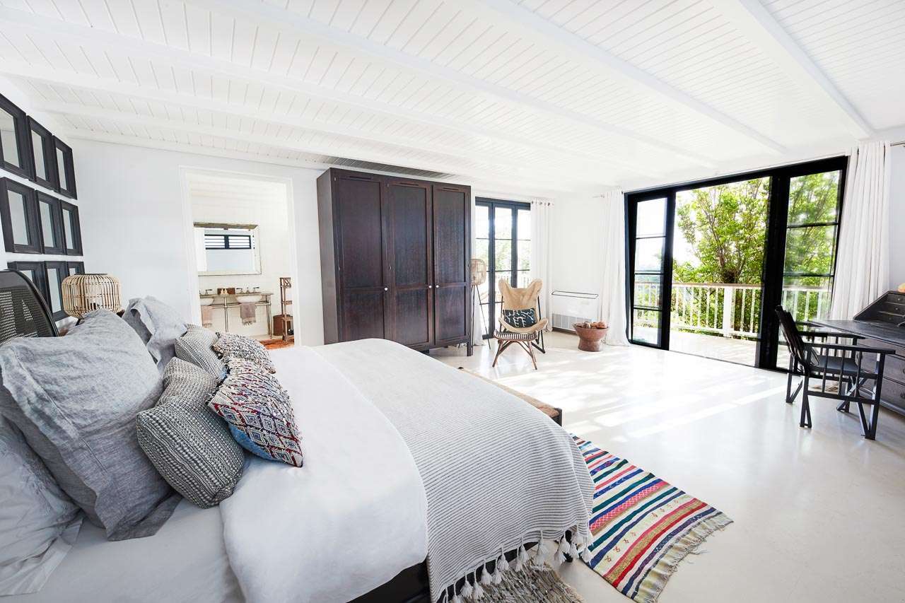 Welcome to Villa Amalie (villa code: WV KAM), a stunning 2-bedroom villa located in Marigot, St. Barts. Featuring stunning views over the bay, this design-led property is within minutes of several beaches and shopping. As soon as you step inside Villa Amalie, it’s love at first sight. This stylish villa blends a striking Scandinavian design aesthetic with rustic island elegance. Black and white hues contrast with rattan textures, weathered wood, and plenty of house plants, with artwork on the walls, weathered antique cabinets and tables, and unique décor. You’ll never tire of admiring the chic style of Villa Amalie, but just as alluring are the wonderful views over Marigot Bay. The verdant green hills roll down to meet the sparkling sea, with Turtle Island offshore glowing in the Caribbean sun. Both Marigot and Lorient beaches are a 5-minute drive, while Gustavia is 10 minutes by car. Spread over three levels, Villa Amalie enjoys a splendid blend of indoor and outdoor spaces. Stairs lead between all the levels, with the upper-level home to the main great room, combining the living area, dining room, and kitchen. All rooms on this level open to a covered balcony overlooking the pool area and views. The living room is bright and airy, with an eclectic décor adorning the antique furnishings. Soft sofas with patterned throws provide comfortable spots to kick back, with a flat-screen TV for movies. It’s also a great room for morning coffees and conversation, enjoying some quality time with family and friends. At the other end of the interconnected great room is the kitchen. One wall is covered with framed pictures, a striking design touch that makes this place feel like home. Preparing meals here is easy, with those inspiring views over Marigot Bay encouraging you to experiment with the local island recipes. Between the living room and kitchen is Villa Amalie’s dining room table, a beautiful setting to gather for a meal. There are plants on both sides, with a feature wall of woven hats adding a rustic, down-to-earth touch. There are two bedrooms in this expansive villa, both with plenty of graceful style and decor. Quiet, relaxed, and gorgeous, you’ll wake up each day refreshed and ready to explore the best of St. Barts. On the middle level of Villa Amalie is the master bedroom, tastefully decorated in black and white tones. The bedroom offers a king-sized bed and an ensuite bathroom. A private terrace surrounded by lush island ferns conceals a hot tub, a luxurious spot to toast to your island vacation. Descending one more level brings you to the second bedroom. Also decorated in striking black and white, this room has a king-sized bed, ensuite bathroom, and a private terrace with ocean views. With outdoor living spaces on the two upper levels, there’s plenty of space at Villa Amalie to entertain guests. Stretching the width of the upper-level great room, a covered balcony enjoys plenty of seating for kicking back with a cool drink and gazing out at the Caribbean. Also on the upper level is a separate gazebo, with another indoor lounge area open to the ocean views. The middle level is home to the inviting pool, surrounded by loungers for sunbathing, and a daybed underneath another gazebo, an ideal spot to read a good book or nap in the shade. During the December holidays, the villa rents at the full occupancy rate regardless of how many bedrooms are used.Please fill out the form to begin your inquiry and we will connect you with a seasoned villa rental specialist.