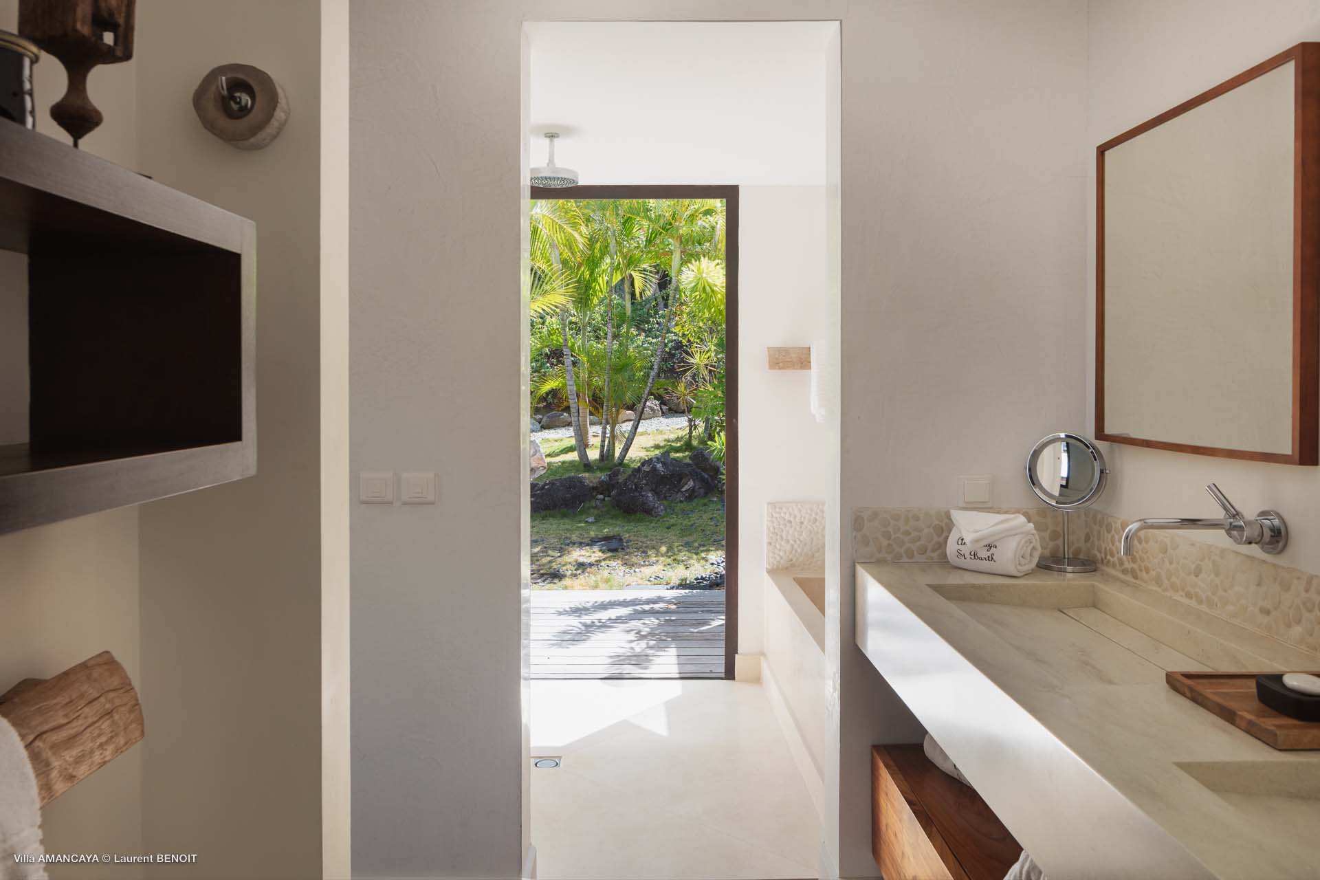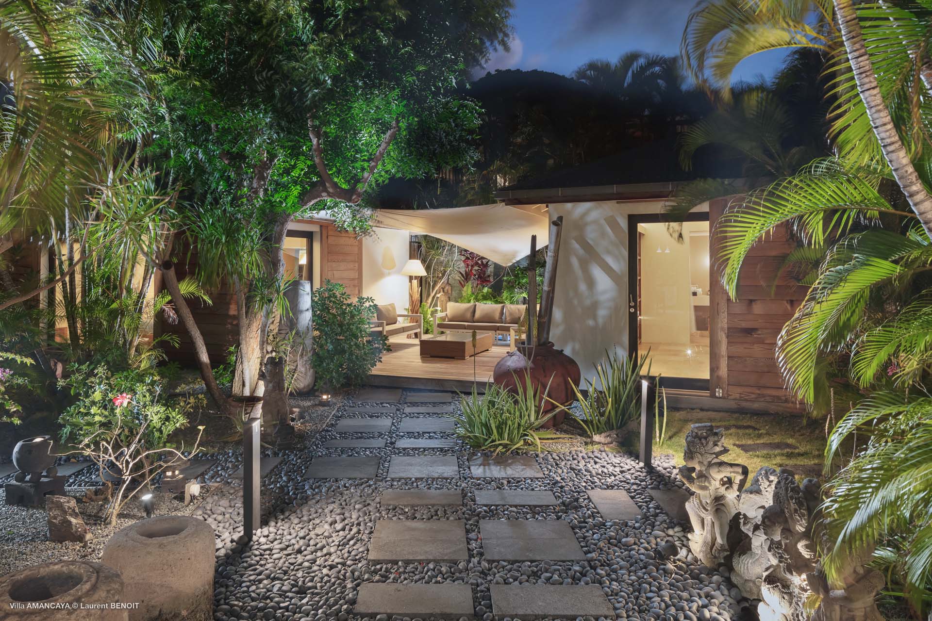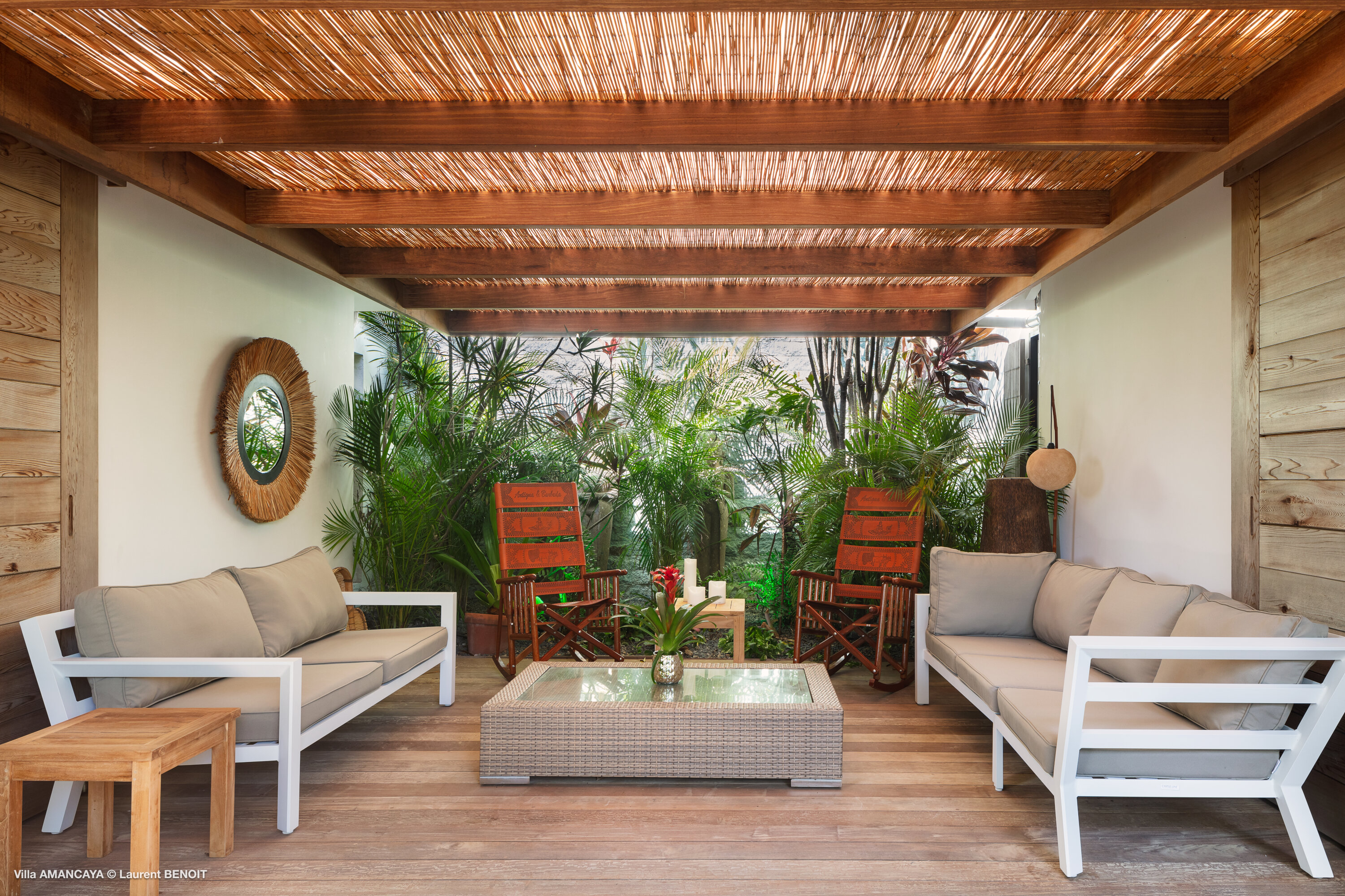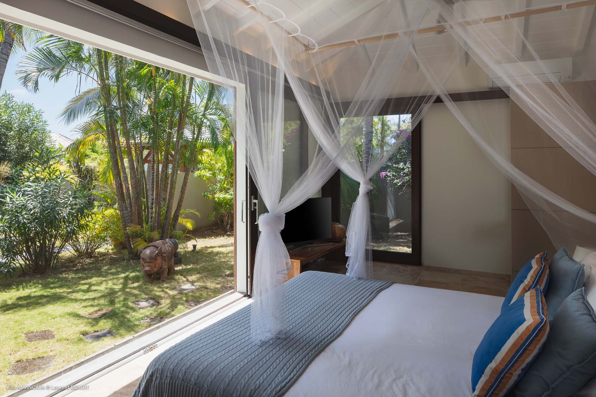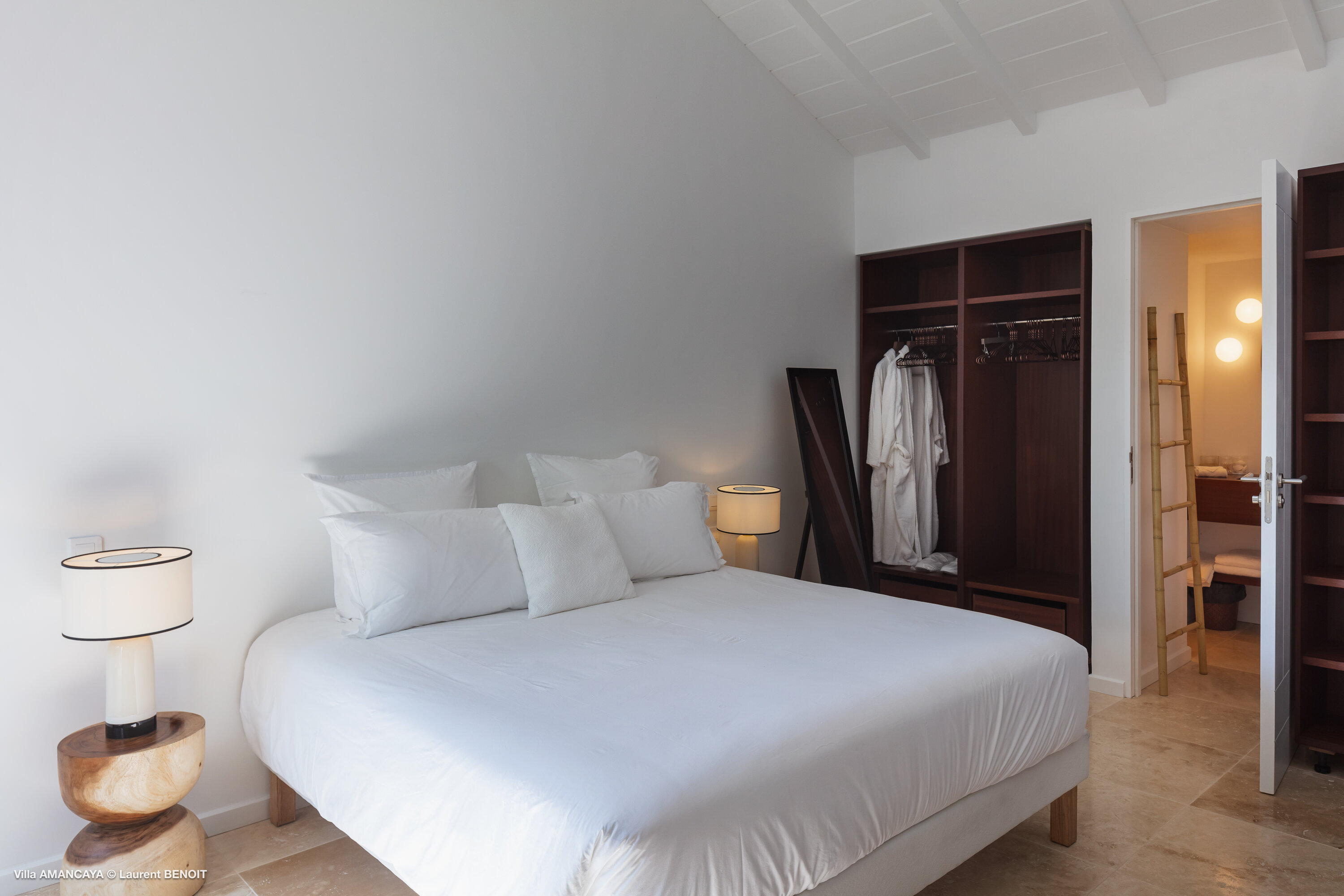 Castaway to Villa Amancaya (villa code: WV KAY), a luxurious 6-bedroom villa located in Anse des Cayes, St. Barts. This private, hillside property has breathtaking views within minutes of several beaches, shopping, and incredible restaurants. A private and luxurious getaway, Villa Amancaya is St. Barts at its very best. The rustic and high-end interiors combine a laid-back island style with an Oriental influence, while outside, the views are incredible. Decorated with lavender and teak accents, this is an oasis of peace and quiet for you to enjoy a laid-back vacation in St. Barts. Nestled within a lush garden above Anse de Cayes, Villa Amancaya is a fantastic choice for a large family gathering or group of friends traveling together. The beach is a short drive away, as are St. Jean and Gustavia, both offering fantastic dining options. This is a villa made for a carefree getaway in St. Barts. Spread across the main house and several bungalows, Villa Amancaya offers plenty of space to come together as a group or find some solitude. In the main house, there’s a decadent mix of Caribbean style and Zen-like décor. The living room has a large L-shaped sofa and opens to the pool and view. Shelves behind the sofa feature a range of interesting décor, from coffee table books to elegant vases and ornate teapots. The room takes advantage of the view, with the incredible deep blues of the Caribbean Sea drawing your gaze. Next to the living room is Villa Amancaya’s well-equipped kitchen. From easy snacks to gourmet island dinners, this space makes it easy to prepare meals during your stay. Our concierge can even organize private chefs to cater a meal or two, leaving you to enjoy a sunset drink and aperitif while you wait. There are two dining areas to choose from, both outside so you can pair your food with the dazzling views. One sits next to the pool under the covered terrace, while the other is closer to the edge, underneath a shaded gazebo. Both make it easy to entertain. There’s a total of 6 bedrooms spread across Villa Amancaya, providing privacy between guests. In the main building are three bedrooms, each with a king-sized bed and ensuite bathroom with shower. One faces the pool, while the other opens to the villa’s garden with a fountain. Two more bedrooms are in separate bungalows, both with a king-sized bed and ensuite bathroom. The 6th bedroom is located at the rear of the garden in another guest cottage, featuring a king or 2 twin beds and ensuite bathroom. The outdoor spaces at Villa Amancaya are a highlight of this property. There’s a carefree and idyllic feel to the terraces, made from gorgeous natural wood and bordered by lush palms and tropical plants. The covered terrace has several seating areas, and wonderful spots to kick back with a cool drink and gaze out at the yachts in the bay. Steps lead down to the swimming pool, refreshing and cool in the heat of the day. Loungers for sunbathing line the water, ideal places to settle in with a book or drift off to sleep with the breeze rustling through the garden. At the end of the pool is another gazebo, this one with an open-air fitness room and a spot for decadent massages. The interior garden is another relaxing spot to kick back, a Zen-like space to disconnect from the rushes of modern life. Villa Amancaya has a range of high-end amenities to help you relax during your stay. During the December holidays, the villa rents at the full occupancy rate regardless of how many bedrooms are used.Please fill out the form to begin your inquiry and we will connect you with a seasoned villa rental specialist.