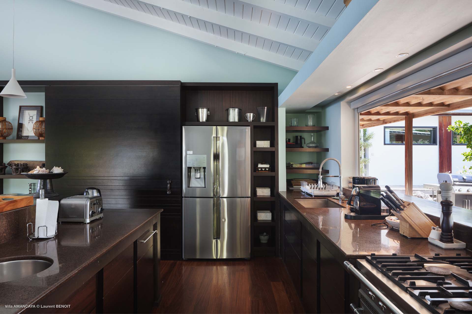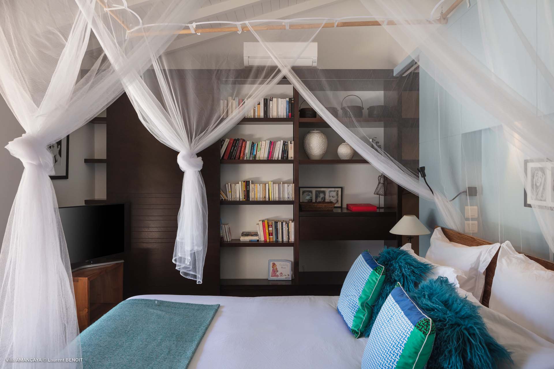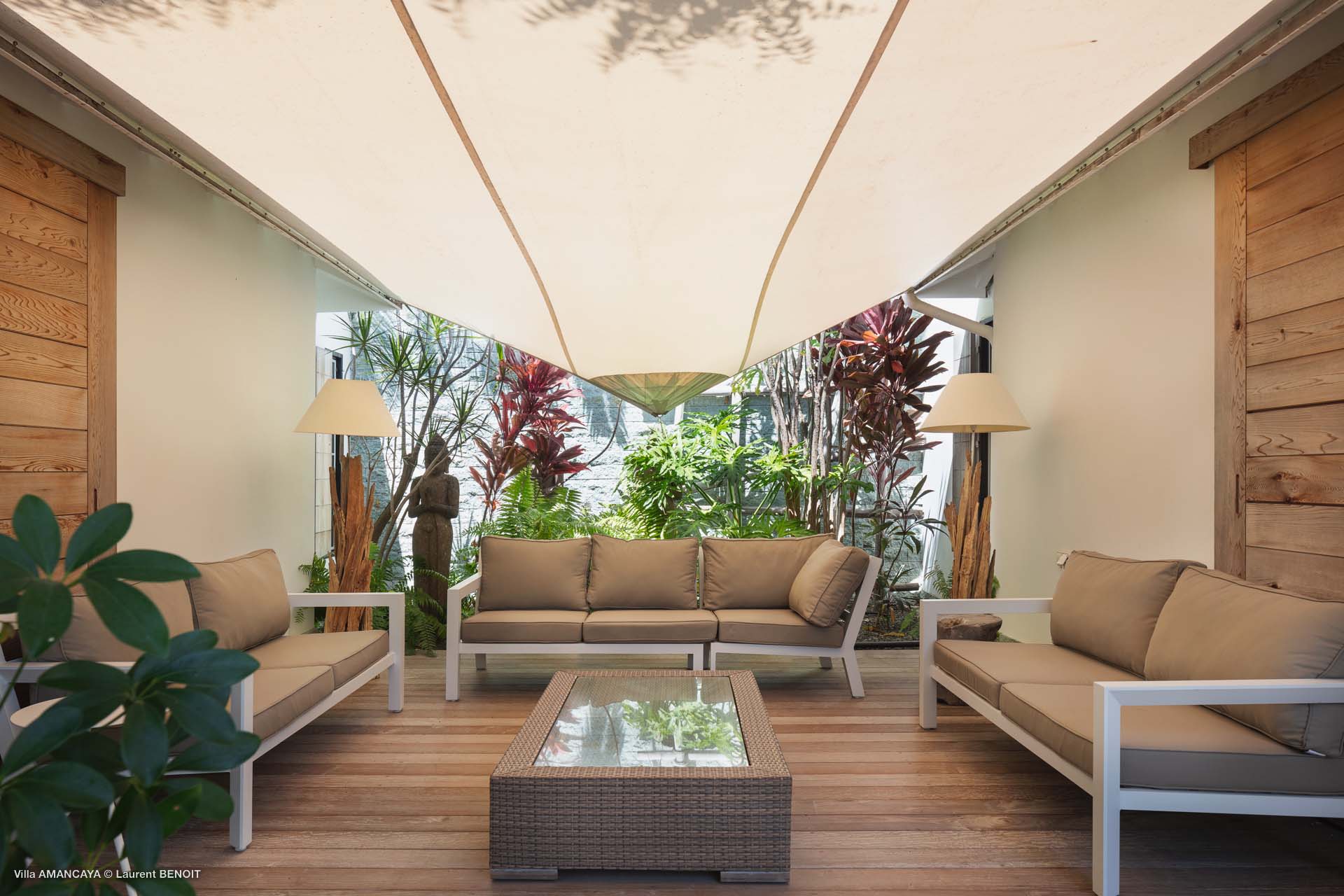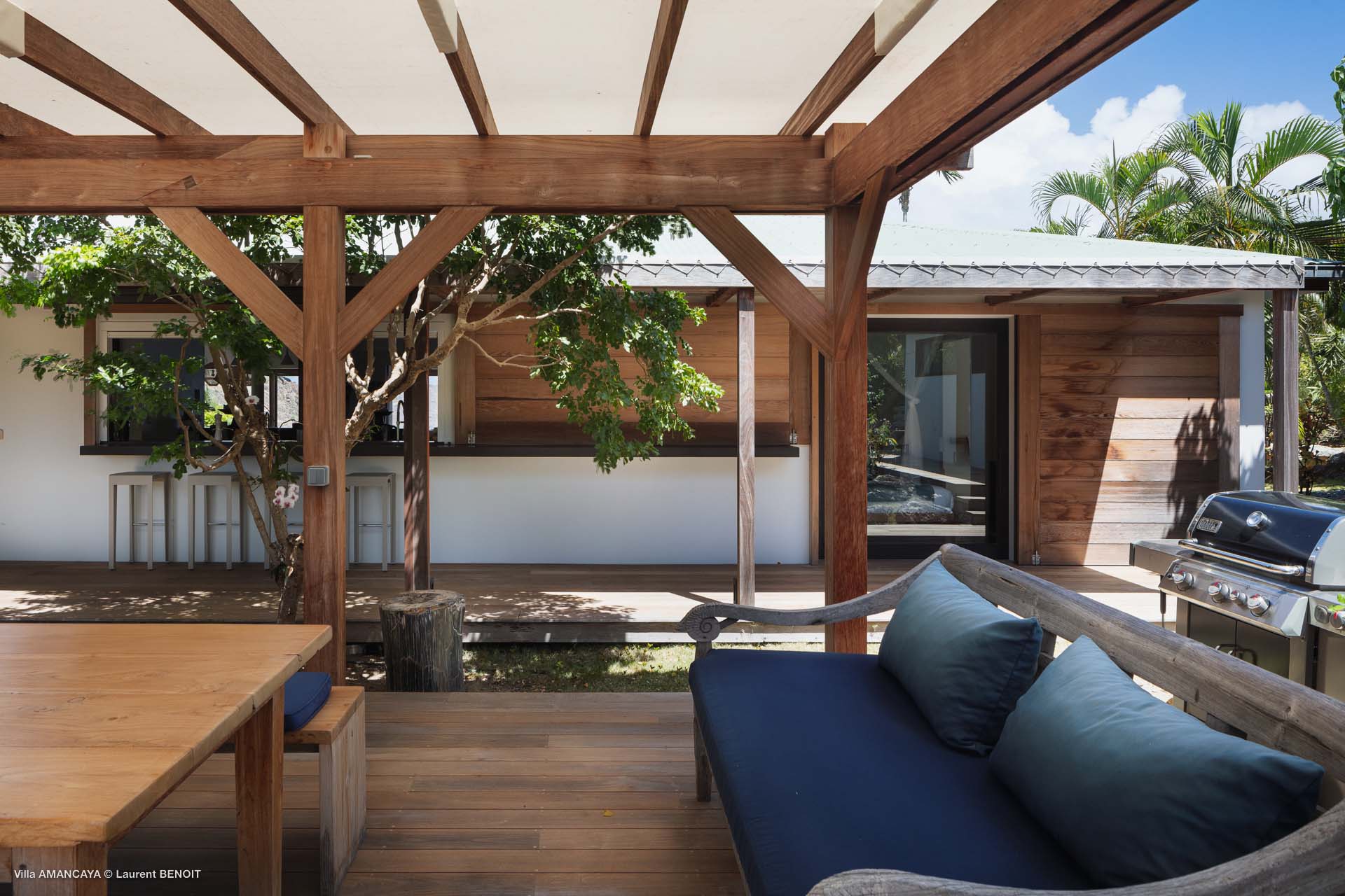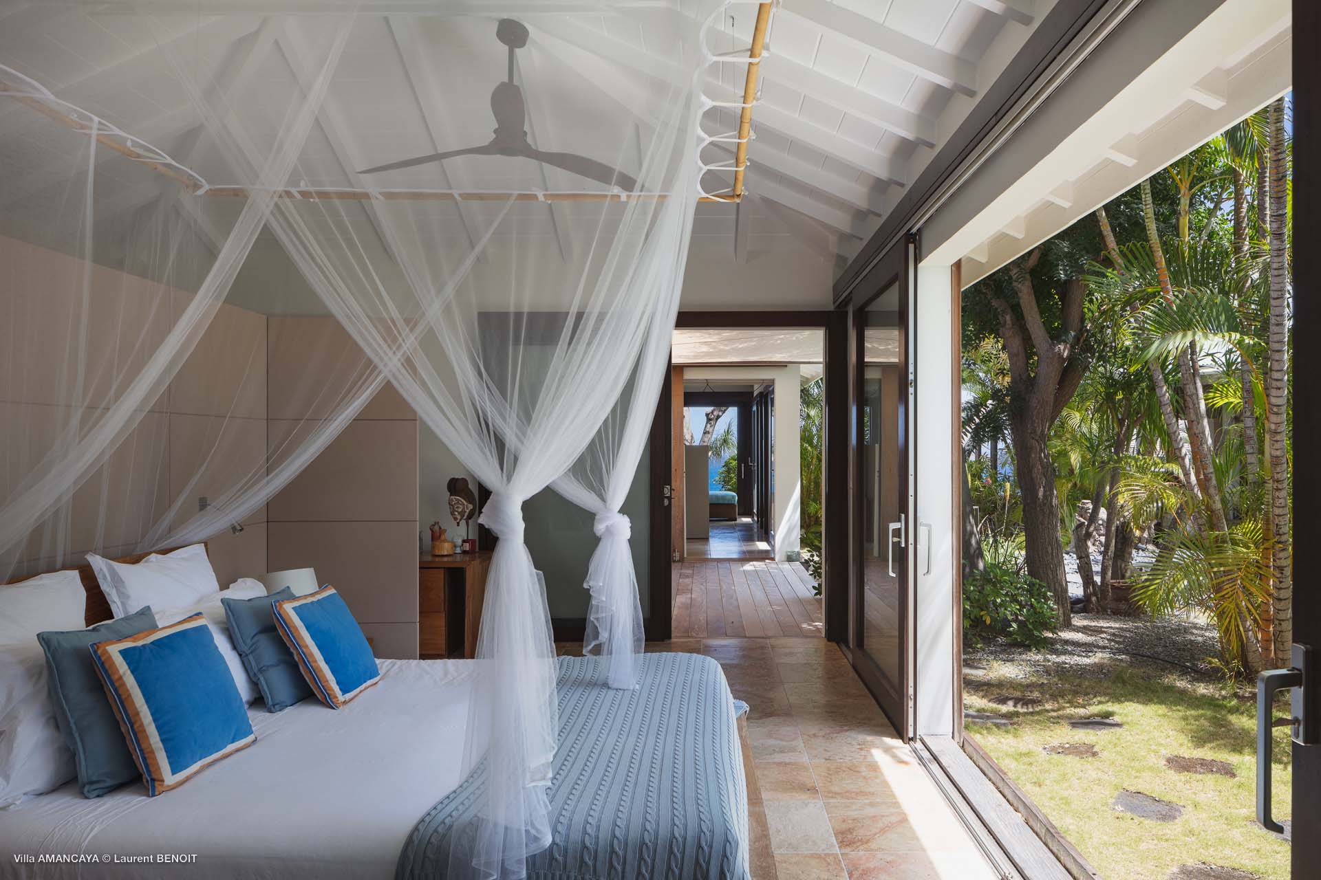 Castaway to Villa Amancaya (villa code: WV KAY), a luxurious 6-bedroom villa located in Anse des Cayes, St. Barts. This private, hillside property has breathtaking views within minutes of several beaches, shopping, and incredible restaurants. A private and luxurious getaway, Villa Amancaya is St. Barts at its very best. The rustic and high-end interiors combine a laid-back island style with an Oriental influence, while outside, the views are incredible. Decorated with lavender and teak accents, this is an oasis of peace and quiet for you to enjoy a laid-back vacation in St. Barts. Nestled within a lush garden above Anse de Cayes, Villa Amancaya is a fantastic choice for a large family gathering or group of friends traveling together. The beach is a short drive away, as are St. Jean and Gustavia, both offering fantastic dining options. This is a villa made for a carefree getaway in St. Barts. Spread across the main house and several bungalows, Villa Amancaya offers plenty of space to come together as a group or find some solitude. In the main house, there’s a decadent mix of Caribbean style and Zen-like décor. The living room has a large L-shaped sofa and opens to the pool and view. Shelves behind the sofa feature a range of interesting décor, from coffee table books to elegant vases and ornate teapots. The room takes advantage of the view, with the incredible deep blues of the Caribbean Sea drawing your gaze. Next to the living room is Villa Amancaya’s well-equipped kitchen. From easy snacks to gourmet island dinners, this space makes it easy to prepare meals during your stay. Our concierge can even organize private chefs to cater a meal or two, leaving you to enjoy a sunset drink and aperitif while you wait. There are two dining areas to choose from, both outside so you can pair your food with the dazzling views. One sits next to the pool under the covered terrace, while the other is closer to the edge, underneath a shaded gazebo. Both make it easy to entertain. There’s a total of 6 bedrooms spread across Villa Amancaya, providing privacy between guests. In the main building are three bedrooms, each with a king-sized bed and ensuite bathroom with shower. One faces the pool, while the other opens to the villa’s garden with a fountain. Two more bedrooms are in separate bungalows, both with a king-sized bed and ensuite bathroom. The 6th bedroom is located at the rear of the garden in another guest cottage, featuring a king or 2 twin beds and ensuite bathroom. The outdoor spaces at Villa Amancaya are a highlight of this property. There’s a carefree and idyllic feel to the terraces, made from gorgeous natural wood and bordered by lush palms and tropical plants. The covered terrace has several seating areas, and wonderful spots to kick back with a cool drink and gaze out at the yachts in the bay. Steps lead down to the swimming pool, refreshing and cool in the heat of the day. Loungers for sunbathing line the water, ideal places to settle in with a book or drift off to sleep with the breeze rustling through the garden. At the end of the pool is another gazebo, this one with an open-air fitness room and a spot for decadent massages. The interior garden is another relaxing spot to kick back, a Zen-like space to disconnect from the rushes of modern life. Villa Amancaya has a range of high-end amenities to help you relax during your stay. During the December holidays, the villa rents at the full occupancy rate regardless of how many bedrooms are used.Please fill out the form to begin your inquiry and we will connect you with a seasoned villa rental specialist.
