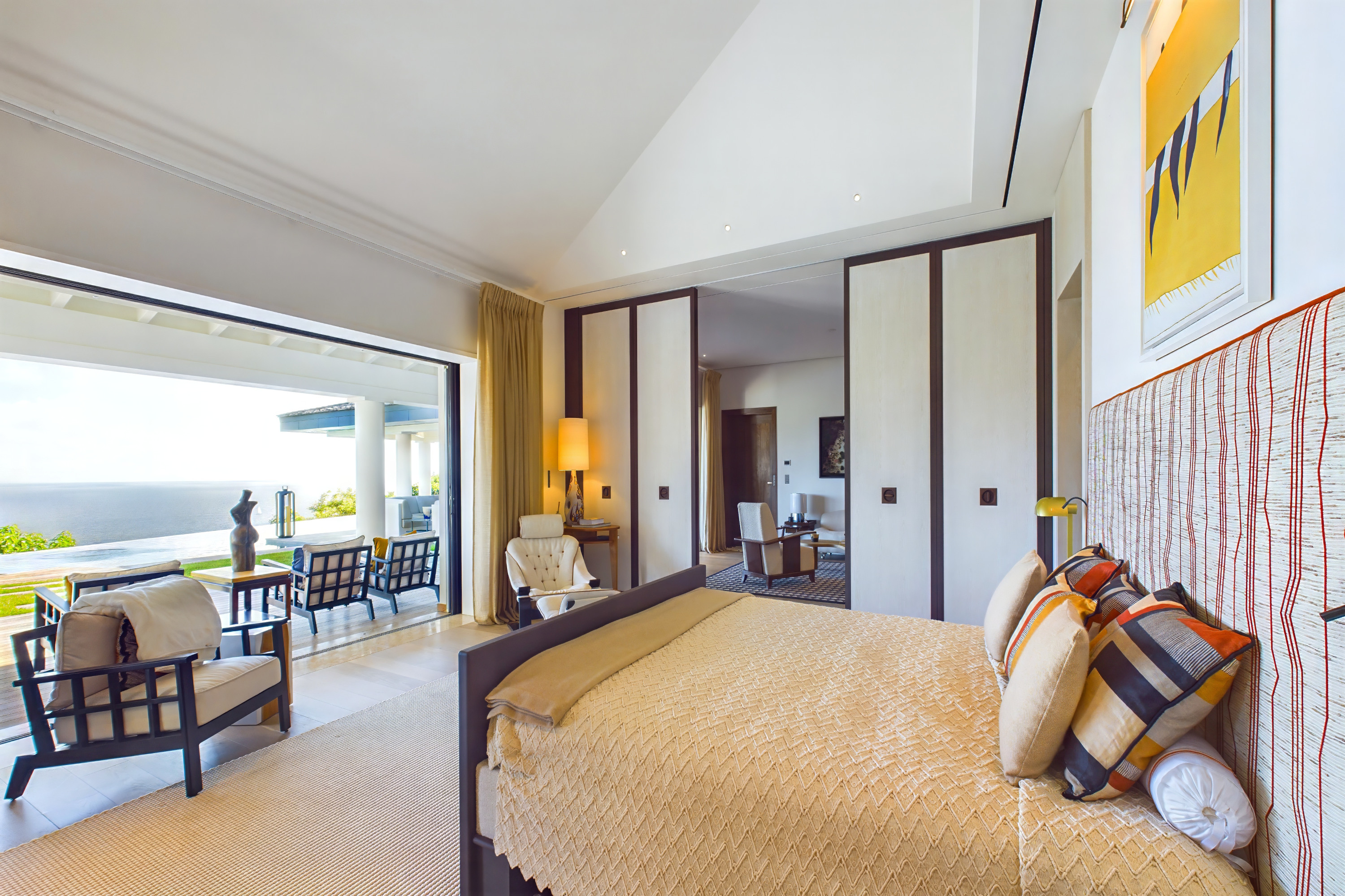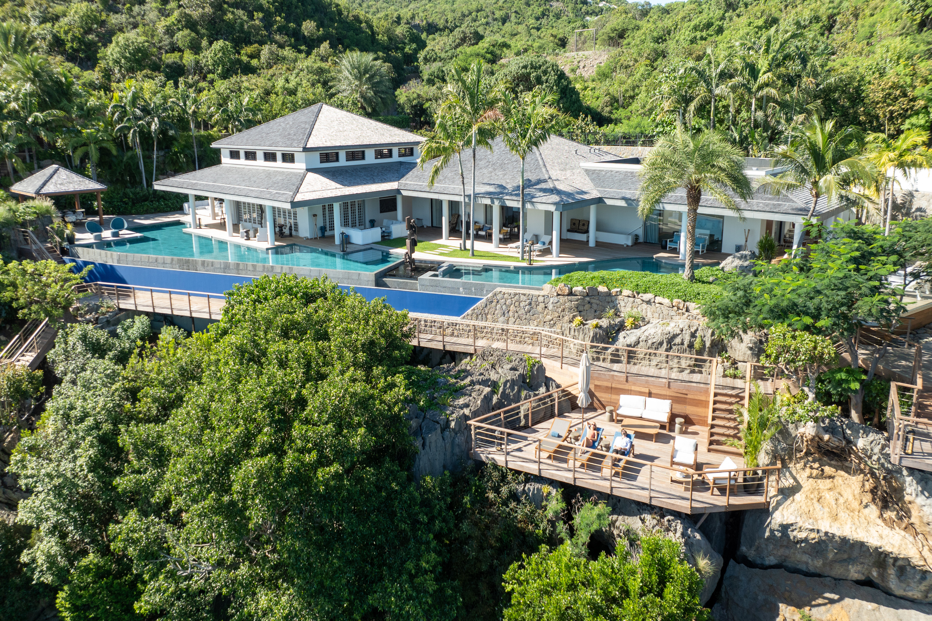 In the prestigious Gouverneur Heights is Villa Amitie (villa code: WV TIE), a 5-bedroom villa that invites you to discover a peaceful haven where luxury seamlessly blends with nature. With breathtaking views of Gouverneur Bay and the Caribbean Sea, this exceptional villa offers an unforgettable experience. From the moment you arrive, Villa Amitie welcomes you through a charming interior courtyard, immediately immersing you in an atmosphere of serenity and sophistication. Bathed in natural light, the villa is defined by its expansive open spaces, offering striking vistas of the surrounding landscape. A passion for art is evident in every corner of this magnificent residence, especially in the vast living room, which is adorned with modern and contemporary art pieces. Unique and refined artwork creates a chic and elegant ambiance throughout the space. Majestic "à la française" doors open generously onto a terrace that runs the length of the villa, revealing the pool and offering an ideal setting for relaxation in style. The villa features five luxurious bedrooms, including two expansive master suites, each with its own private bathroom, ensuring both privacy and comfort for all guests. There is also a 2-bedroom apartment provided for staff. For wellness enthusiasts, Villa Amitie offers a fitness room and a hammam, allowing you to recharge while enjoying the spectacular views. Three swimming pools enhance the villa's elegance, providing multiple opportunities for relaxation. Villa Amitie is the perfect retreat for those seeking tranquility and privacy. Surrounded by lush vegetation, the property amplifies the sense of an exclusive getaway, with carefully curated viewpoints that showcase the beauty of the natural surroundings.Please fill out the form to begin your inquiry and we will connect you with a seasoned villa rental specialist.