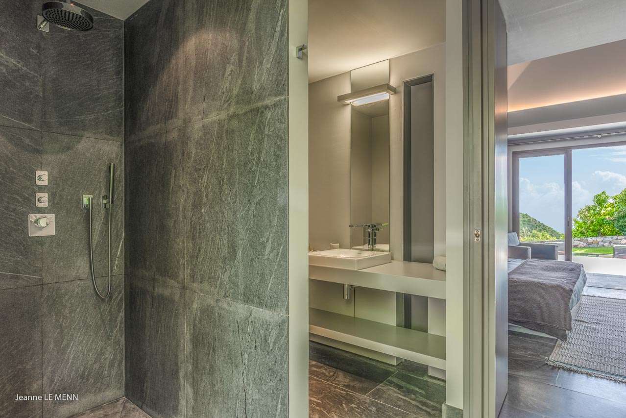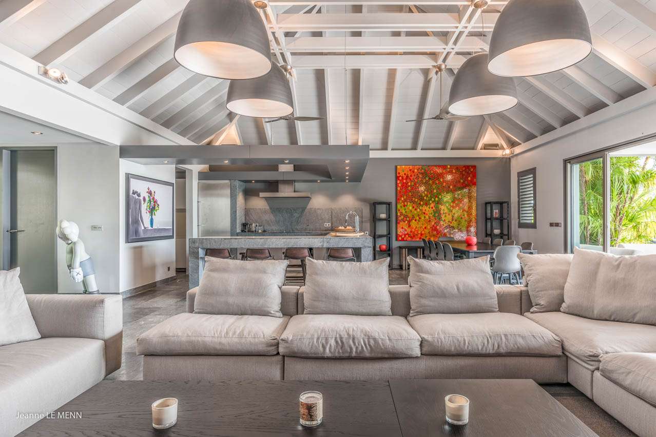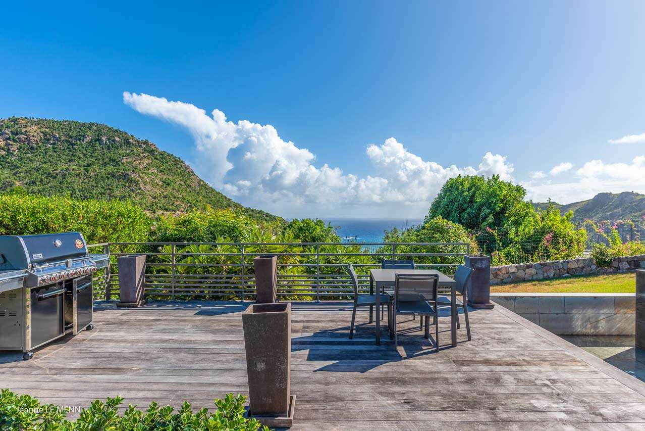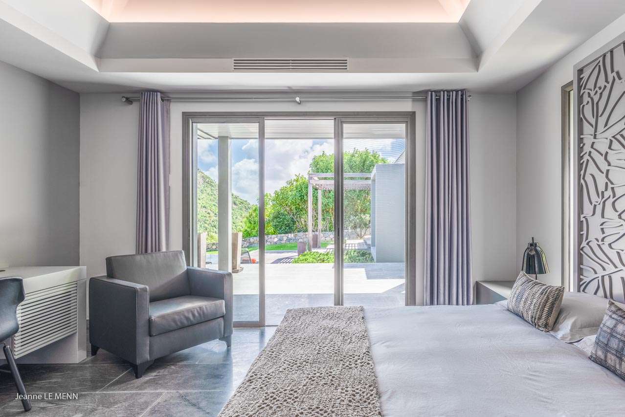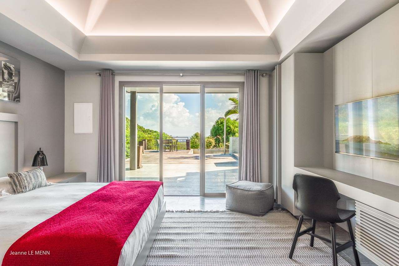 Welcome to Villa Angel (villa code: WV AVV), a stunning 6-bedroom villa in Vitet, St. Barts. Airy, contemporary, and with gorgeous ocean views, this is a sophisticated island villa equally suited for large groups of friends or a family trip. The expansive interiors at Villa Angel are modern and elegant, with hues of gray, white, and brown creating a fabulous backdrop for a wonderful collection of vibrant artworks. Awash with the Caribbean breeze and natural light, this home is brimming with smart features and a beautiful design – an idyllic choice for a Caribbean getaway. Nestled in the hills high above Grand Fond, Villa Angel enjoys fantastic views over the southeast corner of St. Barts. Private, quiet, and comfortable, this luxurious St. Barts villa is a 5-minute drive from the beach and around 10 minutes to shops and restaurants. Plenty of space both inside and out at Villa Angel makes this a dreamy choice for a stay in St. Barts. There are plenty of seating options in sun and shade, a spacious main room, and bedrooms all nearly equal in size. Outside, lush palms sway in the island breeze. The large great room features the living room, dining area, and kitchen. An array of large ceiling fans and chic light fixtures hang down from the ceiling, while the hues of contemporary gray contrast with the punchy artwork. A large sectional sofa at one end next to the entertainment unit is a great spot to relax or watch a movie with your entire group. Ocean breezes wash through Villa Angel’s kitchen, a spacious room that lets you turn cooking into a social affair. You could gather at the long breakfast bar for cocktails while you prepare a meal, or let our concierge arrange a professional chef for an evening and enjoy watching them work their magic. Next to the kitchen is a large dining table, a fabulous setting for meals with family and friends. There’s seating for up to 12 here. There are four bedrooms just off the main room, with two on each side. Each of these rooms has a Euro king-sized bed, an ensuite bathroom, large closets, and TVs with U.S. satellite channels. The luxurious ensuites also come with both indoor and outdoor showers. The master bedroom is in a separate bungalow at one end of the pool, accessed through a door off the main terrace. This space features a Euro king-sized bed, his-and-her closets, a large ensuite with a shower and a bath, and a private office space. The sixth and final bedroom is in another separate bungalow, this one next to the entrance to Villa Angel. This space is more suited to staff or teenagers, but can also accommodate a sixth couple. There’s either a king-sized bed or a pair of twins, a separate kitchenette with a fridge, an ensuite bathroom, and a private garden terrace. The clean and beautiful design of Villa Angel extends to its outdoor living spaces, where you can kick back with a cool drink and gaze out at the sparkling Caribbean. There are no other villas within view from this lofty vantage point; you’ll feel as if you have the island to yourself. On the covered terrace area, a low-slung chaise lounge is ideal for reading, relaxing, or hosting a sunset cocktail hour. Sunseekers will love the loungers that line the pool, letting you bask in the island rays between refreshing dips in the water. There’s also a grill area for island-style cookouts, an outdoor shower, and a lush lawn area for more leisurely days spent relaxing outside. * Note - €200 key deposit per room, will be refunded if all keys are returned.Please fill out the form to begin your inquiry and we will connect you with a seasoned villa rental specialist.