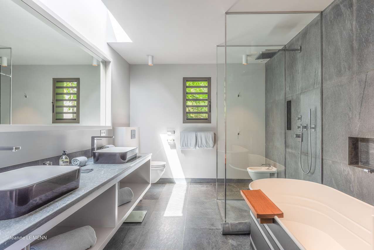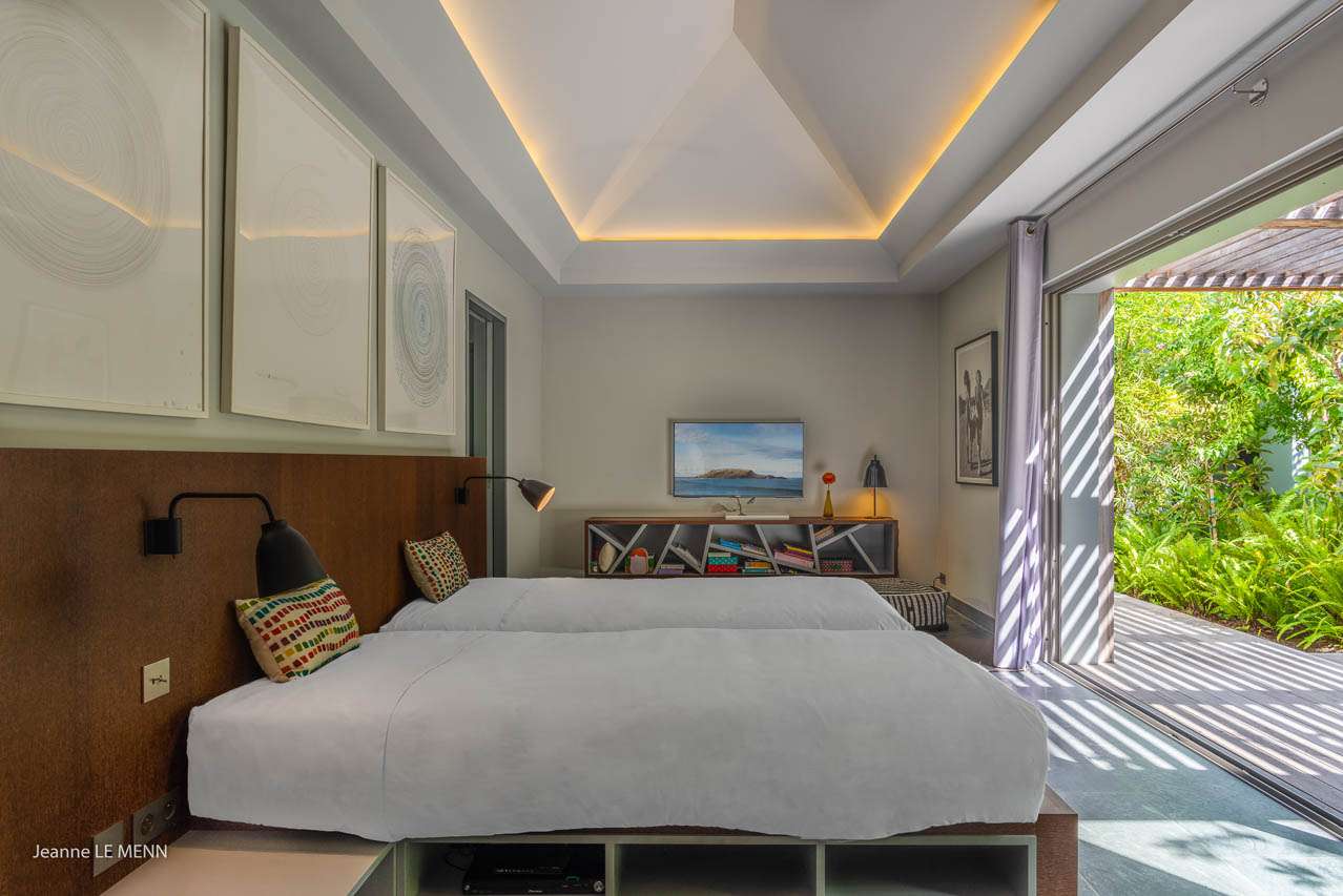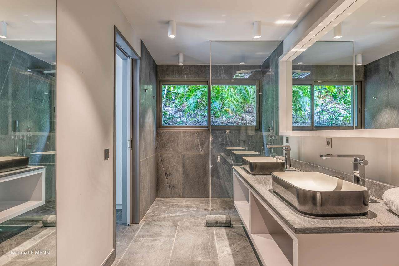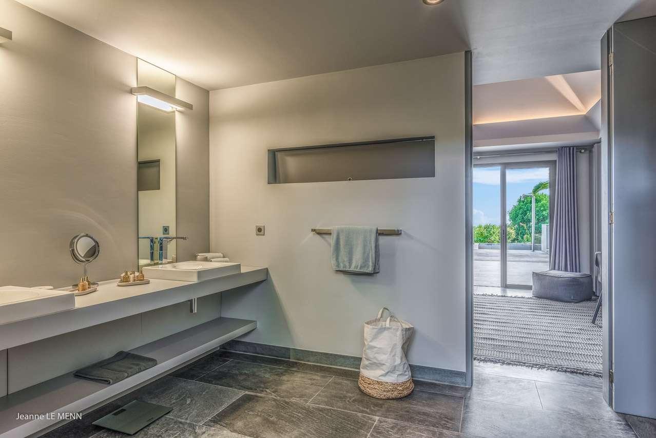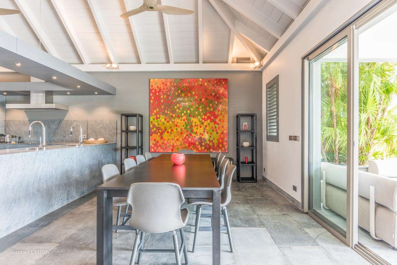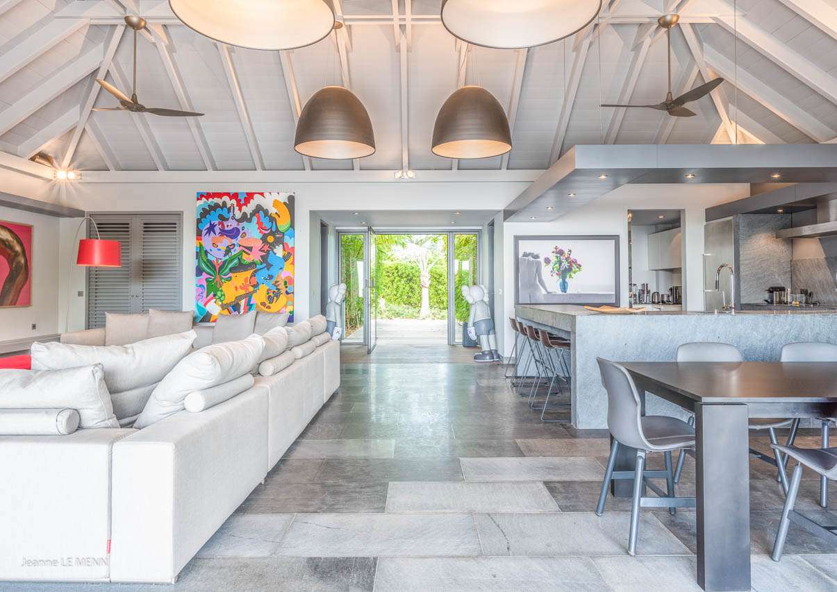 Welcome to Villa Angel (villa code: WV AVV), a stunning 6-bedroom villa in Vitet, St. Barts. Airy, contemporary, and with gorgeous ocean views, this is a sophisticated island villa equally suited for large groups of friends or a family trip. The expansive interiors at Villa Angel are modern and elegant, with hues of gray, white, and brown creating a fabulous backdrop for a wonderful collection of vibrant artworks. Awash with the Caribbean breeze and natural light, this home is brimming with smart features and a beautiful design – an idyllic choice for a Caribbean getaway. Nestled in the hills high above Grand Fond, Villa Angel enjoys fantastic views over the southeast corner of St. Barts. Private, quiet, and comfortable, this luxurious St. Barts villa is a 5-minute drive from the beach and around 10 minutes to shops and restaurants. Plenty of space both inside and out at Villa Angel makes this a dreamy choice for a stay in St. Barts. There are plenty of seating options in sun and shade, a spacious main room, and bedrooms all nearly equal in size. Outside, lush palms sway in the island breeze. The large great room features the living room, dining area, and kitchen. An array of large ceiling fans and chic light fixtures hang down from the ceiling, while the hues of contemporary gray contrast with the punchy artwork. A large sectional sofa at one end next to the entertainment unit is a great spot to relax or watch a movie with your entire group. Ocean breezes wash through Villa Angel’s kitchen, a spacious room that lets you turn cooking into a social affair. You could gather at the long breakfast bar for cocktails while you prepare a meal, or let our concierge arrange a professional chef for an evening and enjoy watching them work their magic. Next to the kitchen is a large dining table, a fabulous setting for meals with family and friends. There’s seating for up to 12 here. There are four bedrooms just off the main room, with two on each side. Each of these rooms has a Euro king-sized bed, an ensuite bathroom, large closets, and TVs with U.S. satellite channels. The luxurious ensuites also come with both indoor and outdoor showers. The master bedroom is in a separate bungalow at one end of the pool, accessed through a door off the main terrace. This space features a Euro king-sized bed, his-and-her closets, a large ensuite with a shower and a bath, and a private office space. The sixth and final bedroom is in another separate bungalow, this one next to the entrance to Villa Angel. This space is more suited to staff or teenagers, but can also accommodate a sixth couple. There’s either a king-sized bed or a pair of twins, a separate kitchenette with a fridge, an ensuite bathroom, and a private garden terrace. The clean and beautiful design of Villa Angel extends to its outdoor living spaces, where you can kick back with a cool drink and gaze out at the sparkling Caribbean. There are no other villas within view from this lofty vantage point; you’ll feel as if you have the island to yourself. On the covered terrace area, a low-slung chaise lounge is ideal for reading, relaxing, or hosting a sunset cocktail hour. Sunseekers will love the loungers that line the pool, letting you bask in the island rays between refreshing dips in the water. There’s also a grill area for island-style cookouts, an outdoor shower, and a lush lawn area for more leisurely days spent relaxing outside. * Note - €200 key deposit per room, will be refunded if all keys are returned.Please fill out the form to begin your inquiry and we will connect you with a seasoned villa rental specialist.