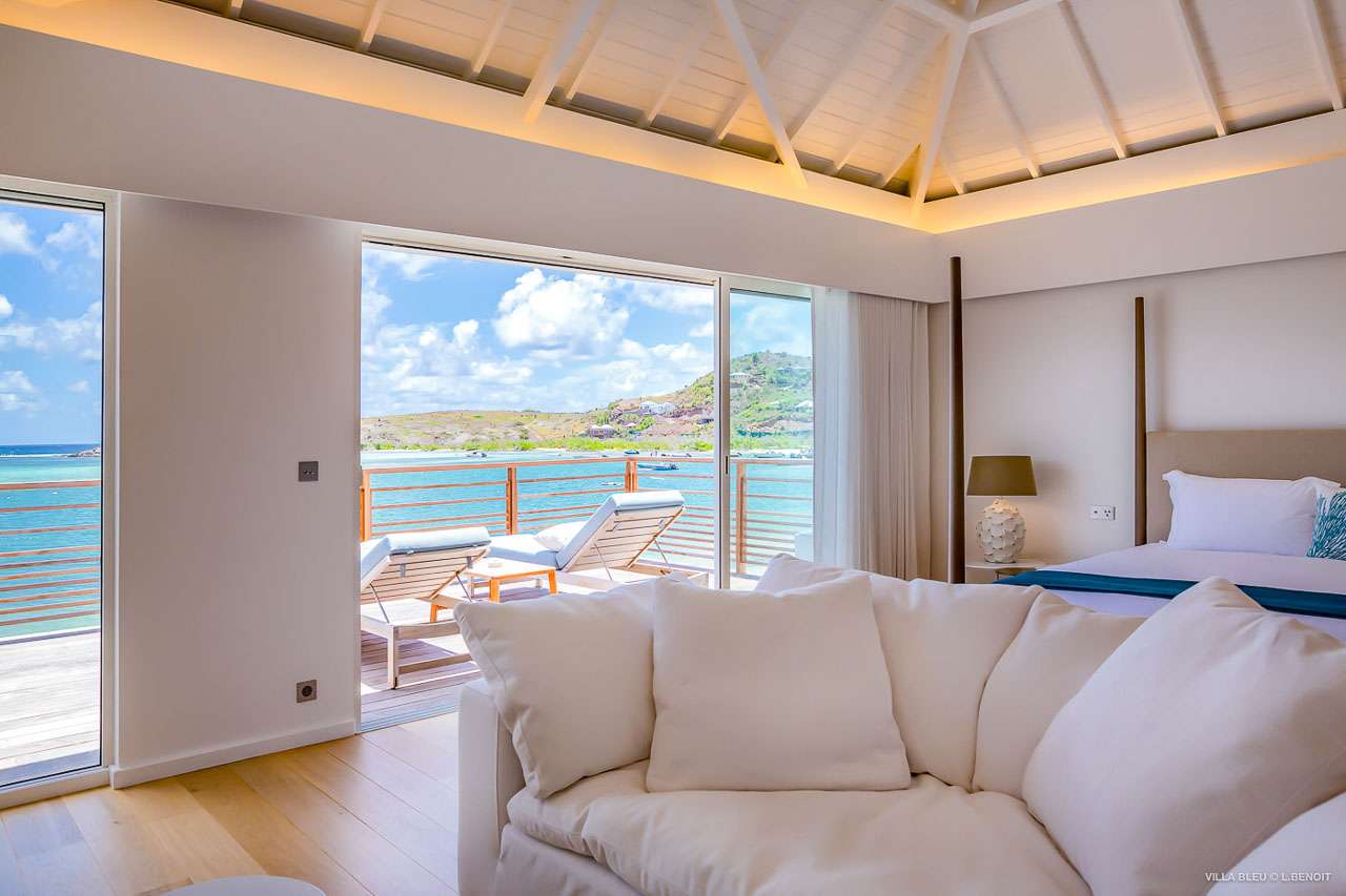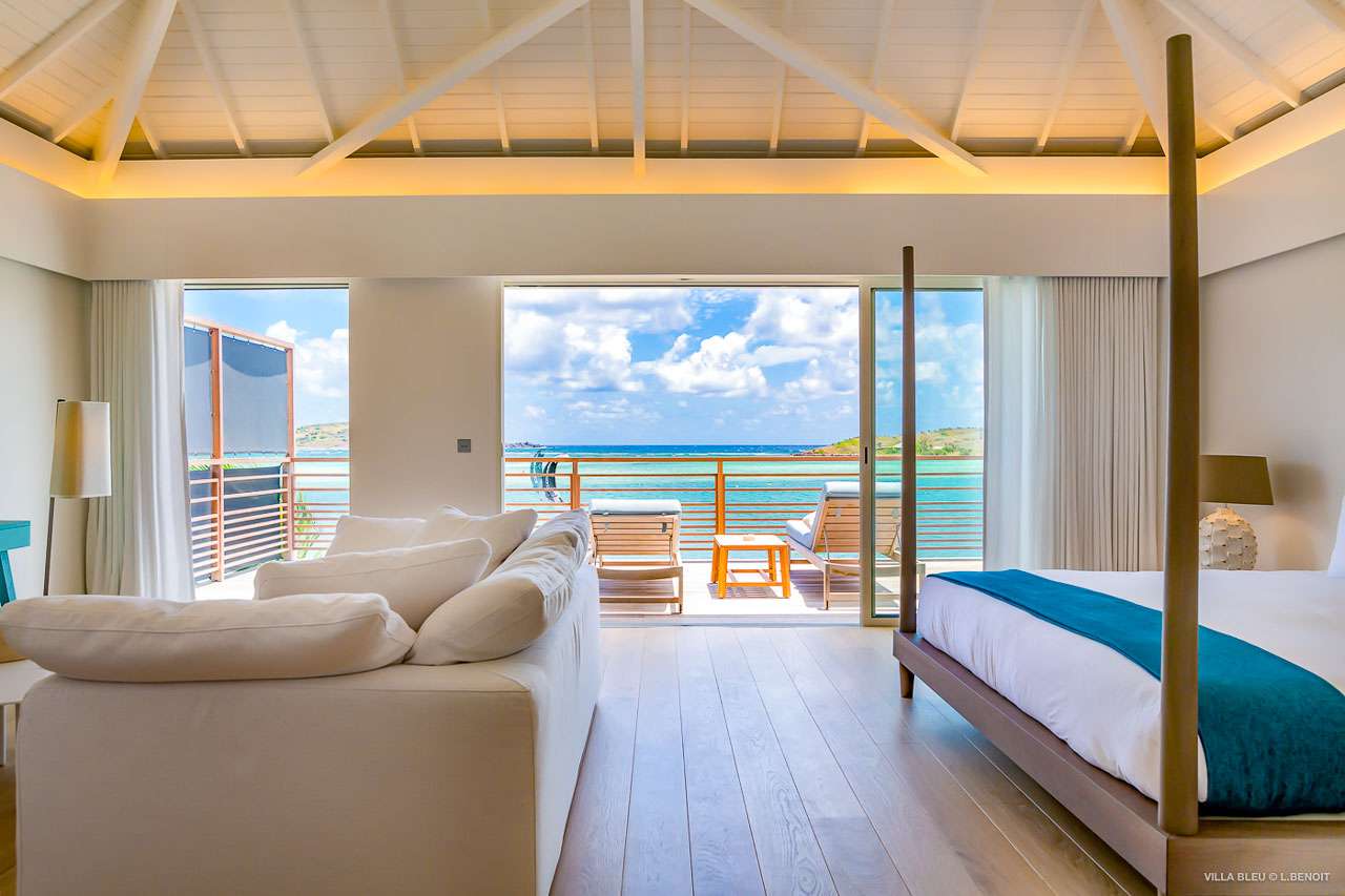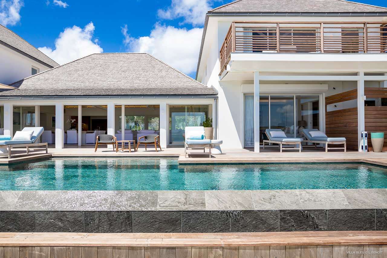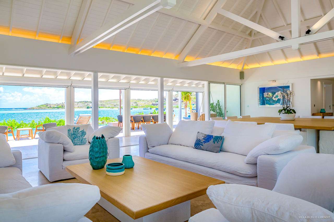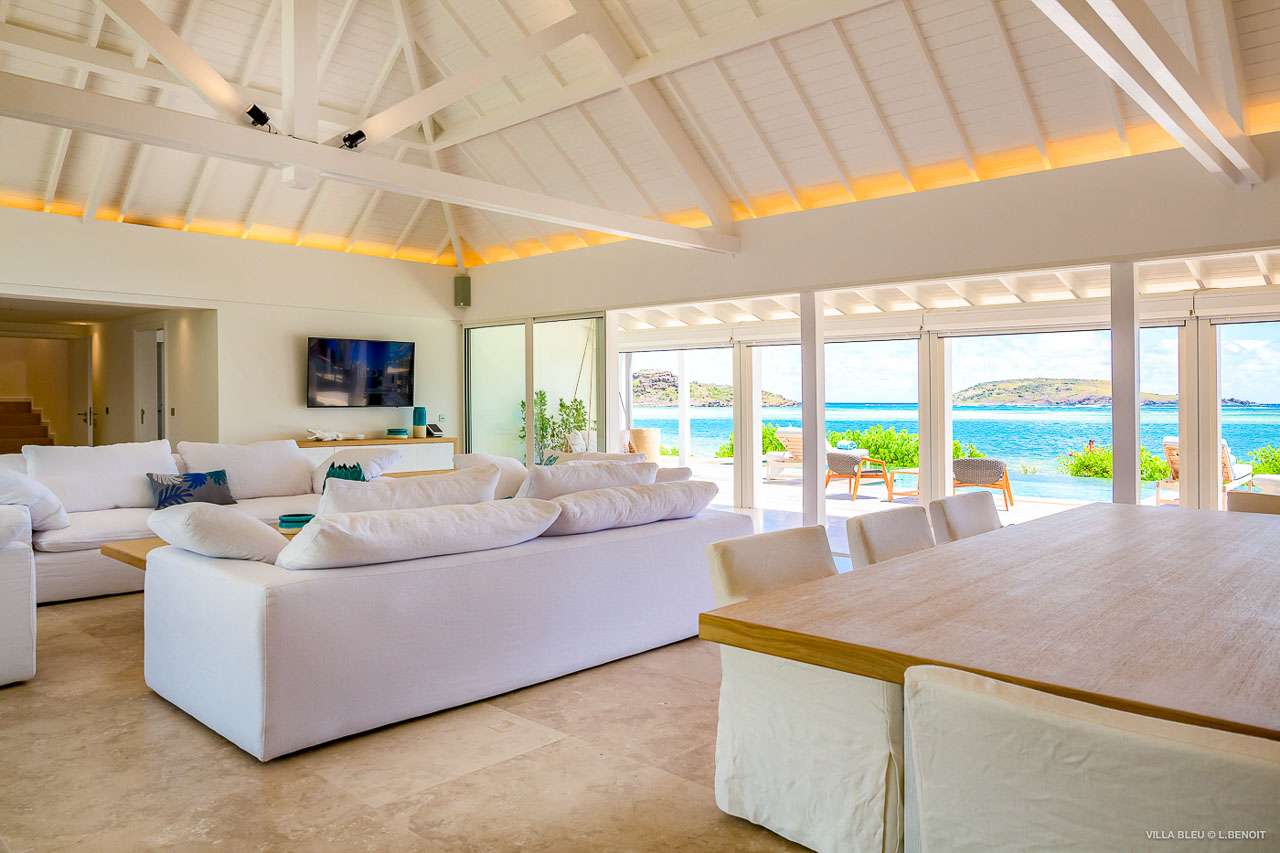 Castaway to Villa Aqua (villa code: WV AQA), a modern 6-bedroom villa in Grand Cul de Sac, St. Barts. This waterfront villa enjoys a fantastic location next to the new Barthelemy Hotel within steps of the beach and a short walk from restaurants. Bright and airy interiors inside Villa Aqua are a peaceful retreat from the rushes of modern life. The clean island design features an open-plan layout, filled with natural light and playful breezes blowing in from the Caribbean. Minimalist, contemporary, and with plenty of cool spots to relax, this is a fabulous choice for a beachfront getaway in St. Barts. Nestled on the shores of the beach at Grand Cul de Sac, Villa Aqua enjoys a fantastic location on St. Barts. Within walking distance are plenty of 5-star hotel restaurants, bars, and shops. St. Jean is a 10-minute drive, and the capital Gustavia is only 5 minutes further. Open and breezy, Villa Aqua can open on several sides to enjoy the full effect of the ocean breeze. Doors and windows frame incredible views of the cerulean-blue sea, with a range of comfortable furnishings for everyone to kick back and unwind. The central great room is the heart of the home, an idyllic and luxurious setting for gathering with family and friends. The oversized living room enjoys several soft sofas, with some facing the view and others facing the entertainment center. A dining area separates the living room from a well-equipped gourmet kitchen, which is suitable for hosting large parties. A second, connected preparation kitchen is equipped with a large refrigerator and wine cooler. With both, you’ll have no trouble preparing fantastic meals during your stay. The large indoor dining table is a relaxed and casual spot to enjoy a meal, a highlight of any stay. There’s also a lovely alfresco dining table, coaxing you to dine outside with the fading afternoon sending rosy gold colors arcing across the sky. There are 6 bedrooms inside Villa Aqua, tranquil retreats for your stay in this island paradise. Creamy, contemporary colors match with the natural wooden furnishings, while vaulted ceilings enjoy chic recessed lighting. There are two separate staircases on either end of the villa, both leading to one of the two master suites. Both enjoy king-sized beds, a dressing area, a private balcony with sea views, and an ensuite bathroom with a rain shower and a bathtub. There are four guest suites on the main floor, all with king-sized beds and ensuite bathrooms. Two enjoy ocean views, while the other two are on the garden side of the house. For more space, Villa Aqua can be rented with its sister villa, Villa Bleu (villa code: WV BLE) for a total of 12 bedrooms. Stepping outside lets you immerse yourself in the wonderful views over the Caribbean. In either direction, the gentle curve of the bay is alluring, with the striking water bordered by white sands. A large deck surrounds the swimming pool, tempting you in to cool off each day. There are several loungers lining the pool’s edge, and others nestled in the shade. Reading, enjoying a drink, or indulging in an afternoon nap are all on the menu. Mere steps away, the inviting Caribbean is the stuff of dreams. The tranquil water is crystal-clear, with the white sandy shore ideal for lounging. During the Thanksgiving and December holidays, the villa rents at full occupancy rates regardless of how many bedrooms are used.Please fill out the form to begin your inquiry and we will connect you with a seasoned villa rental specialist.