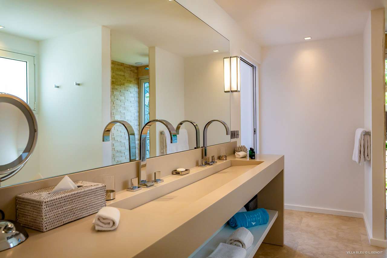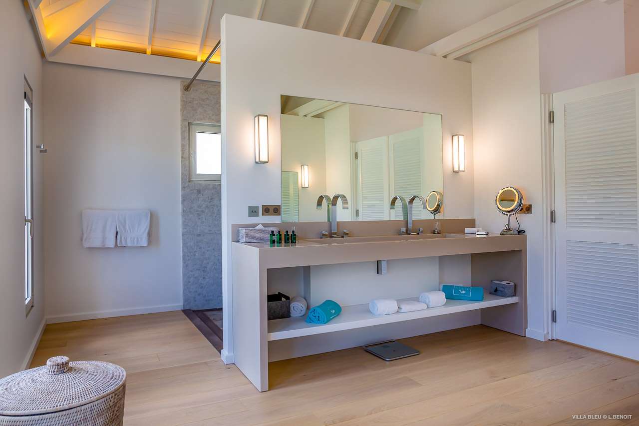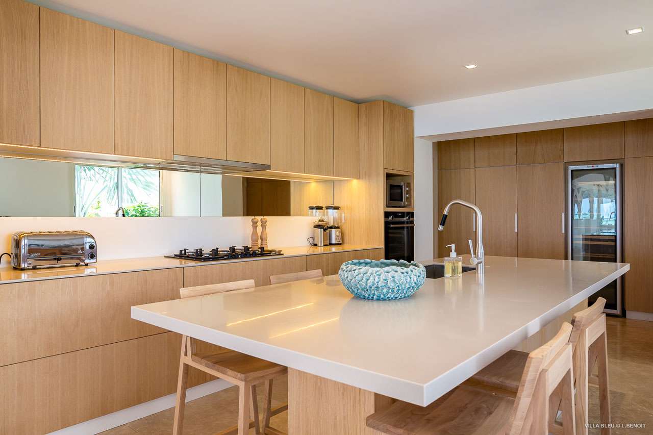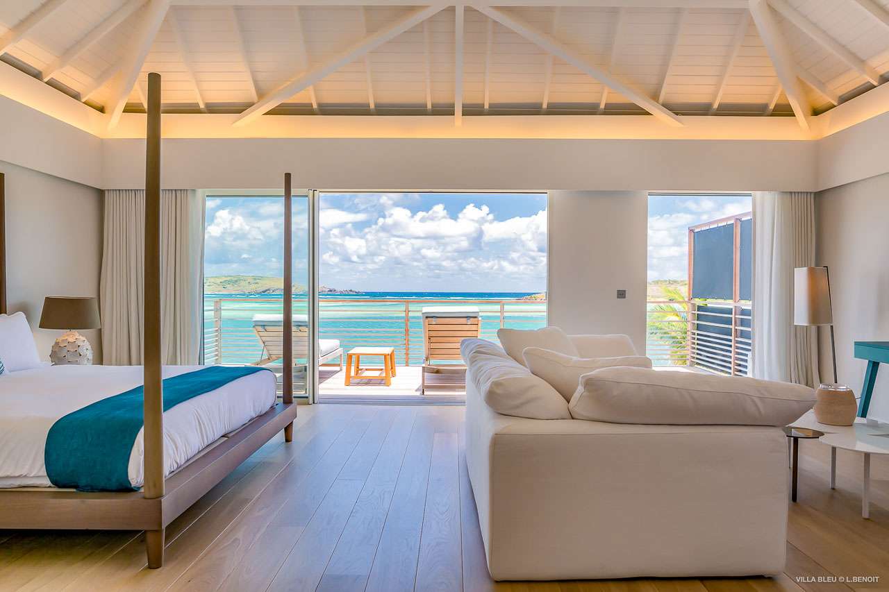 Castaway to Villa Aqua (villa code: WV AQA), a modern 6-bedroom villa in Grand Cul de Sac, St. Barts. This waterfront villa enjoys a fantastic location next to the new Barthelemy Hotel within steps of the beach and a short walk from restaurants. Bright and airy interiors inside Villa Aqua are a peaceful retreat from the rushes of modern life. The clean island design features an open-plan layout, filled with natural light and playful breezes blowing in from the Caribbean. Minimalist, contemporary, and with plenty of cool spots to relax, this is a fabulous choice for a beachfront getaway in St. Barts. Nestled on the shores of the beach at Grand Cul de Sac, Villa Aqua enjoys a fantastic location on St. Barts. Within walking distance are plenty of 5-star hotel restaurants, bars, and shops. St. Jean is a 10-minute drive, and the capital Gustavia is only 5 minutes further. Open and breezy, Villa Aqua can open on several sides to enjoy the full effect of the ocean breeze. Doors and windows frame incredible views of the cerulean-blue sea, with a range of comfortable furnishings for everyone to kick back and unwind. The central great room is the heart of the home, an idyllic and luxurious setting for gathering with family and friends. The oversized living room enjoys several soft sofas, with some facing the view and others facing the entertainment center. A dining area separates the living room from a well-equipped gourmet kitchen, which is suitable for hosting large parties. A second, connected preparation kitchen is equipped with a large refrigerator and wine cooler. With both, you’ll have no trouble preparing fantastic meals during your stay. The large indoor dining table is a relaxed and casual spot to enjoy a meal, a highlight of any stay. There’s also a lovely alfresco dining table, coaxing you to dine outside with the fading afternoon sending rosy gold colors arcing across the sky. There are 6 bedrooms inside Villa Aqua, tranquil retreats for your stay in this island paradise. Creamy, contemporary colors match with the natural wooden furnishings, while vaulted ceilings enjoy chic recessed lighting. There are two separate staircases on either end of the villa, both leading to one of the two master suites. Both enjoy king-sized beds, a dressing area, a private balcony with sea views, and an ensuite bathroom with a rain shower and a bathtub. There are four guest suites on the main floor, all with king-sized beds and ensuite bathrooms. Two enjoy ocean views, while the other two are on the garden side of the house. For more space, Villa Aqua can be rented with its sister villa, Villa Bleu (villa code: WV BLE) for a total of 12 bedrooms. Stepping outside lets you immerse yourself in the wonderful views over the Caribbean. In either direction, the gentle curve of the bay is alluring, with the striking water bordered by white sands. A large deck surrounds the swimming pool, tempting you in to cool off each day. There are several loungers lining the pool’s edge, and others nestled in the shade. Reading, enjoying a drink, or indulging in an afternoon nap are all on the menu. Mere steps away, the inviting Caribbean is the stuff of dreams. The tranquil water is crystal-clear, with the white sandy shore ideal for lounging. During the Thanksgiving and December holidays, the villa rents at full occupancy rates regardless of how many bedrooms are used.Please fill out the form to begin your inquiry and we will connect you with a seasoned villa rental specialist.