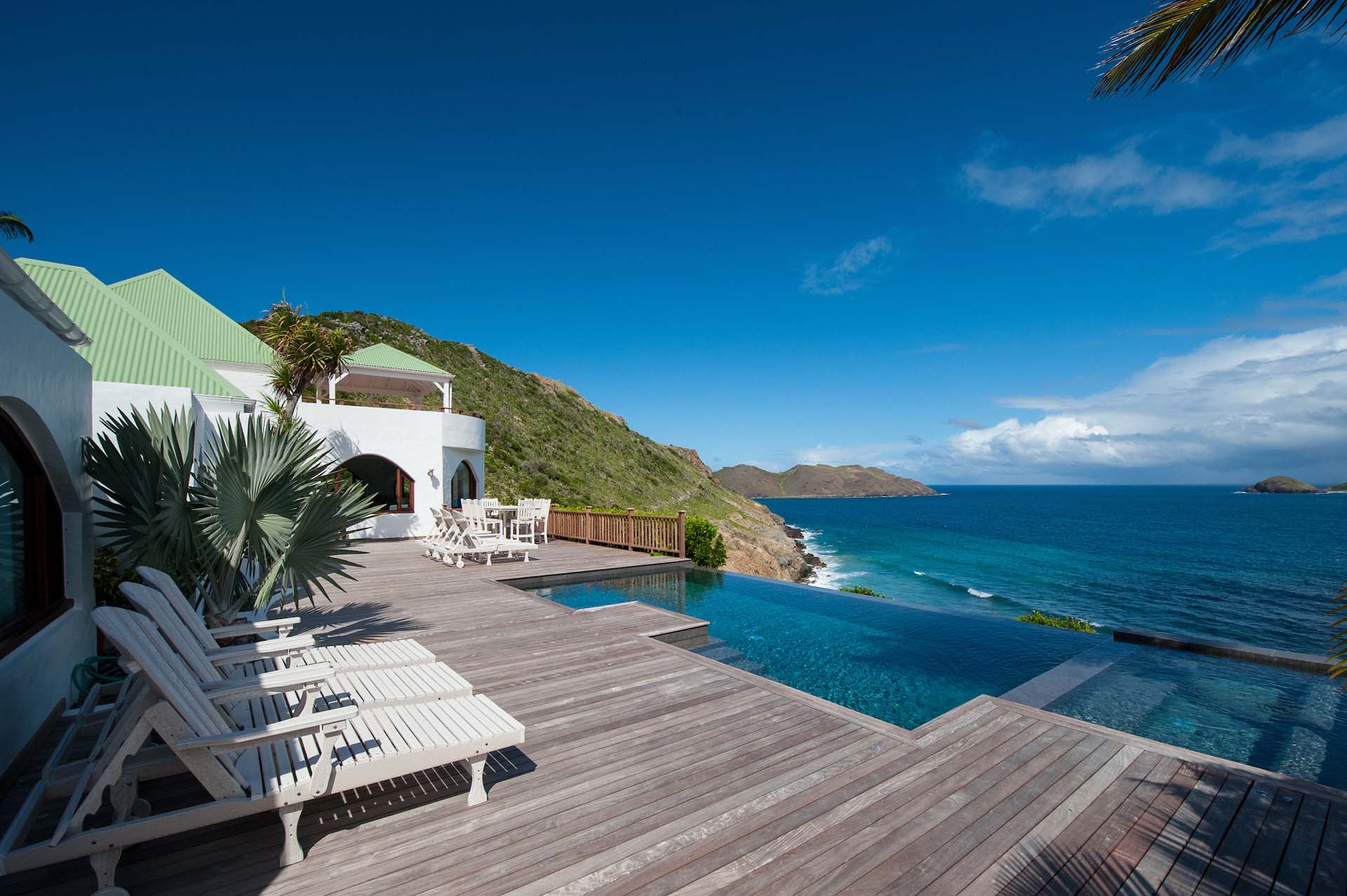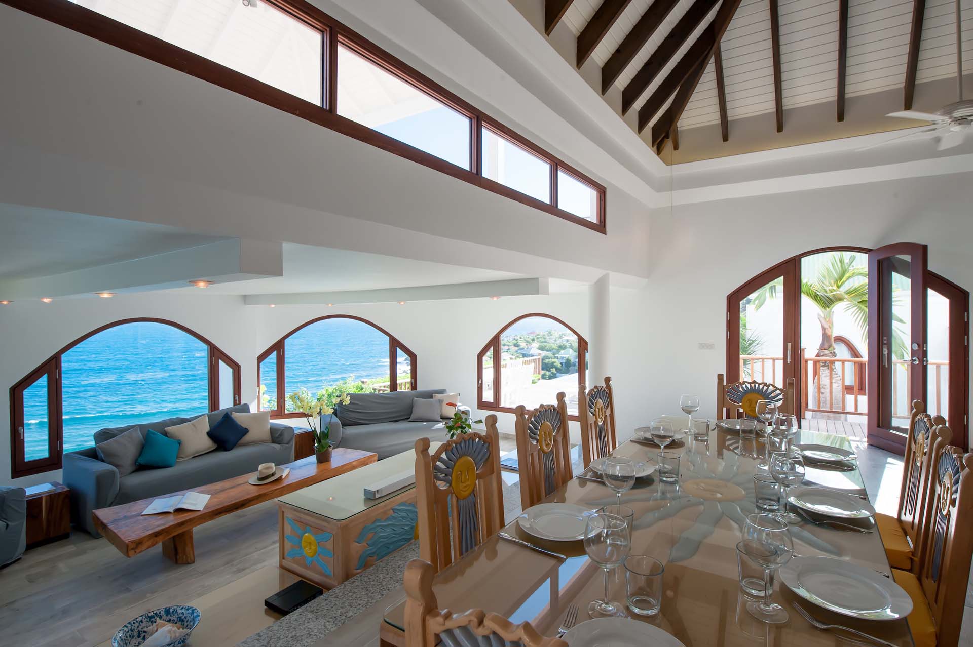 Villa Arc en Ciel, (villa code: WV AEC) is a 4-bedroom villa perched elegantly on the hillside, this opulent villa offers breathtaking panoramic views and an unparalleled sense of seclusion. The design, both in its architecture and interior, presents a modern pristine white façade. The central area comprises three master bedrooms, each accompanied by lavishly tiled private bathrooms. The kitchen is a paradise for culinary enthusiasts, accompanied by a dining space, while a stunning sunken living room with grand arched windows provides expansive vistas of the ocean. The fourth bedroom, with an ensuite bathroom, resides in a separate pavilion. The villa boasts a heated infinity pool that seamlessly merges into a hot tub. The generously proportioned outdoor living areas encompass a spacious deck and an elevated dining terrace. Undoubtedly, this stands as an exceptional choice for a remarkable vacation retreat. During the Thanksgiving and December holidays, the villa rents at full occupancy rates regardless of how many bedrooms are used. Non-smokers, please.Please fill out the form to begin your inquiry and we will connect you with a seasoned villa rental specialist.
