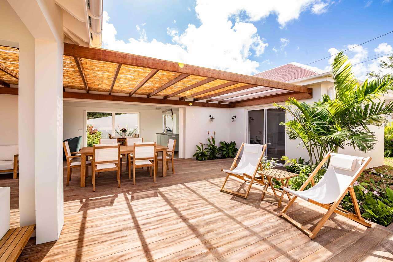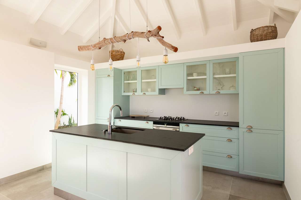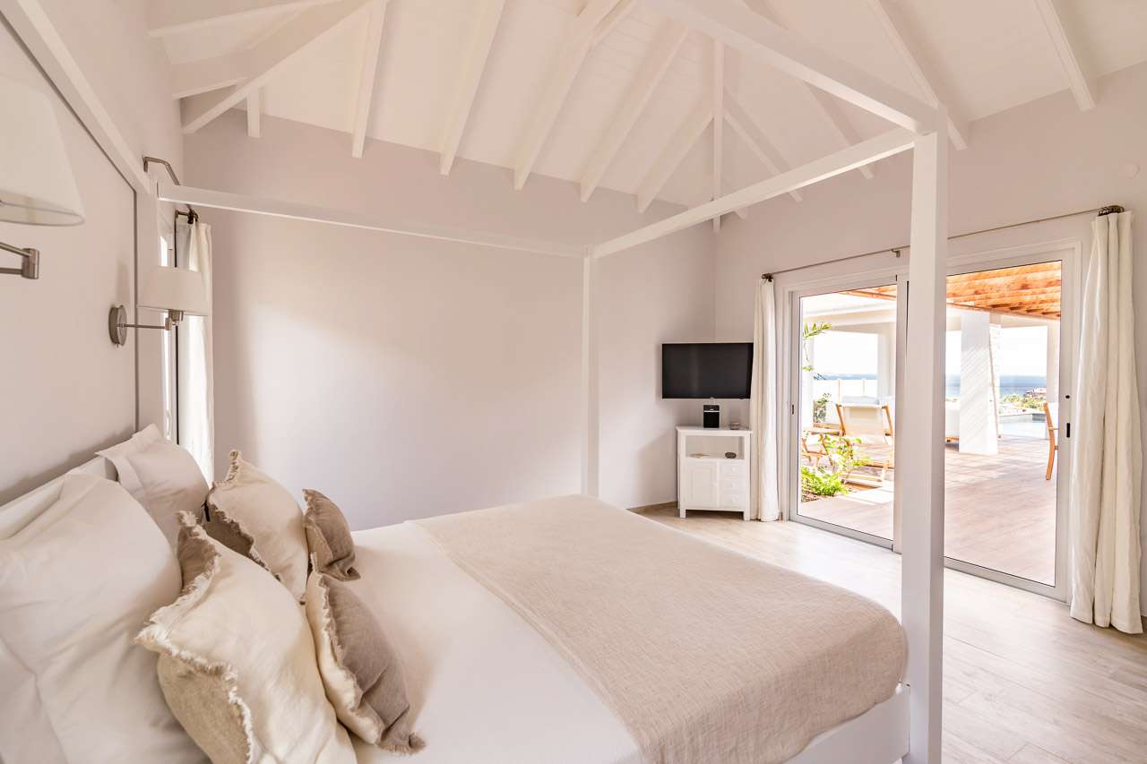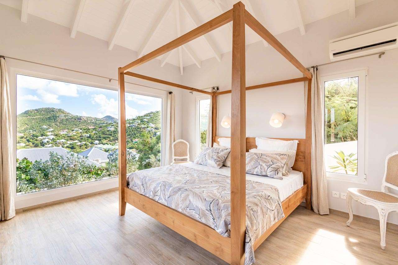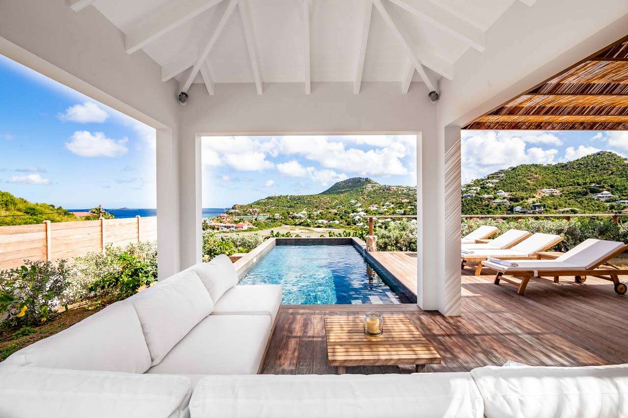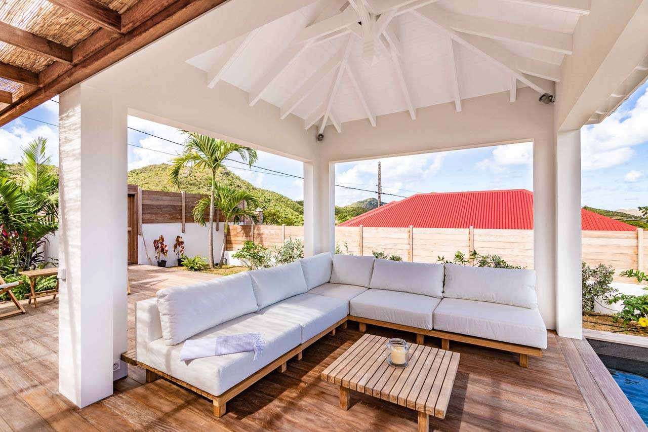 Villa Au Paille En Queuenis a newly-built, 2-bedroom villa with gorgeous views just a short distance from the beach. Sitting high on the hillside by the pond of St. Jean, Villa Au Paille En Queue benefits fully from the views, facing the Eden Rock and the sea beyond. It is just a short drive from shops, restaurants and the lively beach of St. Jean. The cozy villa has two bungalows with a large corner deck and an extended pool, surrounded by a small tropical garden. There is ample space outside for dining, lounging and sunbathing, cooled by the Caribbean breezes. A gazebo with a comfortable sectional sofa in the shade, large enough that it can also serve as a daybed, completes the outdoor space. The main, fully-screened bungalow houses a modern, open kitchen with a large island that separates the space. In the front is the living room with comfortable seating by the TV that offers U.S. satellite as well as Apple TV and a large window to benefit from the views. Connecting to the living room is the first bedroom with large windows that let in plenty of light and offer gorgeous views. It has a European king-sized bed, ensuite dressing room and bathroom with shower. The second bedroom is situated in the separate bungalow next to the entrance. This bedroom is similar to the first, but with a different color palette. Each bedroom also has Apple TV. Au Paille En Queue is an excellent villa for a family with children as well as two couples vacationing together. This Villa comes with house cleaning services six days a week, except on holidays. During the December holidays, the villa rents at the full occupancy rate regardless of how many bedrooms are used. * Note - there are two very friendly cats that like to visit from next door.Please fill out the form to begin your inquiry and we will connect you with a seasoned villa rental specialist.