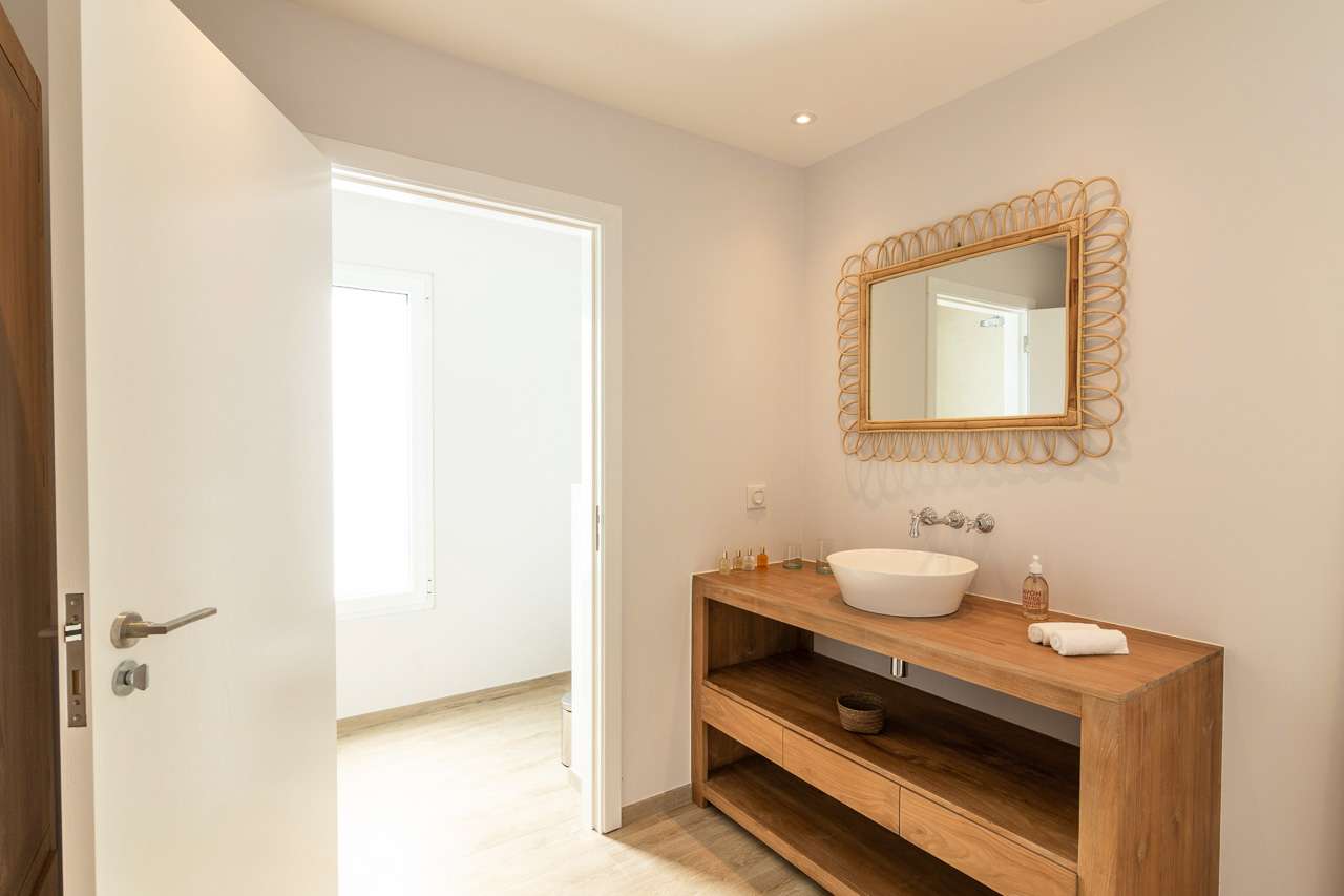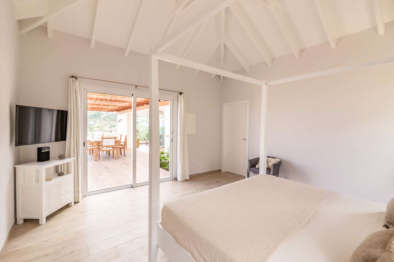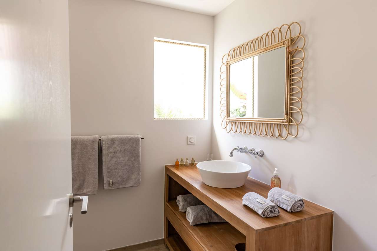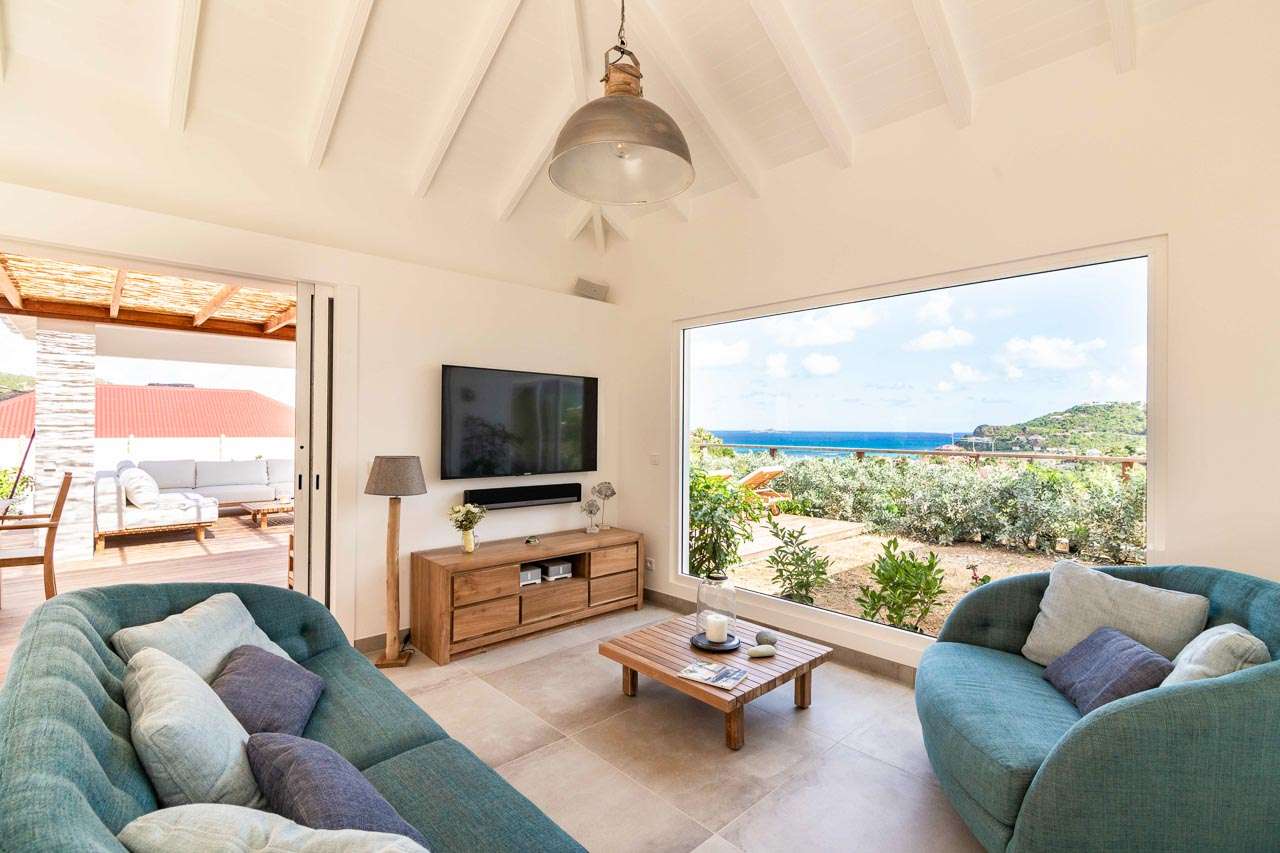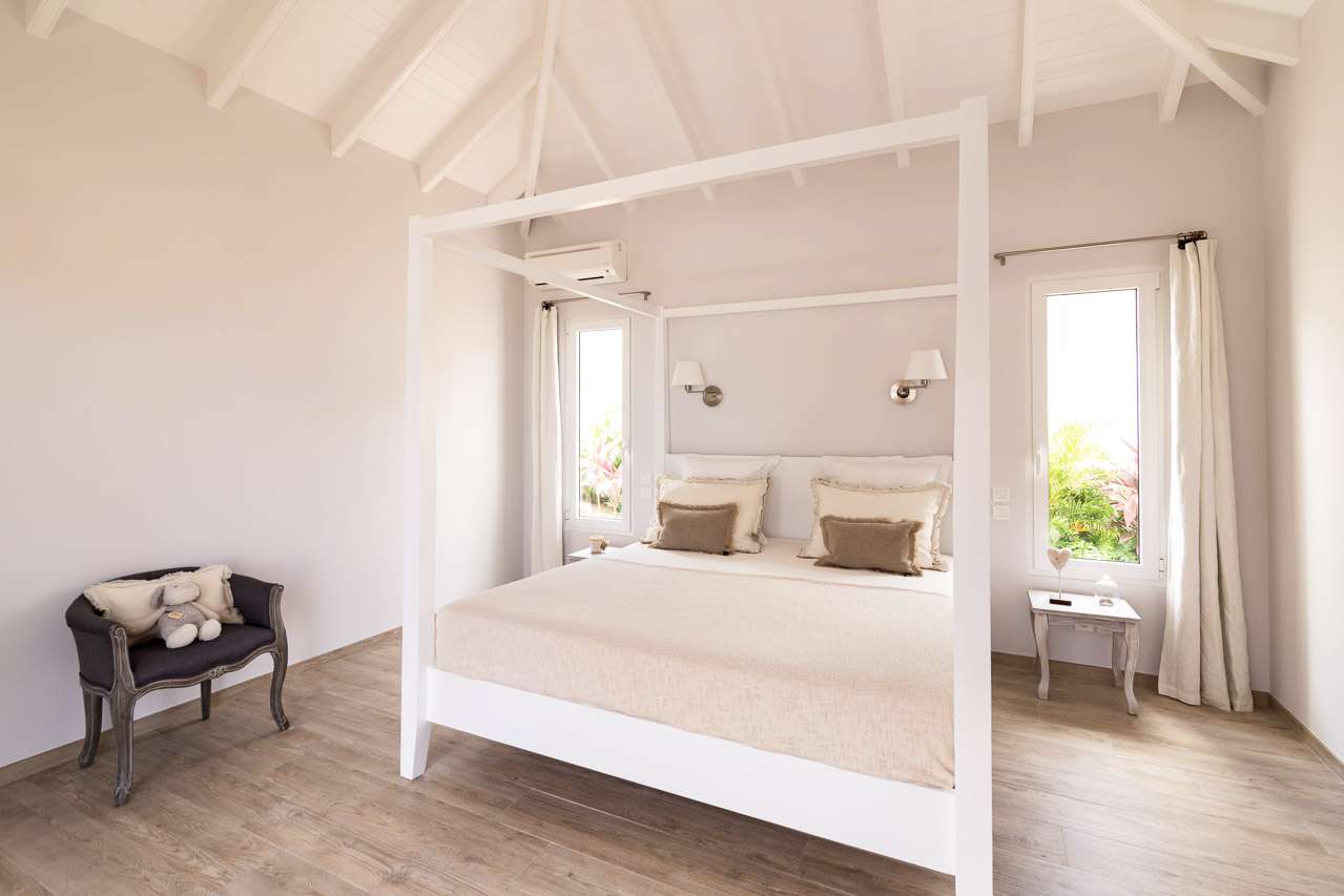 Villa Au Paille En Queuenis a newly-built, 2-bedroom villa with gorgeous views just a short distance from the beach. Sitting high on the hillside by the pond of St. Jean, Villa Au Paille En Queue benefits fully from the views, facing the Eden Rock and the sea beyond. It is just a short drive from shops, restaurants and the lively beach of St. Jean. The cozy villa has two bungalows with a large corner deck and an extended pool, surrounded by a small tropical garden. There is ample space outside for dining, lounging and sunbathing, cooled by the Caribbean breezes. A gazebo with a comfortable sectional sofa in the shade, large enough that it can also serve as a daybed, completes the outdoor space. The main, fully-screened bungalow houses a modern, open kitchen with a large island that separates the space. In the front is the living room with comfortable seating by the TV that offers U.S. satellite as well as Apple TV and a large window to benefit from the views. Connecting to the living room is the first bedroom with large windows that let in plenty of light and offer gorgeous views. It has a European king-sized bed, ensuite dressing room and bathroom with shower. The second bedroom is situated in the separate bungalow next to the entrance. This bedroom is similar to the first, but with a different color palette. Each bedroom also has Apple TV. Au Paille En Queue is an excellent villa for a family with children as well as two couples vacationing together. This Villa comes with house cleaning services six days a week, except on holidays. During the December holidays, the villa rents at the full occupancy rate regardless of how many bedrooms are used. * Note - there are two very friendly cats that like to visit from next door.Please fill out the form to begin your inquiry and we will connect you with a seasoned villa rental specialist.