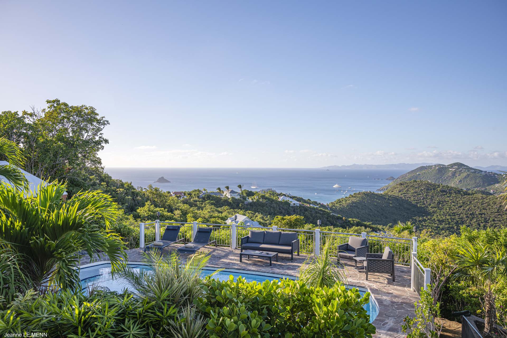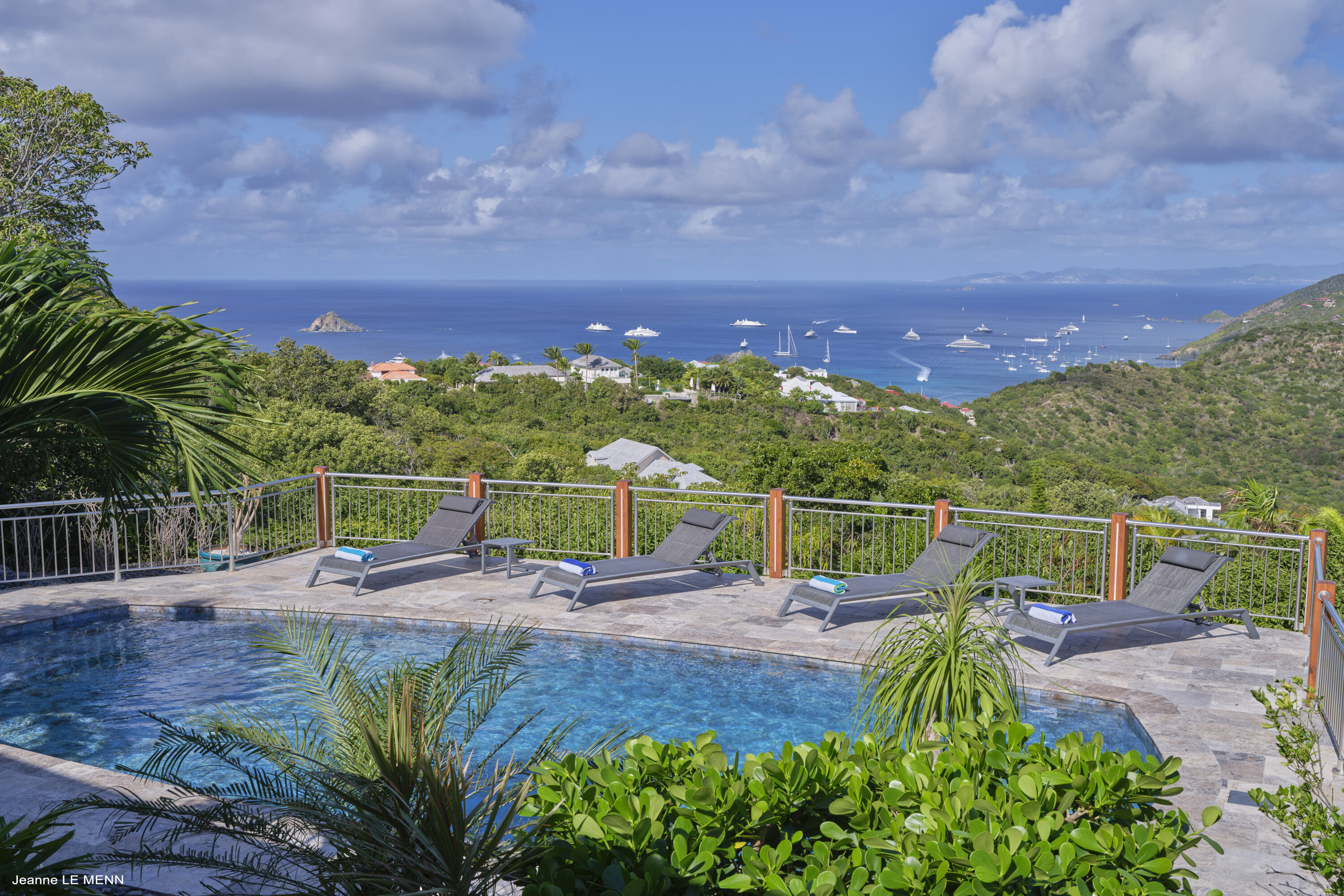 Speaking of the views, Villa Au Petit Pont enjoys one of the best vantage points on St. Barts. 180-degree views take in Gustavia, St. Jean Bay, and the islands Ile Toc Vers, Île Frégate, and Île Bonhomme.