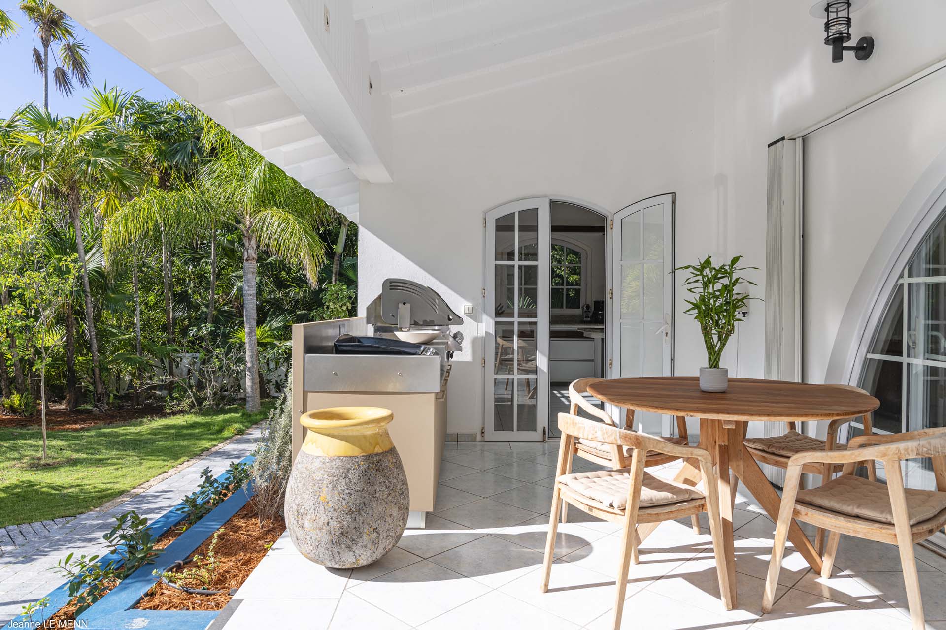 On both terraces is an outdoor dining table, both excellent spots for alfresco dining during your stay. Pairing a gourmet meal with French wine and stunning views over the island is exactly what life in the Caribbean is all about.