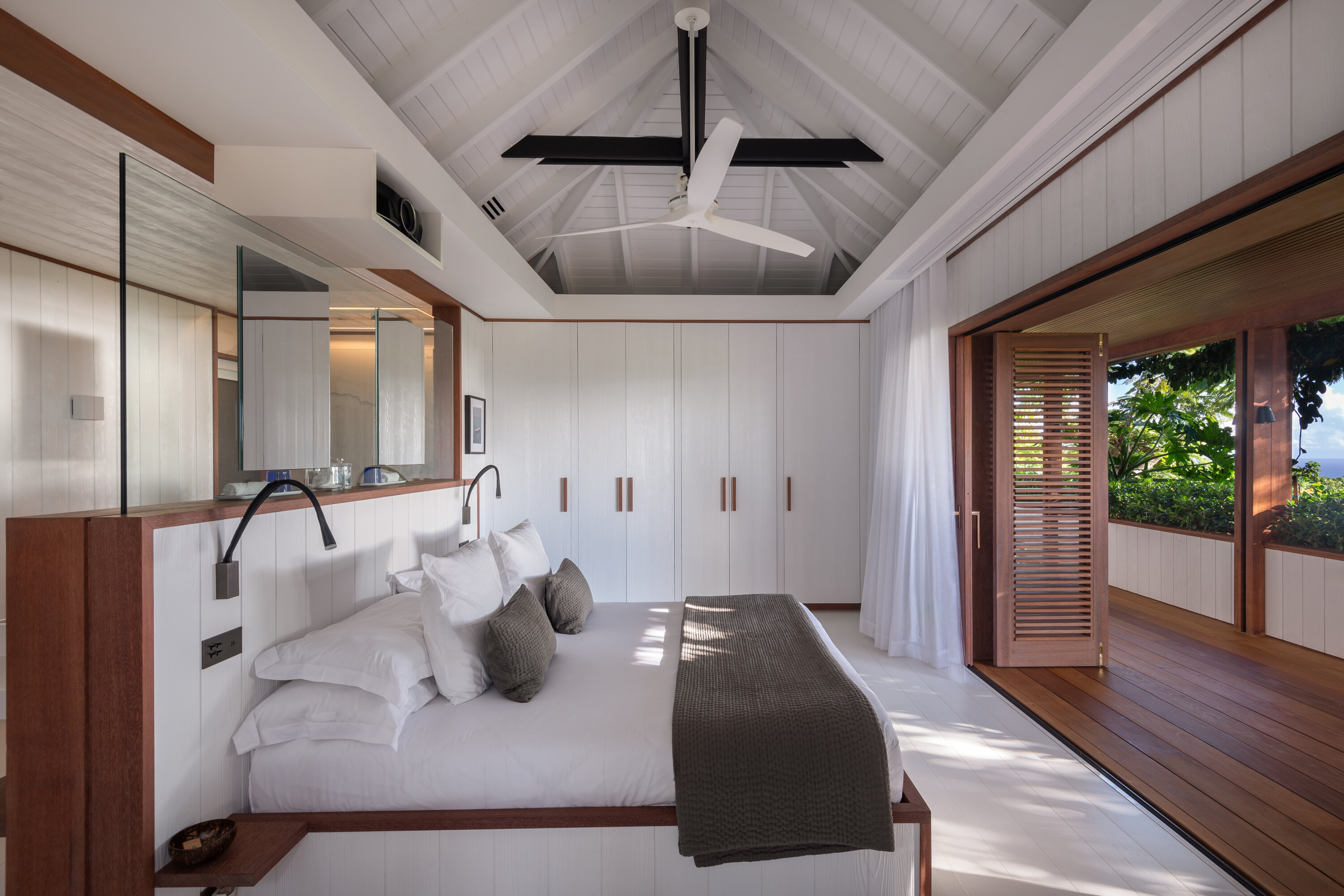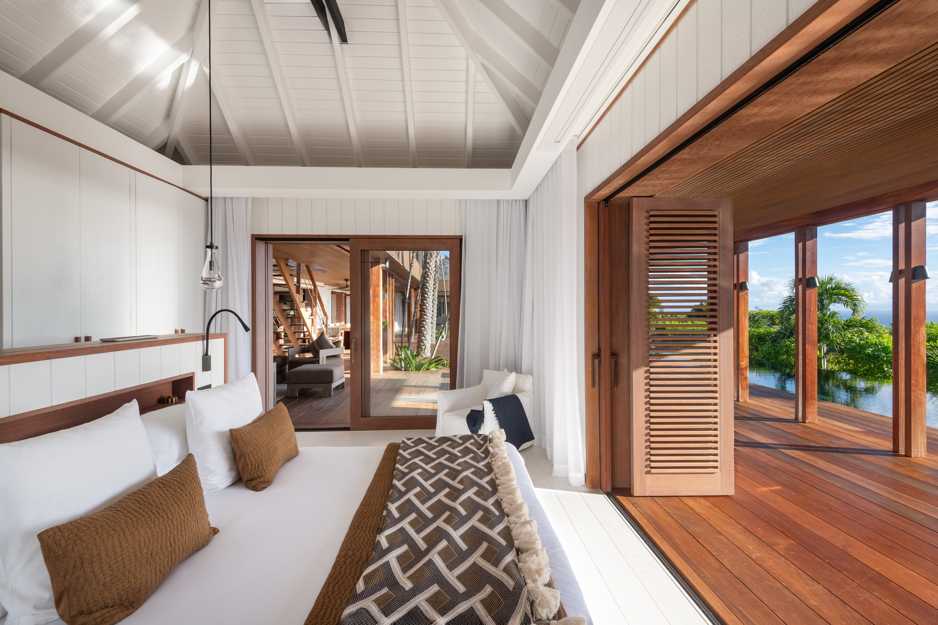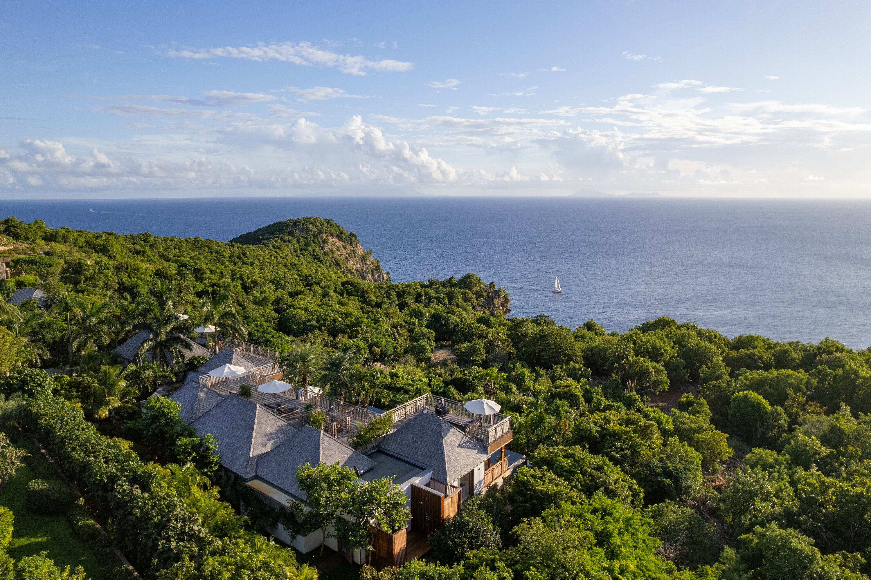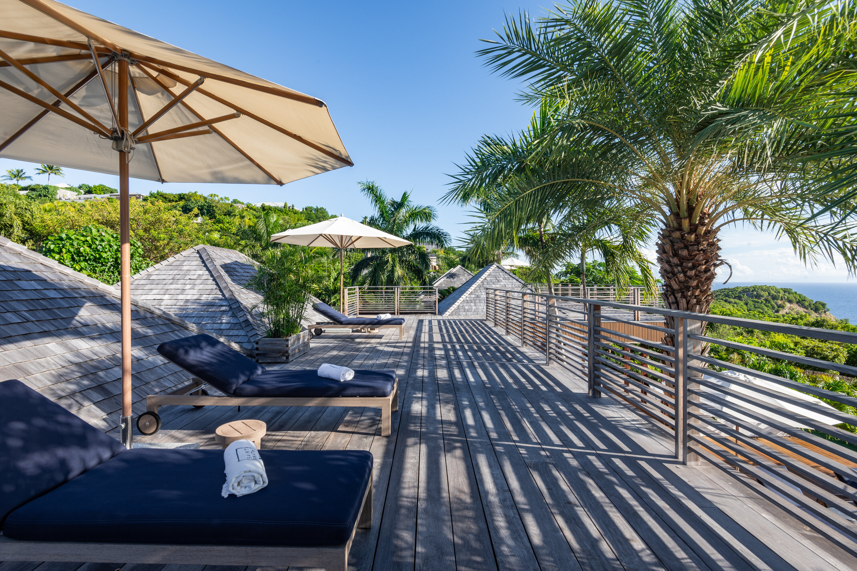 Villa Aura, (villa code: WV SCV) is a magnificent 6-bedroom villa located in Gouverneur and has the most amazing ocean views. The villa is surrounded by a tropical garden with large spaces and upscale amenities. The main level of this luxury villa consists of an air-conditioned living room, and a fully-equipped kitchen with a beautiful marble breakfast island. A long terrace runs along the villa’s front, with a beautiful wooden deck and seating areas. The long, heated pool overlooks the lush garden. There are sunbeds and a built-in Jacuzzi, to relax in the tropical beauty. Under the covered part of the deck, you’ll find a dining table for twelve guests. A wooden staircase leads to the upper level, a stunning roof terrace furnished with a comfortable lounge and lounge. Villa Aura's bedrooms all have ensuite bathrooms featuring white marble, some with additional outdoor showers. All are furnished with king-size beds in a bright and soft decor. Four bedrooms open onto the pool terrace, and the other two offer a shining view over the tropical garden. In addition, a well-equipped fitness room is on the lower level. During the December holidays, the villa rents at the full occupancy rate regardless of how many bedrooms are used.Please fill out the form to begin your inquiry and we will connect you with a seasoned villa rental specialist.