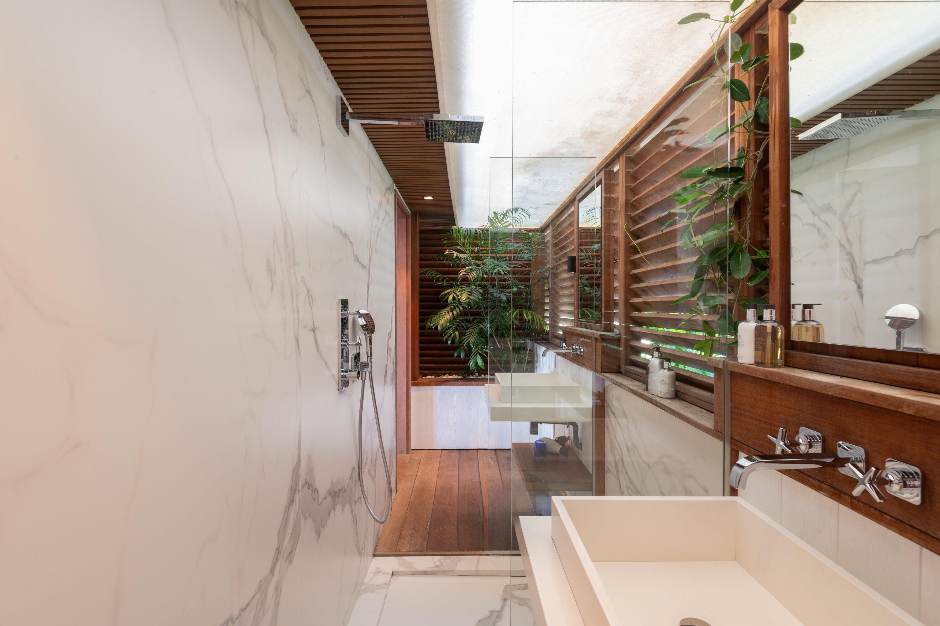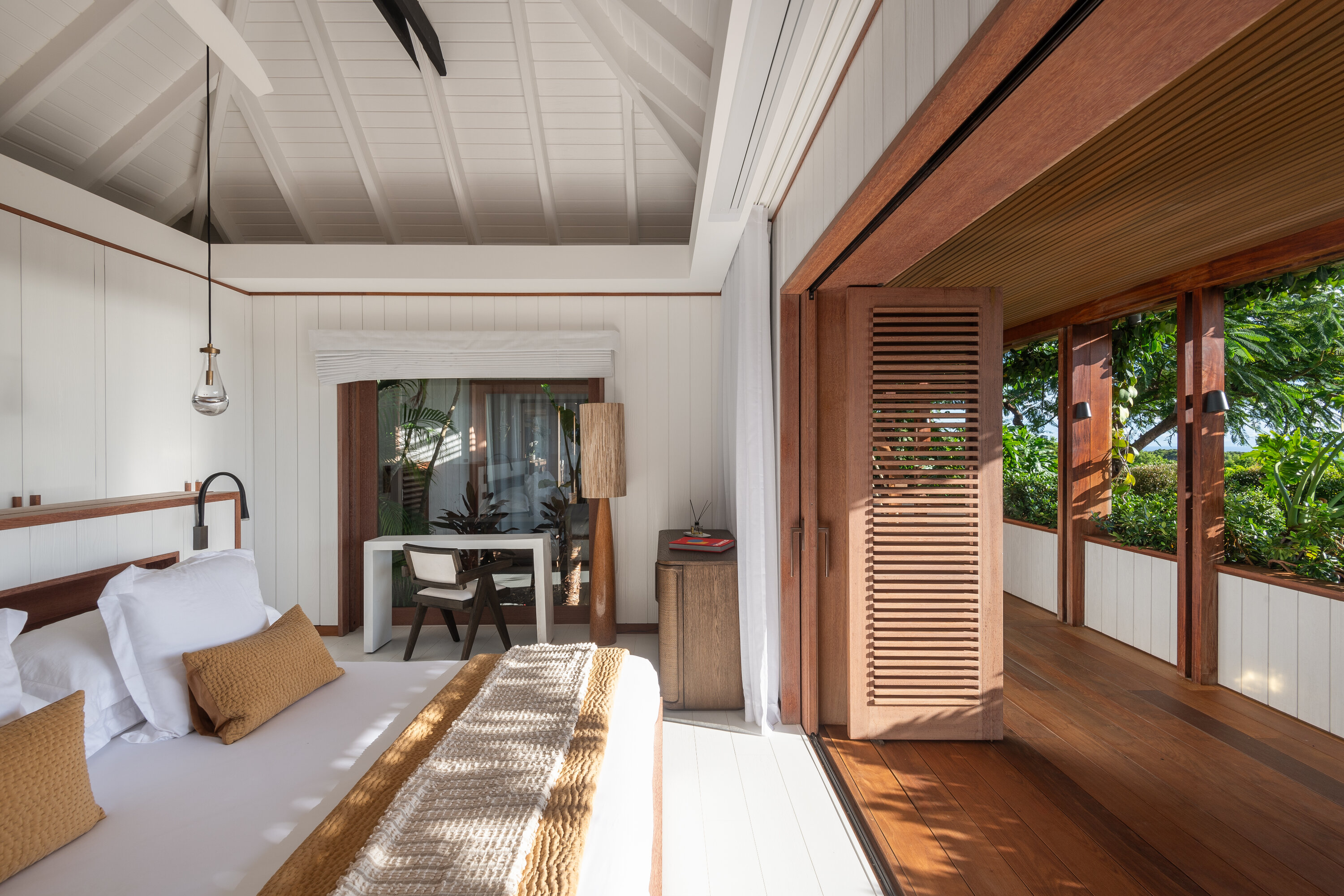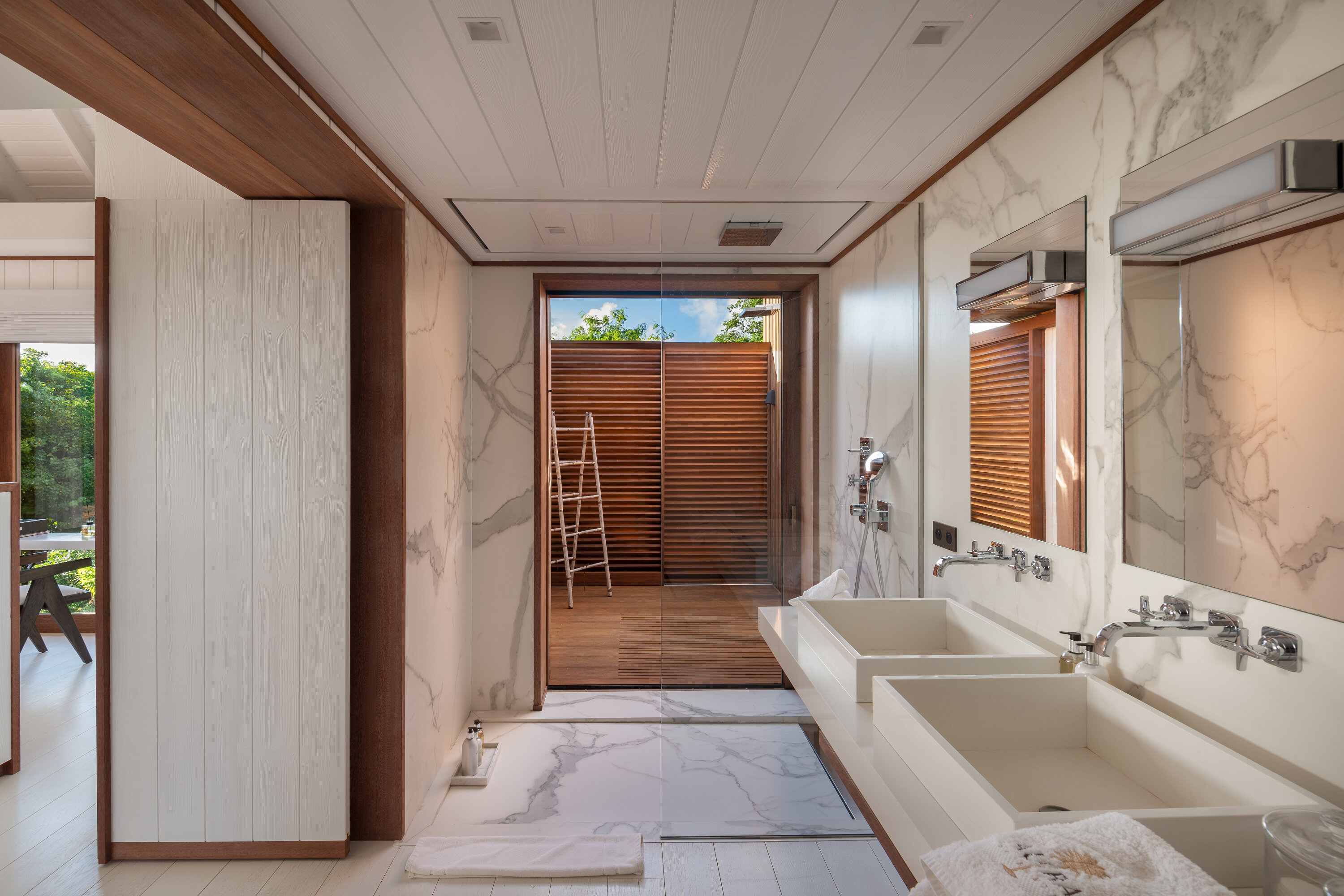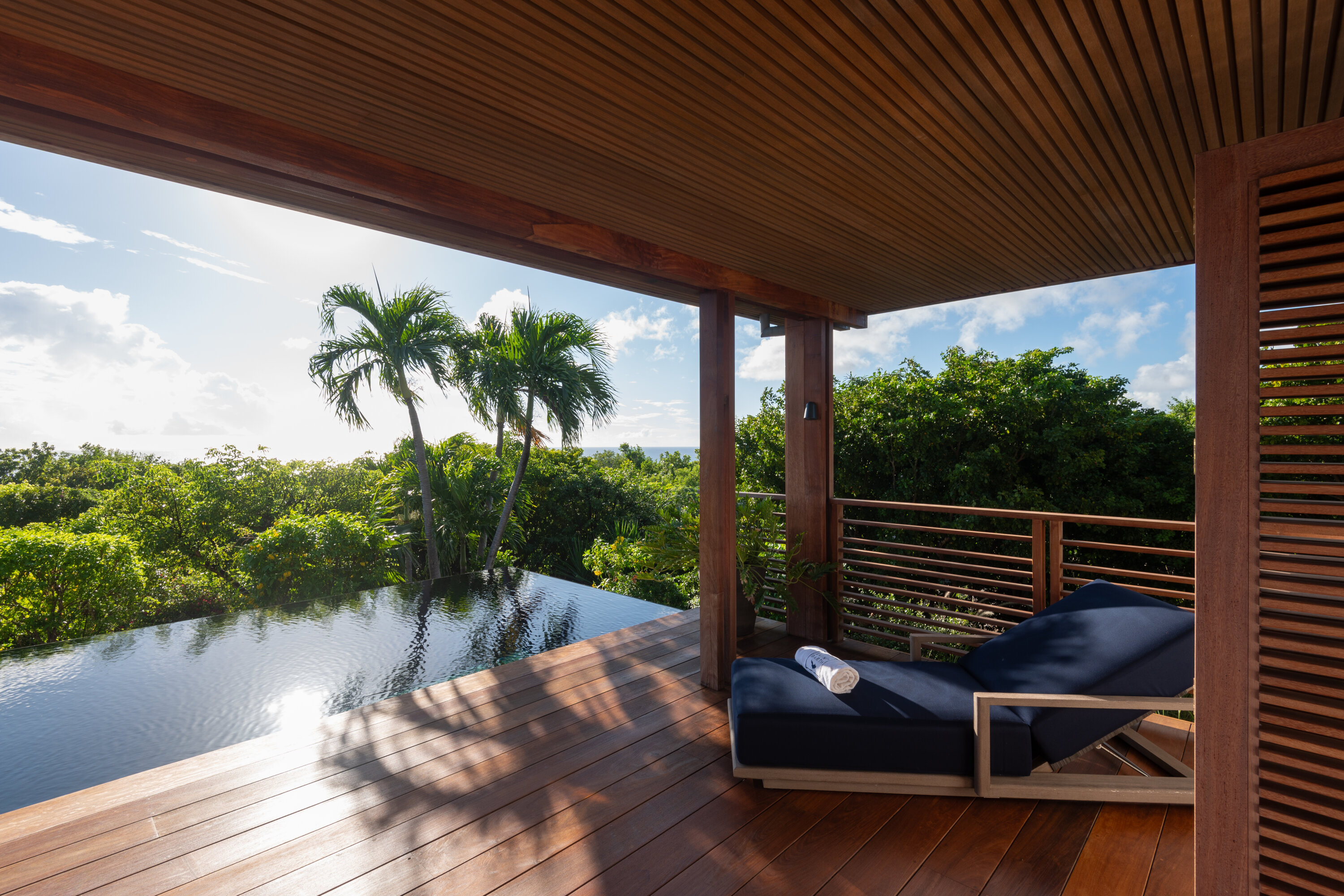 Villa Aura, (villa code: WV SCV) is a magnificent 6-bedroom villa located in Gouverneur and has the most amazing ocean views. The villa is surrounded by a tropical garden with large spaces and upscale amenities. The main level of this luxury villa consists of an air-conditioned living room, and a fully-equipped kitchen with a beautiful marble breakfast island. A long terrace runs along the villa’s front, with a beautiful wooden deck and seating areas. The long, heated pool overlooks the lush garden. There are sunbeds and a built-in Jacuzzi, to relax in the tropical beauty. Under the covered part of the deck, you’ll find a dining table for twelve guests. A wooden staircase leads to the upper level, a stunning roof terrace furnished with a comfortable lounge and lounge. Villa Aura's bedrooms all have ensuite bathrooms featuring white marble, some with additional outdoor showers. All are furnished with king-size beds in a bright and soft decor. Four bedrooms open onto the pool terrace, and the other two offer a shining view over the tropical garden. In addition, a well-equipped fitness room is on the lower level. During the December holidays, the villa rents at the full occupancy rate regardless of how many bedrooms are used.Please fill out the form to begin your inquiry and we will connect you with a seasoned villa rental specialist.