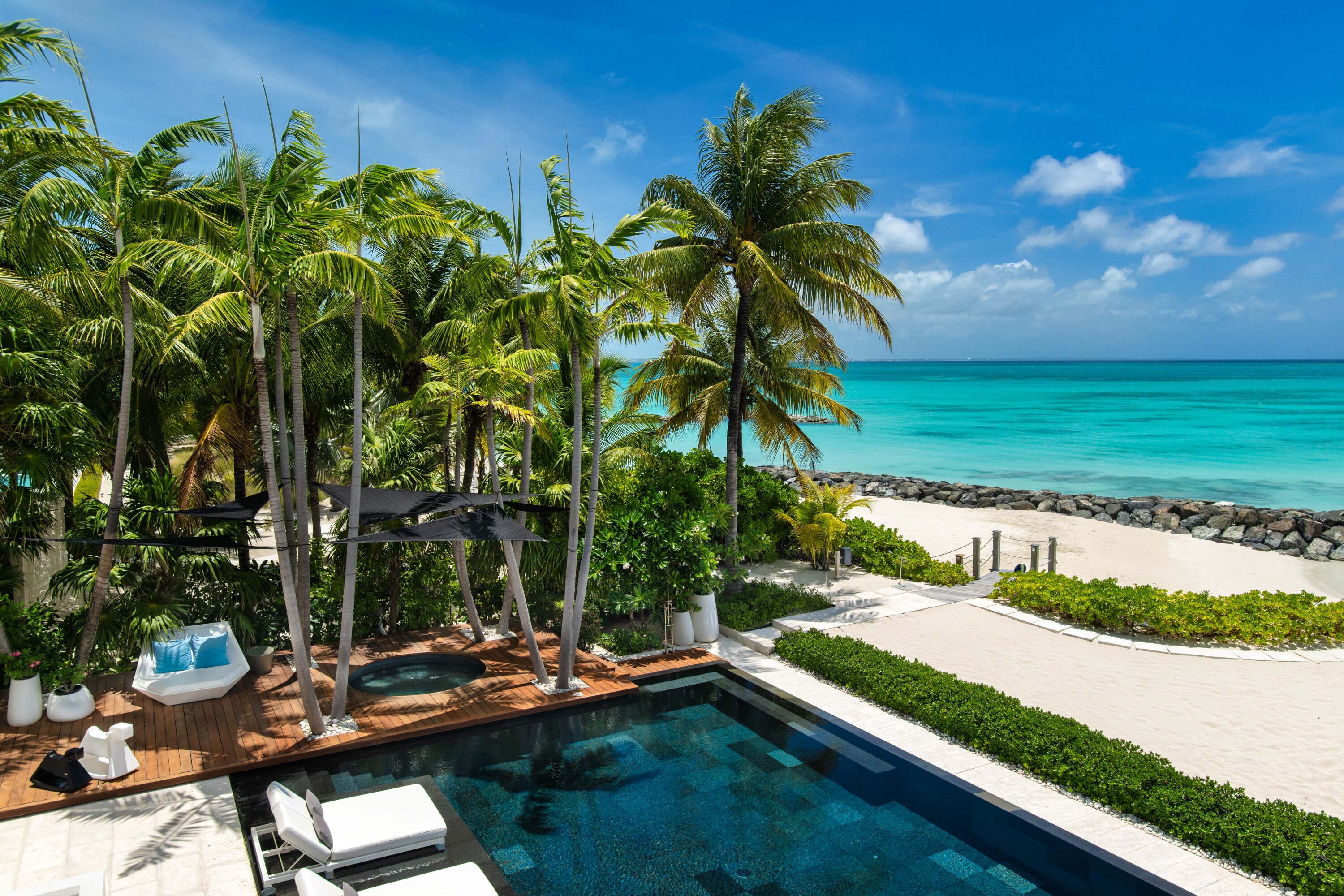 Expansive and sophisticated outdoor areas surrounded by emerald-green foliage provide beautiful places to relax in style. And the best part? Steps away you’ll find white sands and calm azure waters, under the surface of which you’ll find teeming with vibrant tropical fish.