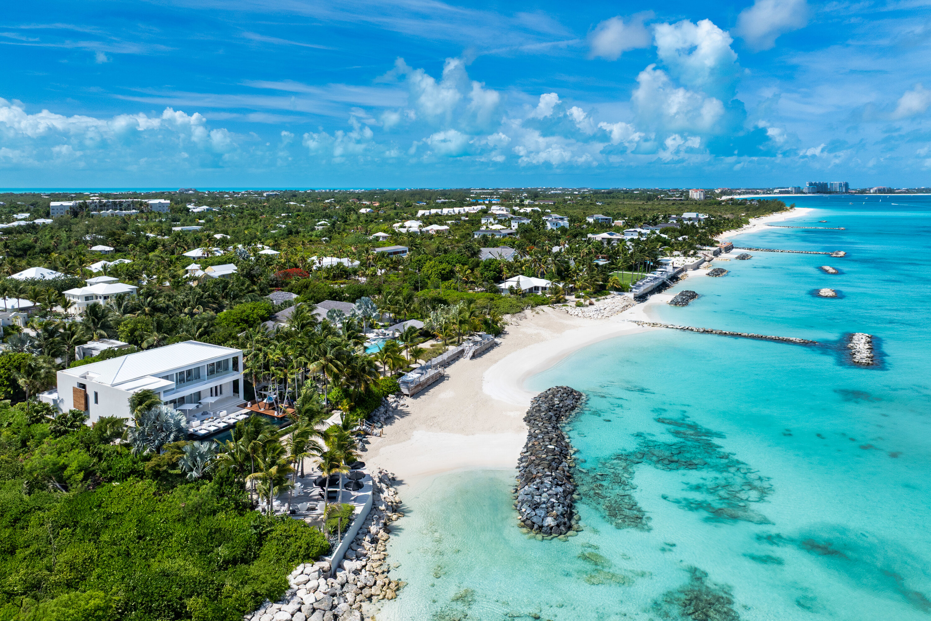 Beachside living and world-class design combine at Villa Awa (villa code: PL AWA), a contemporary 6-bedroom villa located in Grace Bay. Modern and graceful, the architecture here blends Euro-chic with warm island details, making for a graceful beachfront getaway.