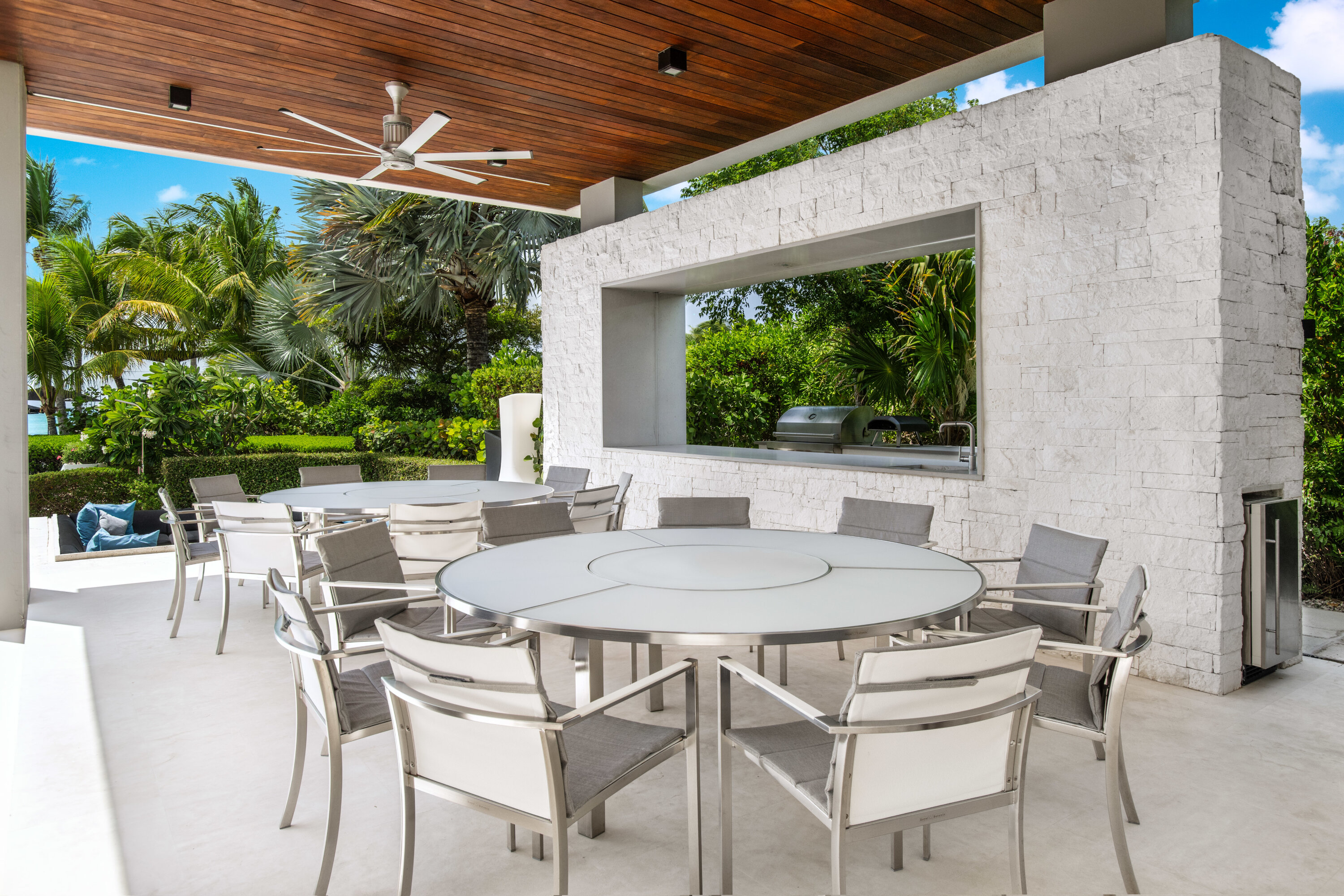 You’ll fall head over heels in love with the ultra-contemporary outdoor living space at Villa Awa. Native landscaping and palm trees surround the entire area, giving off an island-vibe and letting you relax in seclusion and luxury.