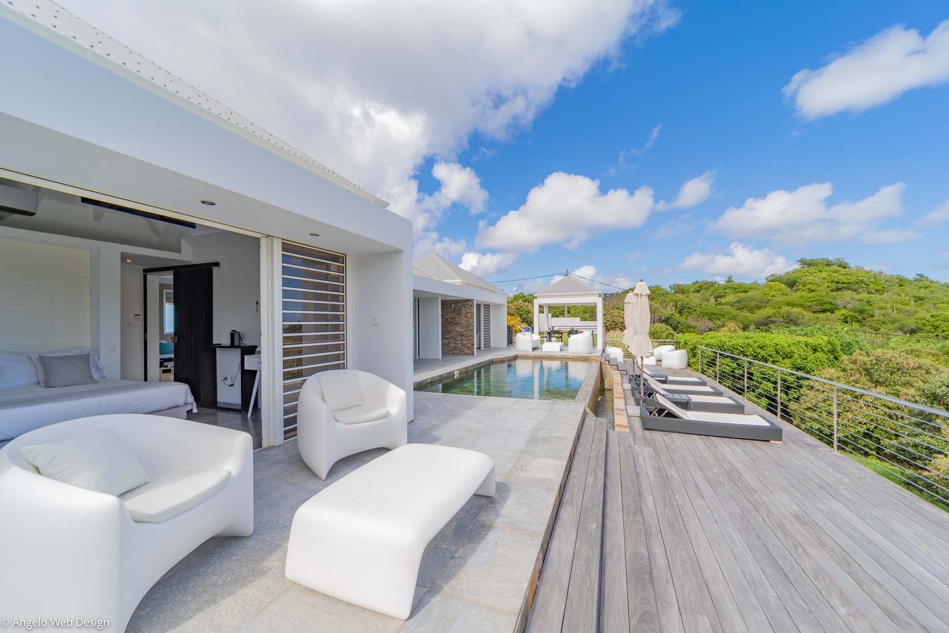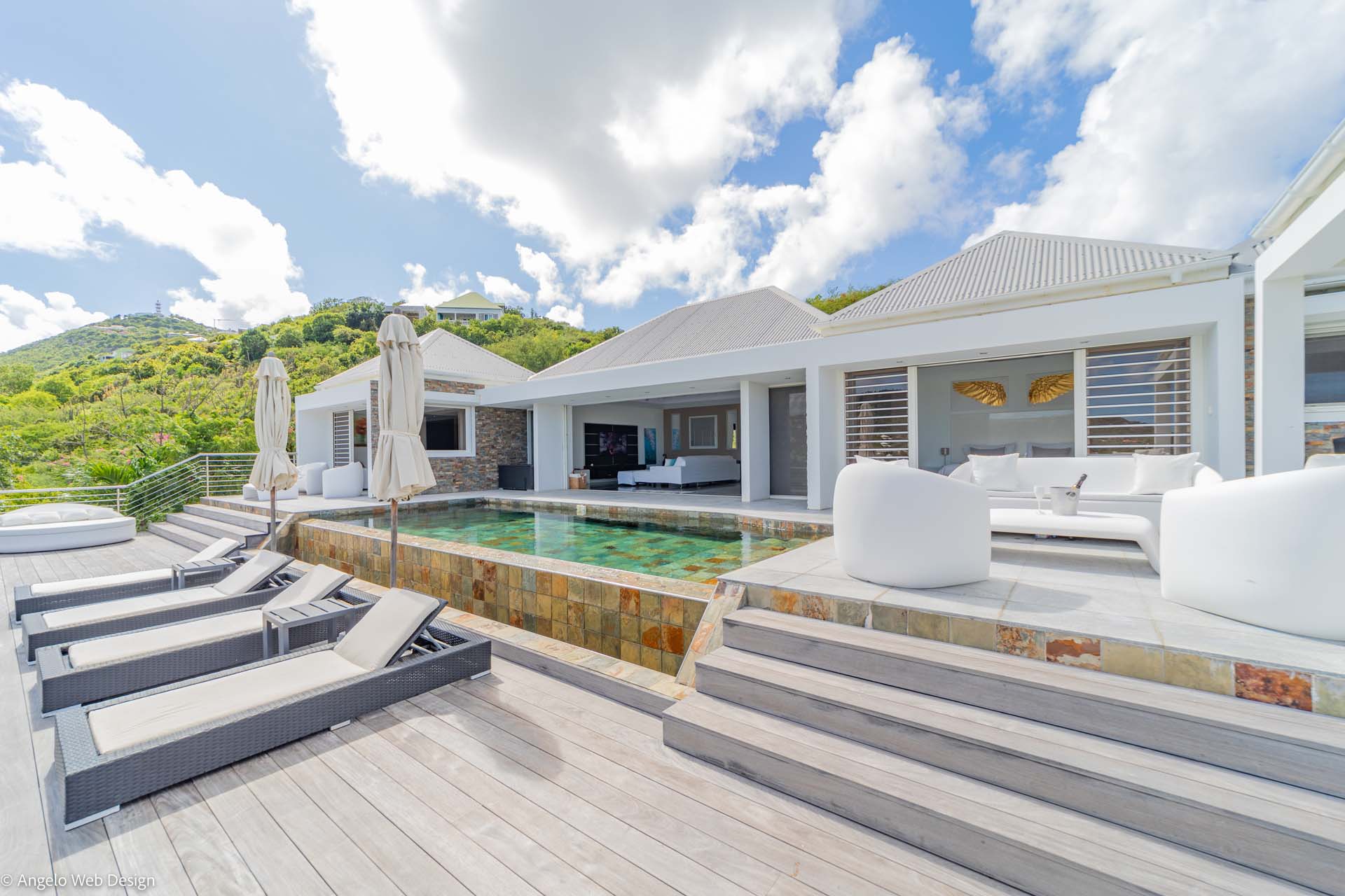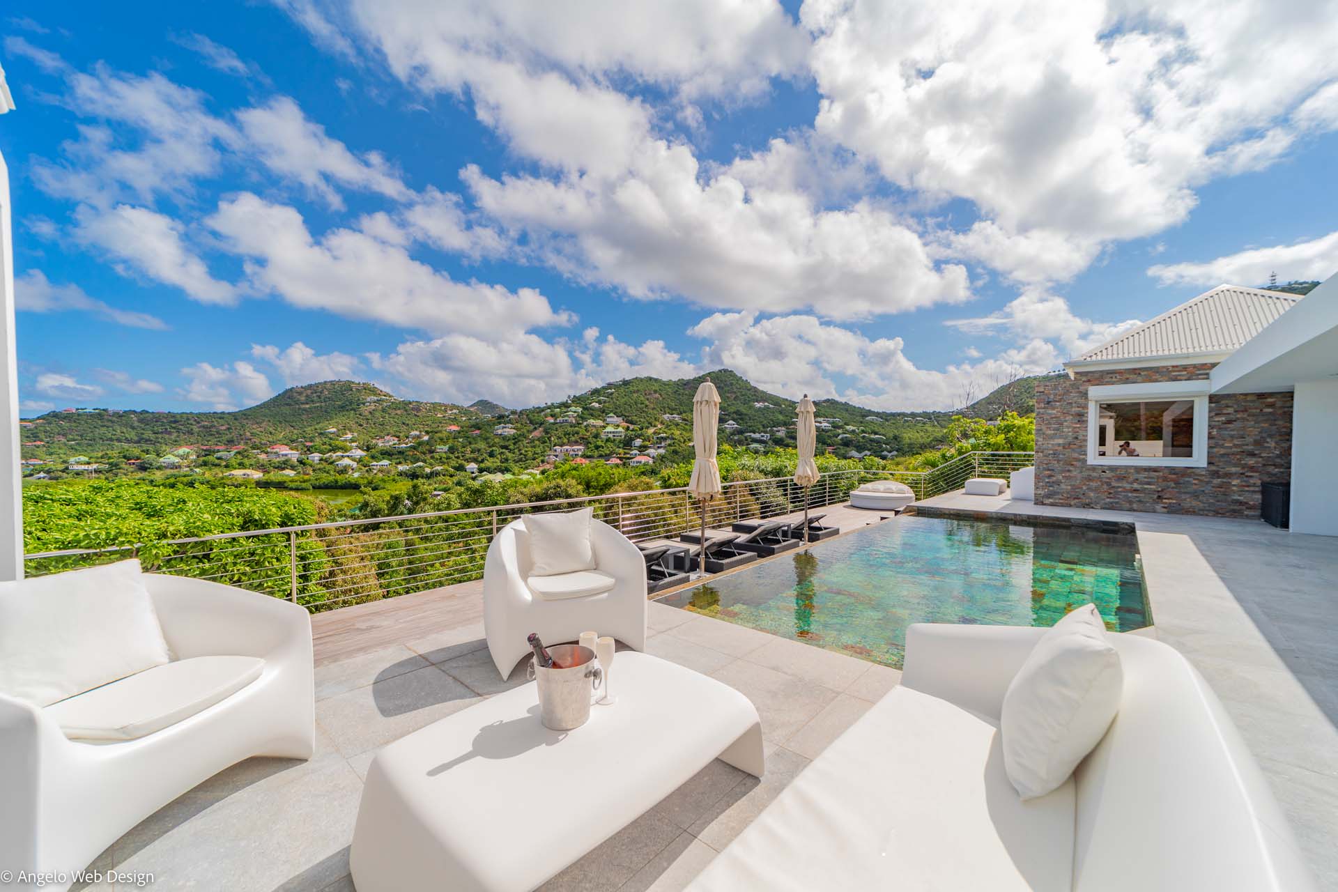Welcome to Villa Aya, a modern 2-bedroom villa located in St-Jean within a short walk of the beach and just minutes from shopping and restaurants. Tucked away in the hills above the bay, this villa enjoys views of the Caribbean sea and rolling green hills of St. Barts. Simple luxuries and classic Caribbean living combine in this property, which has everything you’ll need for your stay. A flowing open-plan design features minimalist style, with clean lines and contemporary furnishings. The entire home blends with its outdoor living spaces, where the views will make you want to stay forever. St-Jean Beach is a short drive downhill, where you’ll also find restaurants, shops, and beach bars. The capital city of Gustavia is just 5 minutes away by car. Living Spaces: The open-plan great room at Aya Villa consists of a living room, dining area, and kitchen. The entire room opens to the pool terrace, letting you cool the space with the gentle island breeze. Soft sofas in the living room are ideal for sinking in to relax. Why not collapse here with a morning coffee and watch as the island wakes up outside? For cozy evenings, a wall-mounted TV lets you unwind with a movie or the latest series. Kitchen and Dining Room: The warm and inviting kitchen at Villa Aya has everything you need to prepare gourmet meals during your stay. Our concierge can even organize grocery pre-stocking or delivery, catered meals, or arrange a private chef service for a special occasion. A marble-topped island separates the kitchen from the rest of the great room. Next to the island is a small dining table with seating for up to 5 guests. More formal dinner parties can be hosted outside, where a dining table for 8 sits underneath a gazebo. Open-air meals with a stunning sunset are exactly what life in the Caribbean is all about. Bedrooms: Each of the bedrooms is on either side of the great room, ensuring peace, quiet, and privacy for guests. Both have a plush king-sized bed, ensuite with a spacious shower, and a flat-screen TV. Cozy and modern, both bedrooms are ideal places to recharge each evening. When morning comes, sliding glass doors lead directly onto the terrace, letting you start each day with those views of the shimmering Caribbean. For larger groups, Villa Aya can also be rented along with Villa Ivy, another 2-bedroom villa just next door. Outdoor Features: The outdoor living spaces at Aya Villa make the most of this fantastic location. The gorgeous infinity pool will be a highlight of your stay, perfectly refreshing and cool. Flat lounge beds are scattered around the pool on either side, letting you relax in the sunshine. Past the pool is a sunken terrace furnished with comfortable outdoor sofas, a nice spot to just kick back and soak up those dreamy island views. A large lawn to the left is also great for relaxing, furnished with another outdoor lounge setting. Venture outside of Villa Aya and you’ll find plenty of opportunities to experience the natural beauty of St. Barts. The stunning St-Jean Beach is just a few minutes down the hill, while the restaurants and shops of Gustavia are just over 5 minutes away by car. Amenities: Thoughtful touches help elevate your stay at Villa Aya. This wheelchair-accessible property also comes with high-speed Wi-Fi, a gas grill, a Bose sound system, and U.S. and French satellite channels. Beach chairs are also provided for days on the sand. Villa Aya in St. Barts comes with house cleaning services six days a week (except on holidays). During the Thanksgiving and December holidays, the villa rents at full occupancy rates regardless of how many bedrooms are used. For more information, contact your villa specialist today at 800-449-1553.Please fill out the form to begin your inquiry and we will connect you with a seasoned villa rental specialist.