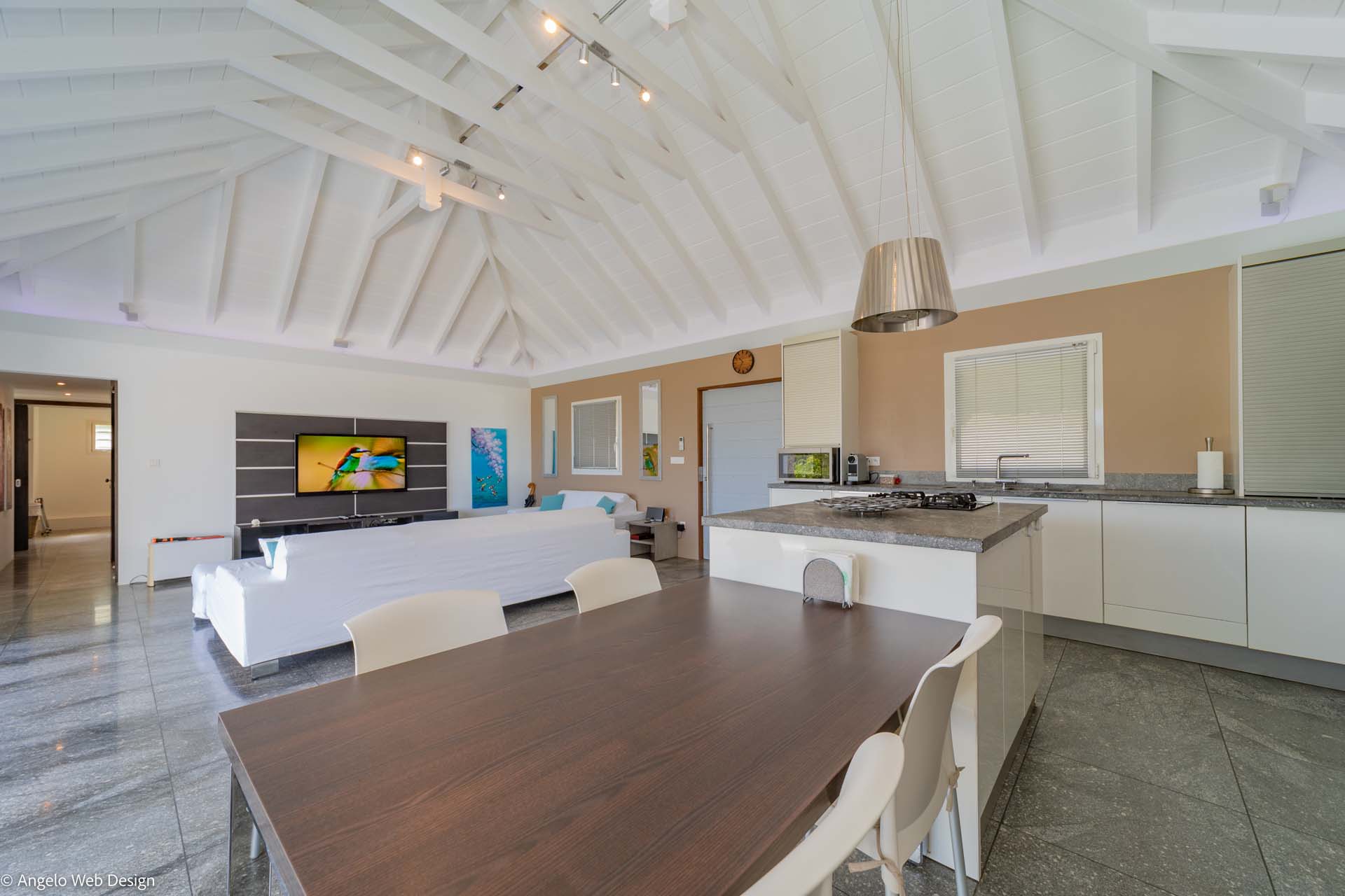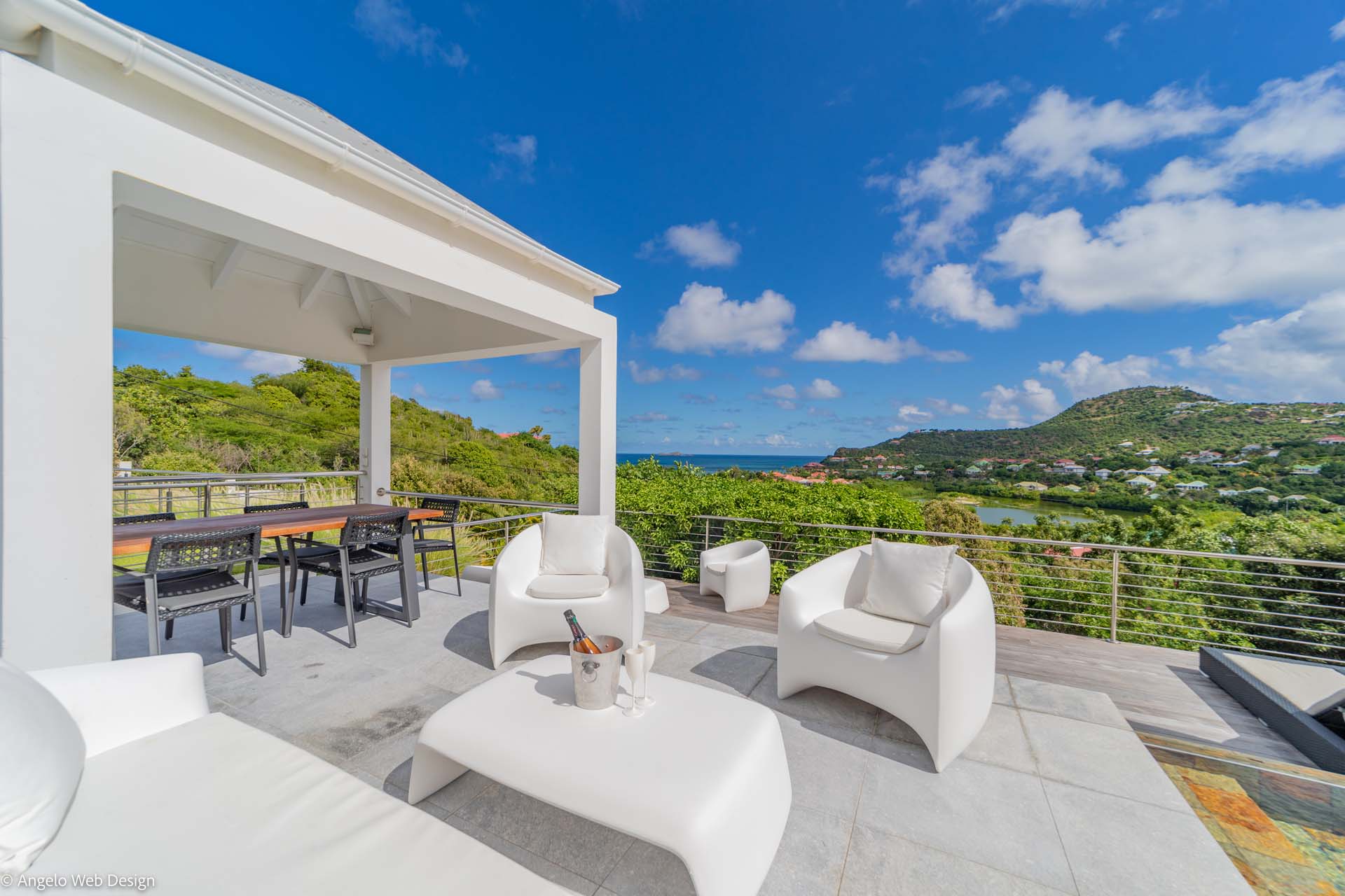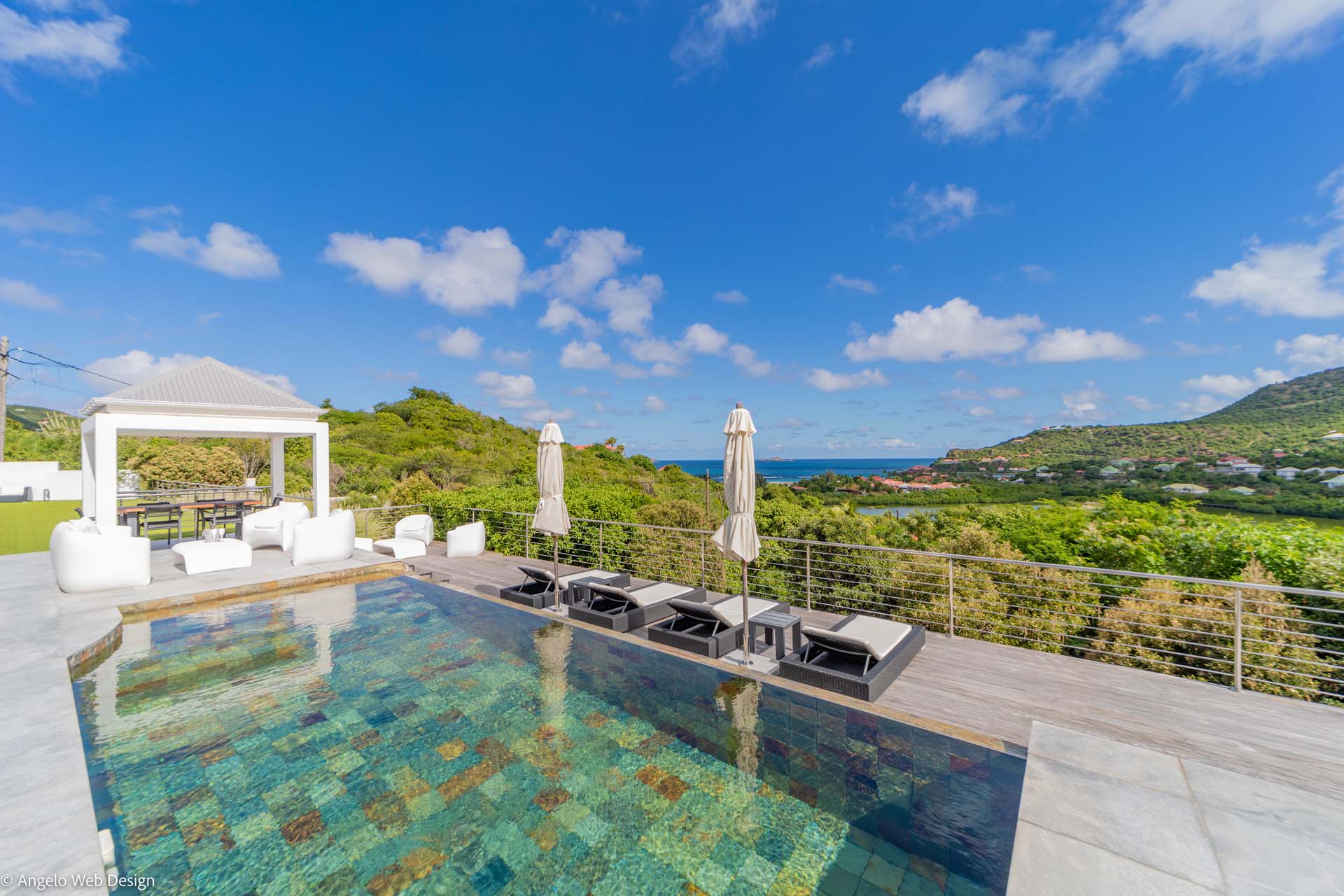 Welcome to Villa Aya, a modern 2-bedroom villa located in St-Jean within a short walk of the beach and just minutes from shopping and restaurants. Tucked away in the hills above the bay, this villa enjoys views of the Caribbean sea and rolling green hills of St. Barts. Simple luxuries and classic Caribbean living combine in this property, which has everything you’ll need for your stay. A flowing open-plan design features minimalist style, with clean lines and contemporary furnishings. The entire home blends with its outdoor living spaces, where the views will make you want to stay forever. St-Jean Beach is a short drive downhill, where you’ll also find restaurants, shops, and beach bars. The capital city of Gustavia is just 5 minutes away by car. Living Spaces: The open-plan great room at Aya Villa consists of a living room, dining area, and kitchen. The entire room opens to the pool terrace, letting you cool the space with the gentle island breeze. Soft sofas in the living room are ideal for sinking in to relax. Why not collapse here with a morning coffee and watch as the island wakes up outside? For cozy evenings, a wall-mounted TV lets you unwind with a movie or the latest series. Kitchen and Dining Room: The warm and inviting kitchen at Villa Aya has everything you need to prepare gourmet meals during your stay. Our concierge can even organize grocery pre-stocking or delivery, catered meals, or arrange a private chef service for a special occasion. A marble-topped island separates the kitchen from the rest of the great room. Next to the island is a small dining table with seating for up to 5 guests. More formal dinner parties can be hosted outside, where a dining table for 8 sits underneath a gazebo. Open-air meals with a stunning sunset are exactly what life in the Caribbean is all about. Bedrooms: Each of the bedrooms is on either side of the great room, ensuring peace, quiet, and privacy for guests. Both have a plush king-sized bed, ensuite with a spacious shower, and a flat-screen TV. Cozy and modern, both bedrooms are ideal places to recharge each evening. When morning comes, sliding glass doors lead directly onto the terrace, letting you start each day with those views of the shimmering Caribbean. For larger groups, Villa Aya can also be rented along with Villa Ivy, another 2-bedroom villa just next door. Outdoor Features: The outdoor living spaces at Aya Villa make the most of this fantastic location. The gorgeous infinity pool will be a highlight of your stay, perfectly refreshing and cool. Flat lounge beds are scattered around the pool on either side, letting you relax in the sunshine. Past the pool is a sunken terrace furnished with comfortable outdoor sofas, a nice spot to just kick back and soak up those dreamy island views. A large lawn to the left is also great for relaxing, furnished with another outdoor lounge setting. Venture outside of Villa Aya and you’ll find plenty of opportunities to experience the natural beauty of St. Barts. The stunning St-Jean Beach is just a few minutes down the hill, while the restaurants and shops of Gustavia are just over 5 minutes away by car. Amenities: Thoughtful touches help elevate your stay at Villa Aya. This wheelchair-accessible property also comes with high-speed Wi-Fi, a gas grill, a Bose sound system, and U.S. and French satellite channels. Beach chairs are also provided for days on the sand. Villa Aya in St. Barts comes with house cleaning services six days a week (except on holidays). During the Thanksgiving and December holidays, the villa rents at full occupancy rates regardless of how many bedrooms are used. For more information, contact your villa specialist today at 800-449-1553.Please fill out the form to begin your inquiry and we will connect you with a seasoned villa rental specialist.