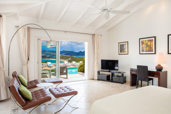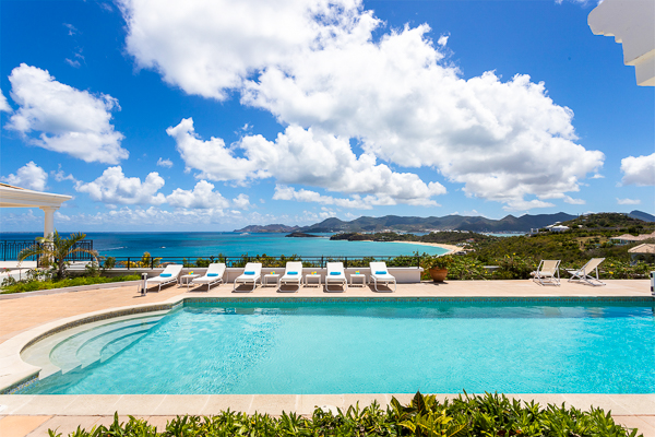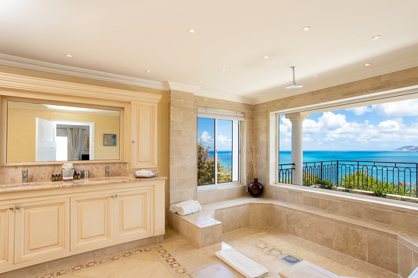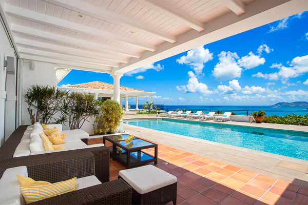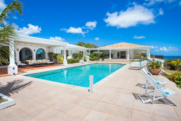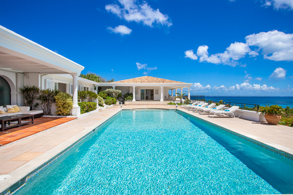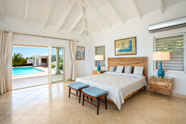 One of Villa Beaulieu’s most iconic features is its exceptionally large heated pool, a rare luxury even among the island’s finest villas. Perfectly positioned to capture sweeping sea views and the caress of ocean breezes, the pool area is the heart of the villa’s outdoor living, an ideal setting for sun-drenched days and starlit evenings. Throughout the villa, gentle trade winds offer a natural airflow, perfect to offer a cooling breeze