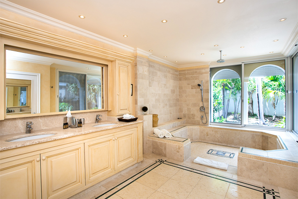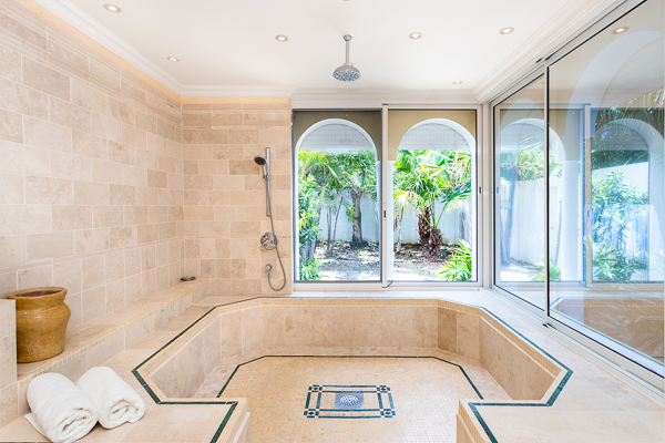 The villa features three oversized master suites, each beautifully finished in Italian tumbled marble and offering panoramic sea views, even from the en-suite bathrooms. Each suite opens onto its own private terrace and either a secluded patio or garden, allowing guests to connect with the outdoors in complete privacy.