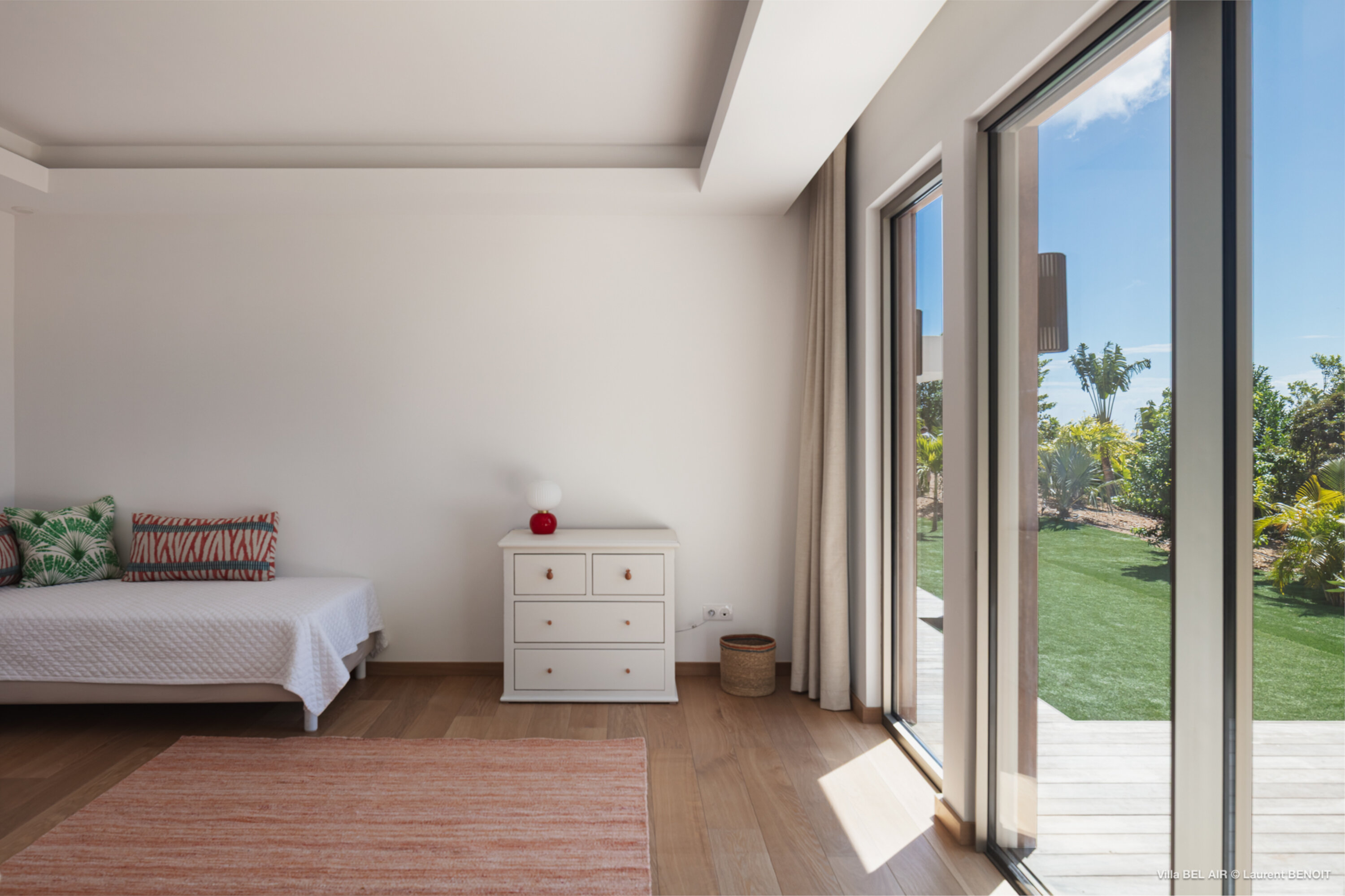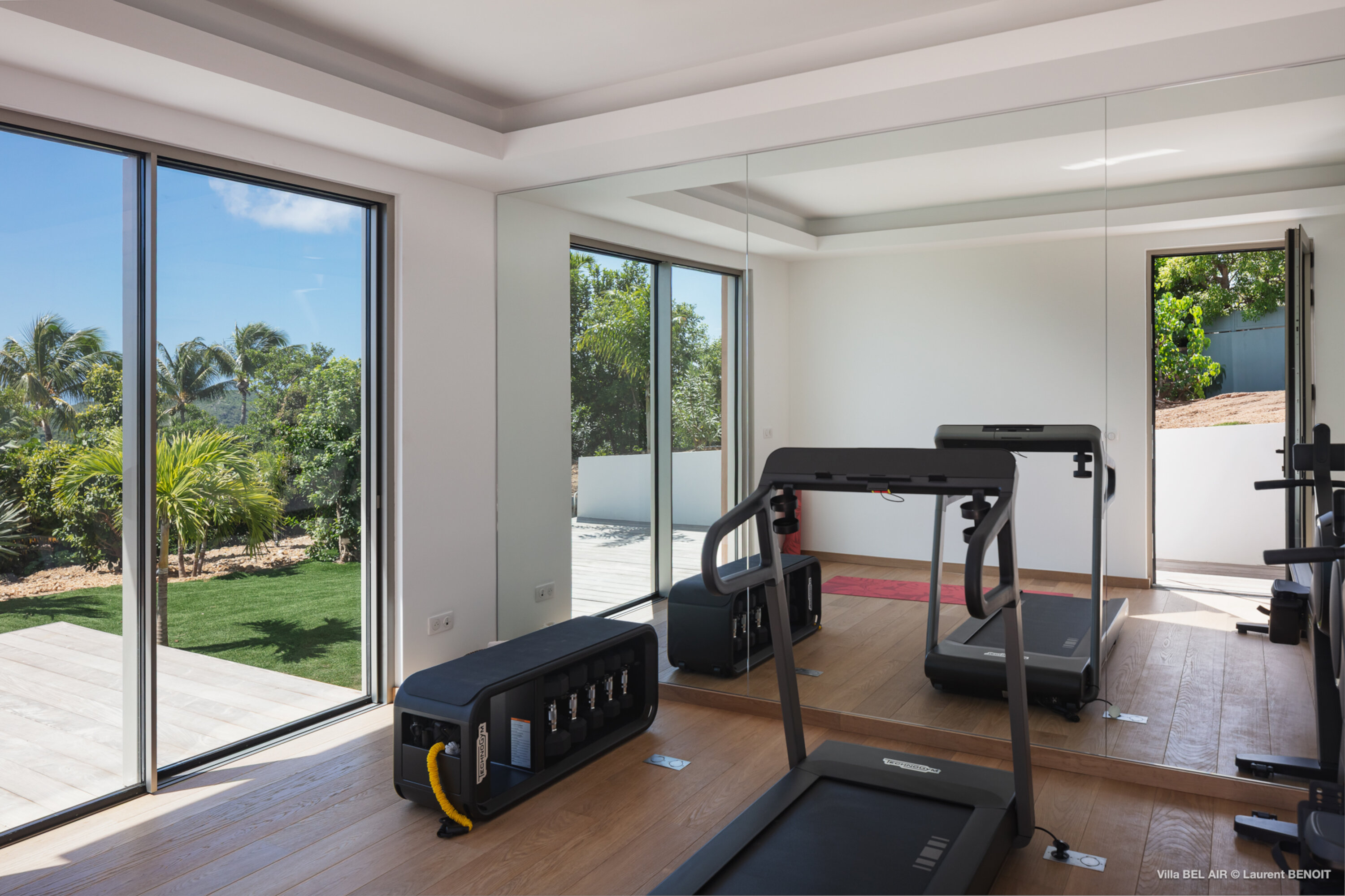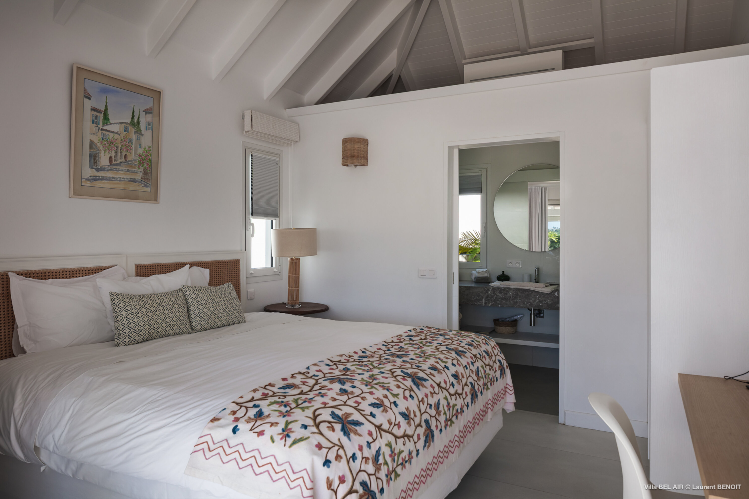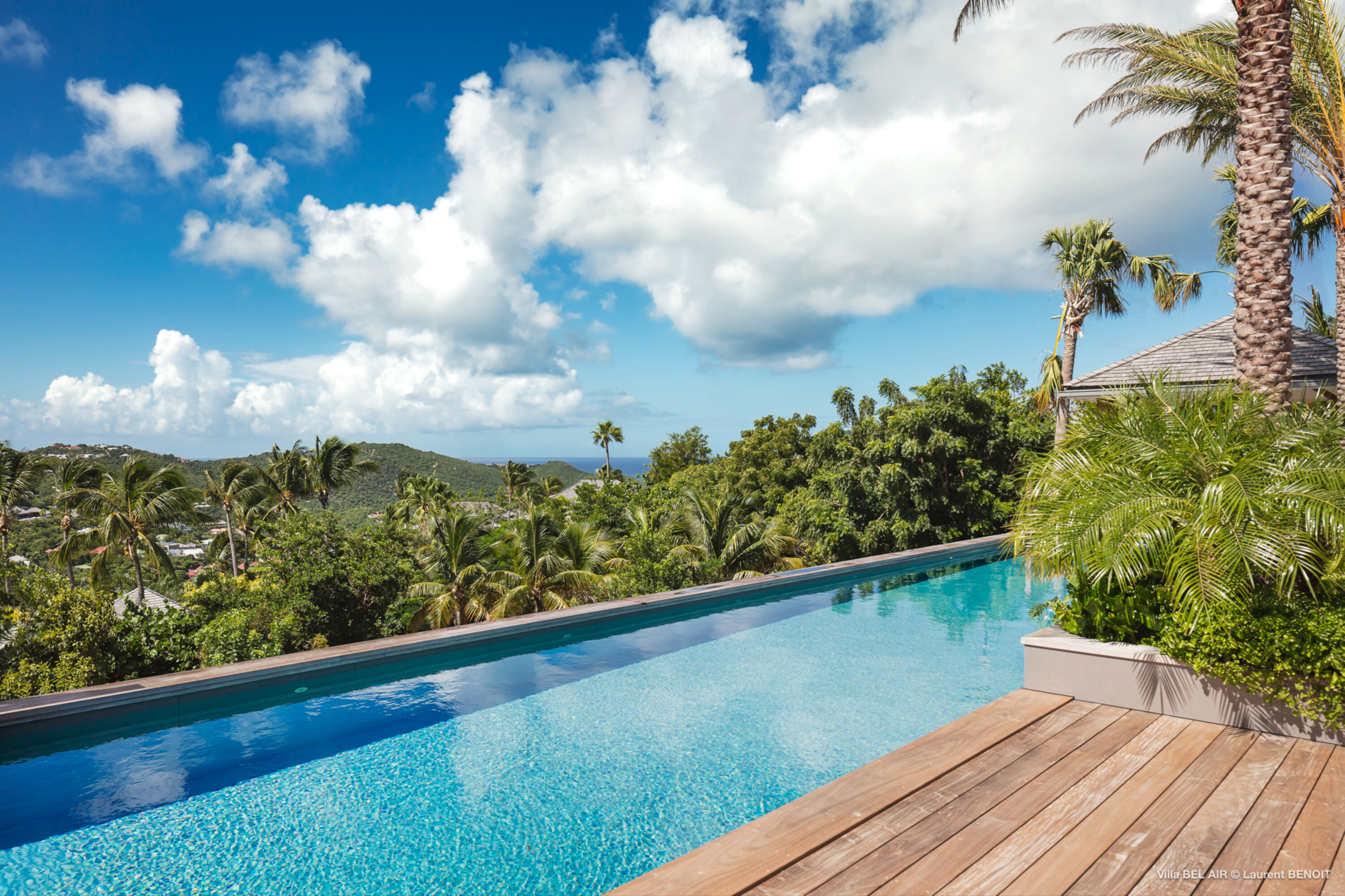 Perched high in the hills above St. Jean, Villa Bel Air (villa code: WV AIR) is a fully renovated luxury retreat offering breathtaking panoramic views over the ocean and the lush landscape of St. Barth. Bathed by the gentle trade winds and blessed with spectacular sunsets every evening, this exceptional property combines elegance, comfort, and an atmosphere that naturally invites relaxation and convivial moments. Just minutes from the vibrant beaches and boutiques of St. Jean, the villa enjoys a peaceful and private setting, making it a true haven of tranquility. The beautifully landscaped tropical gardens lining the driveway set the stage for an exceptional arrival experience. The entrance opens onto a vast covered terrace, perfectly cooled by the trade winds, which flows seamlessly into the outdoor dining area and generous sun deck overlooking magnificent hillside scenery and ocean views on both the St. Jean and Salines sides. Below, the expansive garden provides an ideal space for relaxation or children’s play. The main level features a spacious open-plan living area including a fully equipped modern kitchen, an elegant air-conditioned lounge with an entertainment center, and direct access to the pool terrace. A Sonos sound system ensures a refined ambiance both indoors and outdoors. Villa Bel Air features five spacious bedrooms, thoughtfully designed for comfort and privacy. Two identical master suites flank the swimming pool, each offering a king-size four-poster bed, dressing area and en-suite bathroom with shower. The third bedroom, located on the main level, is furnished with twin beds that can be converted into a king. The fourth and fifth bedrooms are situated on the lower level, opening onto the garden and offering generous space and serenity. The fourth bedroom features its own en-suite bathroom. The fifth bedroom presents a unique layout: while equally spacious and particularly appealing to teenagers seeking independence, its bathroom is not directly connected and is accessed via the terrace, ensuring privacy while maintaining comfort. This configuration makes it an ideal, autonomous space where younger guests can enjoy their own relaxed environment. A fully air-conditioned private gym completes the villa’s premium amenities, allowing guests to maintain their wellness routine in total comfort. With its fresh, elegant décor and warm, soothing atmosphere, Villa Bel Air is a villa that instantly makes one feel at home. Designed for sharing, laughter and unforgettable moments, it is ideal for families or groups of friends seeking an exclusive Caribbean escape where luxury meets effortless living.Please fill out the form to begin your inquiry and we will connect you with a seasoned villa rental specialist.