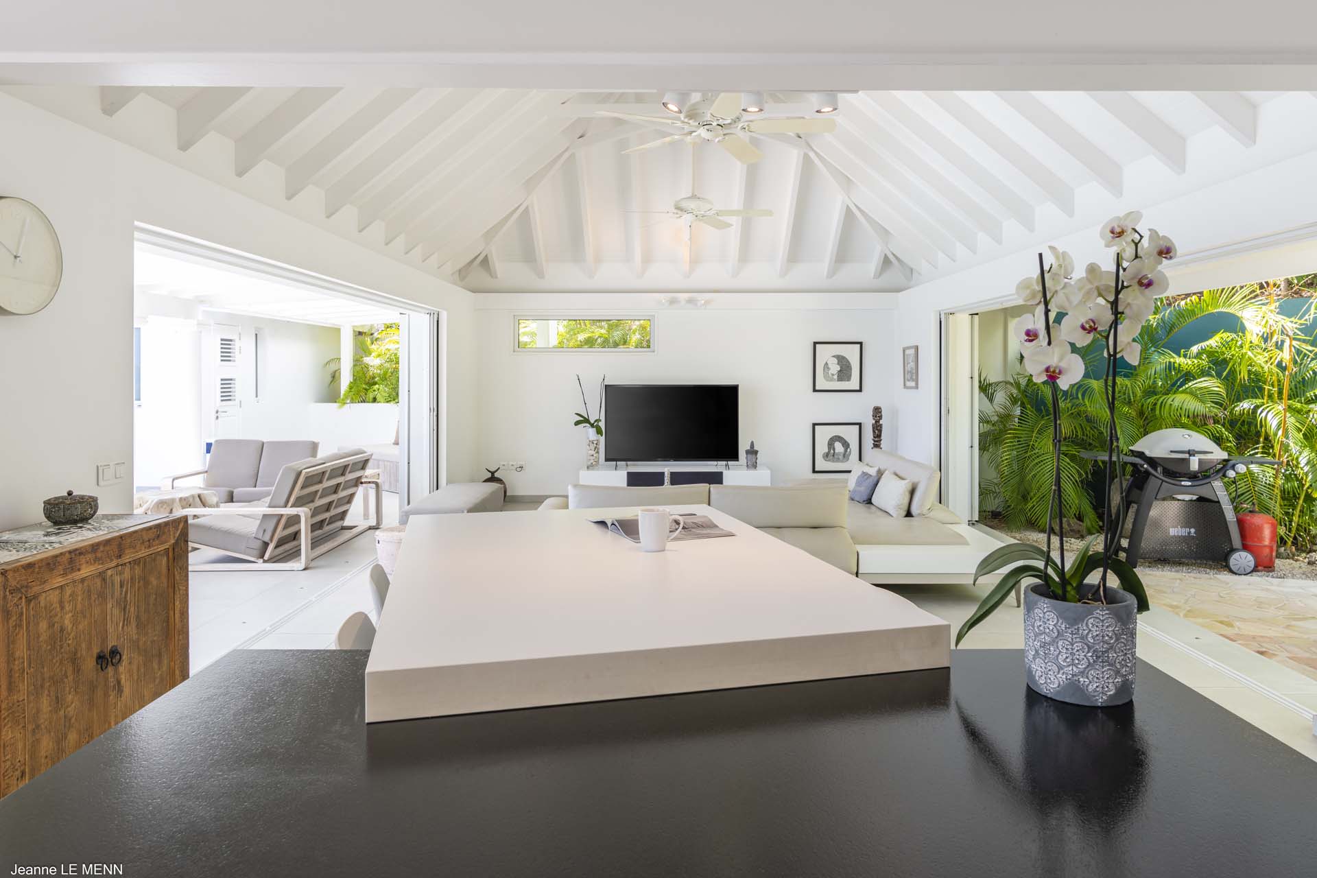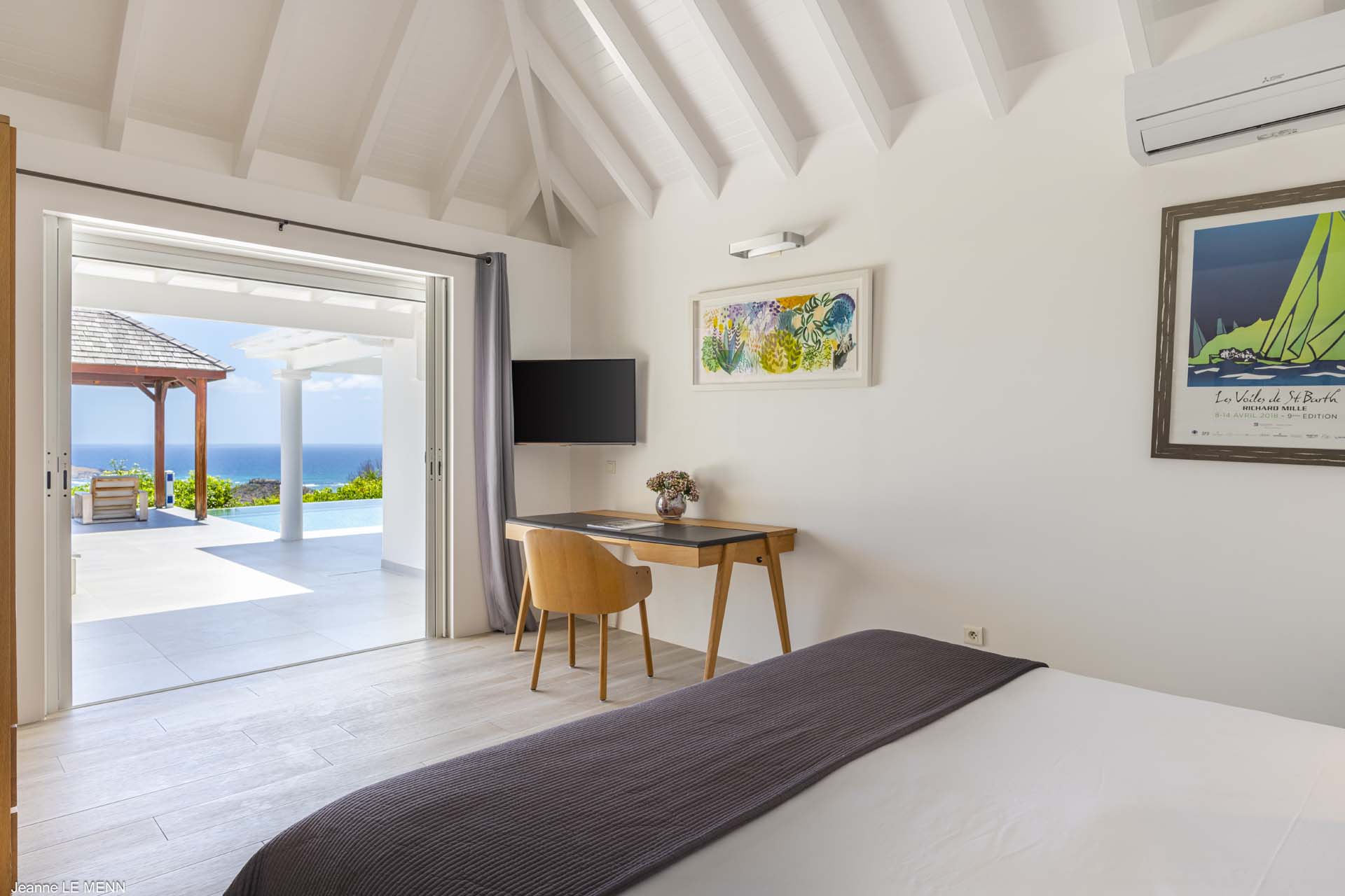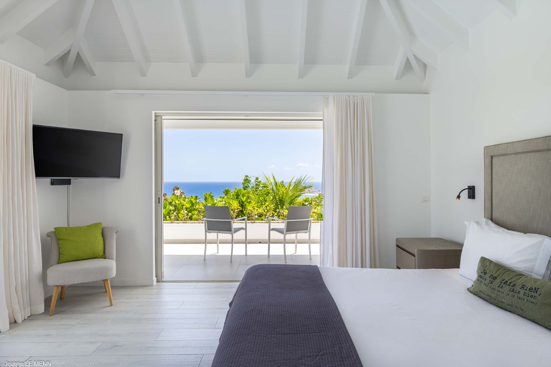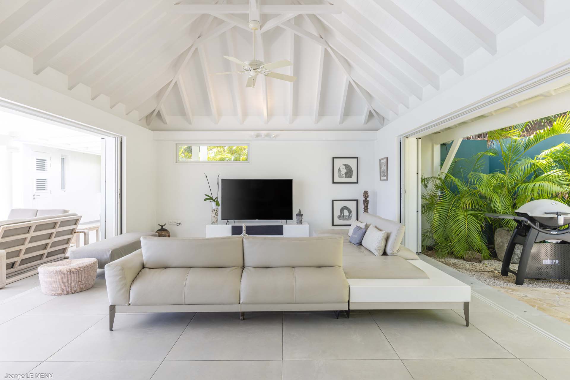 Welcome to Villa Bel Ombre (villa code: WV SCA), a luxurious 3-bedroom villa located in Marigot within minutes of several beaches. Nestled in the hillside above the marine sanctuary that is Marigot Bay, this villa enjoys incredible views of the Caribbean and the nearby island of La Tortue. Simple, minimalist, and creative, everything about the design of Villa Bel Ombre encourages you to relax. A mix of modern furnishings and a color scheme of beige and white helps to create an elegant, contemporary feel. The open-plan design makes the most of its location, offering stunning views from the living spaces, outdoor area, and bedrooms. Marigot Bay Beach is just a short walk away, a modest strip of sand on waters that are ideal for swimming and snorkeling. Before you even step inside Bel Ombre Villa, the entryway sets the tone for your stay. Serene bamboo plants adorn the stairway leading to the front door, which opens to reveal the minimalist and relaxing great room. The comfortably furnished living area opens on both sides, letting you enjoy the soft ocean breezes blowing through the home. The soft sofas in front of the large flat-screen TV are ideal for enjoying some downtime or a quiet movie night inside. A modern and sleek kitchen at Villa Bel Ombre has everything you’ll need to create gourmet meals during your stay. Our concierge can even organize grocery pre-stocking or delivery, catered meals, or arrange private chef service for a special occasion. A breakfast bar is an ideal spot for a quick espresso before diving into the pool. Next to it is the indoor dining room with seating for 8 guests, ideal for hosting dinner parties. For alfresco meals, a covered terrace has an outdoor dining area poolside. All 3 bedrooms at Villa Bel Ombre open onto the pool terrace and feature stunning views over Marigot Bay. Each has a plush king-sized bed, air-conditioning screened windows for natural breezes, and an ensuite. The master bedroom is disconnected from the main house, accessed via the pool terrace. On the other side is a private terrace area, with a heated Jacuzzi and seating area shrouded by lush vegetation. It’s a luxurious hideaway within the villa, ideal for those after a bit more privacy. The other two bedrooms are on the other side of the pool terrace. The furnishings are modern and comfortable, offering a peaceful night’s sleep each evening. It’s the outdoor area where Bel Ombre Villa really shines. A covered terrace has comfortable rattan sofas, ideal for everything from your morning coffee to a lazy afternoon nap. Steps away is the heated infinity pool, with steps leading into the water and a sitting ledge for sunbathing. Sunseekers will want to stake out a spot on one of the loungers on the stone terrace. A gas grill encourages evening cookouts, grilling up fresh fish and succulent steaks as the sunset colors the sea and sky. For days at the beach, a short walk will bring you to the sand at Marigot Bay Beach. A few minutes to the east lies Grand Cul de Sac Bay, with three hotels, waterfront restaurants, and watersports shops. A few minutes to the west lies tranquil Lorient Bay. The village of St Jean is only 10 minutes away, home to high-end shops, a wine store, restaurants, and of course a world-class beach. During the Thanksgiving and December holidays, the villa rents at the full occupancy rate regardless of how many bedrooms are used.Please fill out the form to begin your inquiry and we will connect you with a seasoned villa rental specialist.
