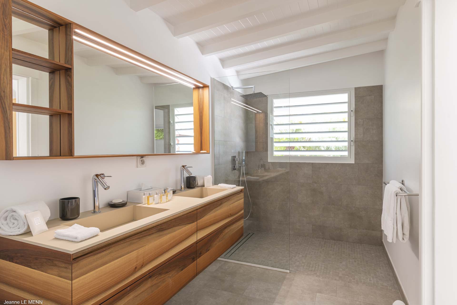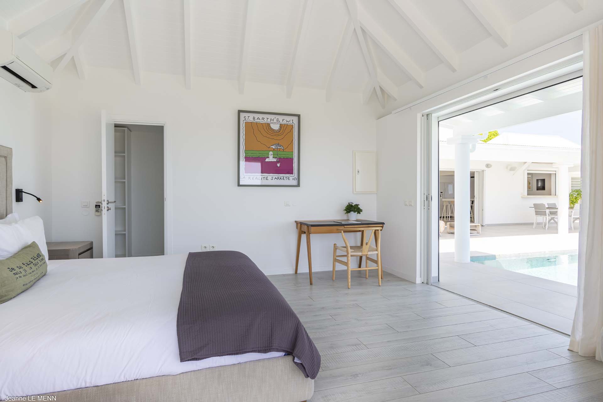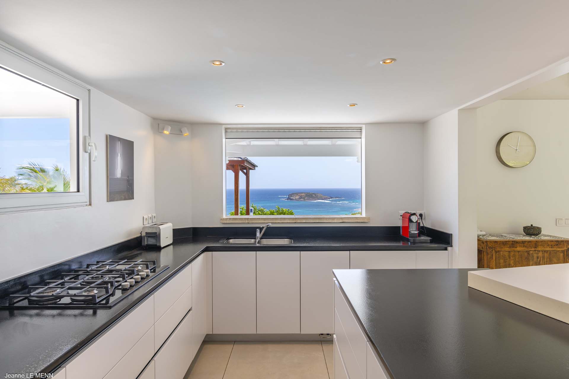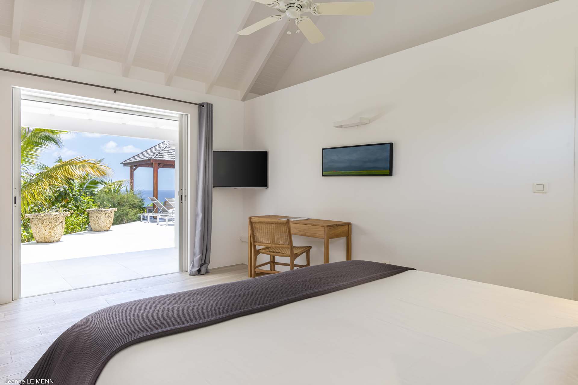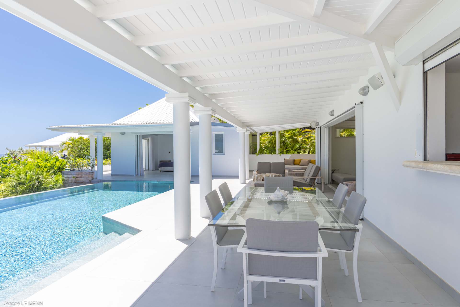 Welcome to Villa Bel Ombre (villa code: WV SCA), a luxurious 3-bedroom villa located in Marigot within minutes of several beaches. Nestled in the hillside above the marine sanctuary that is Marigot Bay, this villa enjoys incredible views of the Caribbean and the nearby island of La Tortue. Simple, minimalist, and creative, everything about the design of Villa Bel Ombre encourages you to relax. A mix of modern furnishings and a color scheme of beige and white helps to create an elegant, contemporary feel. The open-plan design makes the most of its location, offering stunning views from the living spaces, outdoor area, and bedrooms. Marigot Bay Beach is just a short walk away, a modest strip of sand on waters that are ideal for swimming and snorkeling. Before you even step inside Bel Ombre Villa, the entryway sets the tone for your stay. Serene bamboo plants adorn the stairway leading to the front door, which opens to reveal the minimalist and relaxing great room. The comfortably furnished living area opens on both sides, letting you enjoy the soft ocean breezes blowing through the home. The soft sofas in front of the large flat-screen TV are ideal for enjoying some downtime or a quiet movie night inside. A modern and sleek kitchen at Villa Bel Ombre has everything you’ll need to create gourmet meals during your stay. Our concierge can even organize grocery pre-stocking or delivery, catered meals, or arrange private chef service for a special occasion. A breakfast bar is an ideal spot for a quick espresso before diving into the pool. Next to it is the indoor dining room with seating for 8 guests, ideal for hosting dinner parties. For alfresco meals, a covered terrace has an outdoor dining area poolside. All 3 bedrooms at Villa Bel Ombre open onto the pool terrace and feature stunning views over Marigot Bay. Each has a plush king-sized bed, air-conditioning screened windows for natural breezes, and an ensuite. The master bedroom is disconnected from the main house, accessed via the pool terrace. On the other side is a private terrace area, with a heated Jacuzzi and seating area shrouded by lush vegetation. It’s a luxurious hideaway within the villa, ideal for those after a bit more privacy. The other two bedrooms are on the other side of the pool terrace. The furnishings are modern and comfortable, offering a peaceful night’s sleep each evening. It’s the outdoor area where Bel Ombre Villa really shines. A covered terrace has comfortable rattan sofas, ideal for everything from your morning coffee to a lazy afternoon nap. Steps away is the heated infinity pool, with steps leading into the water and a sitting ledge for sunbathing. Sunseekers will want to stake out a spot on one of the loungers on the stone terrace. A gas grill encourages evening cookouts, grilling up fresh fish and succulent steaks as the sunset colors the sea and sky. For days at the beach, a short walk will bring you to the sand at Marigot Bay Beach. A few minutes to the east lies Grand Cul de Sac Bay, with three hotels, waterfront restaurants, and watersports shops. A few minutes to the west lies tranquil Lorient Bay. The village of St Jean is only 10 minutes away, home to high-end shops, a wine store, restaurants, and of course a world-class beach. During the Thanksgiving and December holidays, the villa rents at the full occupancy rate regardless of how many bedrooms are used.Please fill out the form to begin your inquiry and we will connect you with a seasoned villa rental specialist.
