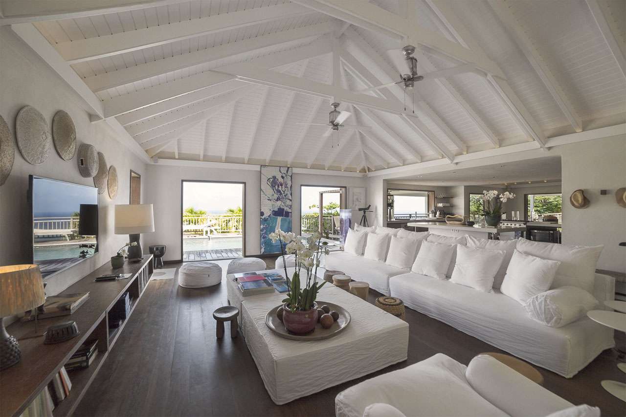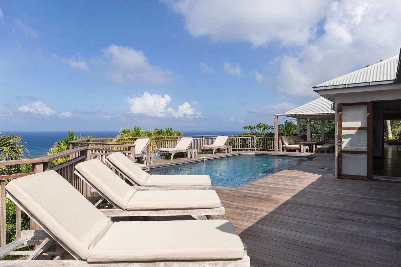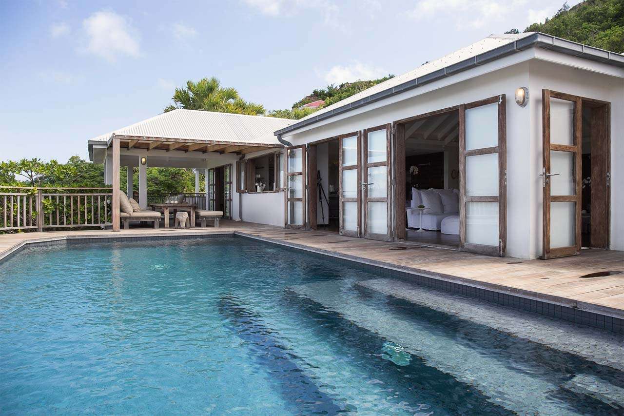 Welcome to Villa Bibi (villa code: WV BIB), a stylish 5-bedroom property overlooking Grand Cul-de-Sac Bay and the ocean beyond. Located in the hills of Vitet on St. Barts, this villa is within minutes of world-class beaches and restaurants. Inside, Villa Bibi offers plenty of peace, privacy, and luxury for your island getaway. Natural materials like Brazilian wood and white cotton canvas give the entire property a feeling of high-end elegance. Located in the Vitet neighborhood of St. Barts, the beaches at Grand Cul-de-Sac and Marigot Bay are both just a short drive away. This villa enjoys stunning views of the offshore island of La Tortue, rising from the shimmering Caribbean. The main living spaces at Bibi Villa feature an open-plan design, combining the living room with the villa’s kitchen and dining area. The entire great room opens on three sides to three terrace areas, washing the space in the cool island breezes. Striking artwork and prints adorning the walls add a contemporary touch. The comfortable living room is taken up by large, soft sofas, and magnificent spots to lounge around with a cool drink or a good book. The large flat-screen TV is ideal for quiet movie nights with family and friends. After a day at the pool or the beach, Villa Bibi’s well-equipped kitchen easily lets you prepare a gourmet feast. Our concierge can organize grocery pre-stocking or delivery, catered meals, or arrange private chef service for a special occasion. An interior dining area is next to the kitchen, ideal for festive dinners that last long into the evening. Doors open to the pool terrace, washing the space with cool evening light and ocean breezes. If alfresco dining is more your style, on the back terrace there is a covered dining area shrouded by tropical foliage. This is a magnificent spot for more atmospheric dinners, with candlelight flickering off the lush palms. Both dining areas have seating for up to 12 guests. Each of the 5 bedrooms at Bibi Villa is quiet, peaceful, and comfortable. Crisp white linens adorn the beds, while gorgeous wooden accents bring a rustic jungle touch to each room. Two larger bedrooms each have a plush king-sized bed. One of the rooms is accessed from the pool deck, while the other is accessed from the back terrace. Both have spacious ensuites. Also accessed from the pool terrace are two smaller bedrooms, each with a pair of twin beds (can be configured as a king) and ensuite. The fifth bedroom is located on the lower level. Every bedroom also has screened windows, letting you fall asleep in the fresh evening air after a long day of sun, sand, and great food. The pool terrace at Villa Bibi features alluring views over Grand Cul-de-Sac and the rugged coastline of St. Barts. The inviting swimming pool offers an easy way to refresh yourself during the hottest parts of the day. Scattered around the wooden deck are loungers, ideal for soaking up the gorgeous island weather. Next to the pool is a covered terrace with a lounge area, the best seat in the house for an evening cocktail soiree with the sunset. For days at the beach, the stretches of sand at Marigot Bay and Grand Cul-de-Sac are both within a 10-minute drive. Calm water and soft white sand make for some of the prettiest beaches on St. Barts.Please fill out the form to begin your inquiry and we will connect you with a seasoned villa rental specialist.