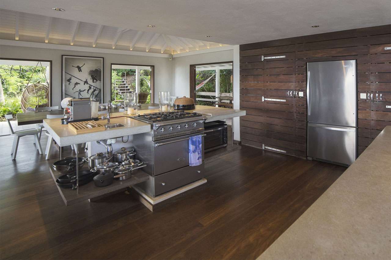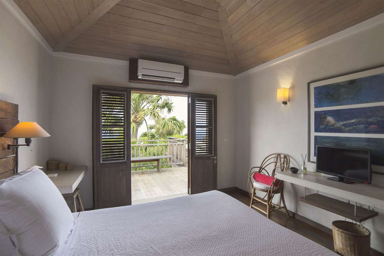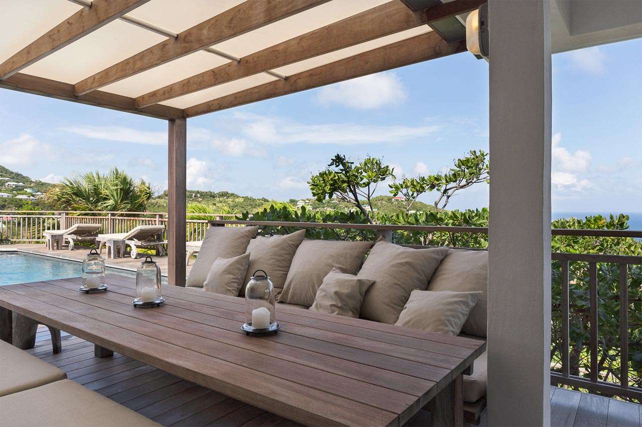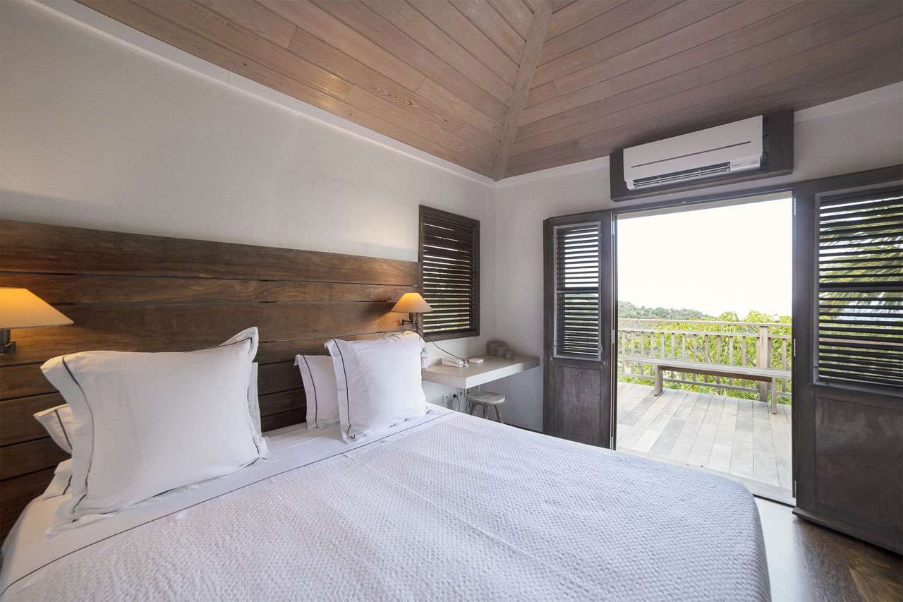 Welcome to Villa Bibi (villa code: WV BIB), a stylish 5-bedroom property overlooking Grand Cul-de-Sac Bay and the ocean beyond. Located in the hills of Vitet on St. Barts, this villa is within minutes of world-class beaches and restaurants. Inside, Villa Bibi offers plenty of peace, privacy, and luxury for your island getaway. Natural materials like Brazilian wood and white cotton canvas give the entire property a feeling of high-end elegance. Located in the Vitet neighborhood of St. Barts, the beaches at Grand Cul-de-Sac and Marigot Bay are both just a short drive away. This villa enjoys stunning views of the offshore island of La Tortue, rising from the shimmering Caribbean. The main living spaces at Bibi Villa feature an open-plan design, combining the living room with the villa’s kitchen and dining area. The entire great room opens on three sides to three terrace areas, washing the space in the cool island breezes. Striking artwork and prints adorning the walls add a contemporary touch. The comfortable living room is taken up by large, soft sofas, and magnificent spots to lounge around with a cool drink or a good book. The large flat-screen TV is ideal for quiet movie nights with family and friends. After a day at the pool or the beach, Villa Bibi’s well-equipped kitchen easily lets you prepare a gourmet feast. Our concierge can organize grocery pre-stocking or delivery, catered meals, or arrange private chef service for a special occasion. An interior dining area is next to the kitchen, ideal for festive dinners that last long into the evening. Doors open to the pool terrace, washing the space with cool evening light and ocean breezes. If alfresco dining is more your style, on the back terrace there is a covered dining area shrouded by tropical foliage. This is a magnificent spot for more atmospheric dinners, with candlelight flickering off the lush palms. Both dining areas have seating for up to 12 guests. Each of the 5 bedrooms at Bibi Villa is quiet, peaceful, and comfortable. Crisp white linens adorn the beds, while gorgeous wooden accents bring a rustic jungle touch to each room. Two larger bedrooms each have a plush king-sized bed. One of the rooms is accessed from the pool deck, while the other is accessed from the back terrace. Both have spacious ensuites. Also accessed from the pool terrace are two smaller bedrooms, each with a pair of twin beds (can be configured as a king) and ensuite. The fifth bedroom is located on the lower level. Every bedroom also has screened windows, letting you fall asleep in the fresh evening air after a long day of sun, sand, and great food. The pool terrace at Villa Bibi features alluring views over Grand Cul-de-Sac and the rugged coastline of St. Barts. The inviting swimming pool offers an easy way to refresh yourself during the hottest parts of the day. Scattered around the wooden deck are loungers, ideal for soaking up the gorgeous island weather. Next to the pool is a covered terrace with a lounge area, the best seat in the house for an evening cocktail soiree with the sunset. For days at the beach, the stretches of sand at Marigot Bay and Grand Cul-de-Sac are both within a 10-minute drive. Calm water and soft white sand make for some of the prettiest beaches on St. Barts.Please fill out the form to begin your inquiry and we will connect you with a seasoned villa rental specialist.