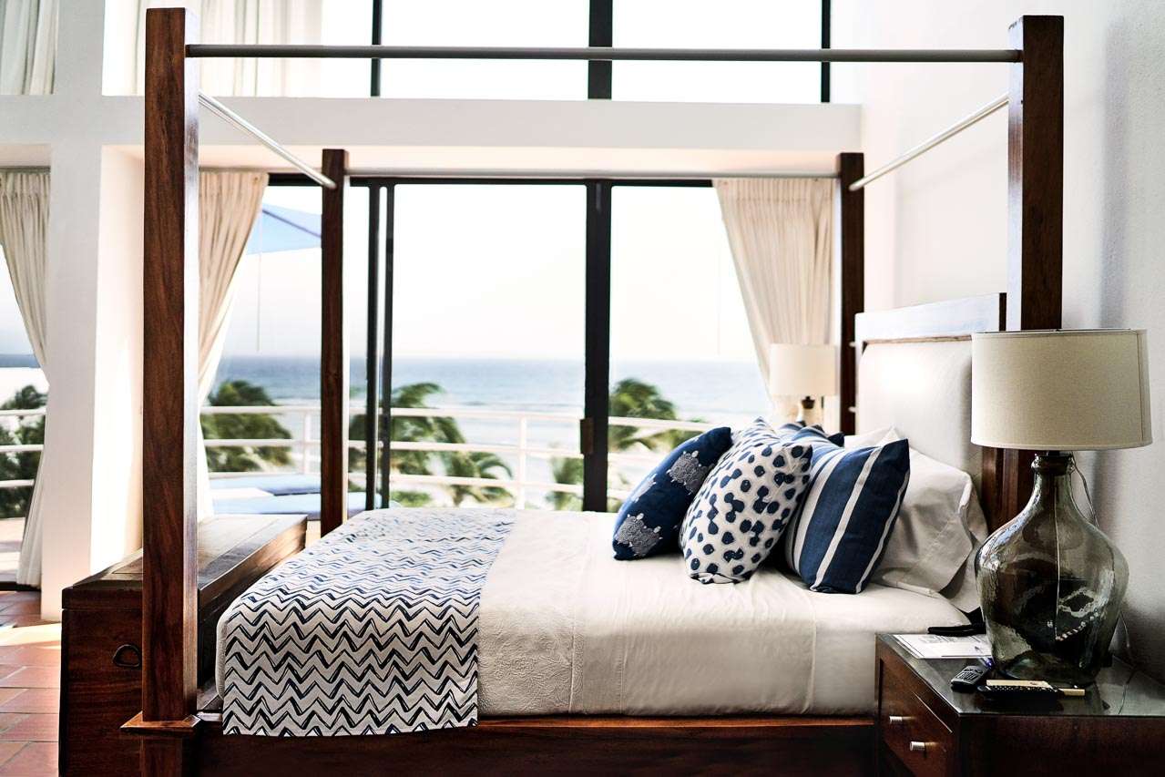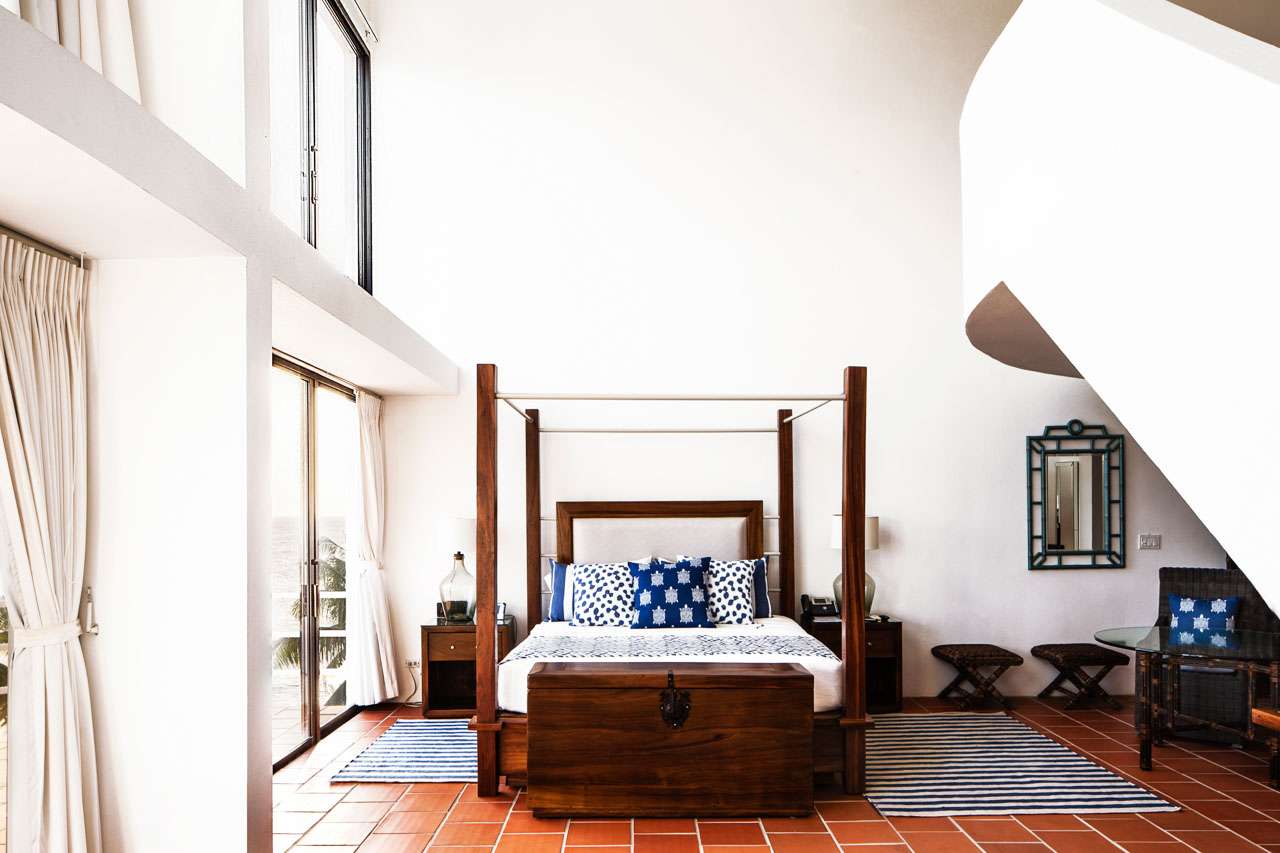There are 5 bedrooms at Villa Blue Diamond, tranquil and relaxing spaces to recharge each evening. The calm island ambiance continues in each, with contemporary neutral color schemes, elegant wooden furnishings, and splashes of ocean blue.
