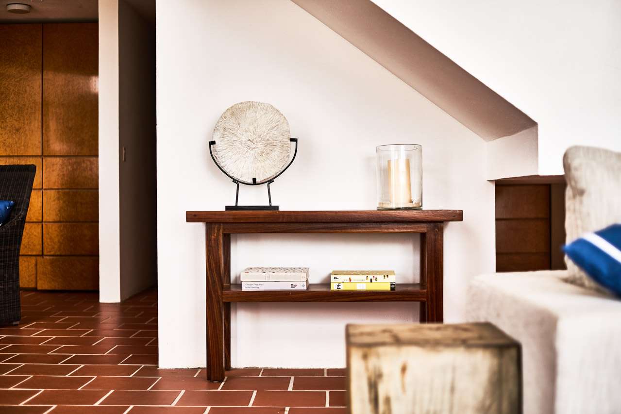 The main living area has comfortable sofas, with beautiful reclaimed wooden décor. Another seating area offers even more space to unwind, whether it’s with your morning coffee or an afternoon aperitif.