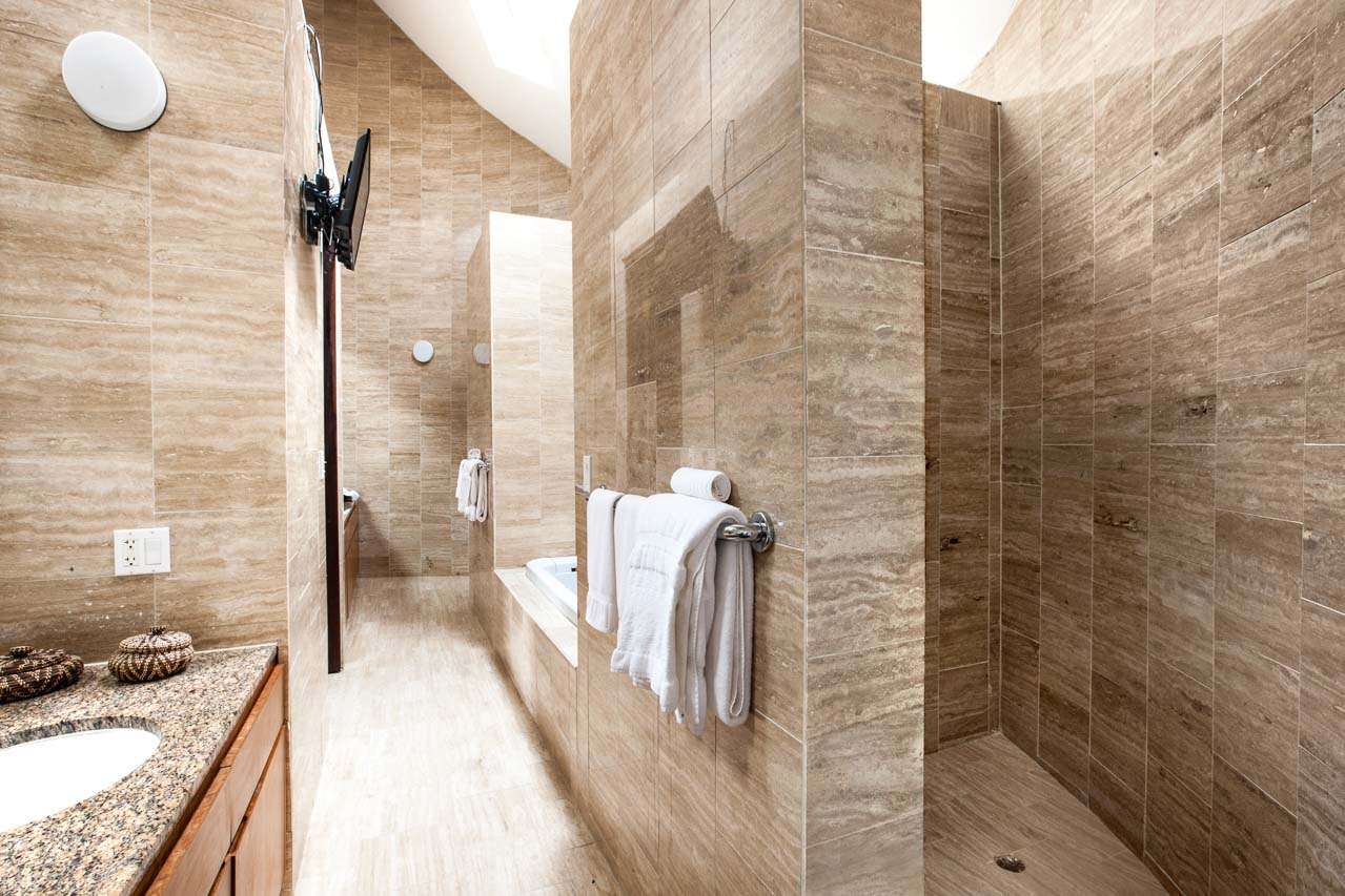 The four other bedrooms all come with an ensuite bathroom with a jacuzzi tub, a relaxing spot to wash off the salt and sand at the end of each day.