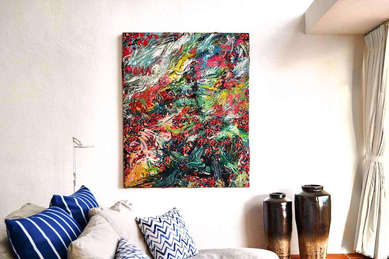A gorgeous grand room is airy and spacious, with plenty of natural light. Soaring ceilings cover a living room, sitting area, and dining table. A grand piano is a striking feature, while the unique antiques create a cozy and contemporary feel.