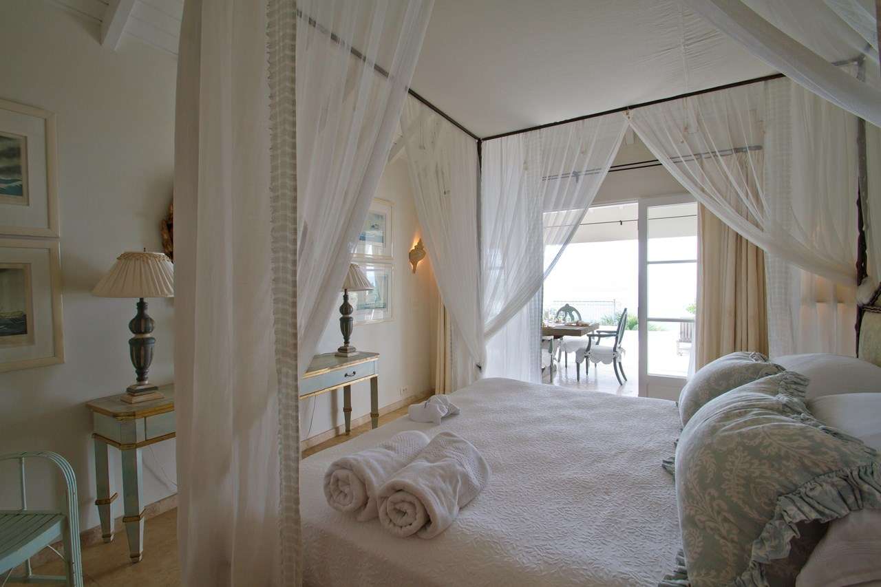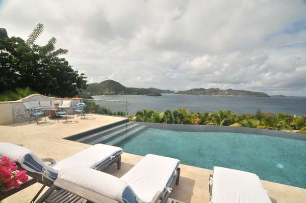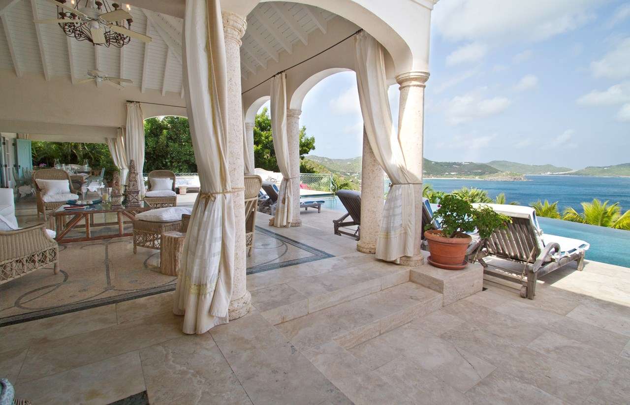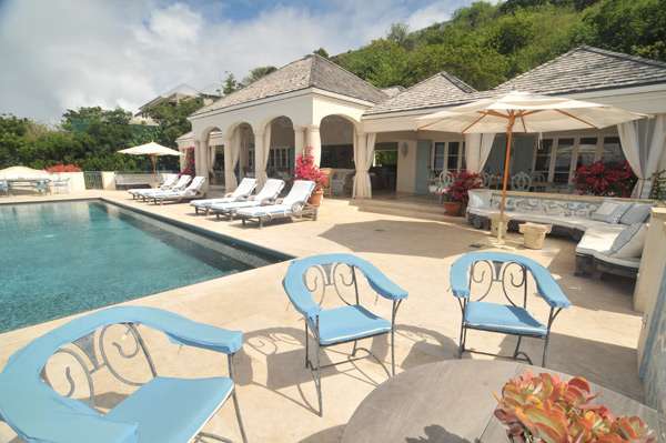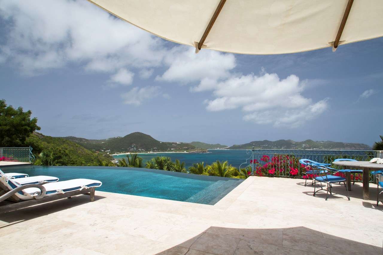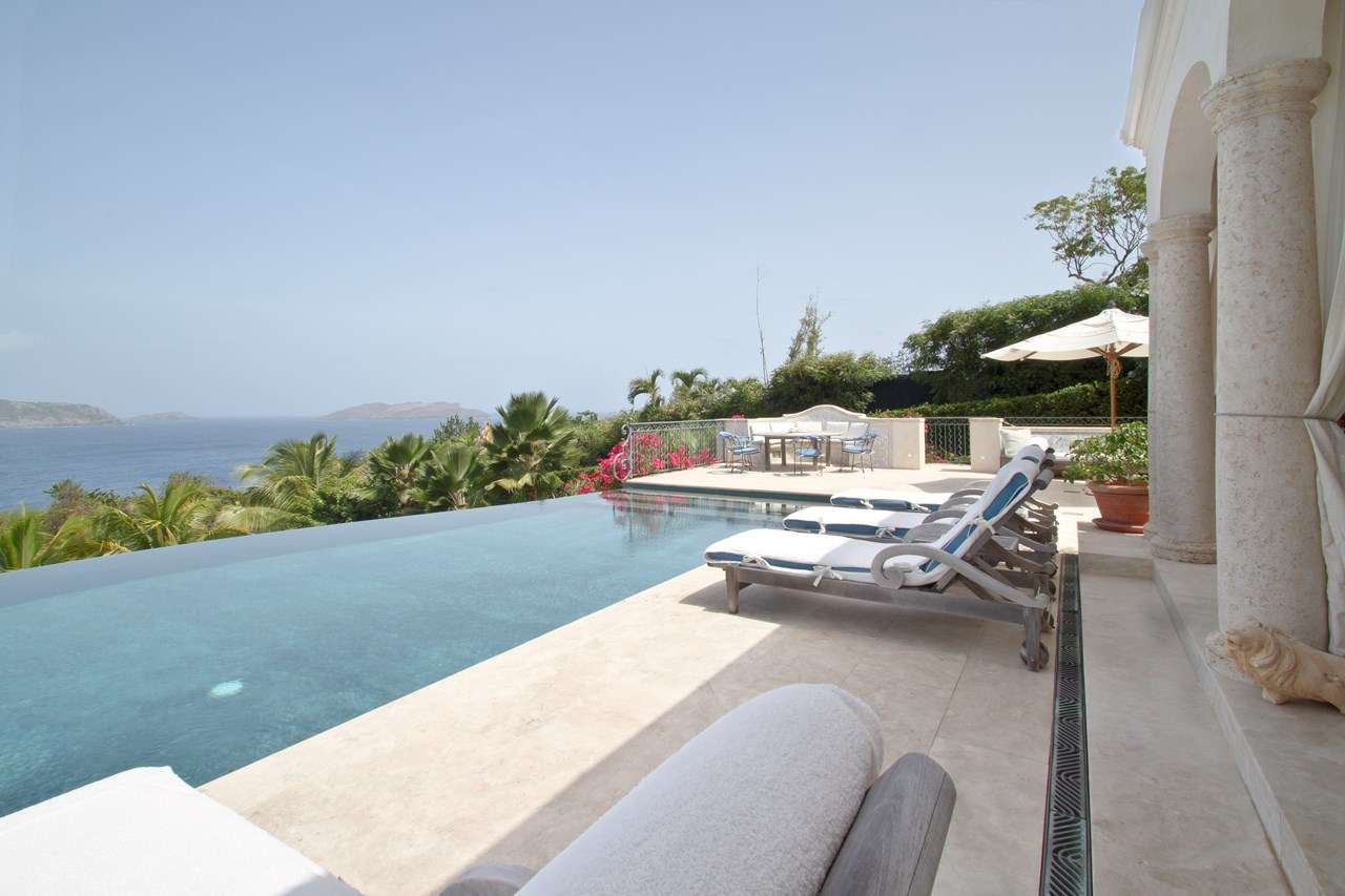 Villa Bon Temps is a 6-bedroom villa located in Pointe Milou within minutes of several beaches and shopping. This villa on the west side enjoys spectacular sunsets, and views of the ocean and nearby islands. Surrounded by lush tropical gardens, the villa is decorated in white, soft greens and blues, custom mosaic floors in the living area, and limestone floors in the bedrooms and terraces. The kitchen has a marble-top bar, and unique Italian and French glassware for entertaining. Both the living area and kitchen open to the terrace and large infinity edge pool, which appears to disappear into the ocean. Two curved, stone banquettes are located on each side of the pool. All 6 air-conditioned bedrooms have high ceilings, stone-tiled bathrooms, and views. Four bedrooms are located on the main level, and have king-size beds and ensuite bathrooms. Two of these bedrooms have private terraces and outdoor showers. On the lower level are 2 bedrooms with private, covered porches. A well-equipped fitness room is located on the lower level and opens to a terrace. An entrance gate adds extra privacy. The house also has WiFi, a fax machine, and U.S. satellite TV. Villa Bon Temps comes with continental breakfast and house cleaning services six days a week, except on holidays. During the December holidays, the villa rents at the full occupancy rate regardless of how many bedrooms are used. This villa welcomes children upon written request.Please fill out the form to begin your inquiry and we will connect you with a seasoned villa rental specialist.