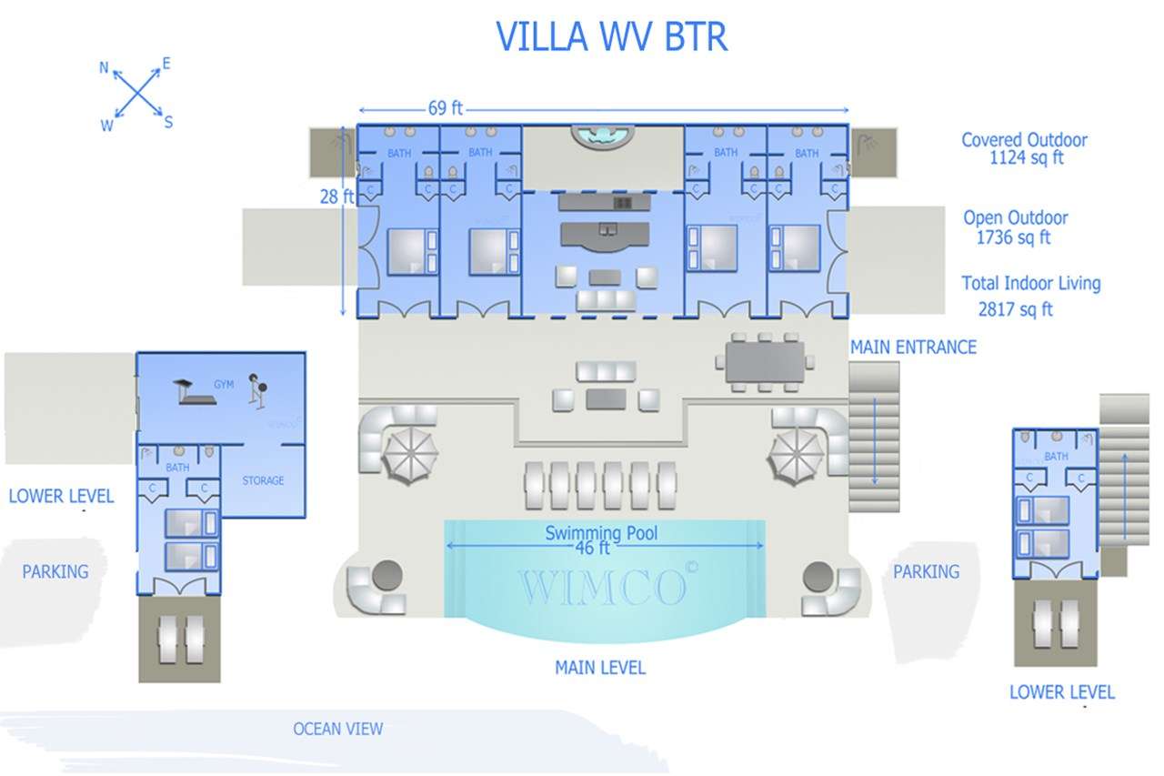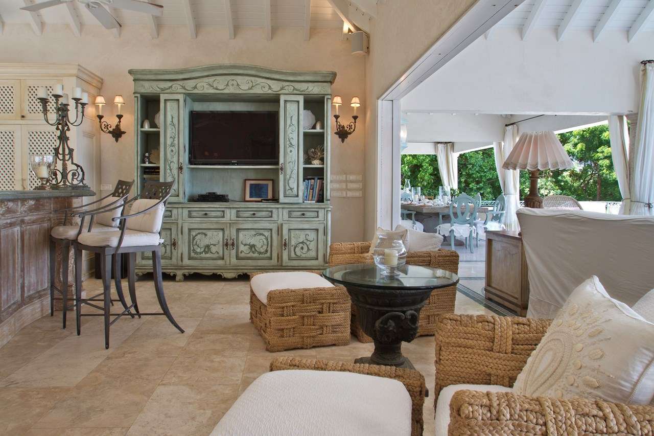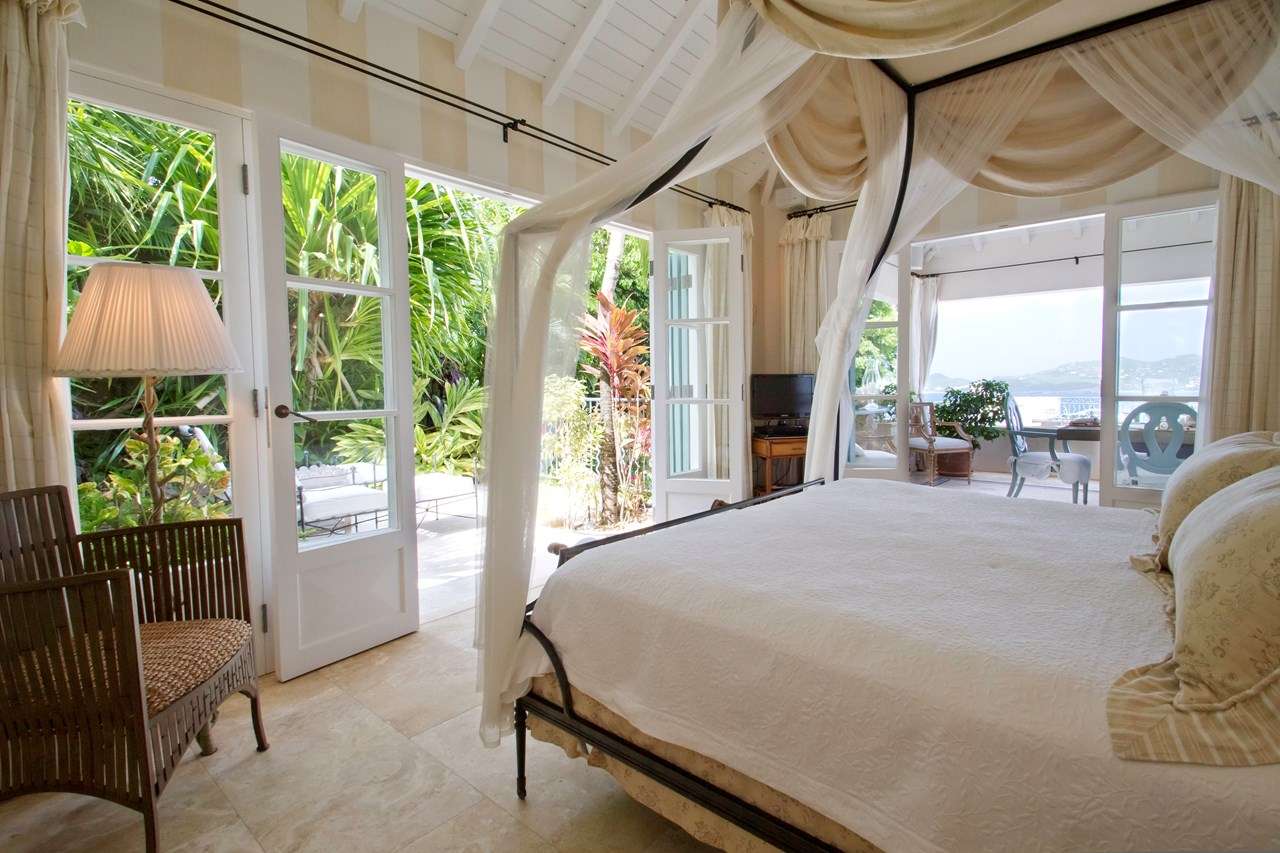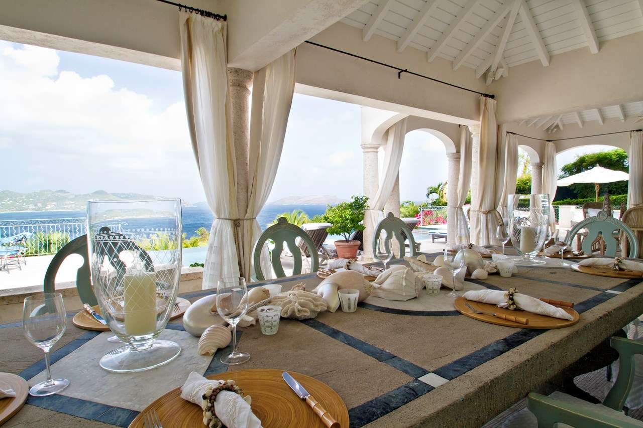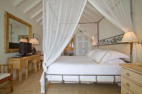 Villa Bon Temps is a 6-bedroom villa located in Pointe Milou within minutes of several beaches and shopping. This villa on the west side enjoys spectacular sunsets, and views of the ocean and nearby islands. Surrounded by lush tropical gardens, the villa is decorated in white, soft greens and blues, custom mosaic floors in the living area, and limestone floors in the bedrooms and terraces. The kitchen has a marble-top bar, and unique Italian and French glassware for entertaining. Both the living area and kitchen open to the terrace and large infinity edge pool, which appears to disappear into the ocean. Two curved, stone banquettes are located on each side of the pool. All 6 air-conditioned bedrooms have high ceilings, stone-tiled bathrooms, and views. Four bedrooms are located on the main level, and have king-size beds and ensuite bathrooms. Two of these bedrooms have private terraces and outdoor showers. On the lower level are 2 bedrooms with private, covered porches. A well-equipped fitness room is located on the lower level and opens to a terrace. An entrance gate adds extra privacy. The house also has WiFi, a fax machine, and U.S. satellite TV. Villa Bon Temps comes with continental breakfast and house cleaning services six days a week, except on holidays. During the December holidays, the villa rents at the full occupancy rate regardless of how many bedrooms are used. This villa welcomes children upon written request.Please fill out the form to begin your inquiry and we will connect you with a seasoned villa rental specialist.