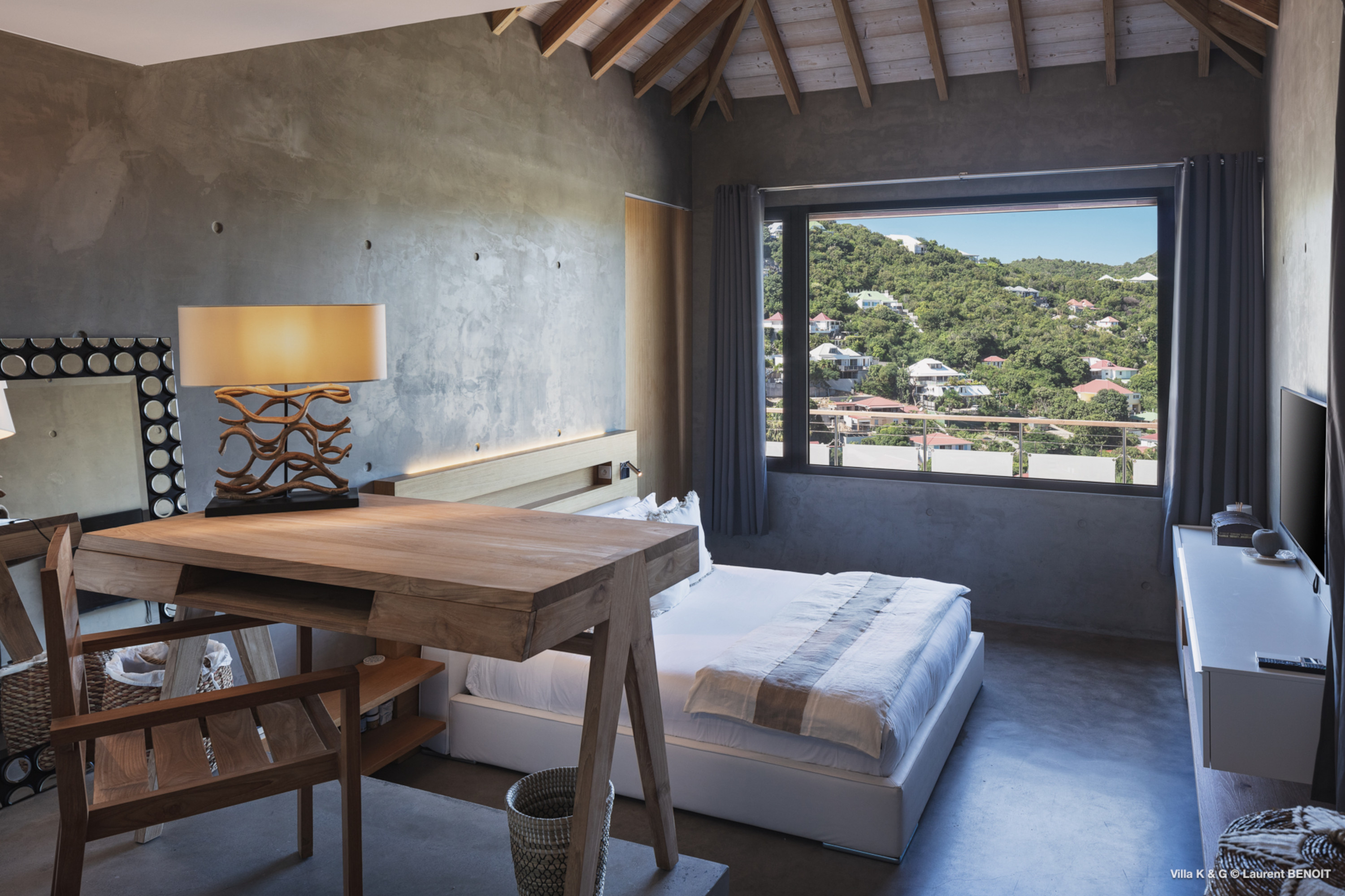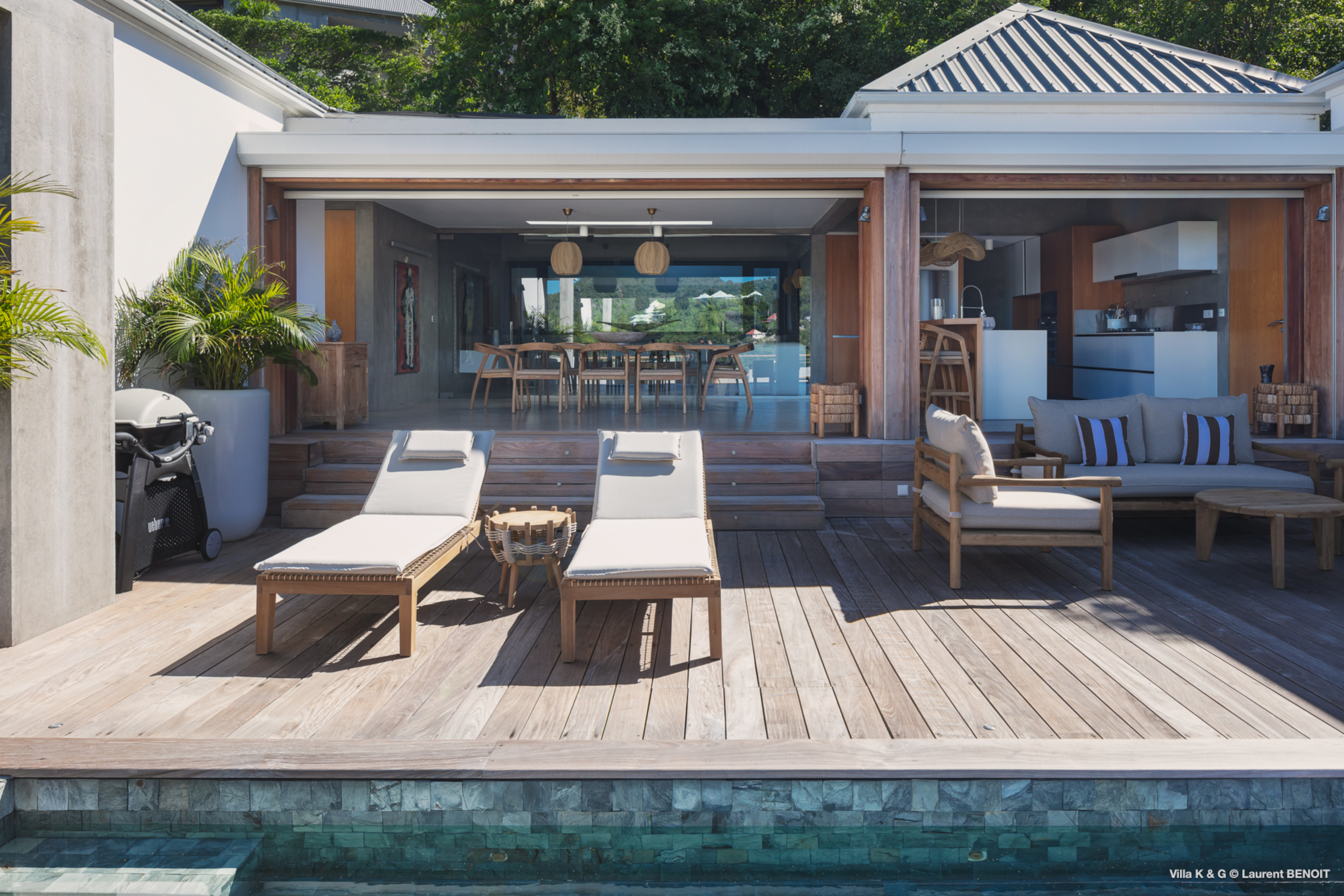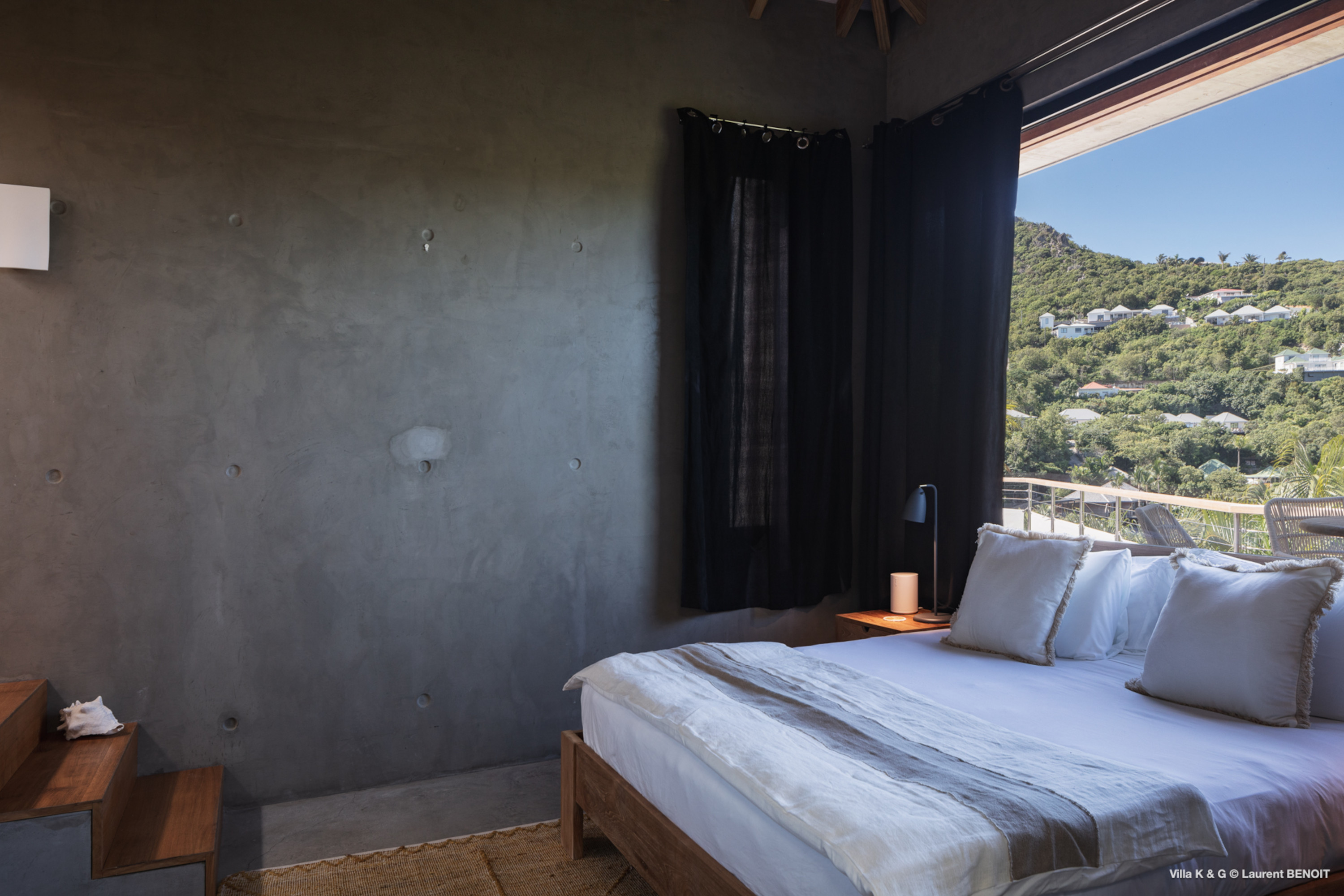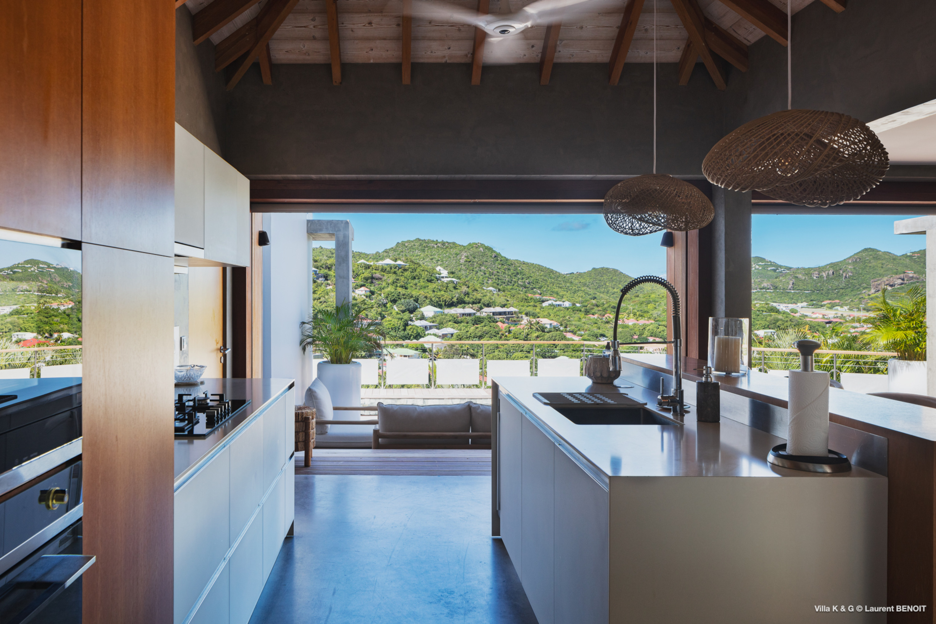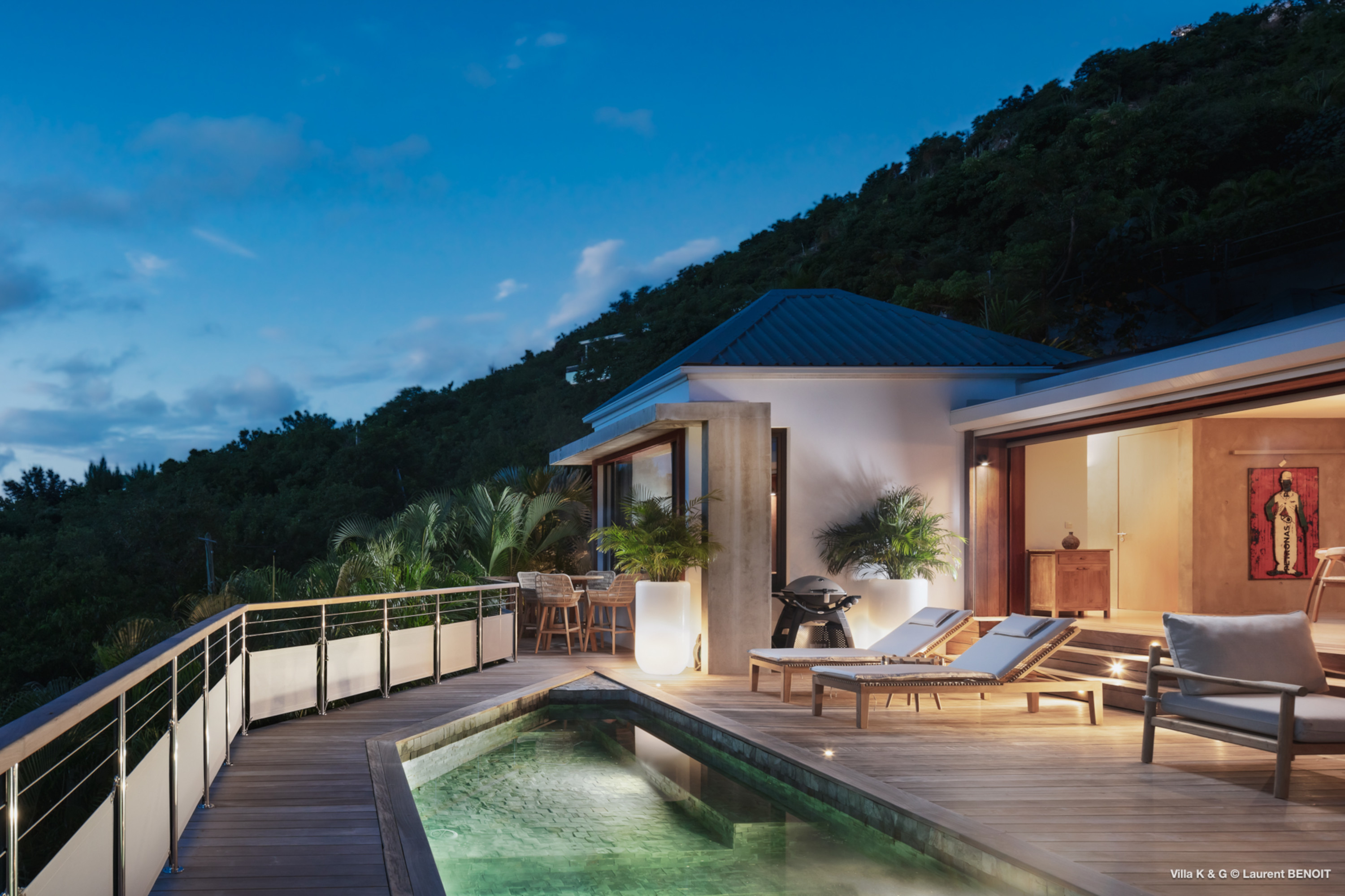 Nestled on the hill of St. Jean, amidst lush vegetation, Villa Bonheur (villa code: WV BNR) is a true invitation to relaxation and well-being. This luxury villa combines an atypical and warm decor with modern elements, creating a unique and cozy atmosphere. The raw concrete walls harmoniously blend with the stunning exposed wooden beams, offering a contemporary yet welcoming setting. The spacious living room is the heart of the villa, where you can unwind in a comfortable L-shaped lounge equipped with a large flat-screen TV, perfect for moments of relaxation, reading breaks, or unforgettable movie nights. The layout maximizes natural light, thanks to a wide bay window that opens up to breathtaking views of the rock formations and surrounding greenery, while a fully glazed wall provides a magnificent perspective of the verdant hills. At the center of this main area, a beautiful wooden table with transparent legs can accommodate up to 8 guests, making it ideal for memorable and convivial dinners. The open-plan kitchen, fully-equipped, invites a sense of togetherness. Around the central island, you can share pleasant moments in a warm and friendly atmosphere, away from conventions. It’s the perfect place to whip up delicious meals while enjoying the company of your loved ones. A true extension of the living space, the exterior of Villa Bonheur is a peaceful haven. Sun loungers await you for relaxation after a refreshing swim in the crystal-clear pool. A small bar area, subtly sheltered by the vegetation, completes this outdoor space, providing an idyllic setting to savor cocktails in tranquility. The bedrooms at Villa Bonheur are a true sanctuary of comfort. Spacious and cozy, they feature high ceilings and each has its own ensuite bathroom. The decor, both understated and chic, creates a soothing atmosphere, perfect for recharging after a day under the St. Barts sun. Villa Bonheur is much more than just a place to stay; it is an unforgettable experience on the island of St. Barts. Whether you seek relaxation, conviviality, or adventure, this villa will meet all your expectations and offer you an exceptional stay. Come and discover this little piece of paradise just a few minutes from St. Jean beach.Please fill out the form to begin your inquiry and we will connect you with a seasoned villa rental specialist.