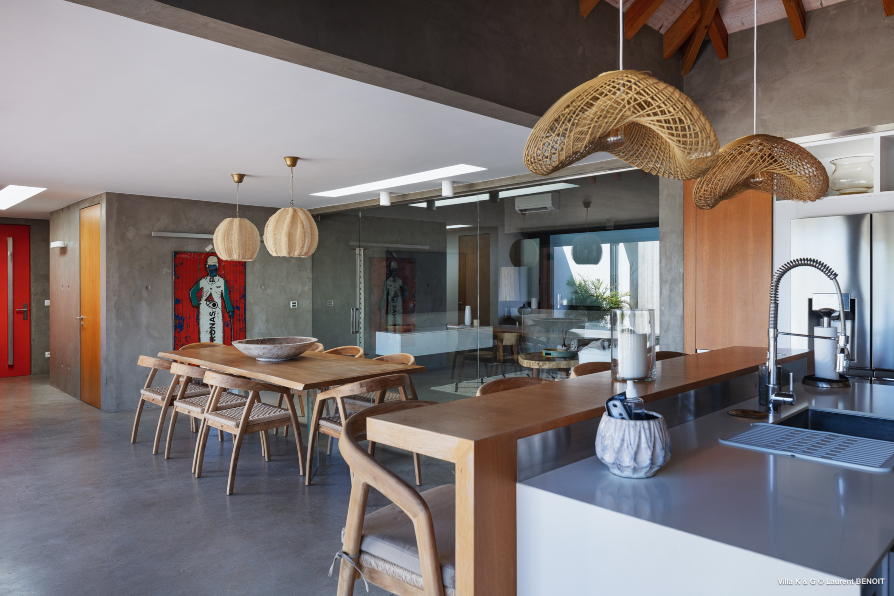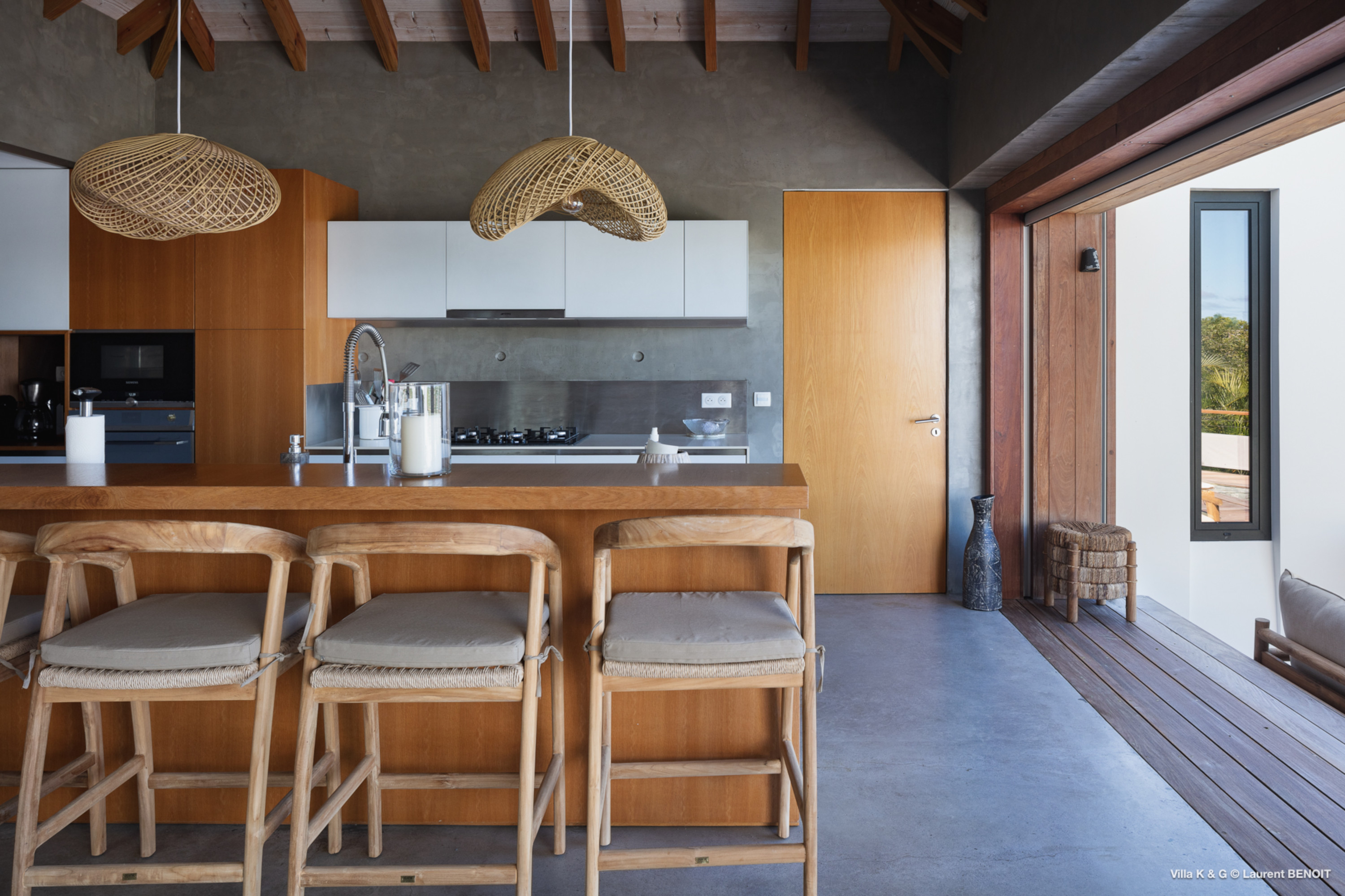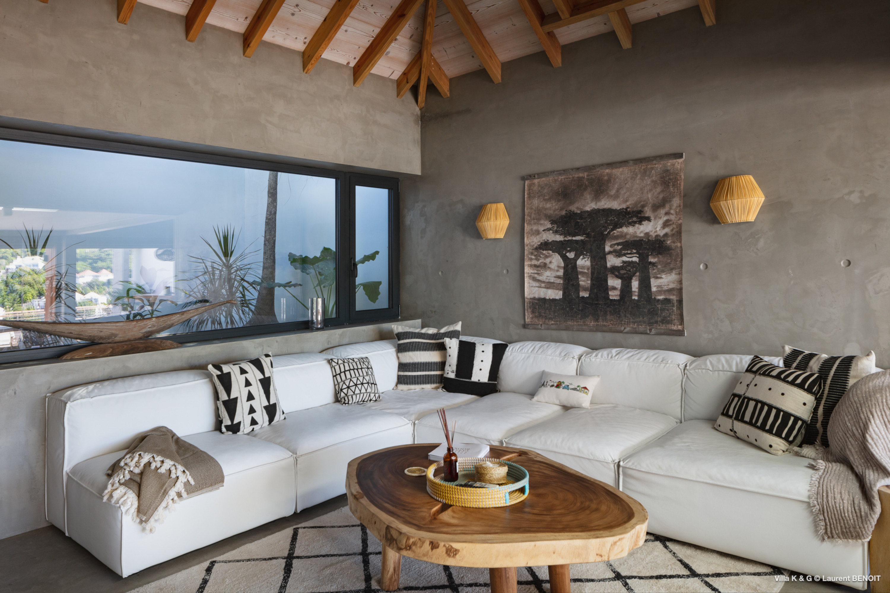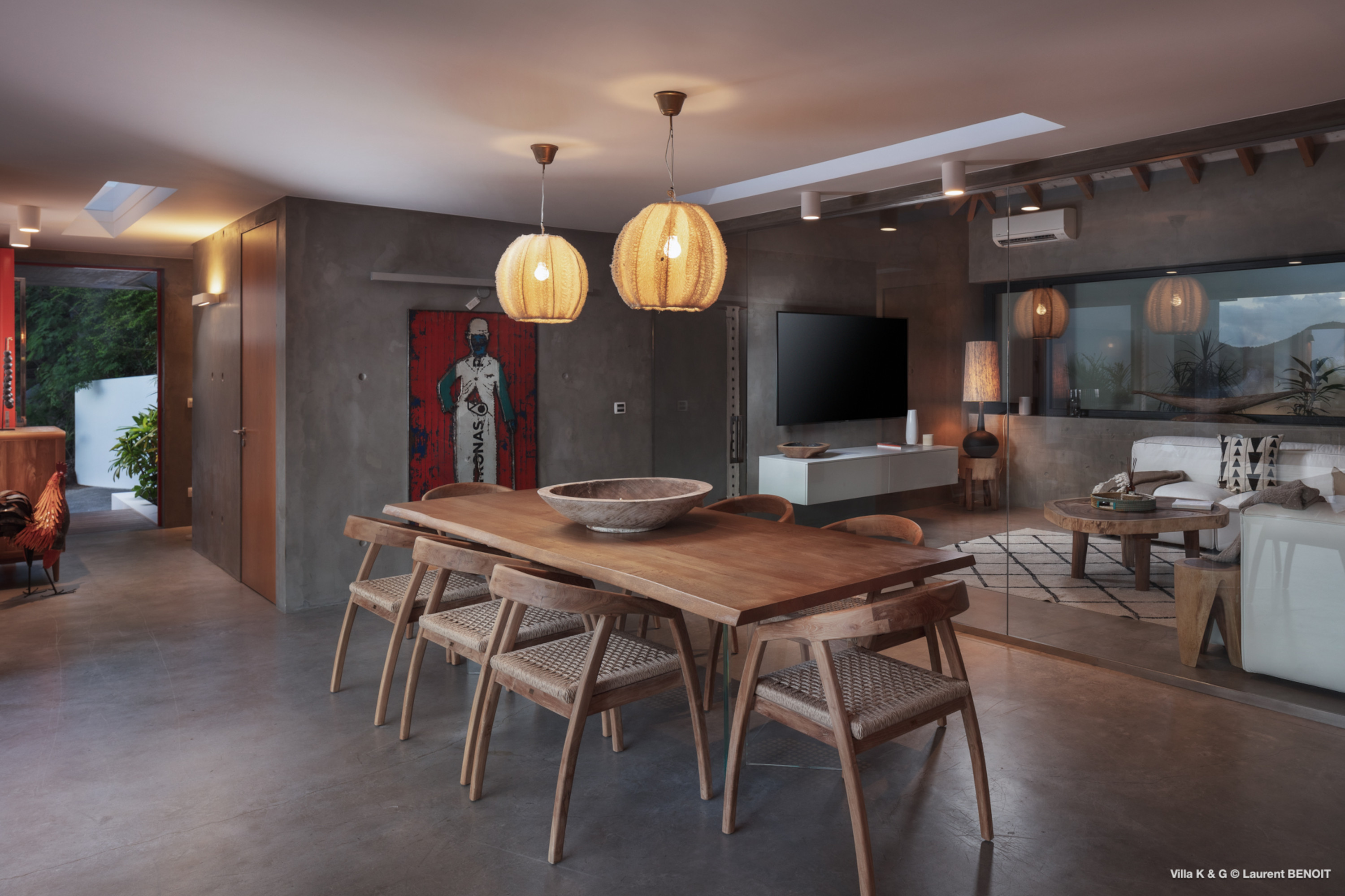 Nestled on the hill of St. Jean, amidst lush vegetation, Villa Bonheur (villa code: WV BNR) is a true invitation to relaxation and well-being. This luxury villa combines an atypical and warm decor with modern elements, creating a unique and cozy atmosphere. The raw concrete walls harmoniously blend with the stunning exposed wooden beams, offering a contemporary yet welcoming setting. The spacious living room is the heart of the villa, where you can unwind in a comfortable L-shaped lounge equipped with a large flat-screen TV, perfect for moments of relaxation, reading breaks, or unforgettable movie nights. The layout maximizes natural light, thanks to a wide bay window that opens up to breathtaking views of the rock formations and surrounding greenery, while a fully glazed wall provides a magnificent perspective of the verdant hills. At the center of this main area, a beautiful wooden table with transparent legs can accommodate up to 8 guests, making it ideal for memorable and convivial dinners. The open-plan kitchen, fully-equipped, invites a sense of togetherness. Around the central island, you can share pleasant moments in a warm and friendly atmosphere, away from conventions. It’s the perfect place to whip up delicious meals while enjoying the company of your loved ones. A true extension of the living space, the exterior of Villa Bonheur is a peaceful haven. Sun loungers await you for relaxation after a refreshing swim in the crystal-clear pool. A small bar area, subtly sheltered by the vegetation, completes this outdoor space, providing an idyllic setting to savor cocktails in tranquility. The bedrooms at Villa Bonheur are a true sanctuary of comfort. Spacious and cozy, they feature high ceilings and each has its own ensuite bathroom. The decor, both understated and chic, creates a soothing atmosphere, perfect for recharging after a day under the St. Barts sun. Villa Bonheur is much more than just a place to stay; it is an unforgettable experience on the island of St. Barts. Whether you seek relaxation, conviviality, or adventure, this villa will meet all your expectations and offer you an exceptional stay. Come and discover this little piece of paradise just a few minutes from St. Jean beach.Please fill out the form to begin your inquiry and we will connect you with a seasoned villa rental specialist.