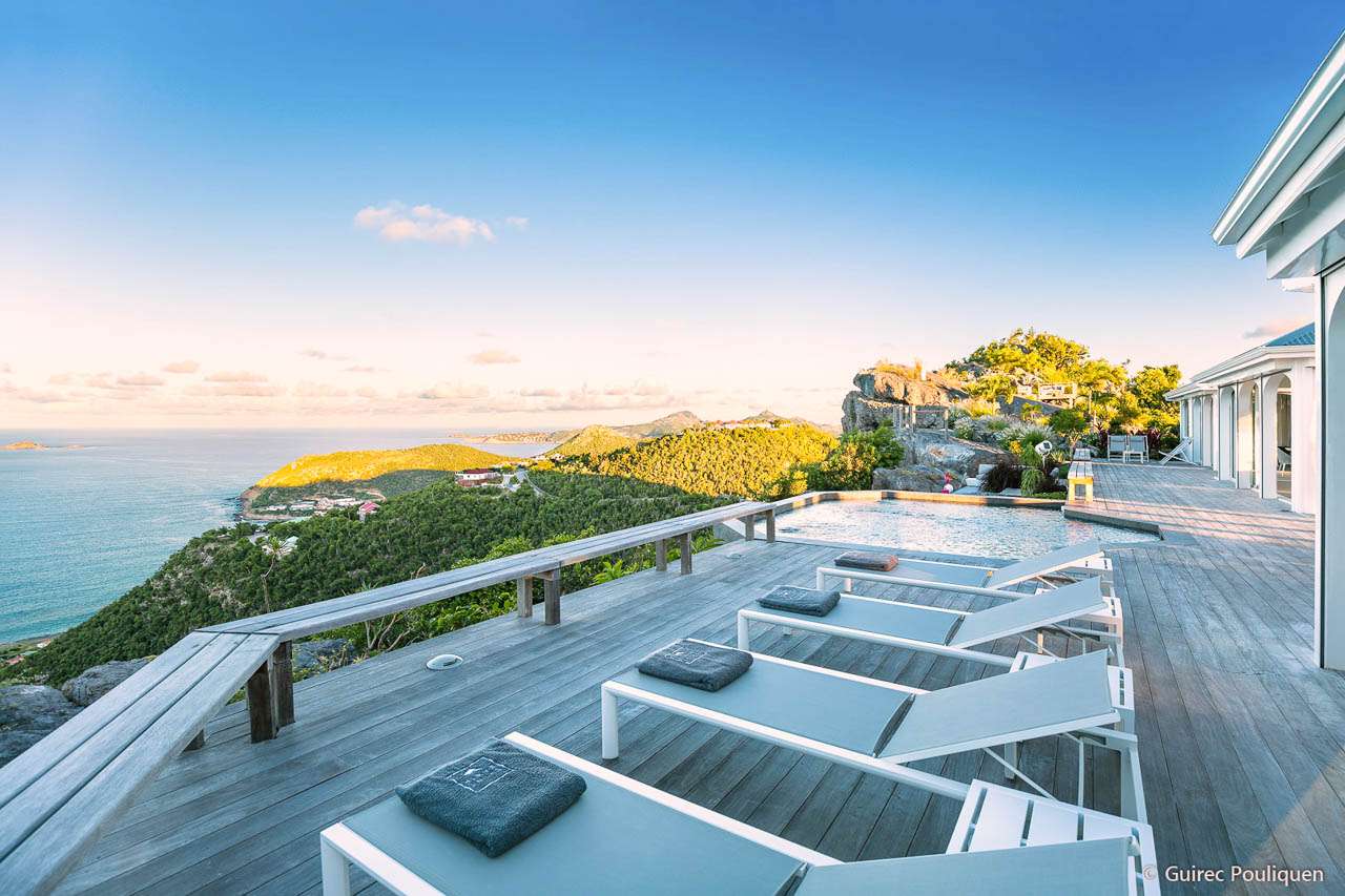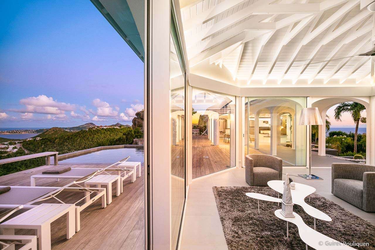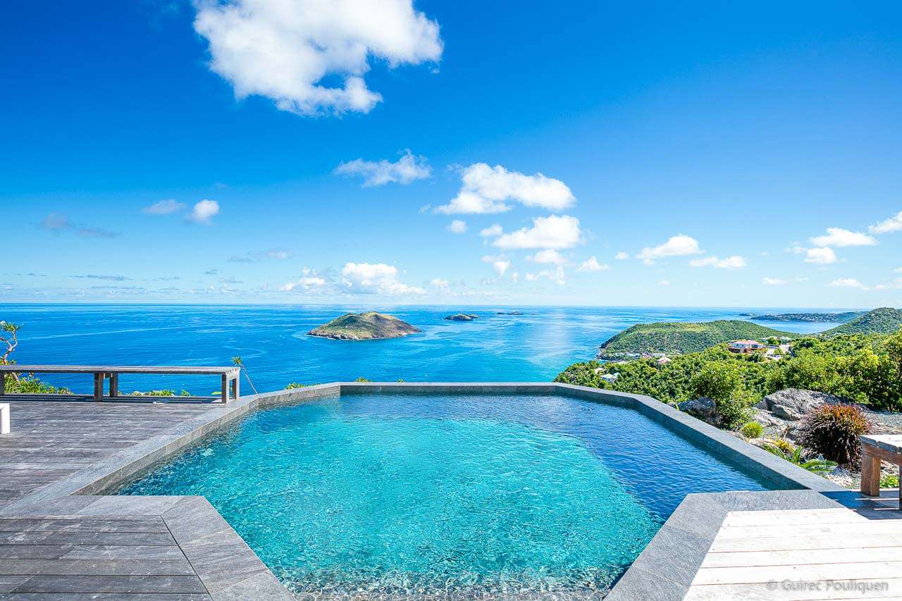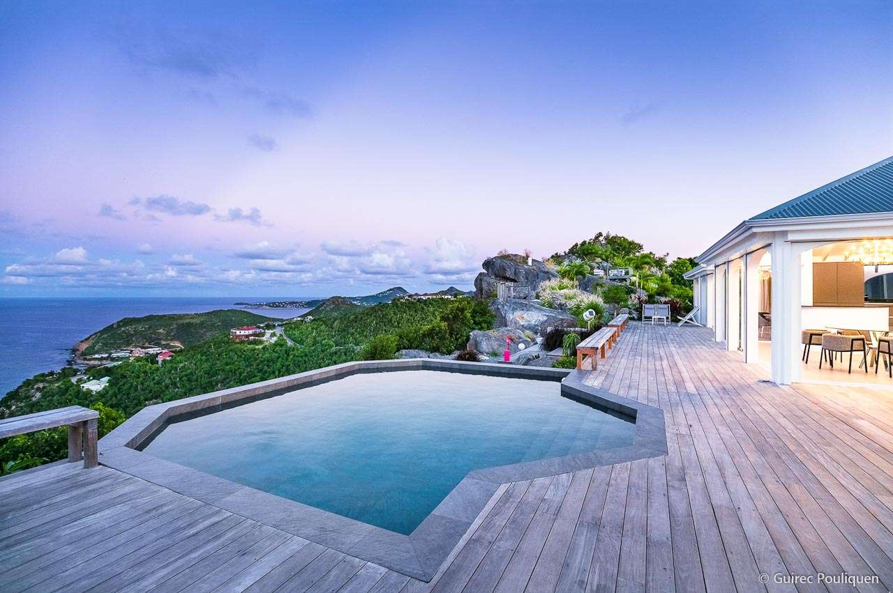 Welcome to Villa Byzance (villa code: WV BYZ), an elegant 2-bedroom villa located in Colombier, St. Barts. Luxurious details, chic design, and a modern island style combine at this beautiful property, offering a taste of the good life in the Caribbean. The interiors of Villa Byzance are stunning, drawing on influences from the Mediterranean, Caribbean, and more. The airy elegance of this St. Barts villa enjoys splendid design, with clean lines, vaulted ceilings, and gentle curves that complement the rugged beauty outside. With panoramic sunrise and sunset views, this is a fantastic choice for a stay in St. Barts. With a desirable location above Colombier, Villa Byzance shows off one of the island’s more remote and quieter sides. Surrounded by cliffs and island greenery, the beach is a 10-minute drive, while the shops and restaurants of Gustavia are around 15 minutes by car. Private, luxurious, and exclusive, this is a sophisticated stay for island travelers. Large, arched windows allow the natural light to stream into the living spaces, creating a serene environment. Natural and laid-back colors beneath the vaulted ceilings give each room a feeling of airy brightness, with a graceful flow to the open-plan layout. At its center is the beautiful great room, spanning two pavilions connected via a covered outdoor terrace. On one side is the living room, a highlight of the villa with its low-slung and luxurious sofas and gently curving tables. It’s a wonderful spot to kick back and drink in the stunning views on either side of the home. Stepping across the covered terrace brings you into Villa Byzance’s kitchen. State-of-the-art appliances make cooking here a breeze, while the views inspire. Our concierge could also organize a private chef for an evening or an in-villa wine tasting. Next to the kitchen is the dining table, covered by the same vaulted ceilings although it feels as if it’s outside. The large doors immerse you in the Caribbean landscape alongside a meal, with the sunset casting rosy gold colors arcing across the sea and sky. The luxurious bedrooms at Villa Byzance are located on either end of the living room and kitchen. Each room offers abundant space, with a small living space for some private downtime. Both bedrooms come with a platform king-sized bed, a lavish ensuite bathroom, and outstanding ocean views. Thanks to the incredible design of Villa Byzance, the indoors blend gracefully with the beautiful outdoor living spaces. The wooden terrace fits into the surroundings, anchored at one end with the rugged cliffs and surrounded by the Caribbean greenery. There’s an infinity swimming pool, seemingly melting into the ocean beyond. Refreshing and cool, it’s a tempting spot to spend a day lounging, dipping in and out between sunbathing sessions on the loungers. For larger gatherings, steps lead down to an outdoor lounge deck, with soft sofas for cocktail hours and a pre-dinner aperitif. A magical island sunset enhances those already breathtaking views, and there’s even a hot tub in the garden, a luxurious spot to spend a night stargazing, drink in hand. Villa Byzance features all the amenities you’ll need for a relaxing stay in the Caribbean, including continental breakfast year-round.Please fill out the form to begin your inquiry and we will connect you with a seasoned villa rental specialist.