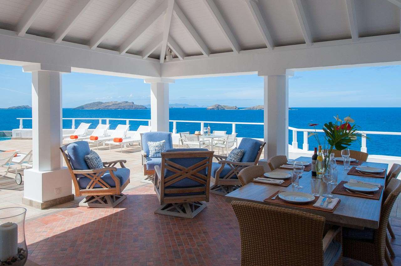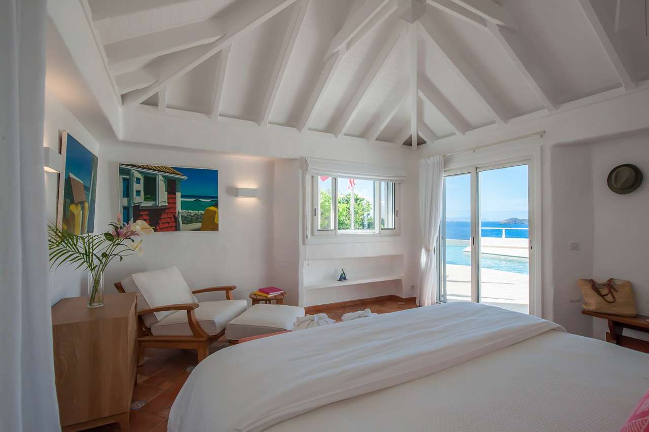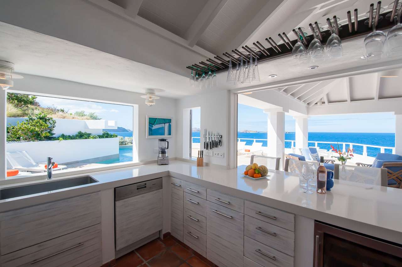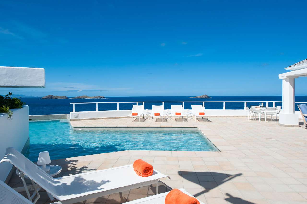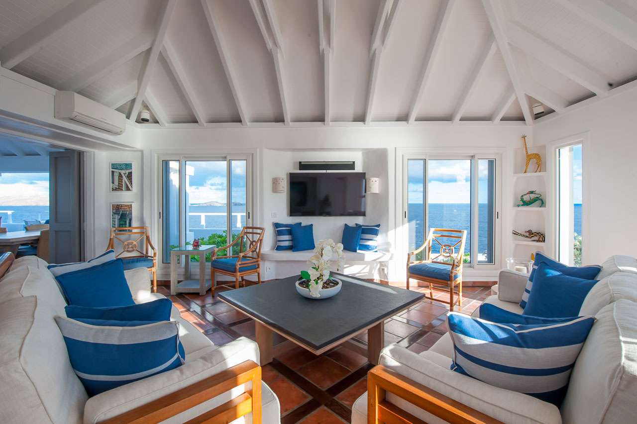 Welcome to Villa Cap au Vent, a recently renovated 4-bedroom home with all the modern conveniences expected of a luxury villa. Positioned at the tip of Pointe Milou on St. Barts, this property offers some of the most stunning views in the Caribbean. From its clifftop location, guests can enjoy 270-degree views over the ocean and the islands Île Toc Vers, Île Fregate, Île Bonhomme, and La Tortue in the foreground, and St Martin and Anguilla in the distance. Whether it’s an early morning sunrise, migrating whales, or a rosy gold sunset, Villa Cap au Vent has the best seat in the house. Within short driving distance you’ll find the golden sands of Lorient Beach or Marigot Beach, while restaurants and shopping in St-Jean are only 10 minutes away by car. Living Spaces: Cool and contemporary interiors are dazzling in white, with chic Caribbean style and décor. Vaulted ceilings, clean lines, and accents of ocean colors all create a relaxing oceanfront ambiance. The living room has a flat-screen Smart TV connected to a home theater Sonos sound system, ideal for movie nights. The screened windows keep the room light and airy, while blue trim blends with the ocean views. Kitchen and Dining Area: Villa Cap au Vent features a warm and inviting kitchen with everything you need to whip up gourmet meals during your stay. Our concierge can even organize grocery pre-stocking or delivery, catered meals, or arrange a private chef service for a special occasion. The pass-through breakfast bar is an excellent spot for your morning coffee or a casual lunch. More formal meals can be enjoyed at the dining table on the covered terrace outside, with seating for up to 12 guests. This is an excellent setting for drinking and dining while the island sunsets send blazes of gold across the sky. Bedrooms: There are 4 bedrooms at Villa Cap au Vent, each with air-conditioning, an ensuite bathroom, and luxurious Italian linens. Three of the bedrooms have king-sized beds, while the fourth has a pair of twin beds ideal for children. Screened windows let you forego the air-conditioning and let the natural ocean breezes lull you to sleep each evening. Outdoor Features: Outside, a grand covered terrace offers a protected spot to enjoy the cool island winds. Overstuffed chairs next to the dining table invite you to sink in with a cool drink and soak up the ocean views. Cap au Vent’s heated pool is steps away – relaxing in the water all day is easy. Reaching out towards the ocean, the infinity-edge makes you feel as if you’re floating above the waves. When it’s time to dry off, loungers line the water letting you bask in the Caribbean sun. Venture beyond the colorful gardens that surround Villa Cap au Vent and you’ll find plenty of natural beauty on St. Barts. Along the coast to the southwest is Lorient Beach, a calm and sheltered strip of sand. To the southeast is Marigot Beach, a quiet bay backed by a soothing coconut grove. Both are only 5 minutes away by car. Glamorous shops and restaurants in St Jean are 10 minutes away by car, while the capital of Gustavia is 20 minutes away. Amenities: A destination within itself, a stay at Villa Cap au Vent includes welcome treats upon arrival, nightly turndown service, personal laundry, continental breakfast, unlimited bottled water, and an open bar with premium liquors. There’s also high-speed Wi-Fi, Netflix, and U.S satellite TV. Villa Cap au Vent comes with house cleaning services six days a week (except on holidays). During the Thanksgiving holidays, the villa rents at full occupancy rates regardless of how many bedrooms are used.Please fill out the form to begin your inquiry and we will connect you with a seasoned villa rental specialist.