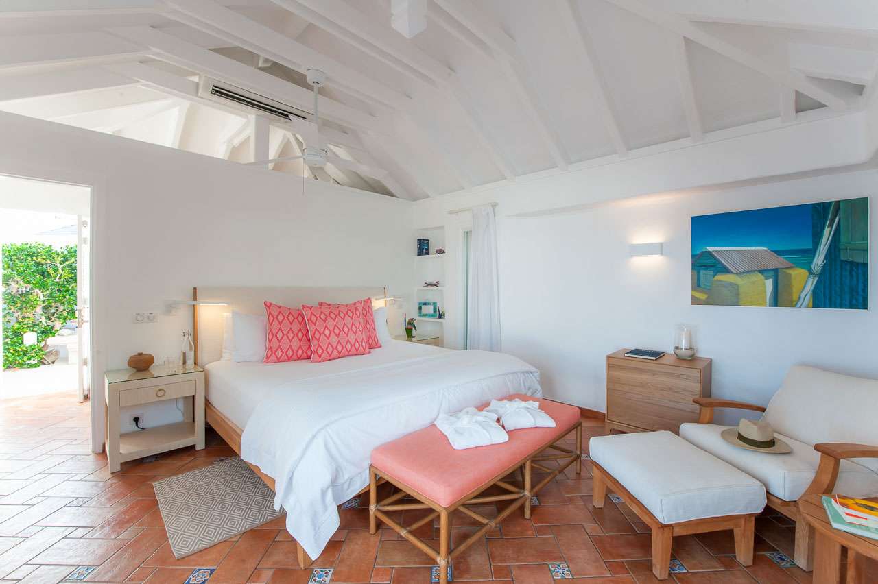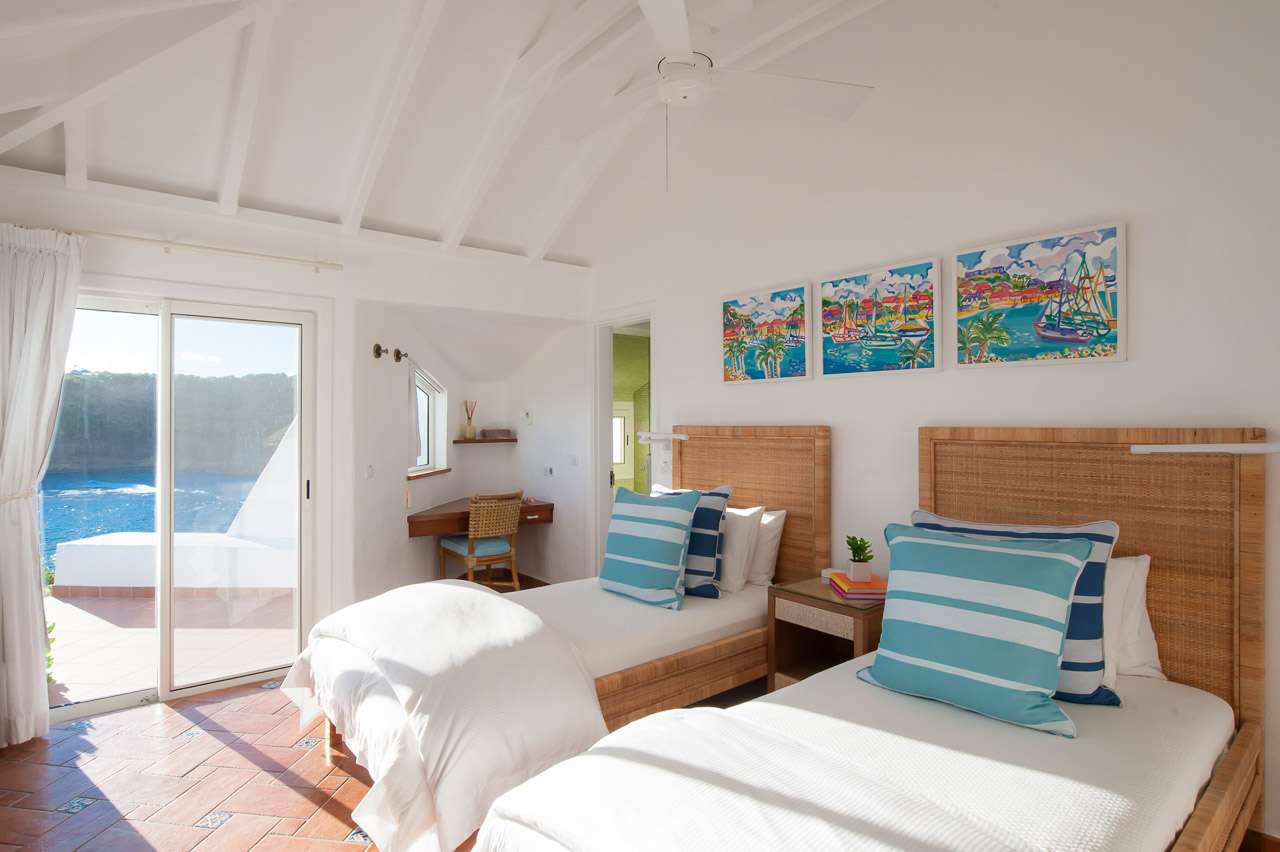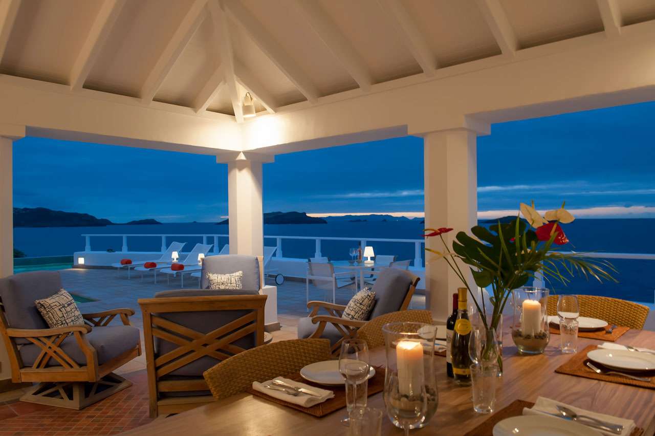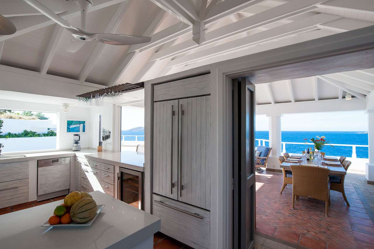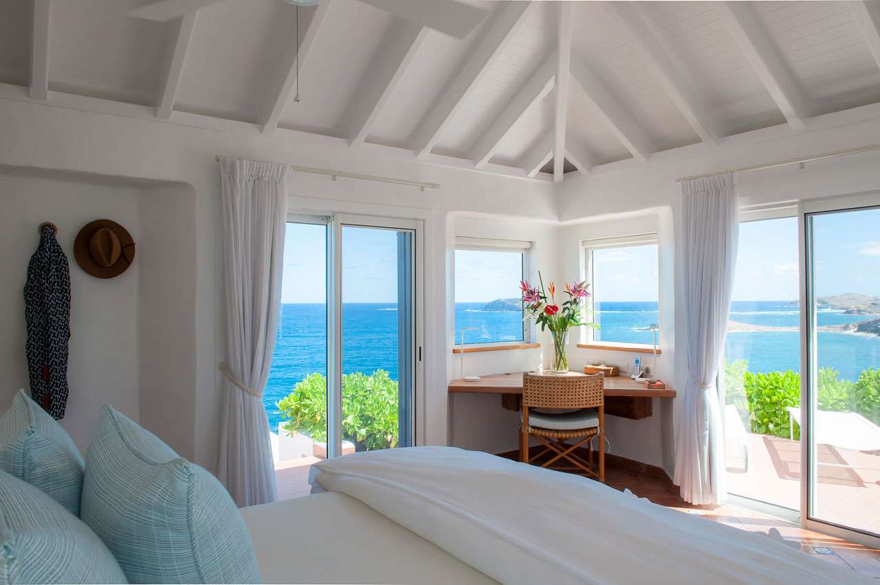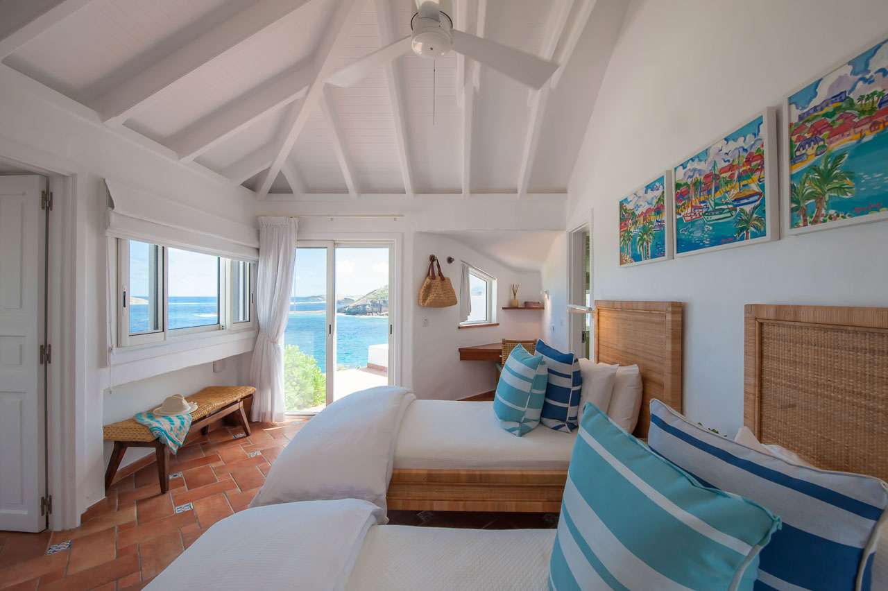 Welcome to Villa Cap au Vent, a recently renovated 4-bedroom home with all the modern conveniences expected of a luxury villa. Positioned at the tip of Pointe Milou on St. Barts, this property offers some of the most stunning views in the Caribbean. From its clifftop location, guests can enjoy 270-degree views over the ocean and the islands Île Toc Vers, Île Fregate, Île Bonhomme, and La Tortue in the foreground, and St Martin and Anguilla in the distance. Whether it’s an early morning sunrise, migrating whales, or a rosy gold sunset, Villa Cap au Vent has the best seat in the house. Within short driving distance you’ll find the golden sands of Lorient Beach or Marigot Beach, while restaurants and shopping in St-Jean are only 10 minutes away by car. Living Spaces: Cool and contemporary interiors are dazzling in white, with chic Caribbean style and décor. Vaulted ceilings, clean lines, and accents of ocean colors all create a relaxing oceanfront ambiance. The living room has a flat-screen Smart TV connected to a home theater Sonos sound system, ideal for movie nights. The screened windows keep the room light and airy, while blue trim blends with the ocean views. Kitchen and Dining Area: Villa Cap au Vent features a warm and inviting kitchen with everything you need to whip up gourmet meals during your stay. Our concierge can even organize grocery pre-stocking or delivery, catered meals, or arrange a private chef service for a special occasion. The pass-through breakfast bar is an excellent spot for your morning coffee or a casual lunch. More formal meals can be enjoyed at the dining table on the covered terrace outside, with seating for up to 12 guests. This is an excellent setting for drinking and dining while the island sunsets send blazes of gold across the sky. Bedrooms: There are 4 bedrooms at Villa Cap au Vent, each with air-conditioning, an ensuite bathroom, and luxurious Italian linens. Three of the bedrooms have king-sized beds, while the fourth has a pair of twin beds ideal for children. Screened windows let you forego the air-conditioning and let the natural ocean breezes lull you to sleep each evening. Outdoor Features: Outside, a grand covered terrace offers a protected spot to enjoy the cool island winds. Overstuffed chairs next to the dining table invite you to sink in with a cool drink and soak up the ocean views. Cap au Vent’s heated pool is steps away – relaxing in the water all day is easy. Reaching out towards the ocean, the infinity-edge makes you feel as if you’re floating above the waves. When it’s time to dry off, loungers line the water letting you bask in the Caribbean sun. Venture beyond the colorful gardens that surround Villa Cap au Vent and you’ll find plenty of natural beauty on St. Barts. Along the coast to the southwest is Lorient Beach, a calm and sheltered strip of sand. To the southeast is Marigot Beach, a quiet bay backed by a soothing coconut grove. Both are only 5 minutes away by car. Glamorous shops and restaurants in St Jean are 10 minutes away by car, while the capital of Gustavia is 20 minutes away. Amenities: A destination within itself, a stay at Villa Cap au Vent includes welcome treats upon arrival, nightly turndown service, personal laundry, continental breakfast, unlimited bottled water, and an open bar with premium liquors. There’s also high-speed Wi-Fi, Netflix, and U.S satellite TV. Villa Cap au Vent comes with house cleaning services six days a week (except on holidays). During the Thanksgiving holidays, the villa rents at full occupancy rates regardless of how many bedrooms are used.Please fill out the form to begin your inquiry and we will connect you with a seasoned villa rental specialist.