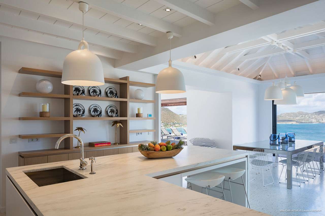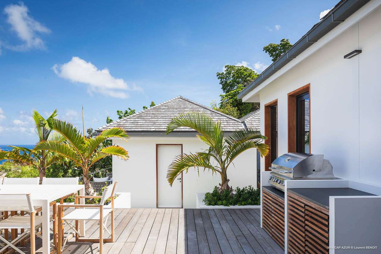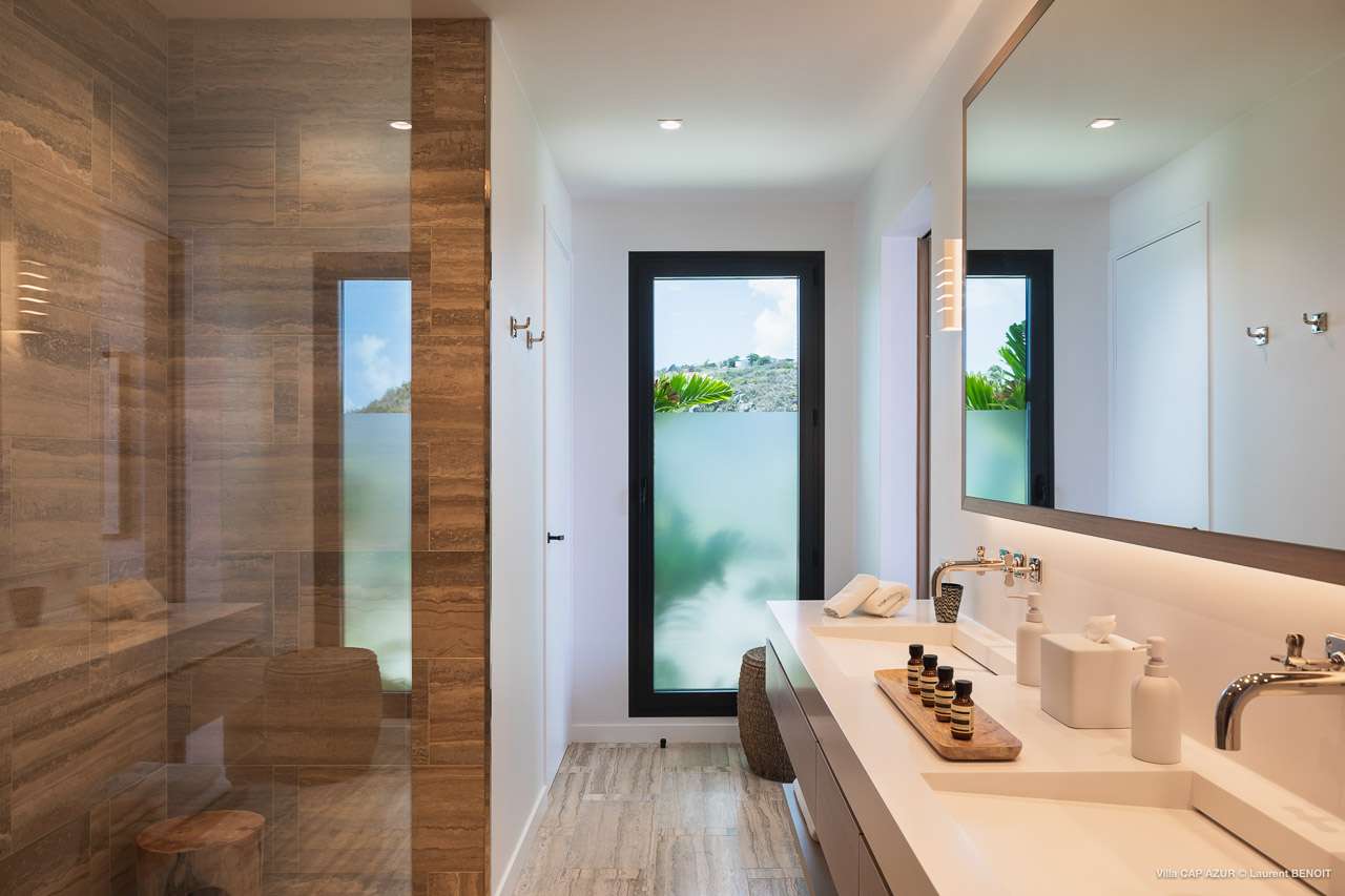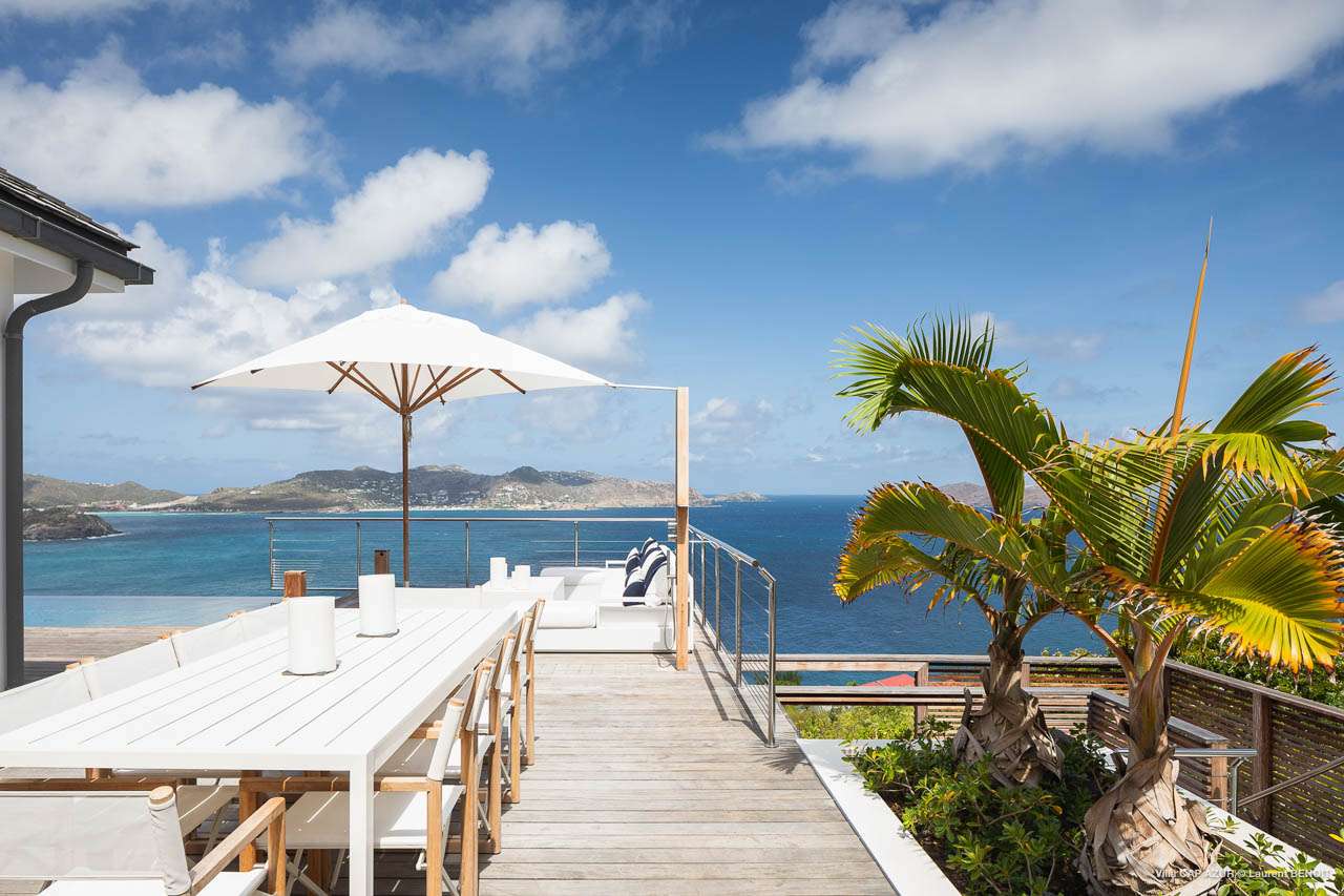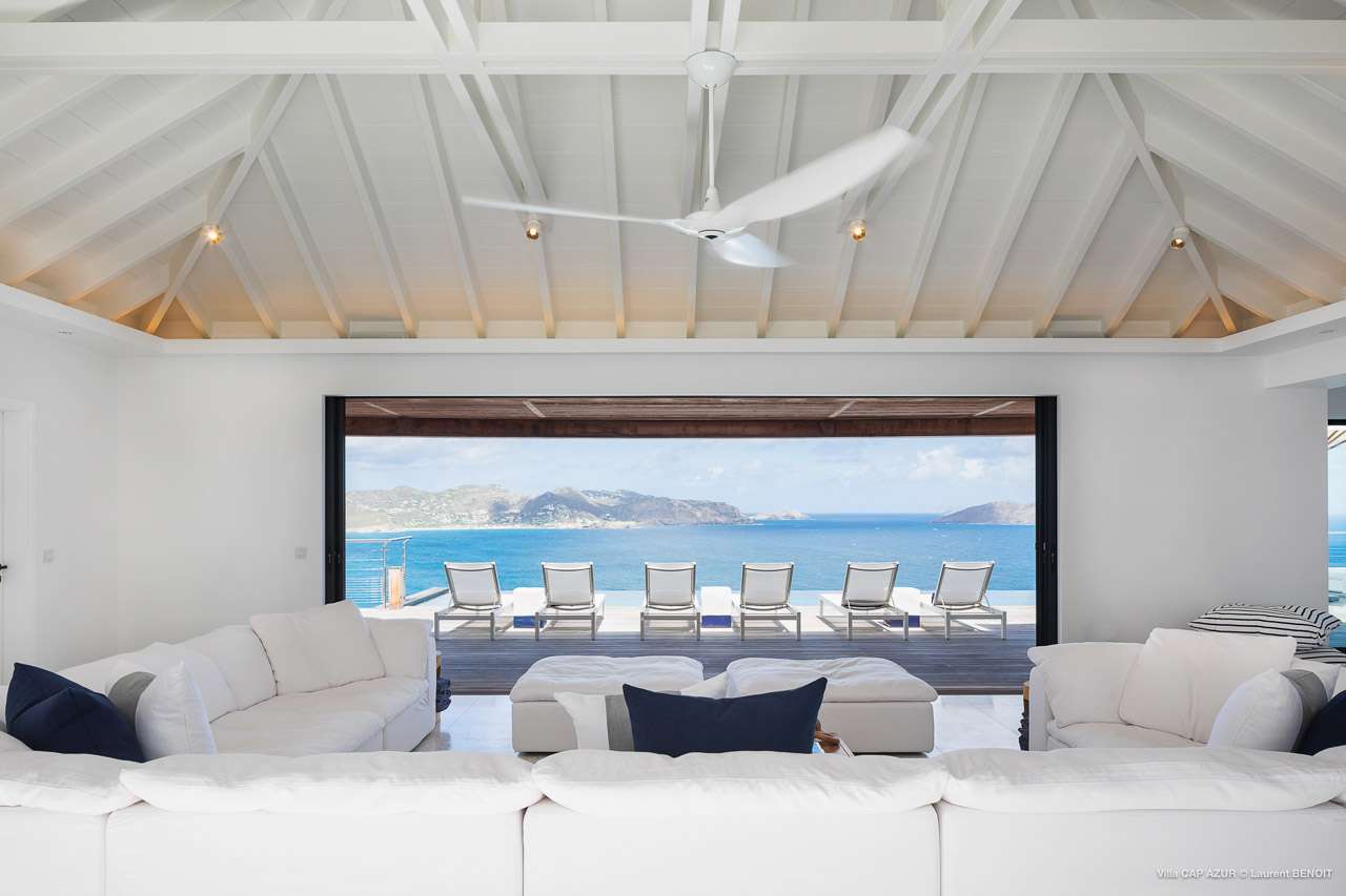 Villa Cap Azur, (villa code: WV CAA), is a newly-built, 5-bedroom villa with panoramic ocean and sunset views, high on the Pointe Milou hillside. Some villas have better views than others, and there are those that will make anyone who steps through the entrance and sees the views beyond, go “Wow!". Cap Azur is that villa. Situated high on the hillside above the Christopher hotel, and with no close neighbors, villa Cap Azur offers that breathtaking moment when you walk onto the terrace and see the panoramic ocean views, with the sun glistening in the heated infinity pool in front. The terraces are well-designed and have plenty of seating, lounging, and outdoor dining space. The terrace also flows seamlessly into the large living room with its oversized sectional that offers views from every seat, and is perfect for a group conversation out of the sun and, when needed, can be fully air-conditioned. The adjacent gourmet kitchen is fully equipped and has a large indoor dining area, which can also be air-conditioned. A separate, air-conditioned TV room completes the common spaces. The first bedroom is situated off the living and has U.S. satellite TV, a U.S. king-sized bed, a closet, and an ensuite bathroom with shower. A master bedroom is in a separate bungalow adjacent to the first, with a second master bedroom directly below, on the lower level. Both rooms have a U.S. king-sized bed, U.S. satellite and AppleTV, ample closet space, a private terrace, and an ensuite bathroom with shower. Another bedroom is also on the lower level, just across from the second master bedroom. This room is a bit smaller than the others but has two twin beds that can be made up as a European king-sized bed, U.S satellite and AppleTV, closets, and an ensuite bathroom with both a bathtub and shower. There is an additional master bedroom situated in a separate bungalow off the TV room. This spacious room comes with a private terrace, a U.S. king-sized bed, his-and-hers closets, U.S. satellite and AppleTV, and an ensuite bathroom with both an indoor and outdoor shower. This room is only available with a 5-bedroom rental. Villa Cap Azur is a great villa for couples vacationing together, but will also suit a family with teenagers. * Note - No Pets AllowedPlease fill out the form to begin your inquiry and we will connect you with a seasoned villa rental specialist.