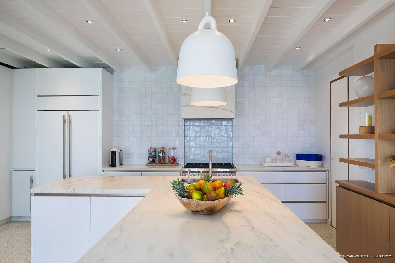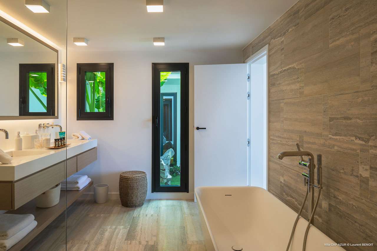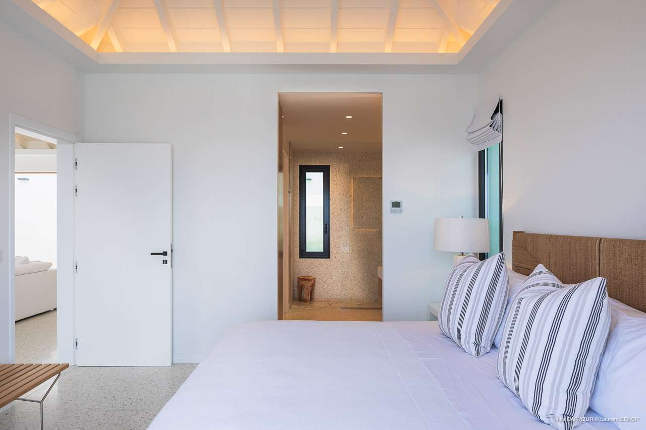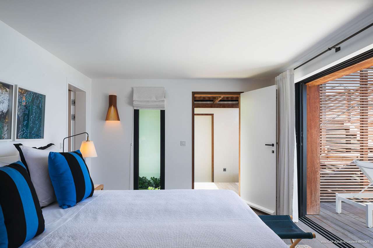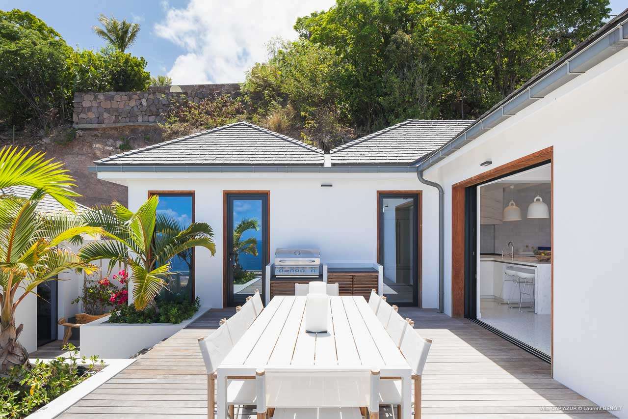 Villa Cap Azur, (villa code: WV CAA), is a newly-built, 5-bedroom villa with panoramic ocean and sunset views, high on the Pointe Milou hillside. Some villas have better views than others, and there are those that will make anyone who steps through the entrance and sees the views beyond, go “Wow!". Cap Azur is that villa. Situated high on the hillside above the Christopher hotel, and with no close neighbors, villa Cap Azur offers that breathtaking moment when you walk onto the terrace and see the panoramic ocean views, with the sun glistening in the heated infinity pool in front. The terraces are well-designed and have plenty of seating, lounging, and outdoor dining space. The terrace also flows seamlessly into the large living room with its oversized sectional that offers views from every seat, and is perfect for a group conversation out of the sun and, when needed, can be fully air-conditioned. The adjacent gourmet kitchen is fully equipped and has a large indoor dining area, which can also be air-conditioned. A separate, air-conditioned TV room completes the common spaces. The first bedroom is situated off the living and has U.S. satellite TV, a U.S. king-sized bed, a closet, and an ensuite bathroom with shower. A master bedroom is in a separate bungalow adjacent to the first, with a second master bedroom directly below, on the lower level. Both rooms have a U.S. king-sized bed, U.S. satellite and AppleTV, ample closet space, a private terrace, and an ensuite bathroom with shower. Another bedroom is also on the lower level, just across from the second master bedroom. This room is a bit smaller than the others but has two twin beds that can be made up as a European king-sized bed, U.S satellite and AppleTV, closets, and an ensuite bathroom with both a bathtub and shower. There is an additional master bedroom situated in a separate bungalow off the TV room. This spacious room comes with a private terrace, a U.S. king-sized bed, his-and-hers closets, U.S. satellite and AppleTV, and an ensuite bathroom with both an indoor and outdoor shower. This room is only available with a 5-bedroom rental. Villa Cap Azur is a great villa for couples vacationing together, but will also suit a family with teenagers. * Note - No Pets AllowedPlease fill out the form to begin your inquiry and we will connect you with a seasoned villa rental specialist.