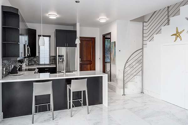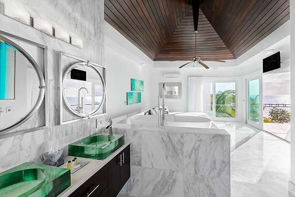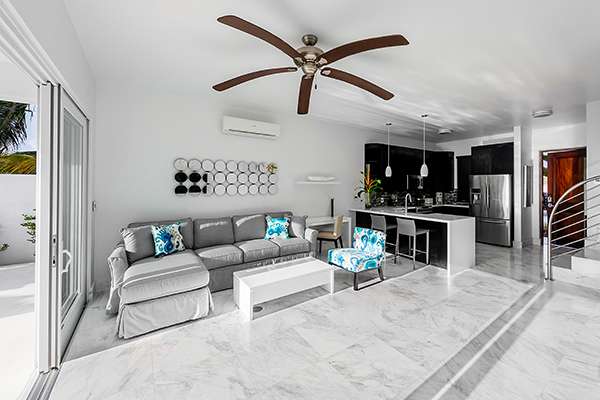 Relax and unwind at Villa Capri (booking code: TC CAP), a stunning 1-bedroom beachfront cottage located on Sapodilla Bay, Providenciales. Within steps of the beach and just minutes from restaurants and shopping, this newly built waterfront cottage offers easy access to the best the area has to offer. Villa Capri features two levels of living space complete with amazing views of the turquoise water and sky. Contemporary décor and stylish furnishings make for one dreamy stay on the island, while chic and creamy neutral tones are contrasted with tropical wooden trim. Part of a trio of beautifully designed luxury vacation rentals on Sapodilla Bay, you’ll love the design of your private villa and the stunning beachfront location. As an added bonus, the popular Las Brisas restaurant on Chalk Sound is within walking distance. For discerning travelers seeking a relaxing or romantic getaway in Turks and Caicos, it’s an ideal choice. Living Room: The artfully decorated beach-level living room features Carrera marble floors, comfortable furniture, and a 40” Google TV with web capabilities. You’ll love sinking in here at the end of a long day of exploring Provo. Large sliding doors open towards the pool terrace, letting the island breeze wash through the house. You’ll love relaxing here, listening to the gentle hum of waves lapping against the nearby beach. Kitchen and Dining Room: The beautiful mahogany kitchen at Villa Capri comes with everything you’ll need to whip up gourmet meals during your stay. Sleek appliances make cooking a breeze, and a breakfast bar is a great spot for a quick espresso before ducking out to the pool in the morning. The kitchen is complemented by a gas grill on the patio, encouraging island-style cookouts in the balmy weather. There’s nothing quite like grilling up some sumptuous fresh fish as you watch the rosy island sunset, framed by rustling palm trees. Under the shaded terrace, an outdoor dining table has space for up to 4 guests. Bedroom: Ascending to the second level of Villa Capri reveals the dramatic and airy master bedroom. Featuring a king-sized bed, ensuite bathroom, a lavish soaking tub, and custom-made furnishings, you’ll feel like royalty sleeping here. The vaulted, Bali-style wooden ceiling is alluring, bringing an exotic jungle to the minimalist space. A balcony is the ideal setting for a morning coffee or evening aperitif, listening and watching as the ocean washes over the white sand. Outdoor Features: Stepping outside of Villa Capri’s living room, you’ll immediately want to dive into the beautiful private pool. Refreshing and gorgeous, from the water you can gaze through the palm trees towards the ocean. Soaking up the sun is also easy with a few pool-side loungers. Seconds away, the beautiful shores of Sapodilla Bay Beach await, known for its white sand, gentle waves, and crystalline waters. Enjoying your own private slice of paradise and spending your days swimming and lounging is easy. This is a true paradise. A short walk from the villa is the popular Las Brisas on CHalk Sound, a wonderful restaurant serving lunch and dinner. Not only that, but there are many other fantastic restaurants within a 10–15-minute drive. Amenities: Thoughtful design helps to make your stay at Villa Capri pleasant. The property also features a gas grill, high-speed Wi-Fi, cable TV, a paddleboard, and a sea kayak. Metered air-conditioning is available for an additional weekly fee. Neighboring Villa Amalfi (booking code: TC AMA) and Villa Positano (TC POS) can also be rented to create a small beachfront estate, perfect for a group vacation. Capri Villa also comes with a mid-week house cleaning service – contact your villa specialist for more details. Our on-island concierge service can also help make your stay as relaxing as possible. From boat excursions that pick you up from the beach to restaurant reservations, we’re happy to help you organize activities during your stay.