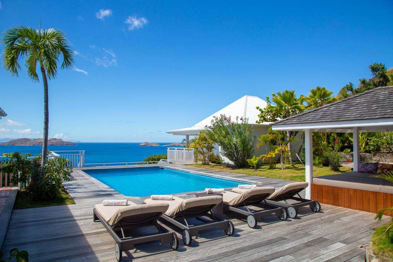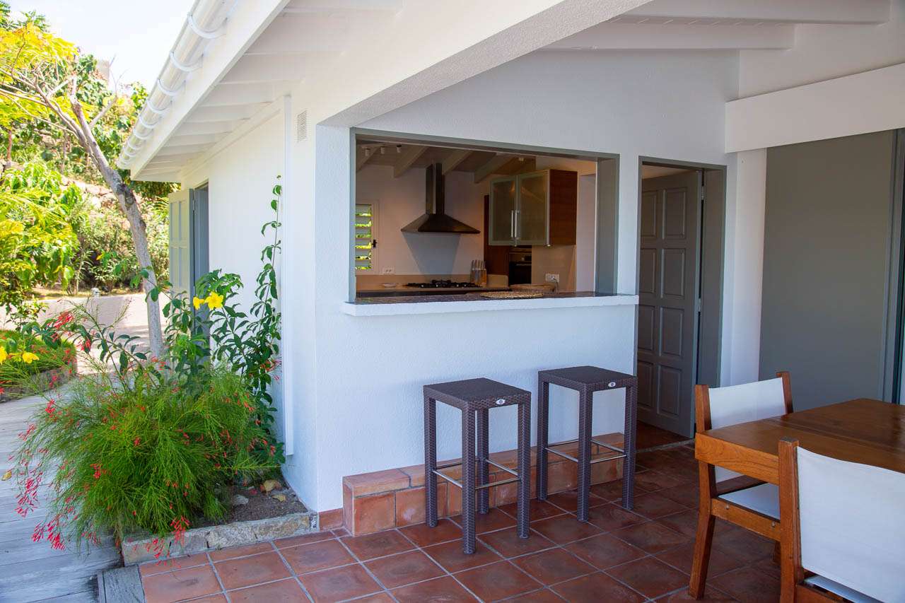 Welcome to Villa Carette (villa code: WV CAR), a colonial-style 2-bedroom villa located in Lorient, St. Barts. This secluded property offers stunning views over Lorient Bay and the offshore islands of Île Toc Vers, Île Frégate, and Île Bonhomme. Surrounded by lush palms, cactus, and vibrant tropical plants, Villa Carette enjoys peerless privacy. Inside, that trend continues, with soothing hardwood accents, rattan furnishings, and cool terracotta tiles. A selection of tropical décor, from seashells to reclaimed glass bottles, enhances the island ambiance. The main great room sets the tone for your stay at Villa Carette. Dark wood furnishings complement the terracotta floors, while the entire space opens to the covered terrace. It’s a seamless blend of indoors and out, with plenty of classic Caribbean comforts. There are several sofas and rattan chairs in the living room all facing towards the stunning ocean views. It’s an ideal setting to sink in and relax, with the sounds of the waves from Lorient Beach below adding a pleasant ambiance during cocktail hour. Next to the living room is Villa Carette’s new, well-equipped galley-style kitchen, making cooking here a breeze. On the covered terrace outside is a dining table, with seating for up to 6 guests. It’s a magnificent setting for dinner parties in the evening with a magnificent view of Lorient Bay. The 2 large bedrooms at Villa Carette are in a separate bungalow, accessed from the outdoor terrace. Each bedroom has a luxurious king-sized bed, promising a fabulous night’s sleep. Ceiling fans and air-conditioning keep things cool during the warm evenings. Villa Carette can also be rented along with nearby Villa Tortue (villa code: WV TOR) for a total of 3 bedrooms and is only available at Festive. Life is best lived outside at Villa Carette. The covered terrace wraps around the living room, with chairs overlooking the shimmering Caribbean. Kicking back here with a cool island drink and golden island sunset will quickly become a ritual. Steps away, the inviting infinity pool stretches towards the edge of the terrace. Refreshing and inviting, we wouldn’t blame you for lounging in the water all day. Sunseekers will want to stake out a spot on one of the loungers lining the water. The only sounds will be the tide and the gentle breeze rustling through the surrounding palm trees. If you’re craving a day in the open water, Lorient Beach is just a few minutes away by car. This beautiful stretch of beach is calm and tranquil, protected by a coral reef offshore. Snorkeling, sunbathing, and swimming here are all divine. St. Jean is a few minutes to the west, while the quiet and understated Marigot Bay Beach is 5-minutes to the east. Exquisite details and amenities help elevate your stay at Villa Carette. This property is completely wheelchair accessible. Located above Lorient Beach, Villa Carette is within minutes of bakeries, grocers, and the popular restaurant “Le Bouchon”. During the Thanksgiving and December holidays, the villa rents at the full occupancy rate regardless of how many bedrooms are used.Please fill out the form to begin your inquiry and we will connect you with a seasoned villa rental specialist.