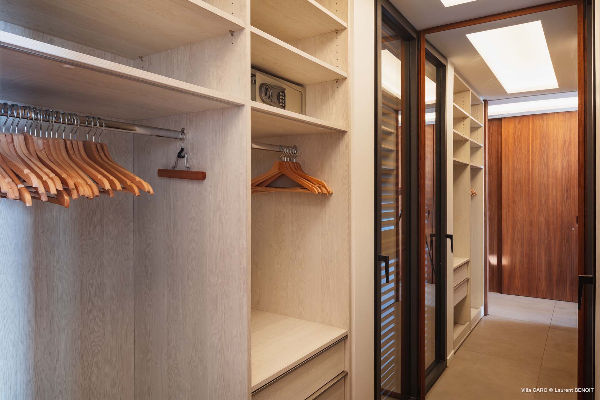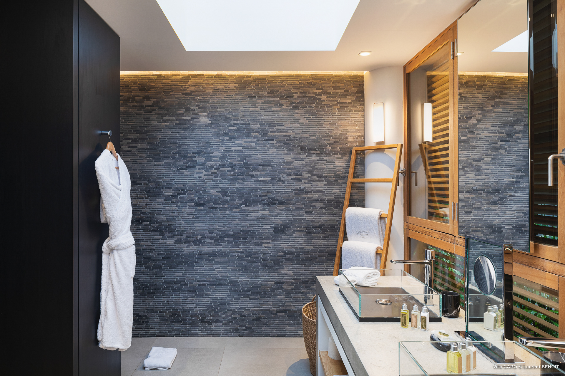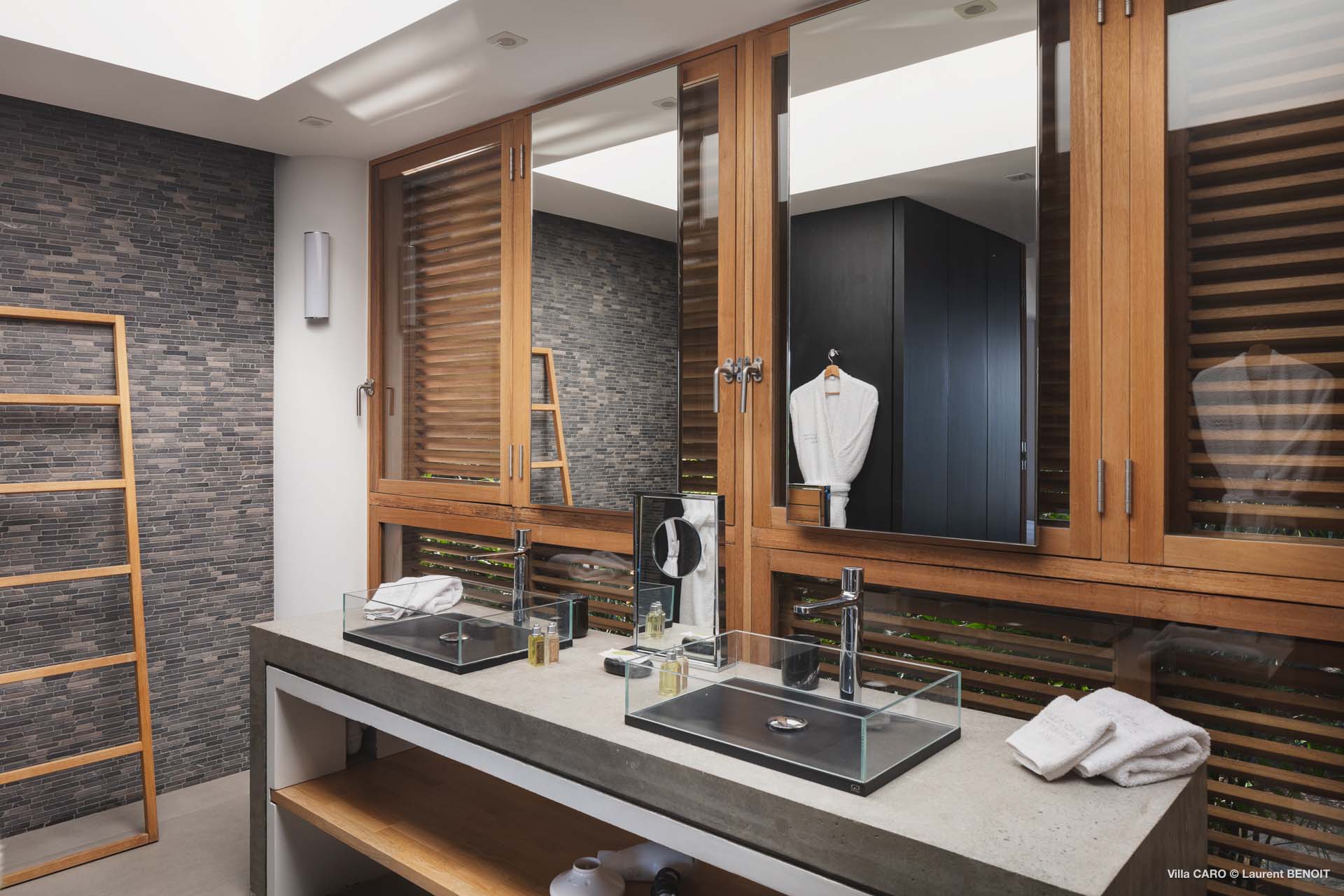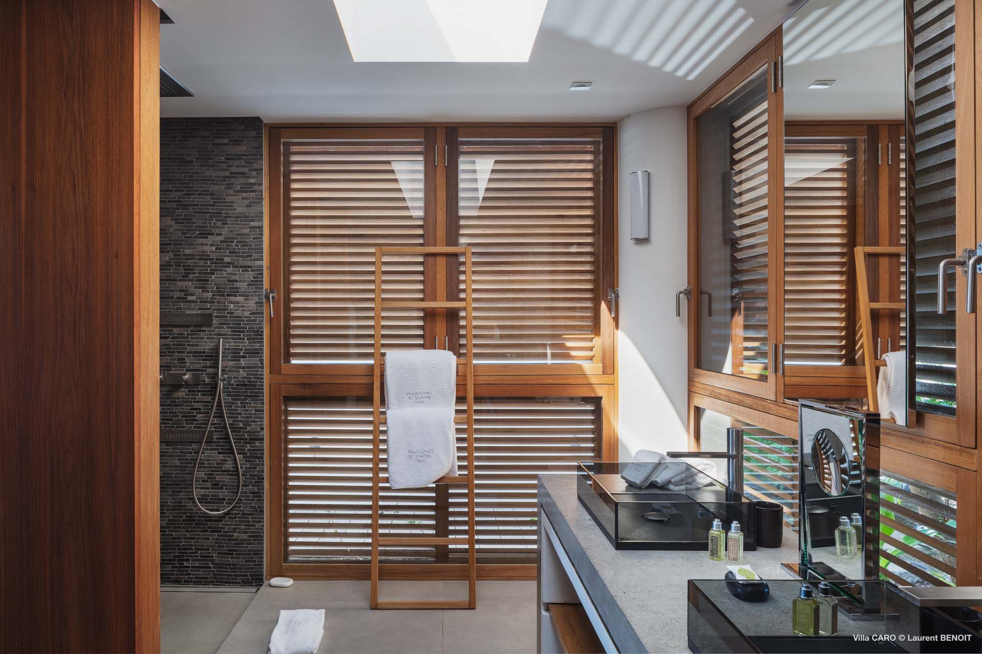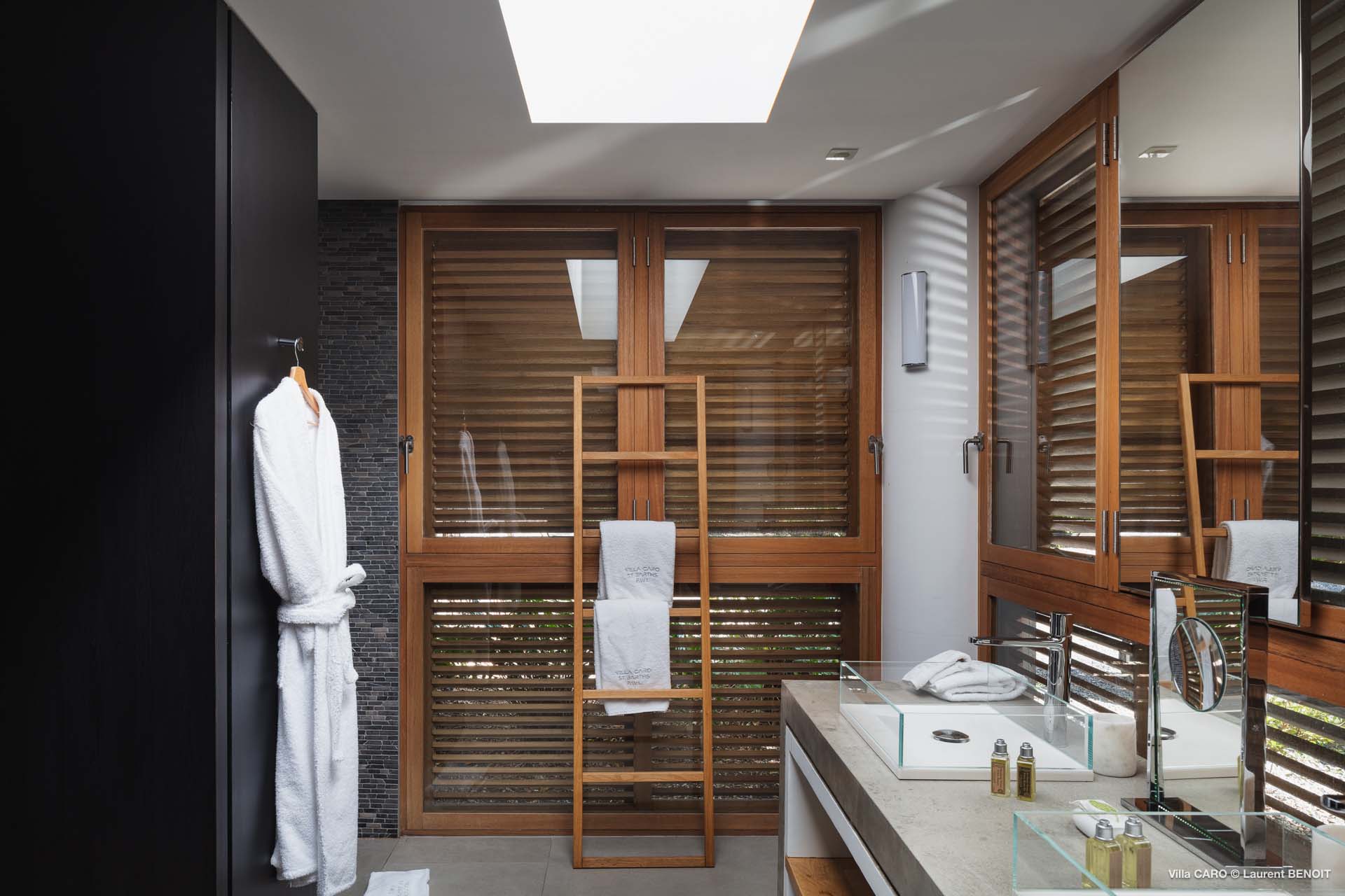 Welcome to Villa Caro (villa code: WV ARO), a newly-built 5-bedroom villa in Gouverneur, St. Barts. This modern Caribbean home enjoys outstanding panoramic views and is the height of sophistication and luxury on the island. An inviting blend of wooden paneling and natural light creates an elegant atmosphere inside Villa Caro, a spacious home that combines indoor and outdoor living spaces with ease. The clean and pared-back design keeps your gaze firmly transfixed on the natural beauty around you while high-end furnishings provide every comfort. Situated at the top of Gouverneur, Villa Caro is a short drive away from restaurants, bakeries, and grocery stores. Gouverneur Beach is 3 minutes down the hill. Gustavia, the capital, is also nearby, making this the ideal vacation villa for a St. Barts getaway. The central living area inside Villa Caro is all about functionality and style. The spacious room combines the living room, office, and kitchen, and can either be fully opened to the terrace and pool or closed off and air-conditioned. It’s all about easy living in the Caribbean, the simple luxuries of life. The living room is an idyllic spot to soak up the views and ocean breeze, relaxing on one of the inviting sofas. A flat-screen TV hangs on the wall, but it’s really the ocean panoramas that will draw your gaze. The beautiful wooden paneling in the back of the room discreetly hides the main entrance and sleek office space. Behind the living room is the kitchen, a warm and inviting spot to cook. Also hidden behind the wooden paneling is an auxiliary kitchen where they’ll work most of their magic. Breezy meals can be enjoyed on the covered terrace, directly in front of the living area and kitchen. With a sunset casting a rosy gold color across the sea and sky, you’ll have many a memorable meal here with family and friends. The bedrooms inside Villa Caro, each offer a simple yet luxurious space to relax, recharge, and unwind. All are similar in size and have ensuite bathrooms. To the left of the main room is the master suite, which also enjoys a full dressing area and a spacious shower with luxurious side jets. A U.S. king-sized bed is plush and comfortable. There are two guest bedrooms to the right side of the main room, each with his-and-her closets, king-sized beds, and ocean views. The final two bedrooms are at the back of the property, facing the idyllic tropical garden. These two rooms each have a pair of twin beds, that can be configured into a king. The outdoor living spaces at Villa Caro make you feel like you’re on top of the world. The views are breathtaking, with the rolling hills of St. Barts melting into the sparkling Caribbean Sea. Kicking back with a drink to take it all in is a great way to enjoy each evening. Speaking of relaxing, there are several fantastic areas to unwind outside. You could enjoy a meal in the sunken gazebo next to the pool, or host a cocktail hour on the couch in the far corner of the terrace. All this space surrounds the large, heated infinity pool, the ideal spot to enjoy the views breezes, and warm Caribbean sun. Villa Caro is an ideal villa for families as well as couples vacationing together and features a long list of amenities. There’s also a fitness room on the lower floor. During the December holidays, the villa rents at the full occupancy rate regardless of how many bedrooms are used.Please fill out the form to begin your inquiry and we will connect you with a seasoned villa rental specialist.
